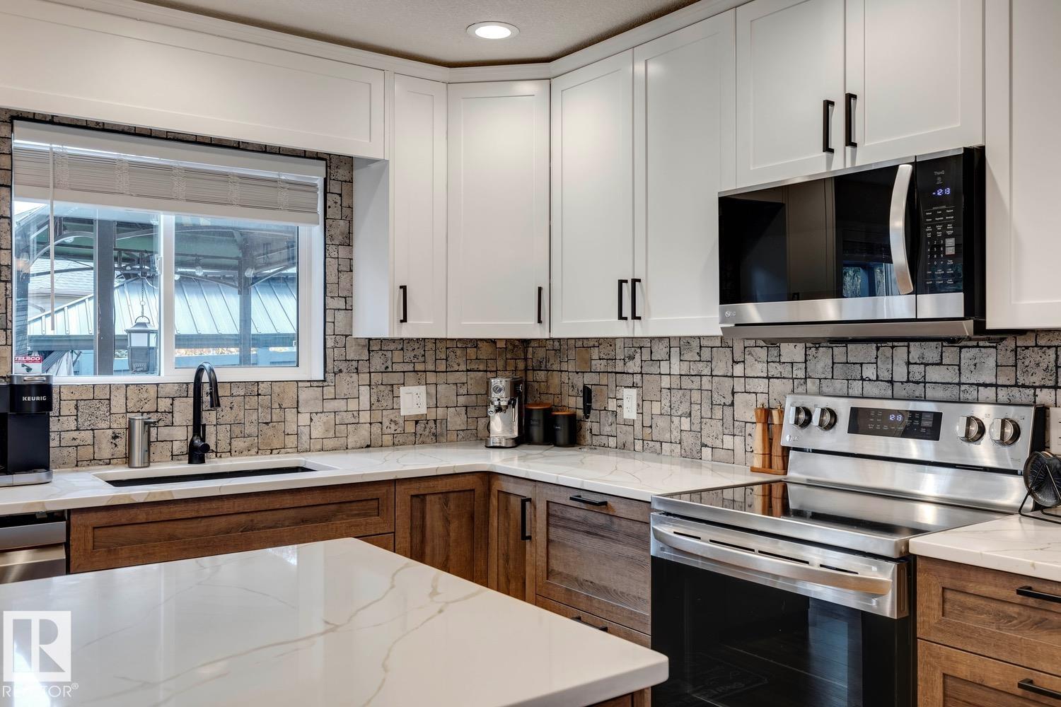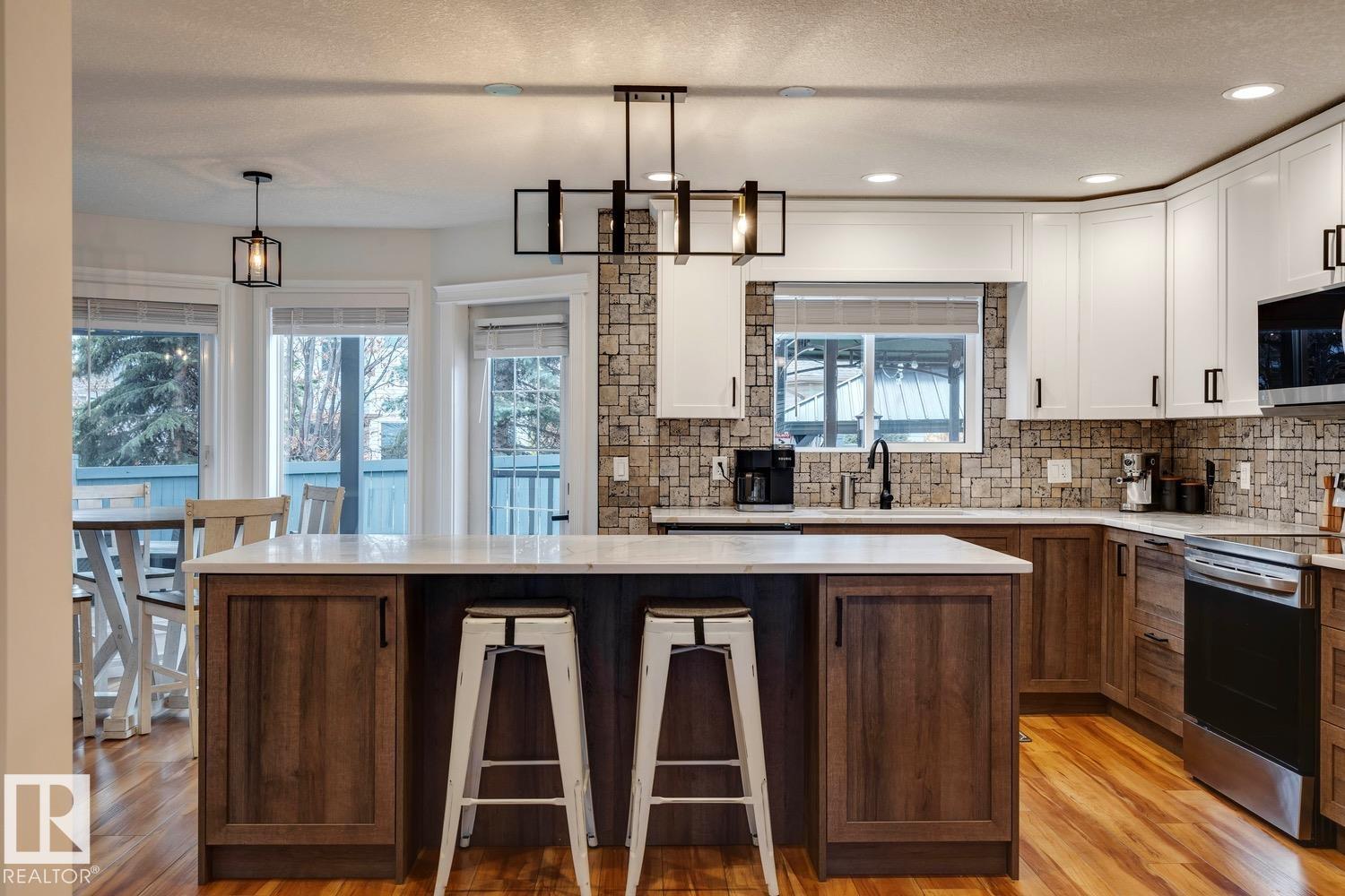 Welcome to the desirable neighborhood of Blackmud Creek! Located in a quiet cul-de-sac, offering 3900 sqft of total living space, this 6 bed/4 bath 2-storey has been beautifully renovated and presents like a dream! The main floor offers a bright and open floorplan. Lavish kitchen w/s.s. appliances and quartz counters, spacious family room w/vaulted ceilings and gas fireplace, formal living/dining areas, bedroom/den, 4-pc bath, and laundry/mudroom. The gorgeous staircase will take you upstairs where you will find the huge primary suite w/5-pc ensuite, fireplace, and walk-in closet, 2 additional bedrooms, additional 5-pc bath, and loft/bonus area. The lower level offers the ultimate "man cave" w/huge rec area, full wet bar, two bedrooms, full bath, and storage space. Outside you will enjoy the maintenance free landscaping and 2-tiered composite deck. Recent upgrades to the home include: kitchen, flooring, appliances, bathrooms, fixtures, paint (interior and exterior), and more. Terrific family home!