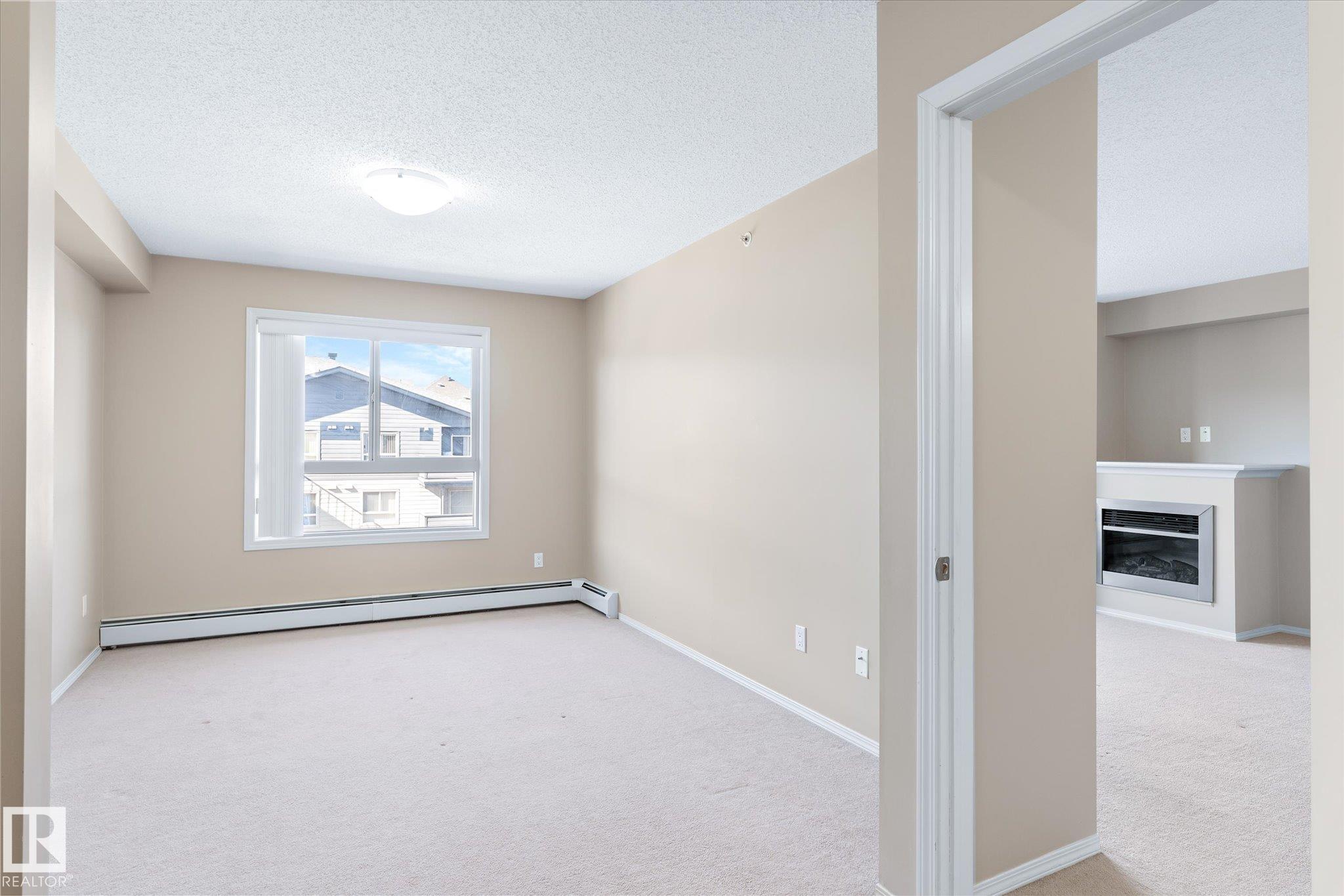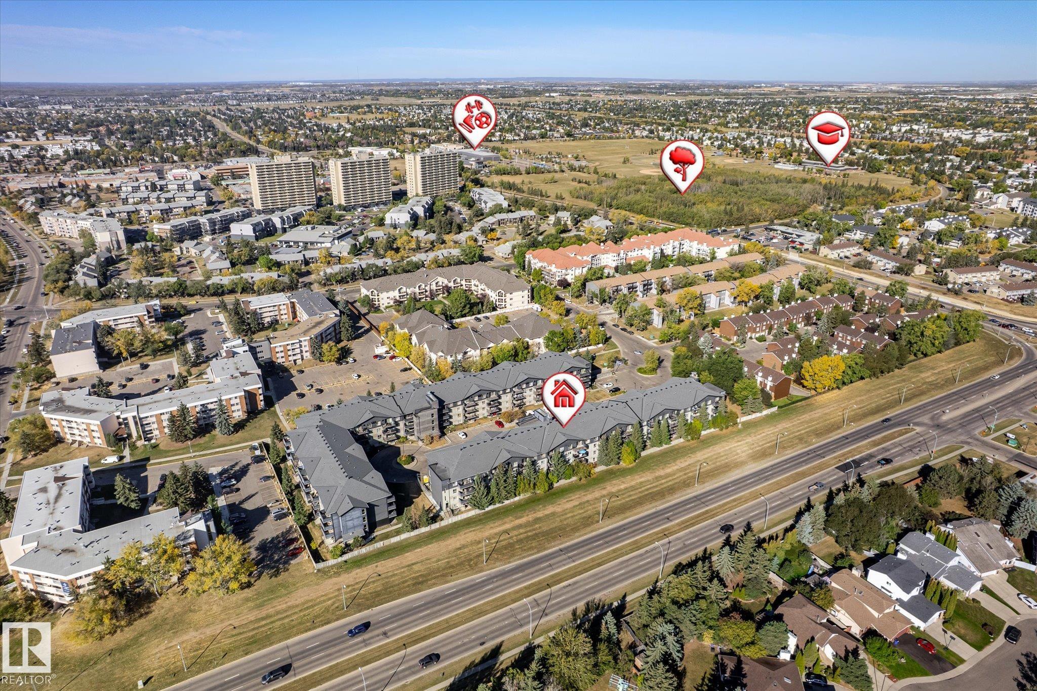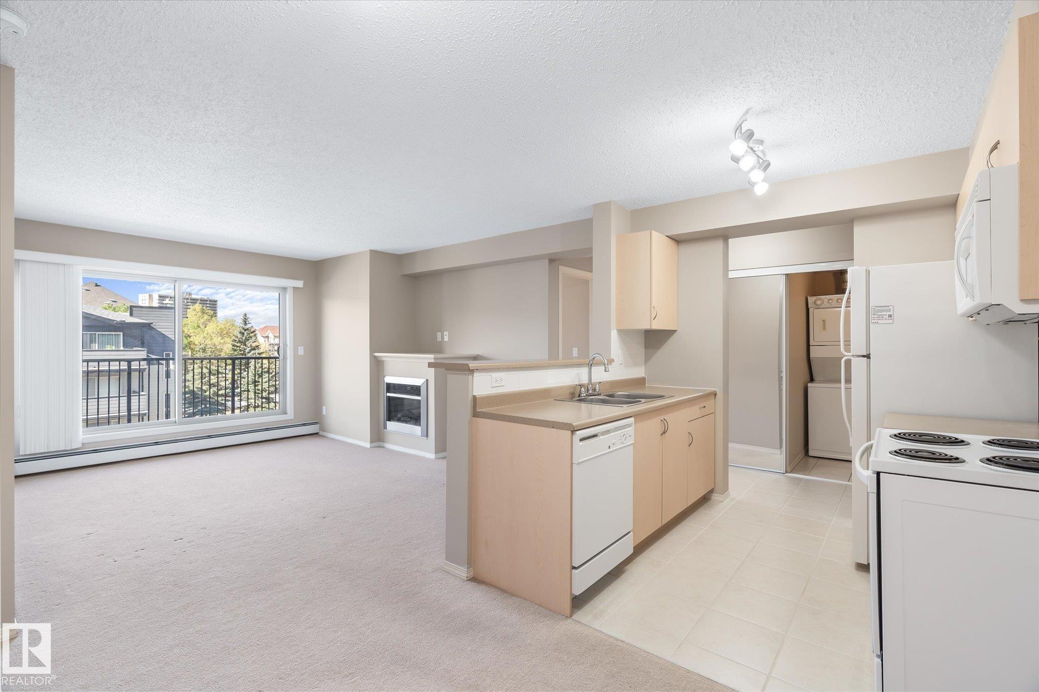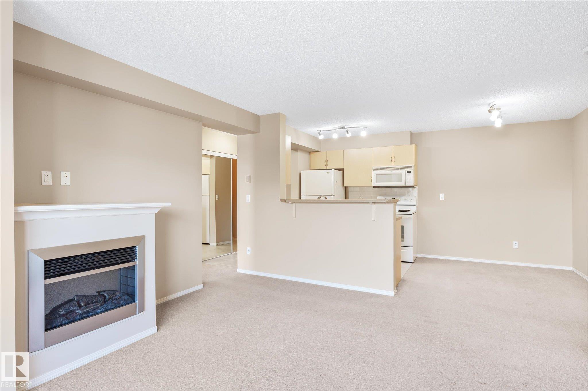 Excellent unit on the top floor of the building, so no neighbours above you! Perfectly located 2 Bedroom, 2 Bathroom condo offers a great layout for room mates with bedrooms separated by living room. The open concept kitchen features an island with eating bar and it faces the large living and dining space that includes a fireplace. Patio doors open up to your private west-facing balcony. There is also in suite laundry. Added bonus is 1 heated underground parking stall, in a prime location next to the elevator! Bring your own decorating touch as the unit has neutral tones throughout. The location is excellent, walking distance to shopping including the Callingwood farmers market, restaurants and grocery stores. Easily accessible to West Edmonton mall, the Whitemud and Anthony Henday, and close to public transit. Schools, ball diamonds, YMCA rec centre and playgrounds are in the area. Very good value for someone starting out, downsizing or as a rental unit.