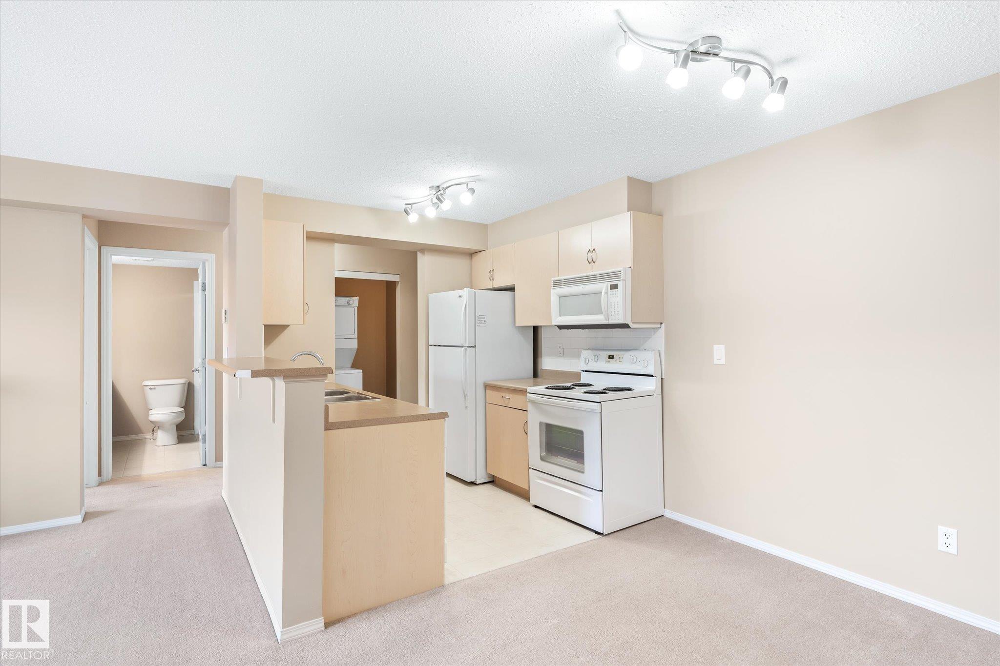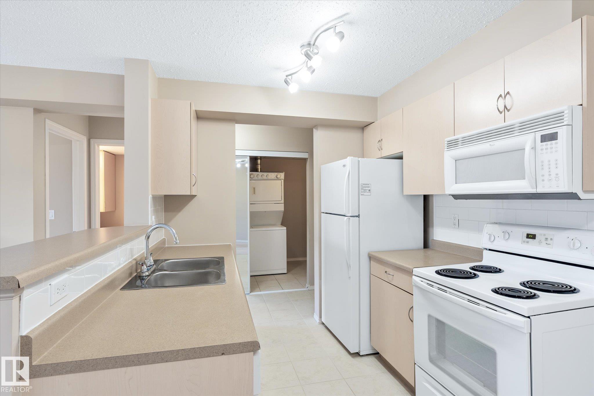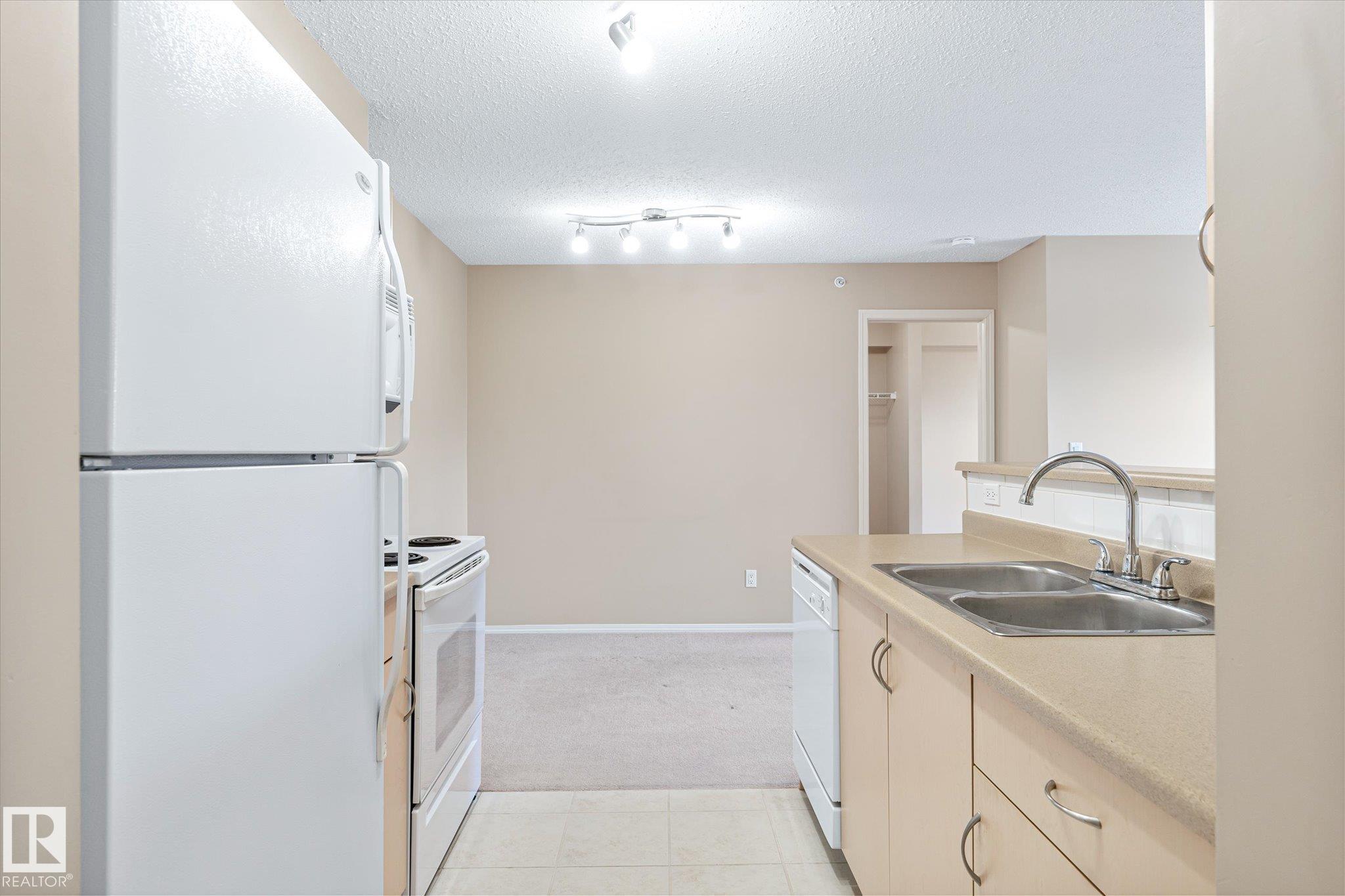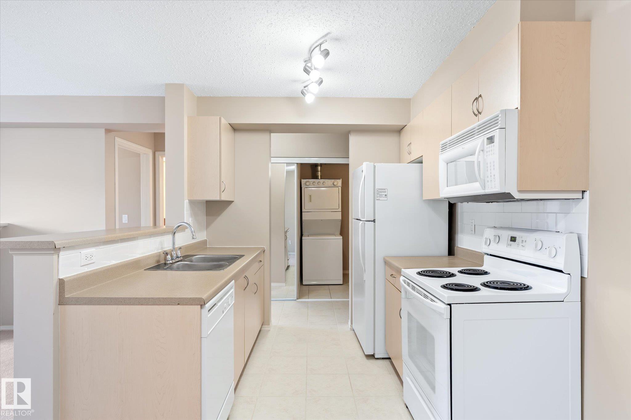 Excellent unit on the top floor of the building, so no neighbours above you! Perfectly located 2 Bedroom, 2 Bathroom condo offers a great layout for room mates with bedrooms separated by living room. The open concept kitchen features an island with eating bar and it faces the large living and dining space that includes a fireplace. Patio doors open up to your private west-facing balcony. There is also in suite laundry. Added bonus is 1 heated underground parking stall, in a prime location next to the elevator! Bring your own decorating touch as the unit has neutral tones throughout. The location is excellent, walking distance to shopping including the Callingwood farmers market, restaurants and grocery stores. Easily accessible to West Edmonton mall, the Whitemud and Anthony Henday, and close to public transit. Schools, ball diamonds, YMCA rec centre and playgrounds are in the area. Very good value for someone starting out, downsizing or as a rental unit.