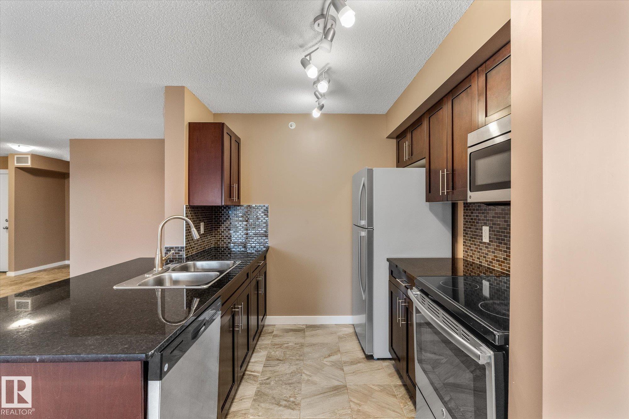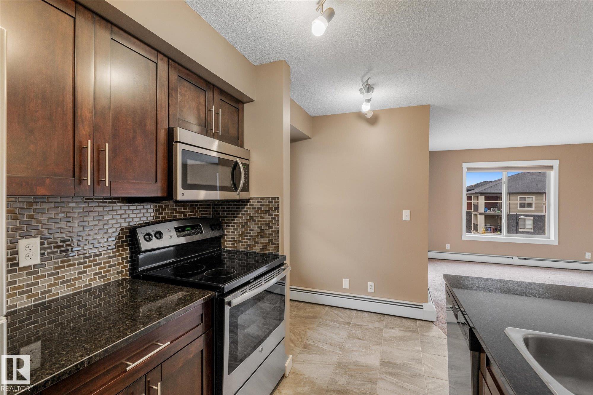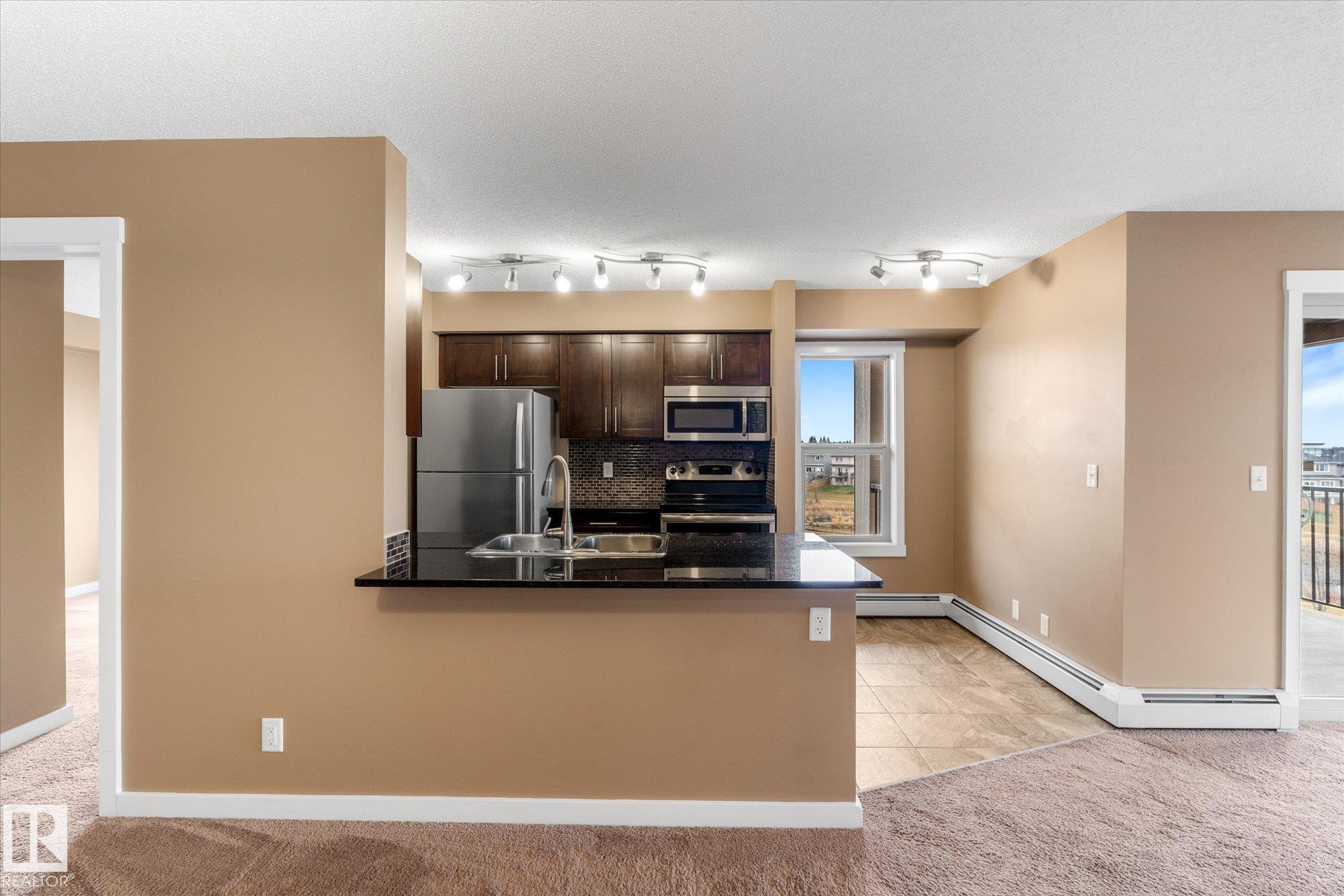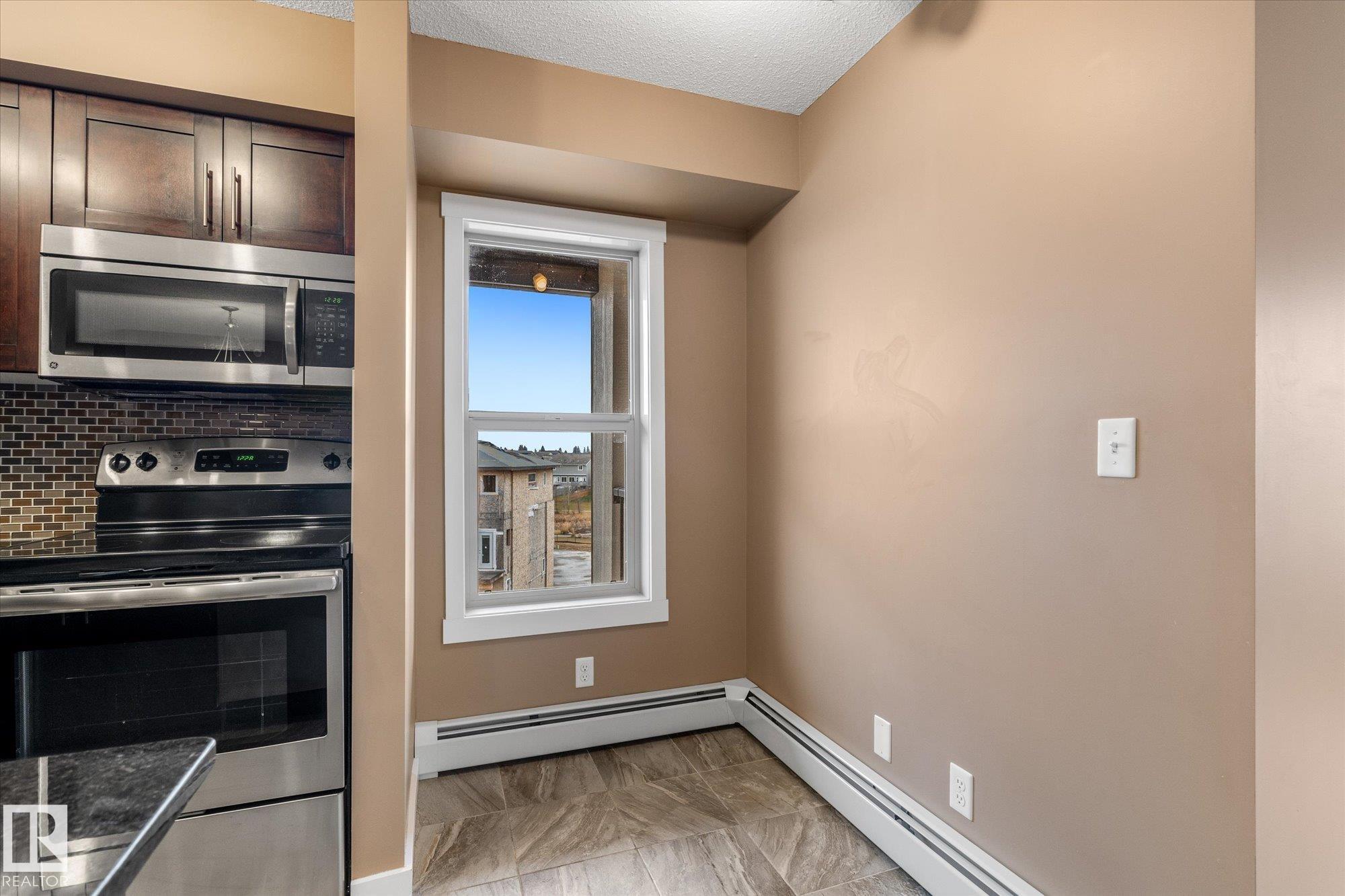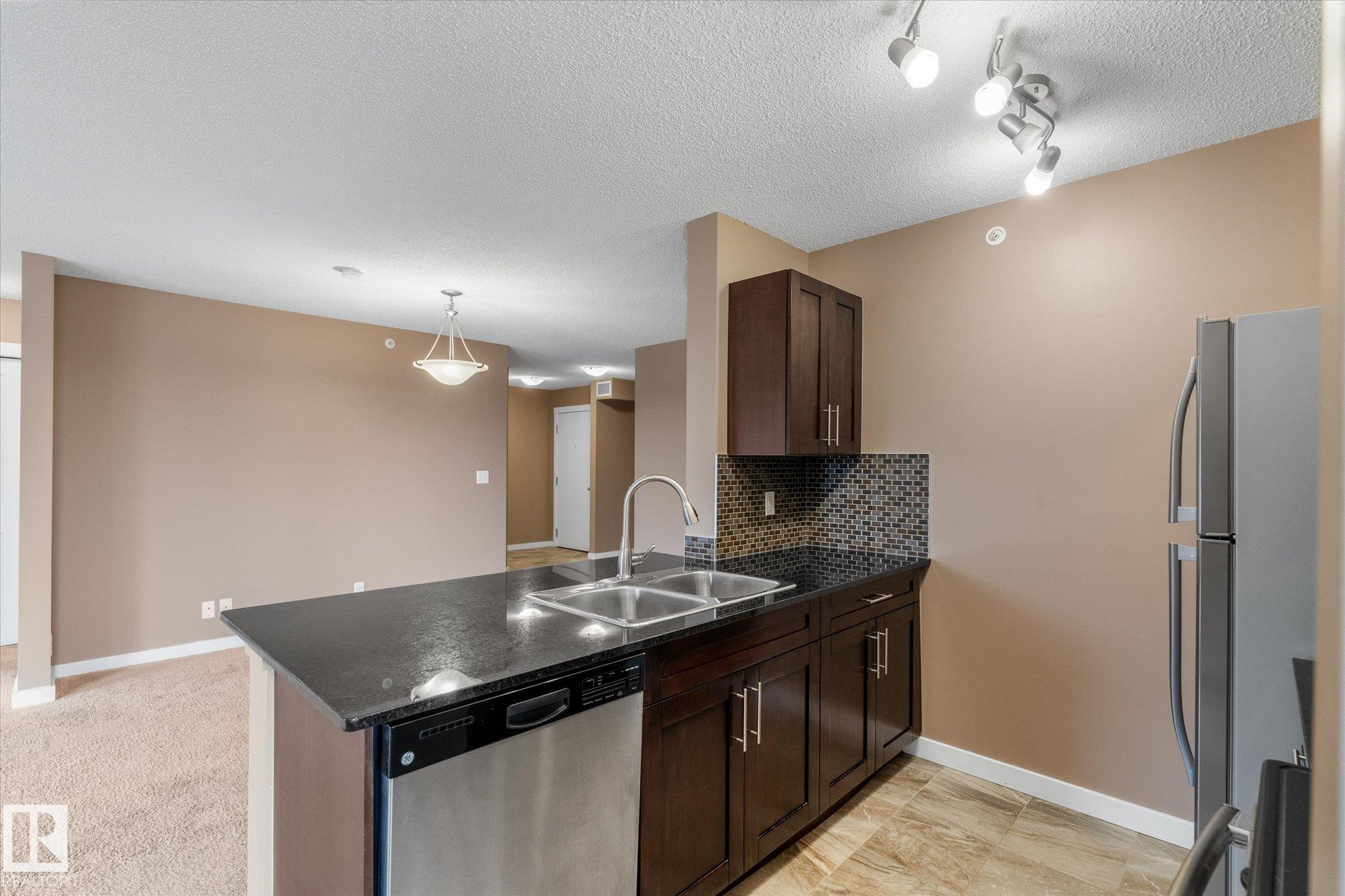 Welcome to one of the most desirable units at Creekwood Landing! This top floor 975 SF corner unit features 2 bedrooms, 2 bathrooms, AND 2 parking stalls! One is underground and the other is above ground. Plenty of natural light and a view over the pond across the street. Other great features of this condo are in-suite laundry, breakfast nook, large kitchen with SS appliances, granite counters, space by the front door could be used for a small office, walk-through closet, 3 pc primary ensuite, patio with a view, visitor parking, and much more. Some photos are virtually staged.