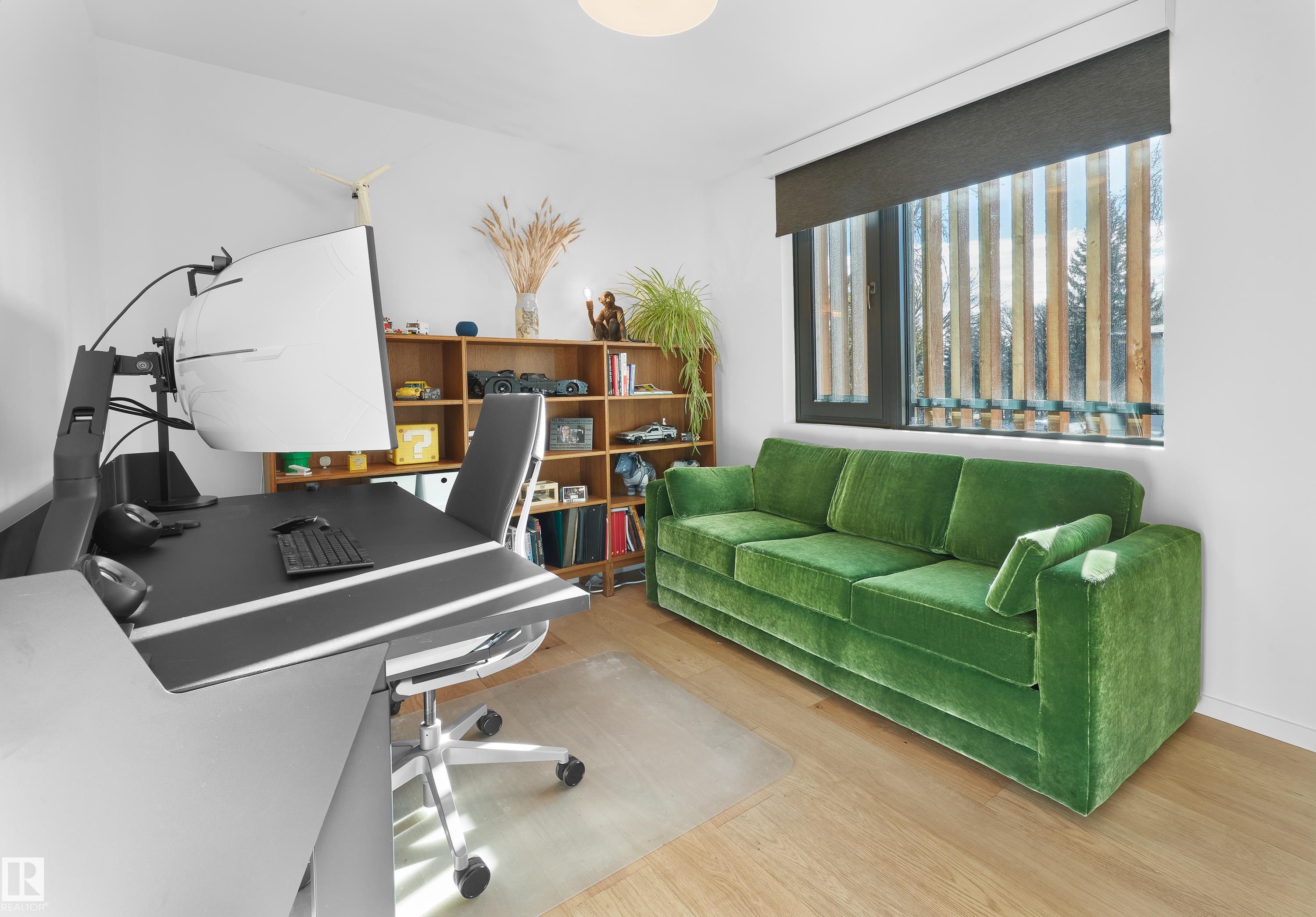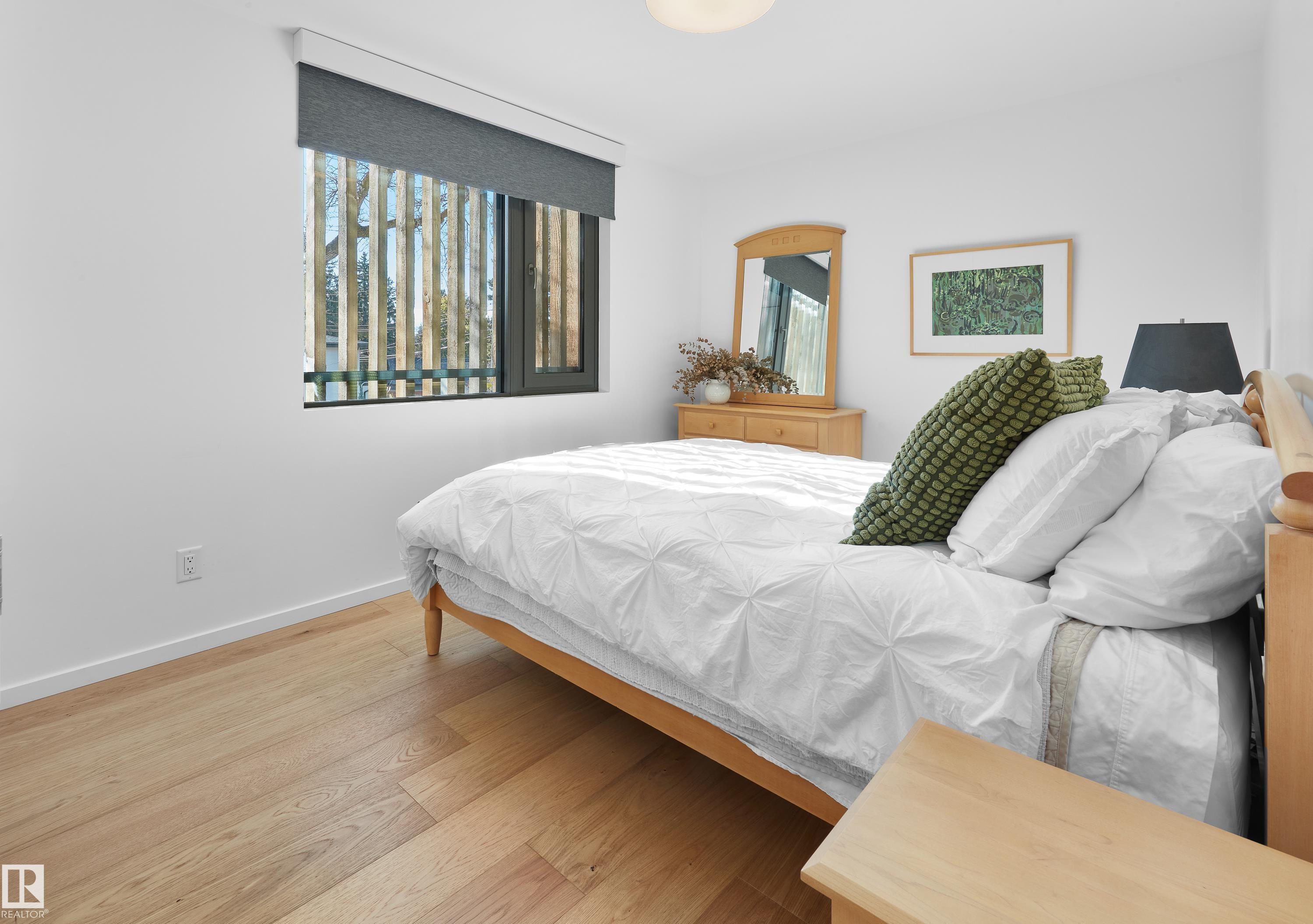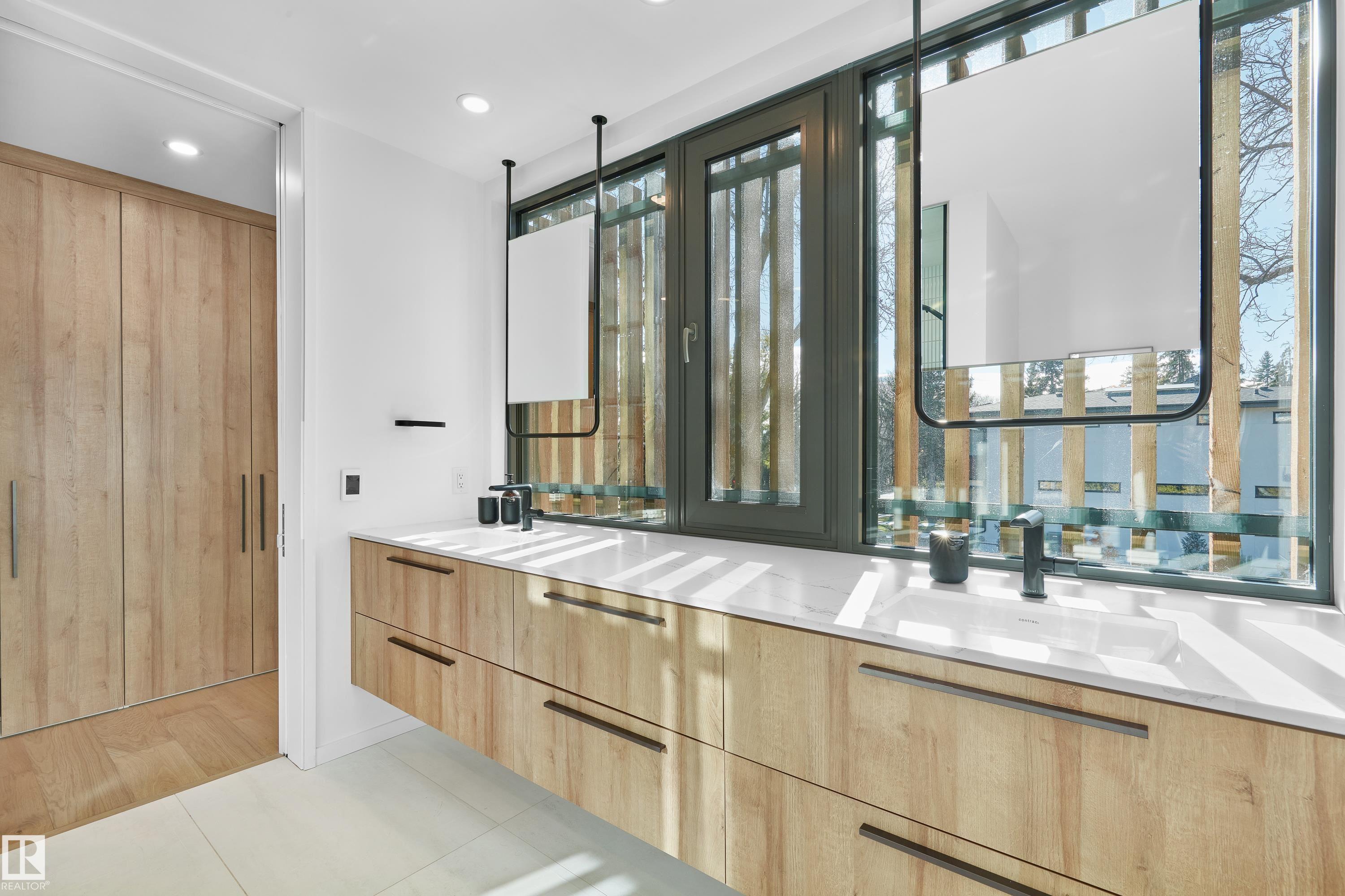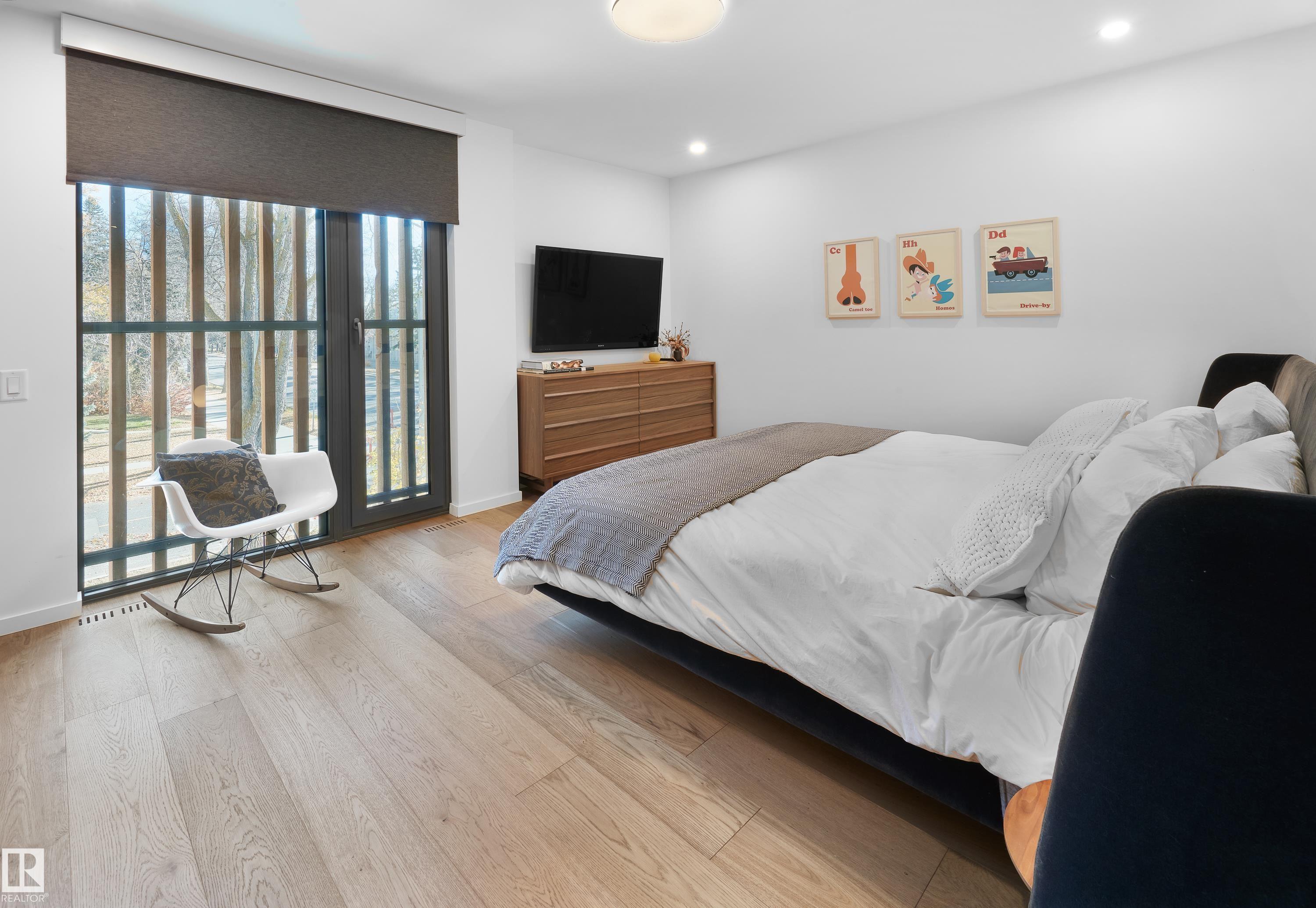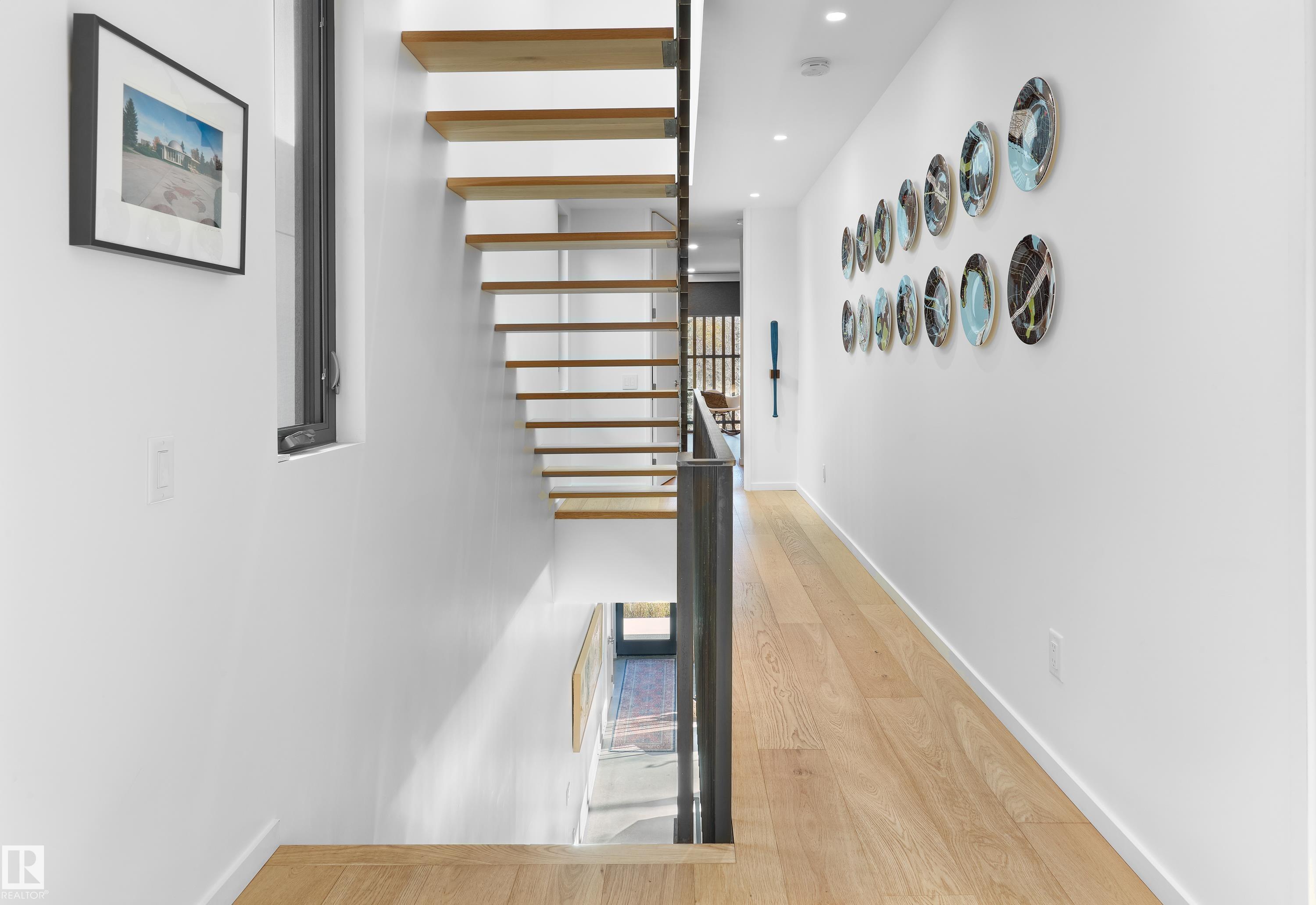 Designed by Edmonton City Architect Carol Belanger, this remarkable Old Glenora residence reinterprets the low-slung modernist home that once stood on the site. With over 2,800 sq. ft. of finished living space, it balances heritage and innovation with quiet confidence. The striking stone chimney, painstakingly rebuilt from salvaged materials, anchors the home in its history while defining a new architectural chapter. Inside, a luminous ribbon window traces the south fa‡ade, framing open horizons and intimate moments in equal measure. Wrapped in warm wood and textural stone, the upper level appears to float, a refined nod to a modern tree fort. Light shifts gently across each surface throughout the day, revealing new tones and textures. Every material, polished concrete, natural textural wood, cold-rolled steel, and verdant tile, contributes to an atmosphere of enduring craftsmanship and understated luxury. This is contemporary Edmonton living, rooted in legacy and elevated by design.