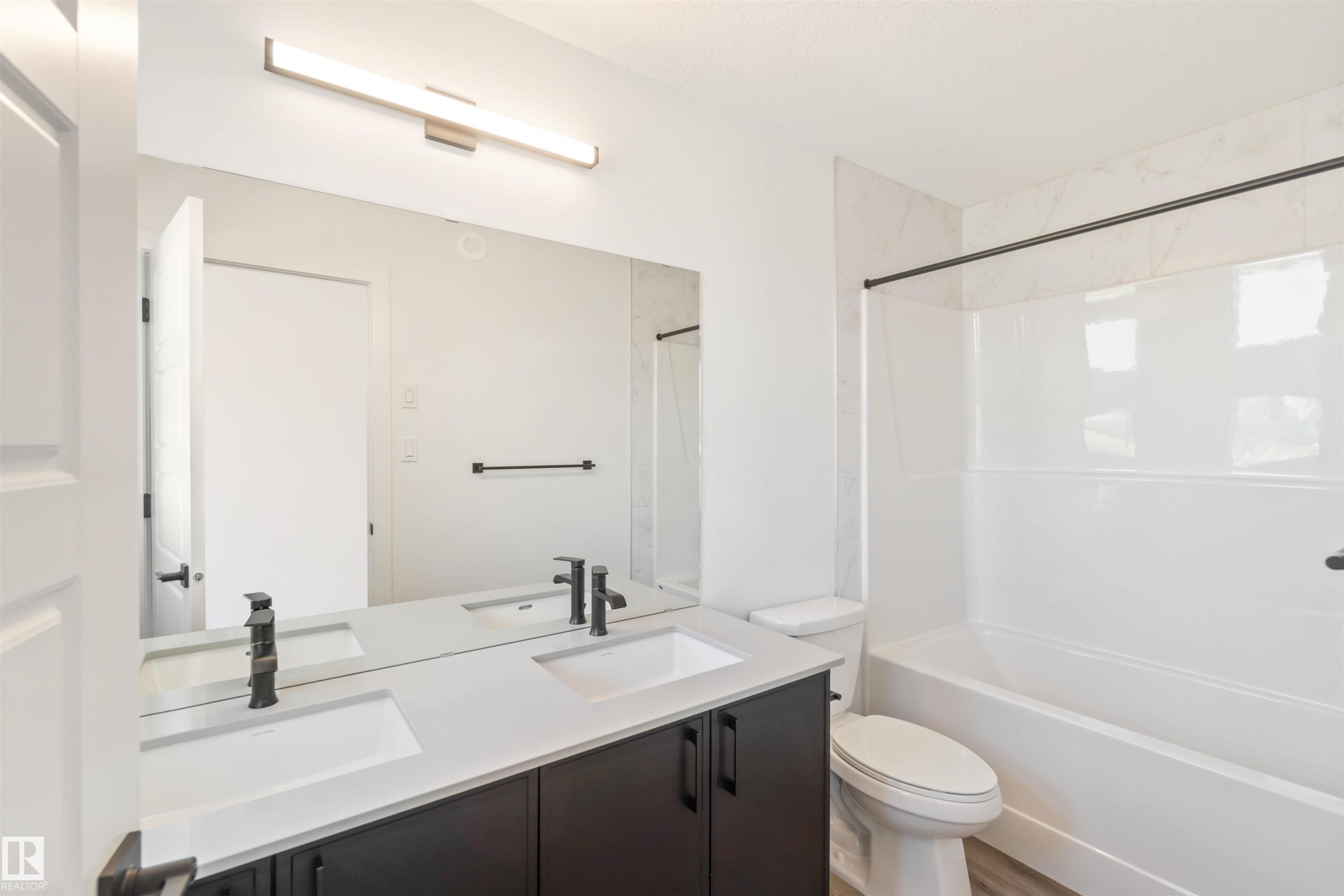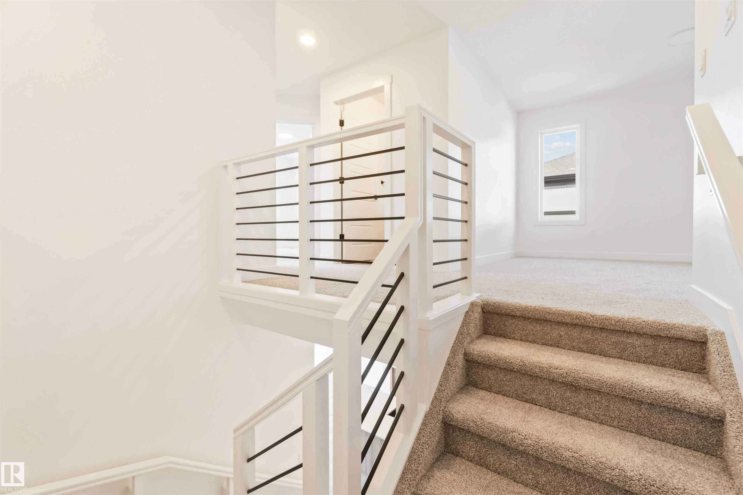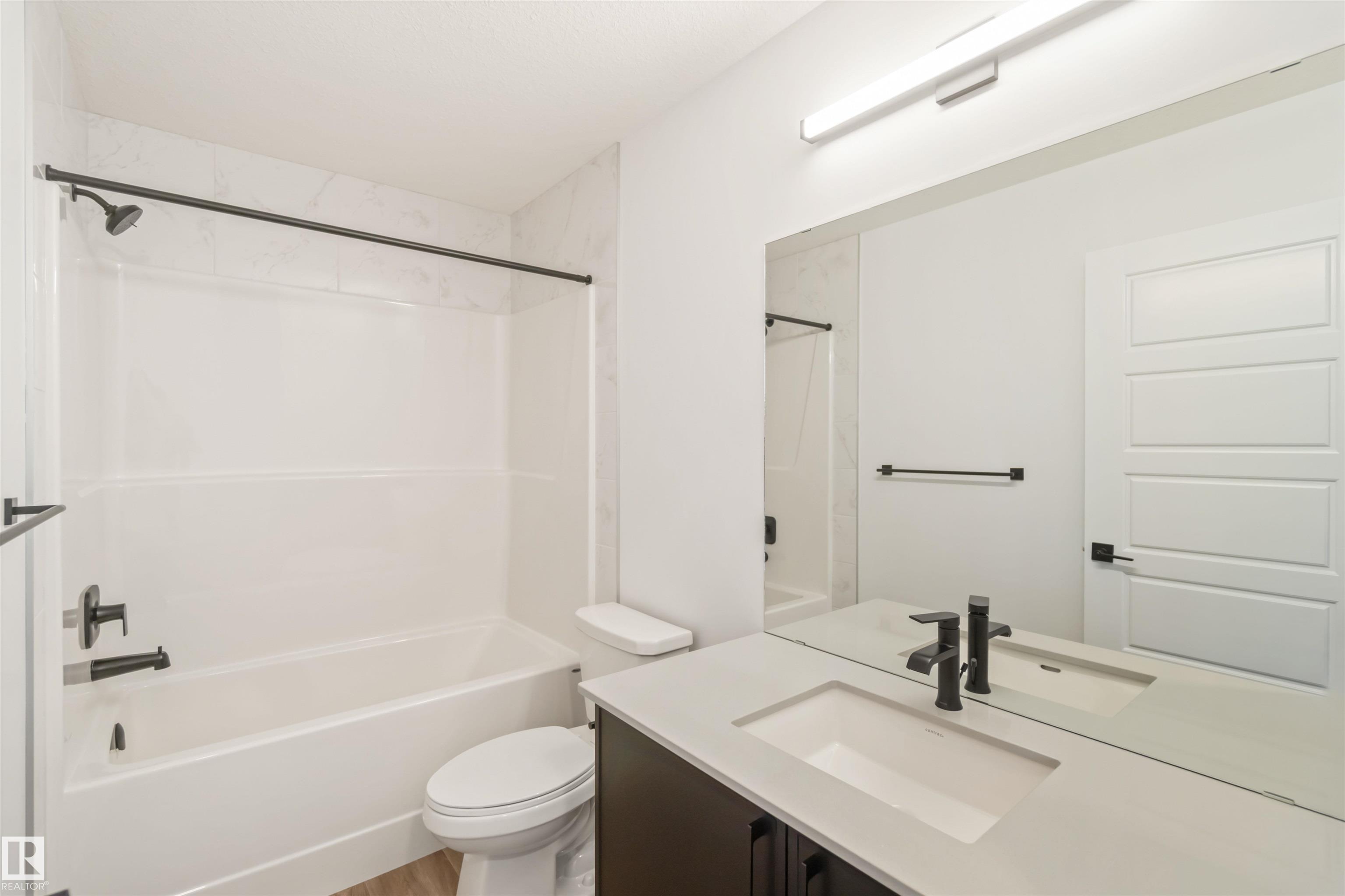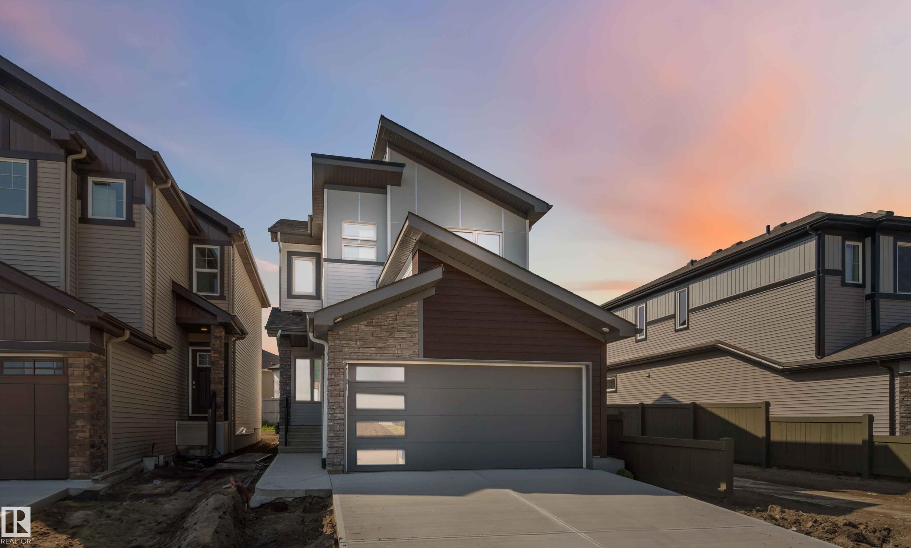 The Affinity model is an elegant, well-built home tailored for today's families. It features a dbl att garage, extra side windows, separate side entry, 9ft ceilings on the main & basement levels, and LVP flooring throughout the main floor. The foyer opens to a full 3pc bath with walk-in shower & a main floor bedroom. The open-concept kitchen, nook, and great room offer function & style. The kitchen includes an island with flush eating ledge, chimney-style H/F, tile backsplash, Silgranit undermount sink with black faucet, soft-close cabinets, corner pantry, and a built-in microwave in the lower cabinetry. The great room with fireplace & the nook are flooded with natural light and feature patio doors to the backyard. Upstairs, the bright primary suite includes a 4pc ensuite with dbl sinks, walk-in shower & large walk-in closet. A bonus room, 3pc bath, laundry area & 3 additional bedrooms complete the level. Includes upgraded railings, black fixtures, and basement rough-in.