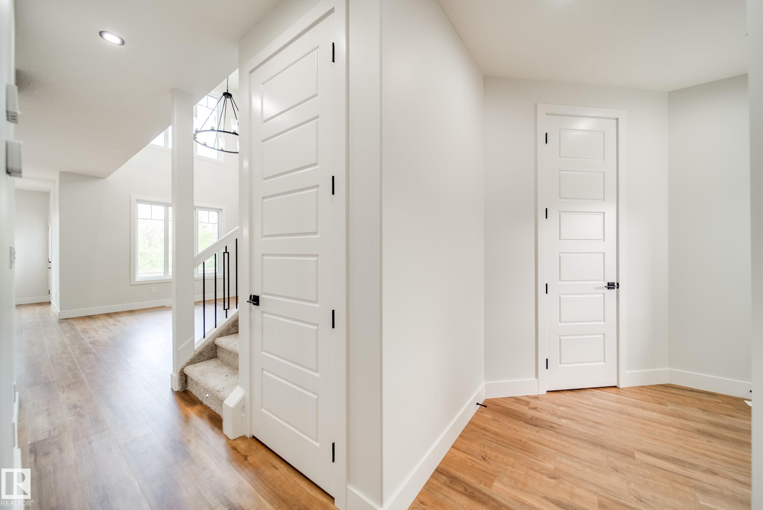 Welcome to this stunning BRAND NEW home in the sought after community of College Woods! The main floor showcases a BRIGHT, open-concept layout w/soaring open-to-below ceilings in the great rm, a versatile den/5th bedroom, full bath, & a stylish kitchen with EXTENDED cabinetry, dbl WATERFALL ISLAND, full butler's pantry/SPICE KITCHEN, and brand new stainless steel appliances. A rear mudroom with built-in shelving adds everyday convenience. Upstairs, you'll find 4 spacious bedrms plus a bonus room, incld. a luxurious primary suite w/ a FEATURE wall, spa-inspired 5-piece ensuite with a SOAKER TUB, tiled shower, double sinks, & a large walk-in closet. A full bath & convenient upper floor laundry complete this level. Enjoy main floor 9' ceilings & 8' doors, plus a SEPARATE SIDE ENTRANCE to the unfinished basement,ideal for future suite potential. Situated on a LARGE LOT with NO rear neighbours, close to schools, parks, shopping, and amenities, this home delivers on style, space, and location. Call this home!