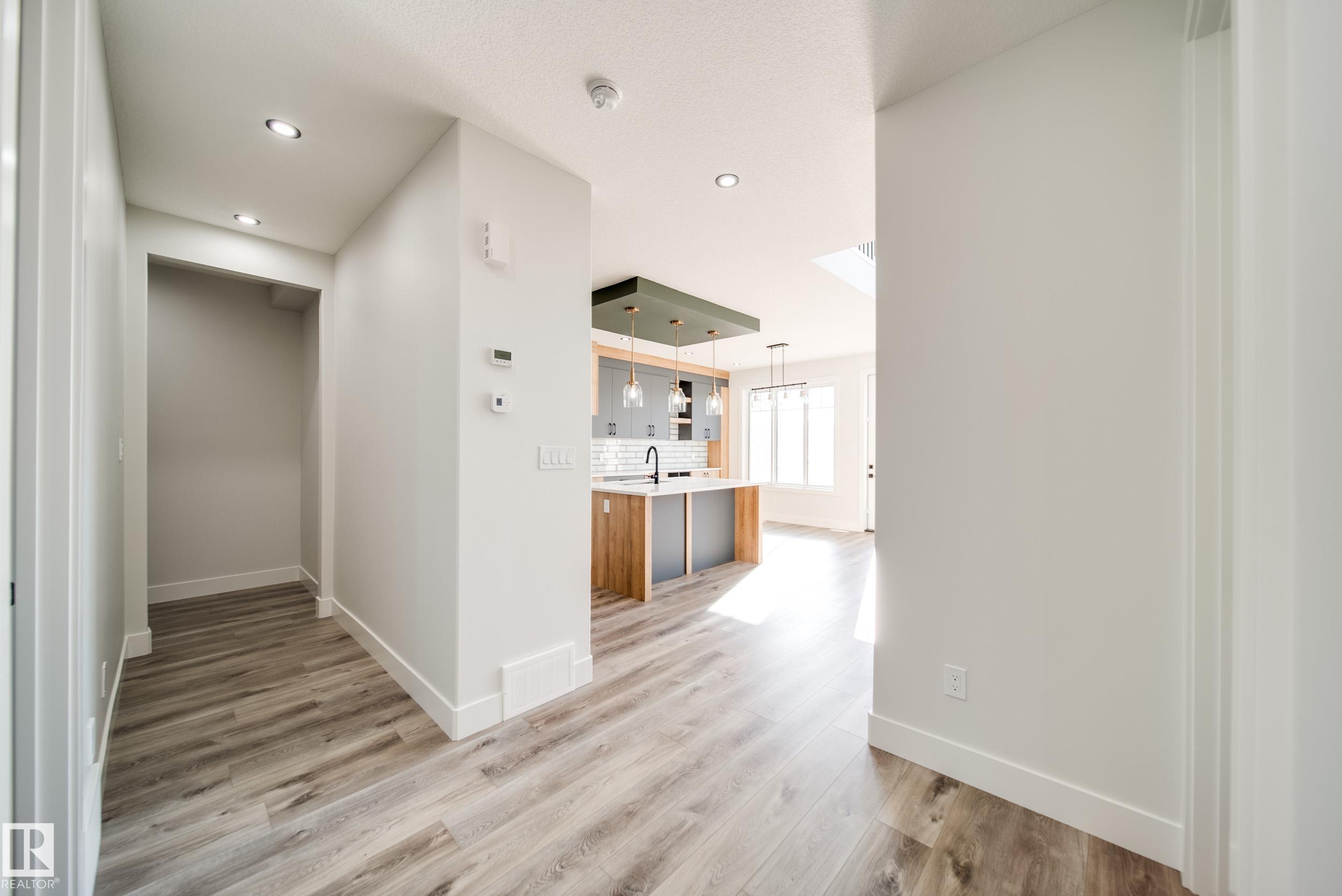 This SOUTH-FACING, WALKOUT home backing a green space, offers thoughtful design with premium UPGRADED finishes like 9' ceilings, 8' doors, LUXURY vinyl plank, MDF shelving & custom millwork feature walls. A bright, open-concept main floor impresses with an open-to-above great room, & a versatile main floor bedroom/office paired with a convenient powder room. The chef's kitchen showcases QUARTZ countertops, UPGRADED extended cabinetry, & a WALK-IN pantry. Upstairs, find 3 spacious bedrooms, including a serene primary retreat complete with a 5 piece spa-like ensuite, tile surround shower, tub, & generous WIC filled with NATURAL LIGHT. Down the hall, find an additional full bath, SPACIOUS bonus room & a large laundry room with a SINK. A SEPARATE SIDE ENTRY to the unfinished basement awaits future development. Perfectly located in a desirable, amenity-rich community, this home offers the perfect balance of space, style, and sophistication - make it HOME today!