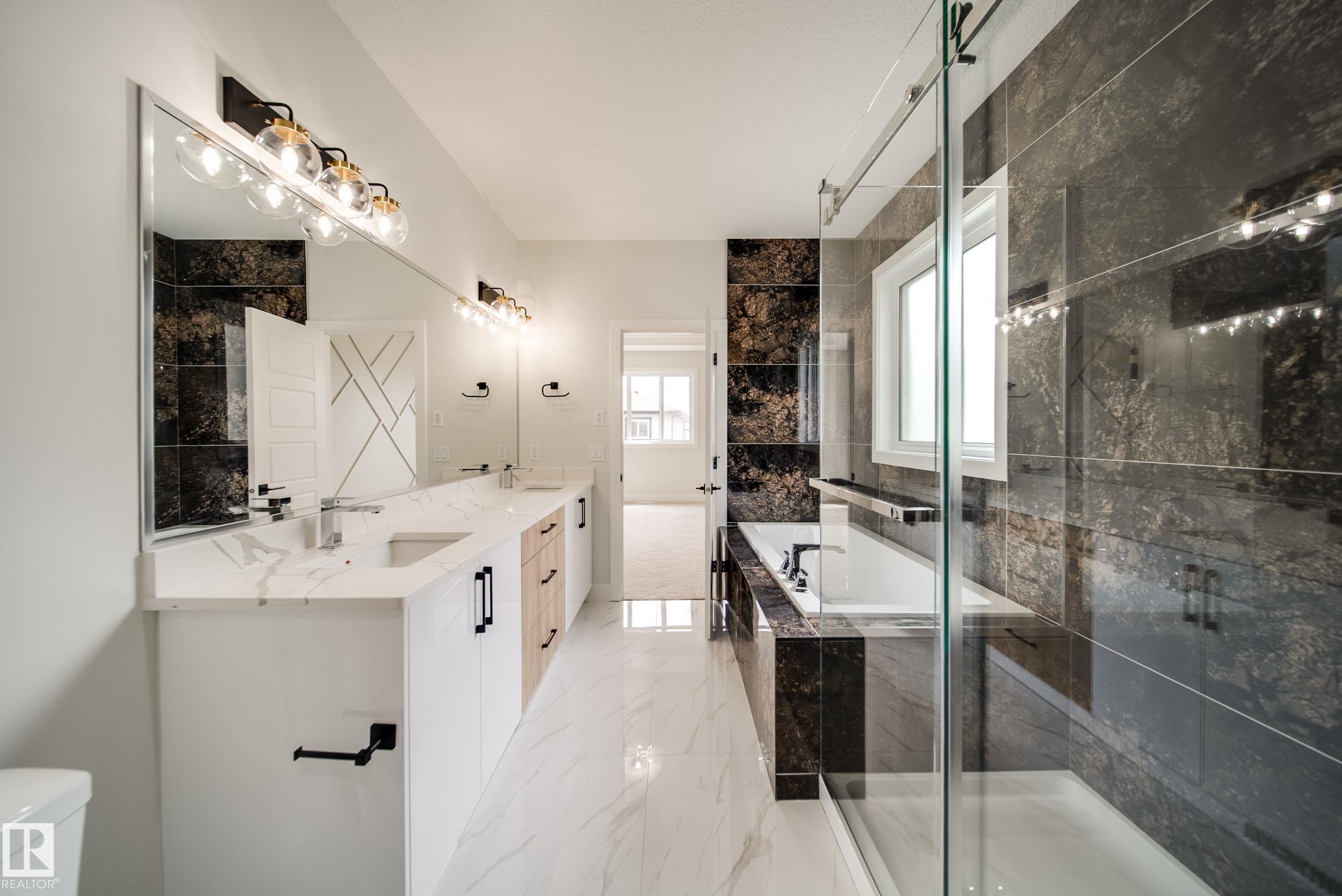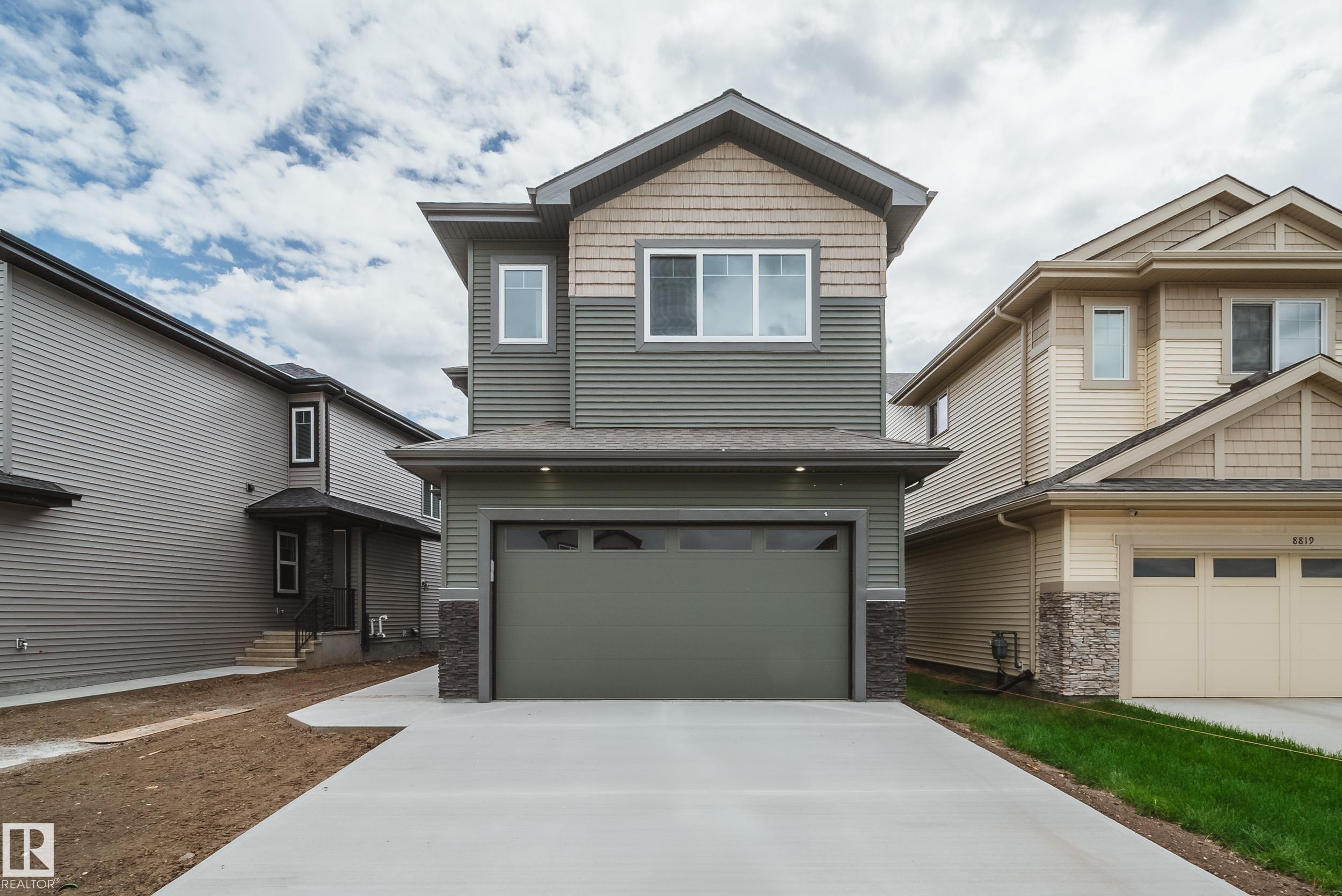 Welcome to this stunning over 2300 sq ft brand new home in College Woods. Featuring 4 spacious bedrooms, including TWO co-primary suites w/ensuites & walk in closets, this home offers both luxury & flexibility. The main floor bedroom doubles as a versatile den, perfect for a home office or guest room. Enjoy the 9-foot ceilings & an impressive OPEN-TO-ABOVE great room that fills the space with natural light. The chef-inspired kitchen provides ample space for cooking & hosting. Step through the kitchen door to discover a discrete SPICE KITCHEN for all your cooking needs, complemented by high-end finishes, like QUARTZ counters, tiled backsplash, & custom millwork & tiled feature walls. Upstairs, a large bonus rm offers additional space for entertainment or relaxation. With an attached garage & quality craftsmanship throughout, this home blends modern design with practicality. Located in the desirable College Woods community, this move-in ready gem is ideal for growing families or those seeking extra space.