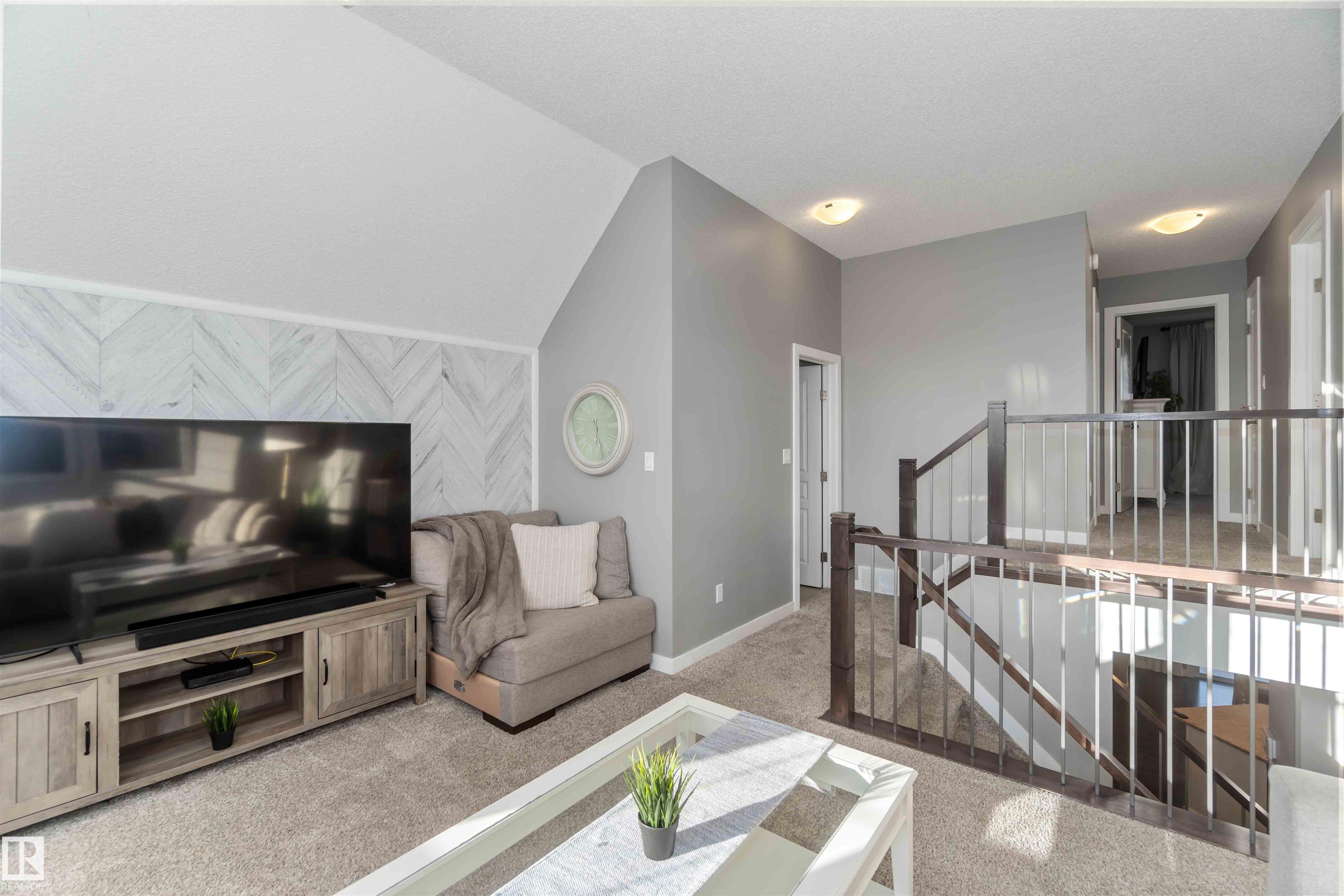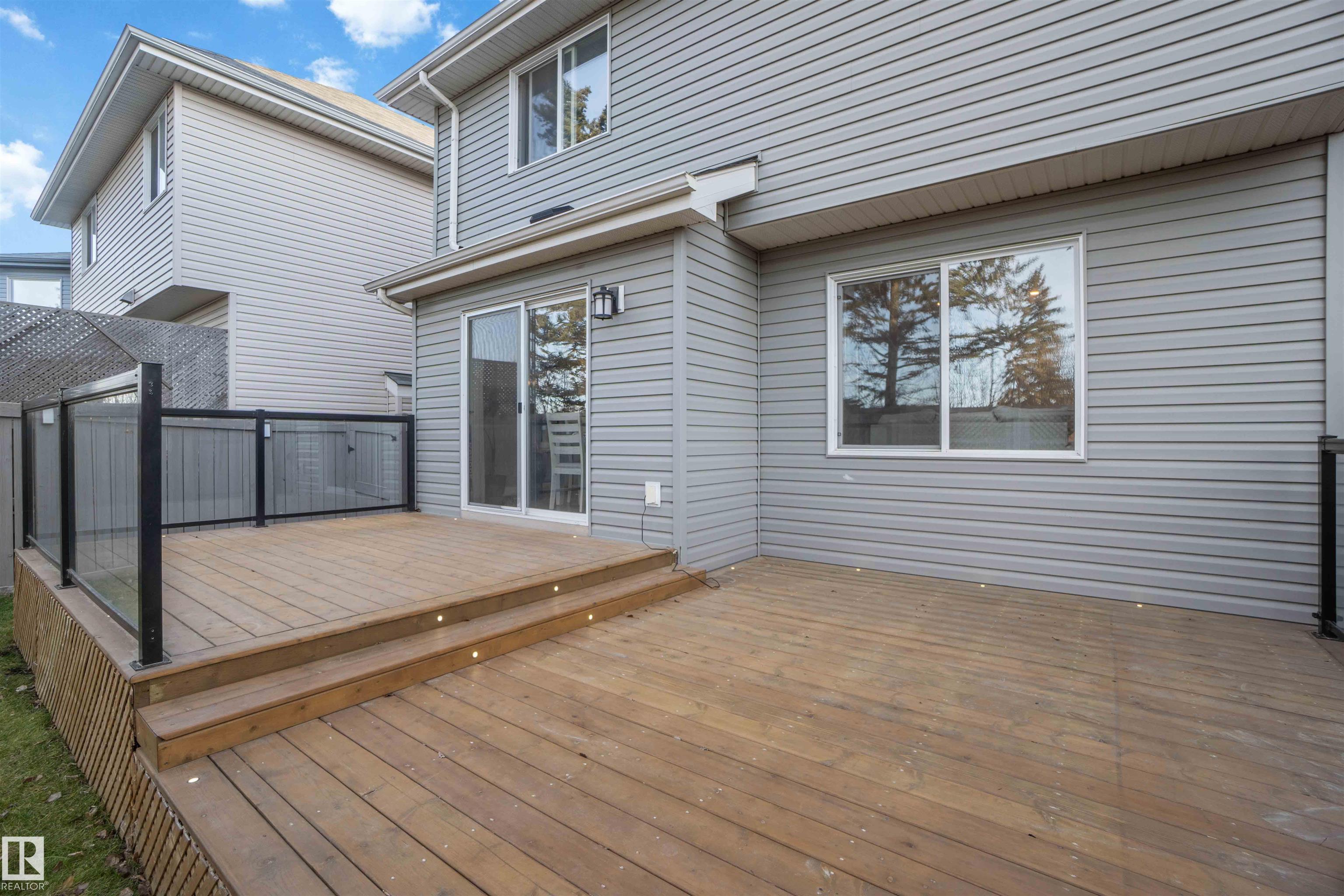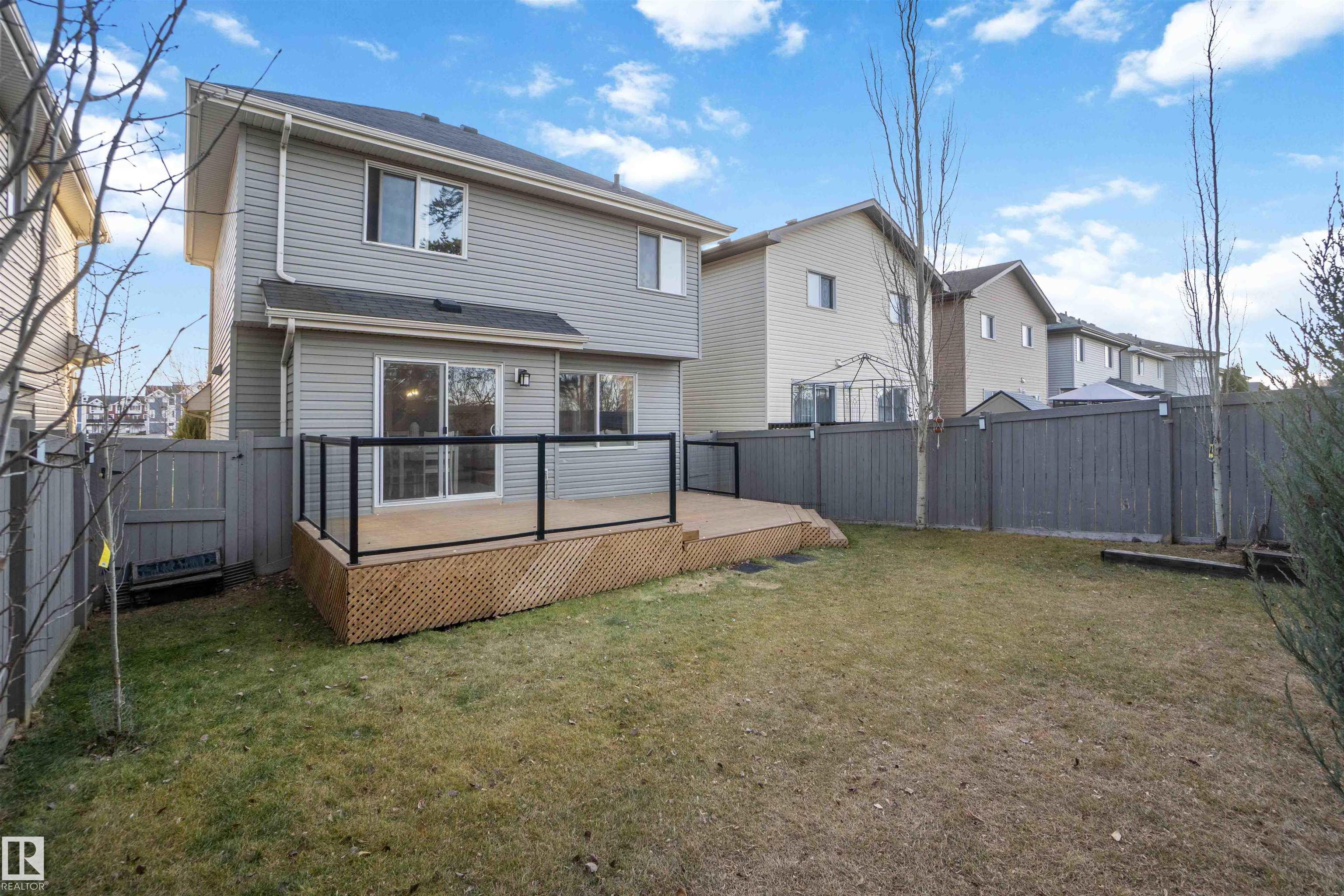 Welcome to this stunning home in the the community of Klarvatten! Step inside to a spacious living room perfect for family gatherings or relaxing evenings. The modern, updated kitchen features newer appliances and sleek finishes. Upstairs, you'll find a bonus room ideal for a home office, play area, or cozy lounge, along with three generous bedrooms, including a large primary suite. The fully finished basement adds even more living space with a bedroom, 3-piece bathroom, and plenty of room for guests or a private retreat. Enjoy the comfort of newer carpet upstairs and the efficiency of hot water on demand. Outside, you'll love the professional landscaping and brand-new 2-tier deck, perfect for entertaining or enjoying quiet mornings. The backyard backs onto a tranquil treeline, offering privacy and a beautiful natural view. Located close to all amenities, including shopping, schools, the CFB Edmonton Army Base, and with quick access to the Anthony Henday, this home offers convenience and modern living.