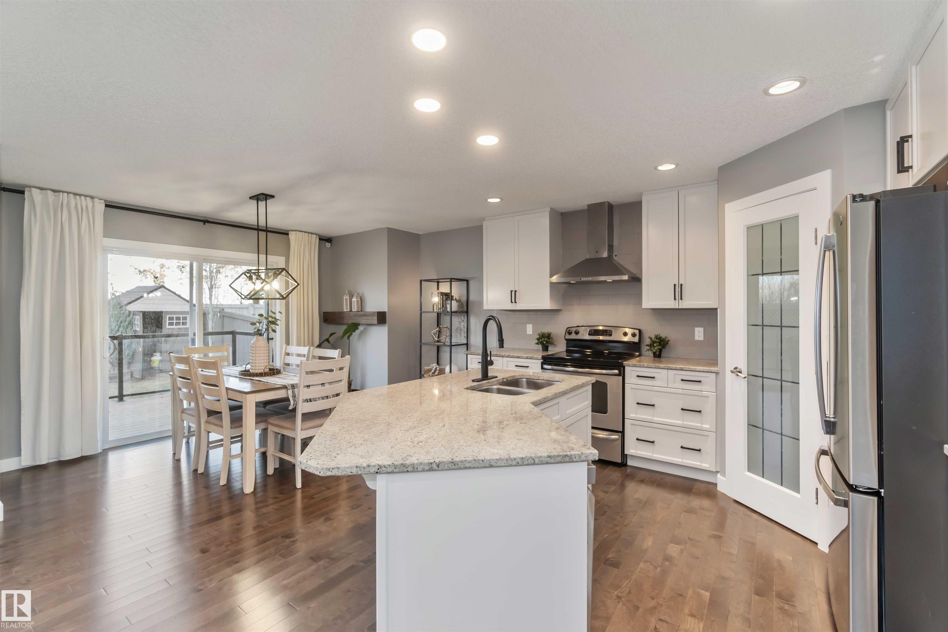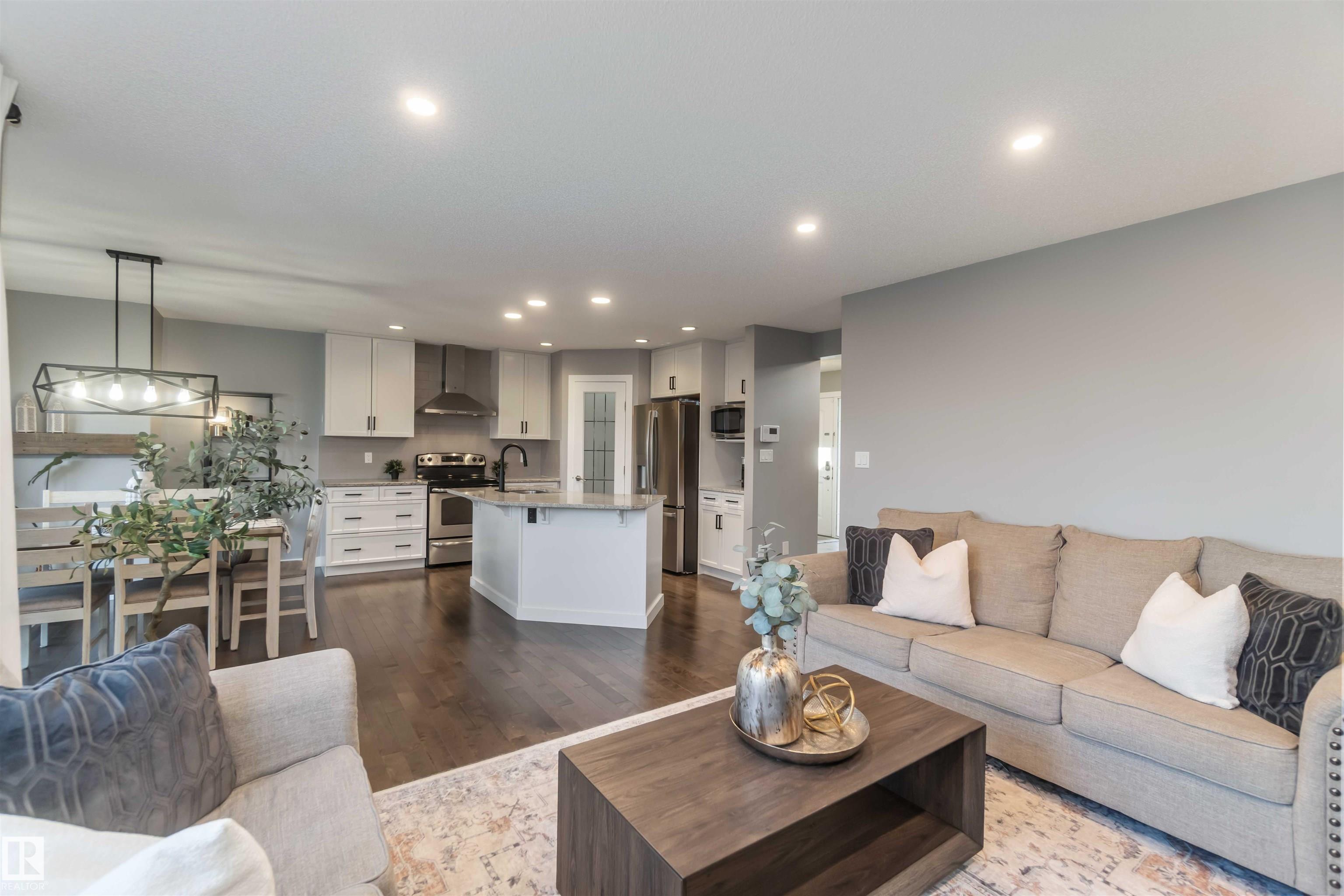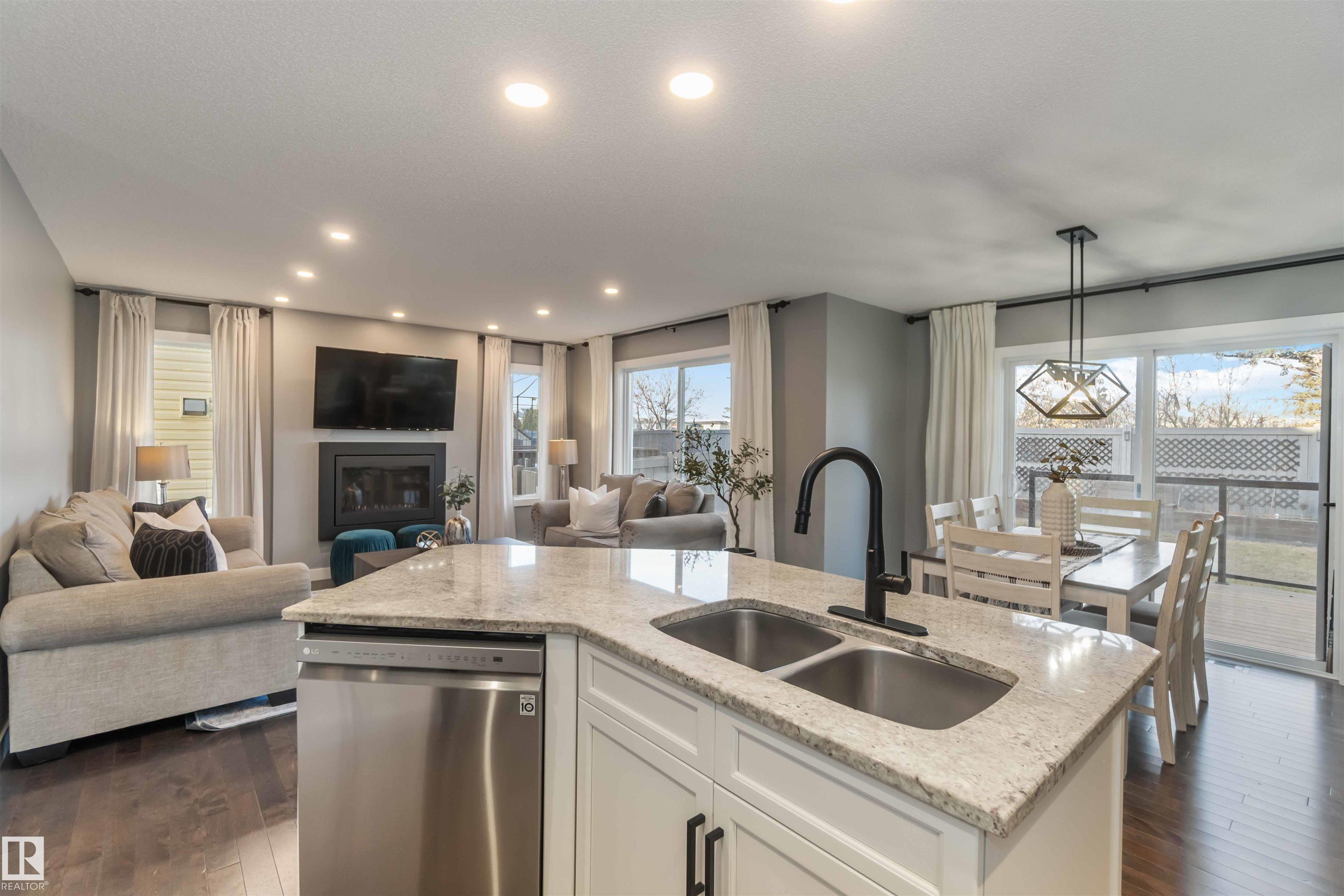 Welcome to this stunning home in the the community of Klarvatten! Step inside to a spacious living room perfect for family gatherings or relaxing evenings. The modern, updated kitchen features newer appliances and sleek finishes. Upstairs, you'll find a bonus room ideal for a home office, play area, or cozy lounge, along with three generous bedrooms, including a large primary suite. The fully finished basement adds even more living space with a bedroom, 3-piece bathroom, and plenty of room for guests or a private retreat. Enjoy the comfort of newer carpet upstairs and the efficiency of hot water on demand. Outside, you'll love the professional landscaping and brand-new 2-tier deck, perfect for entertaining or enjoying quiet mornings. The backyard backs onto a tranquil treeline, offering privacy and a beautiful natural view. Located close to all amenities, including shopping, schools, the CFB Edmonton Army Base, and with quick access to the Anthony Henday, this home offers convenience and modern living.