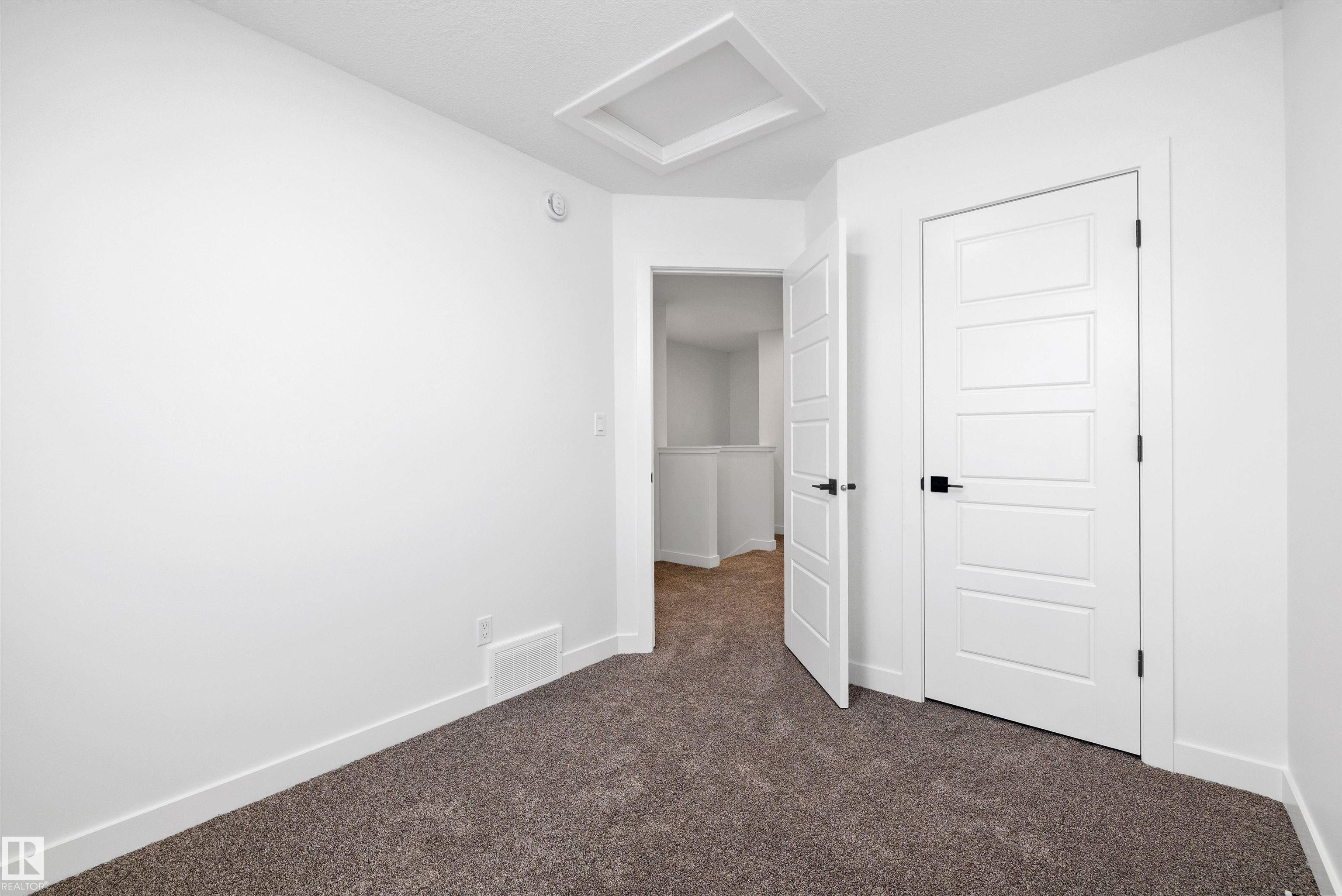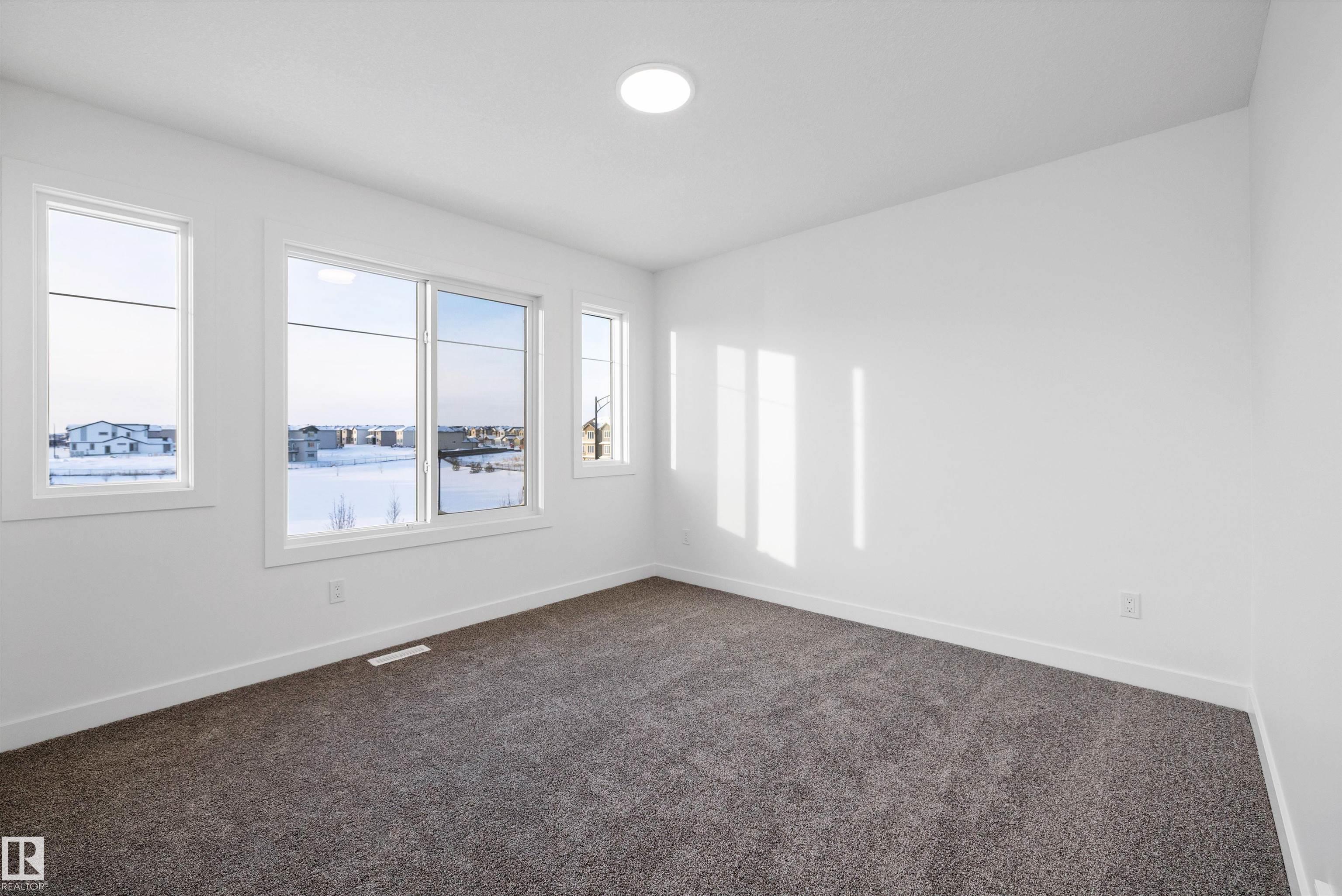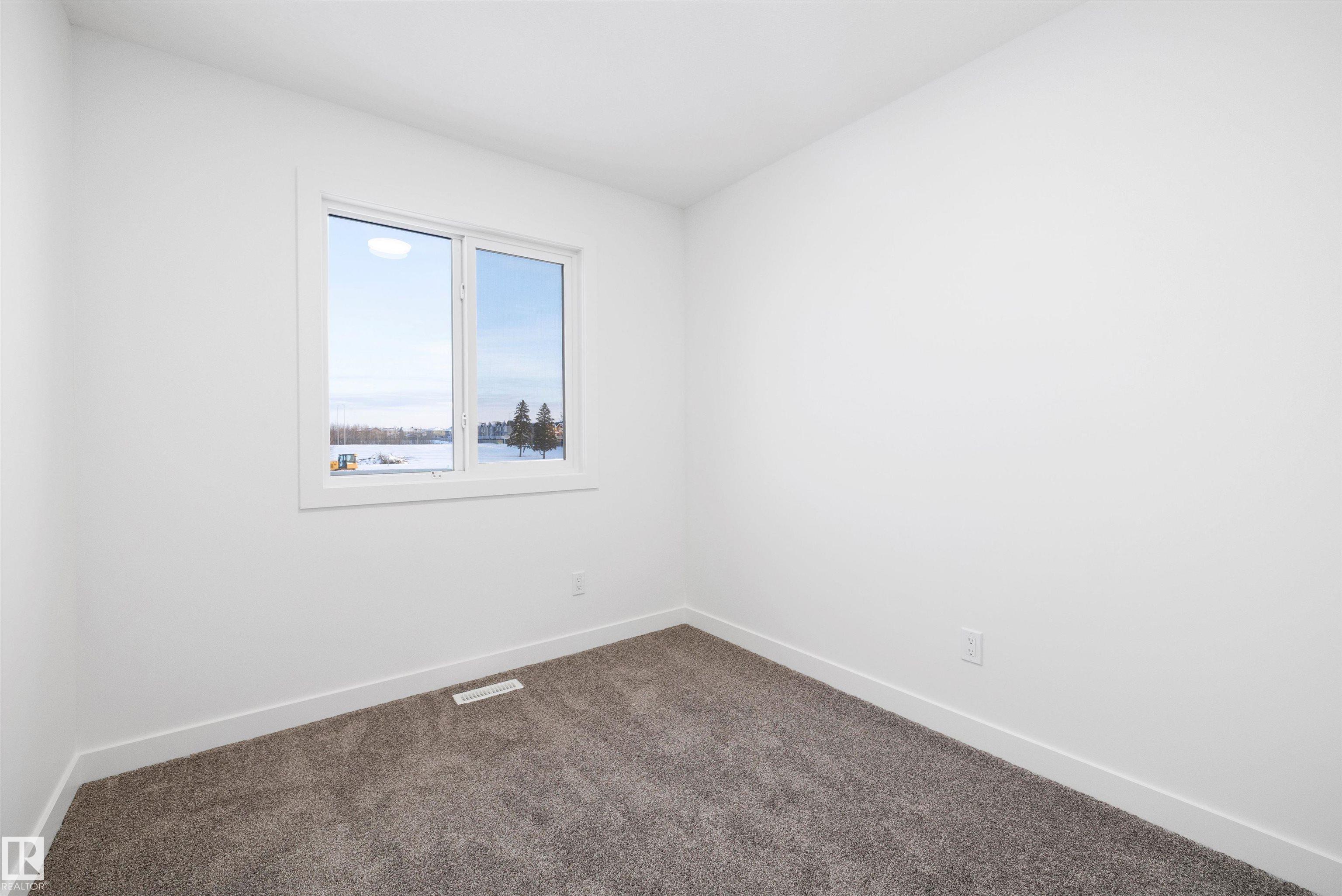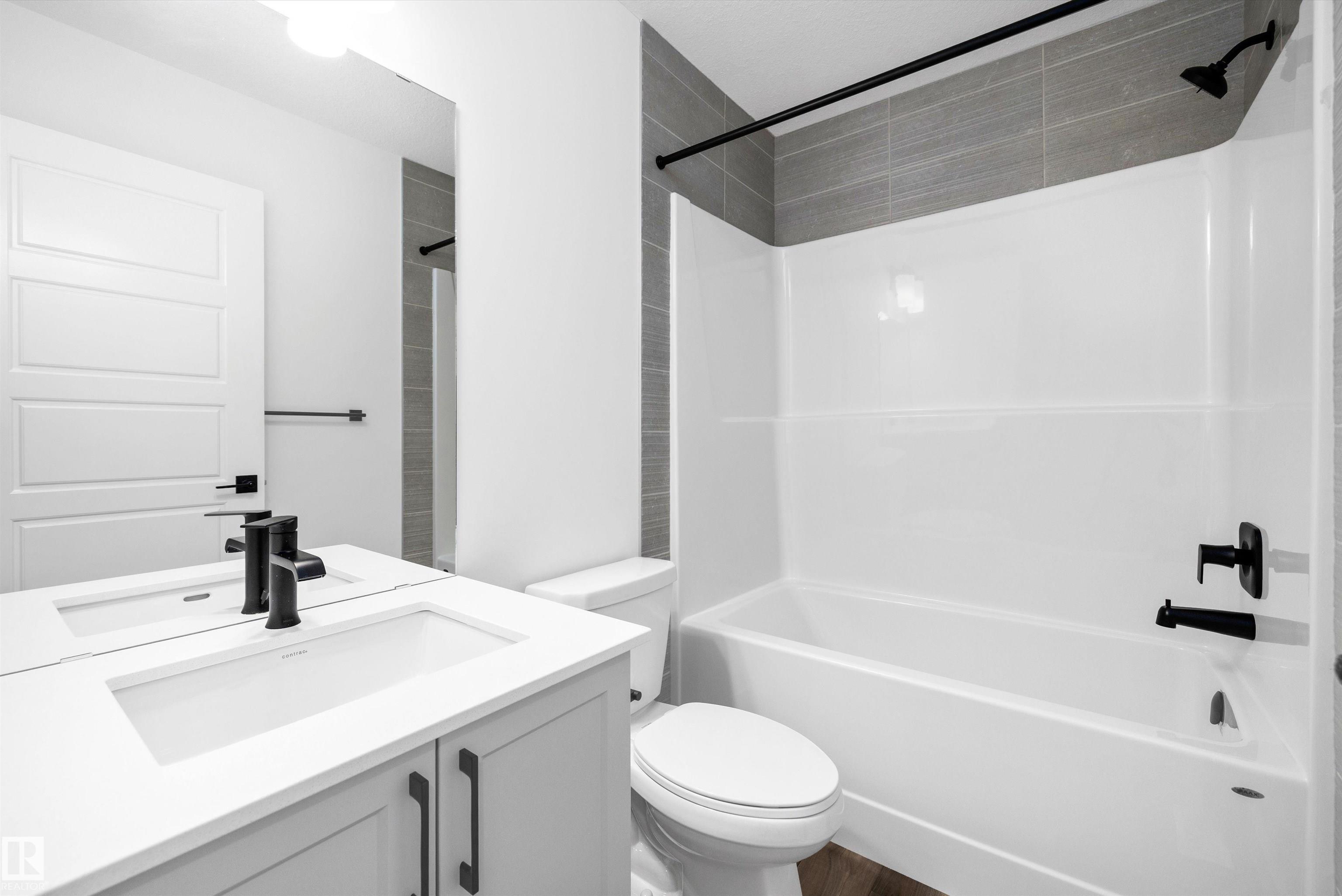 Welcome to the Stellar by Sterling Homes, a beautifully designed home that blends comfort, style, and everyday functionality. The main floor features luxury vinyl plank flooring and 9' ceilings, creating a bright and inviting atmosphere. An elegant foyer with coat closet opens to a sun-filled great room highlighted by a large front window. The centrally located kitchen offers quartz countertops throughout, a Silgranit undermount sink, island with flush eating ledge, spacious pantry, and upgraded Thermofoil cabinetry with raised doors and soft-close drawers. At the rear, the dining area overlooks the backyard, while a convenient half bath and rear entry provide access to the parking pad, with option for a detached double garage. Upstairs, enjoy an open loft, a spacious primary suite with walk-in closet and 3-piece ensuite with tub/shower combo, plus two additional bedrooms, a full bath, and laundry closet designed for stackable appliances. Black plumbing and lighting fixtures complete this home.