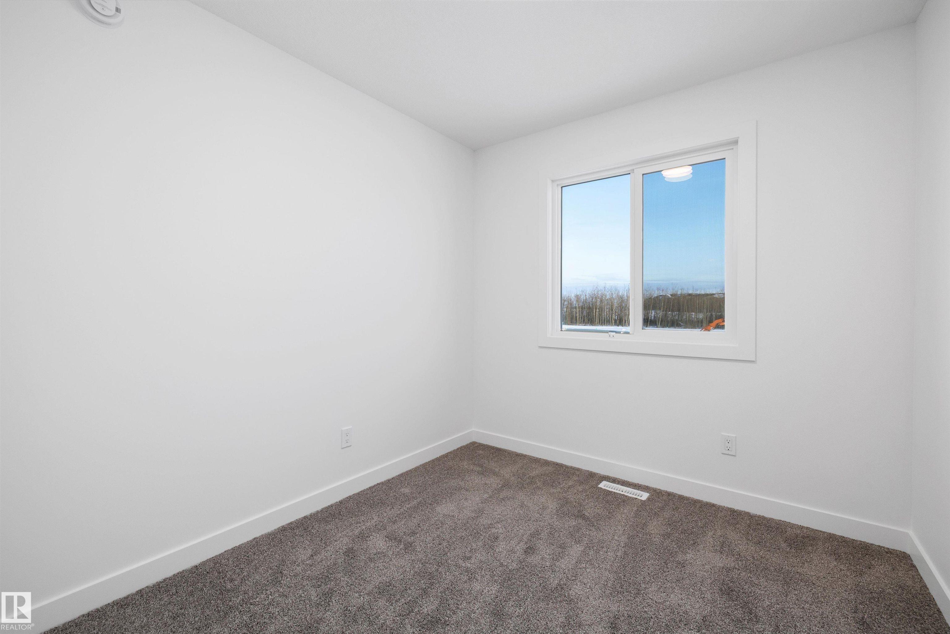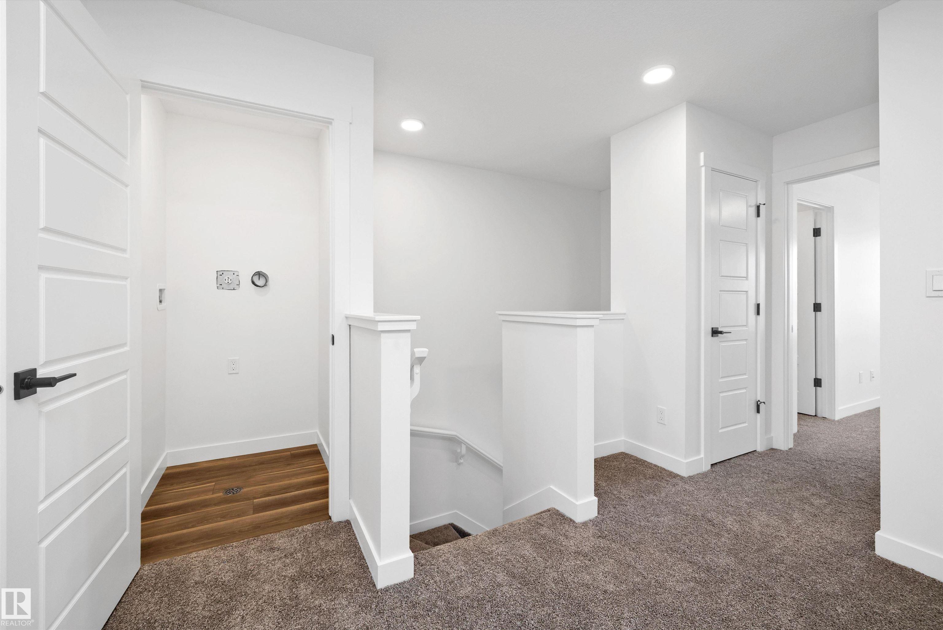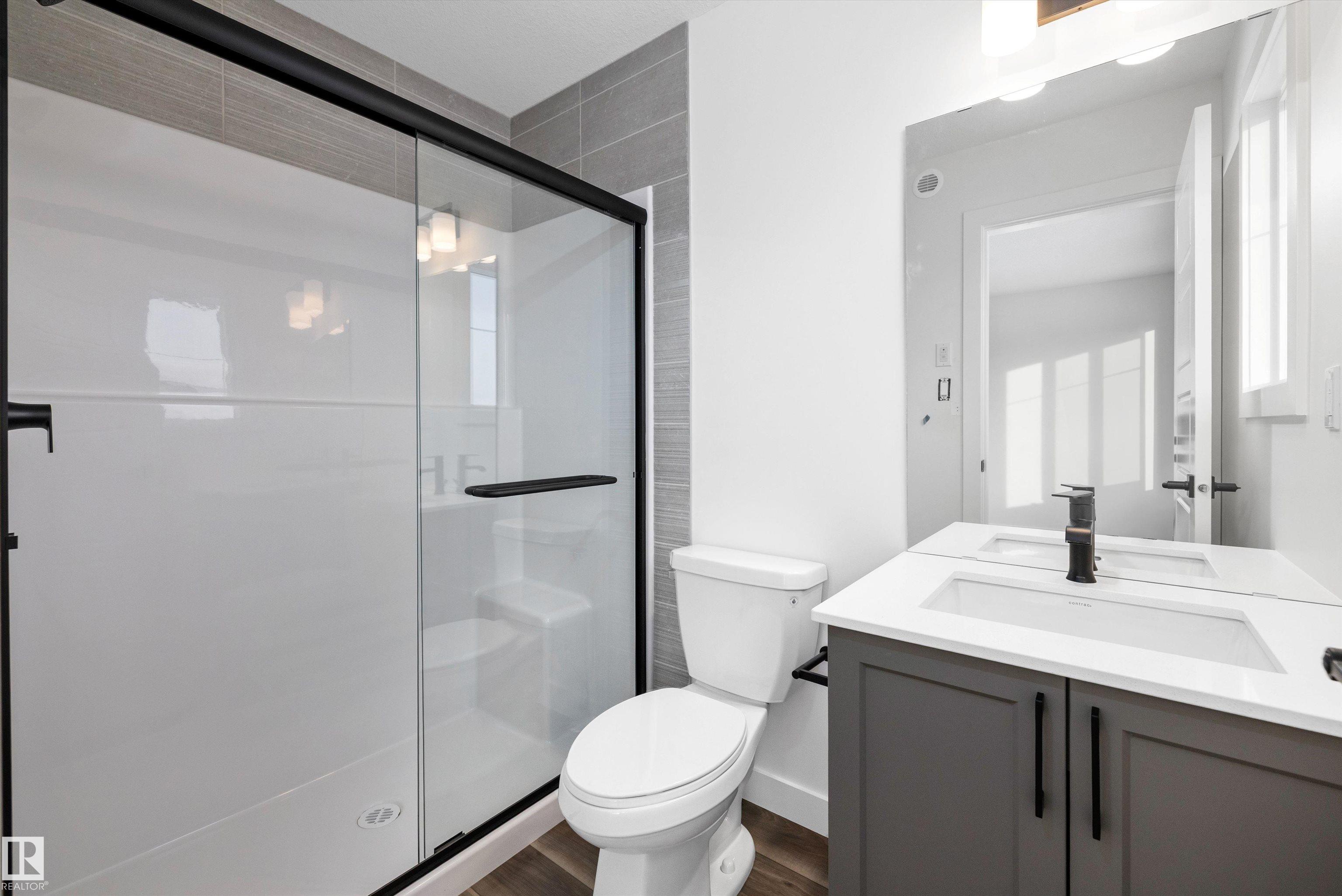 Welcome to the Stellar by Sterling Homes, a beautifully designed home that blends comfort, style, and everyday functionality. The main floor features luxury vinyl plank flooring and 9' ceilings, creating a bright and inviting atmosphere. An elegant foyer with coat closet opens to a sun-filled great room highlighted by a large front window. The centrally located kitchen offers quartz countertops throughout, a Silgranit undermount sink, island with flush eating ledge, spacious pantry, and upgraded Thermofoil cabinetry with raised doors and soft-close drawers. At the rear, the dining area overlooks the backyard, while a convenient half bath and rear entry provide access to the parking pad, with option for a detached double garage. Upstairs, enjoy an open loft, a spacious primary suite with walk-in closet and 3-piece ensuite with tub/shower combo, plus two additional bedrooms, a full bath, and laundry closet designed for stackable appliances. Black plumbing and lighting fixtures complete this home.