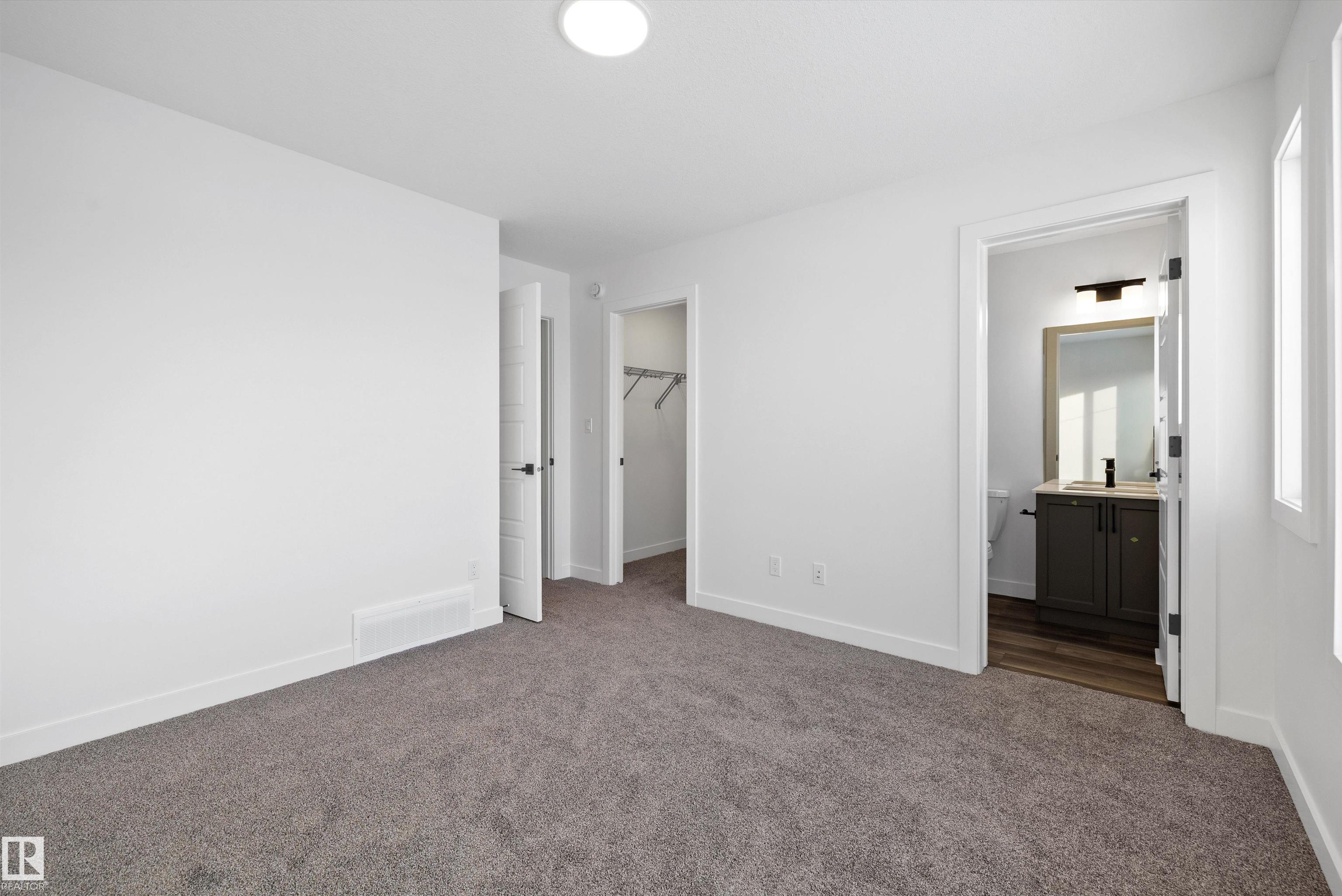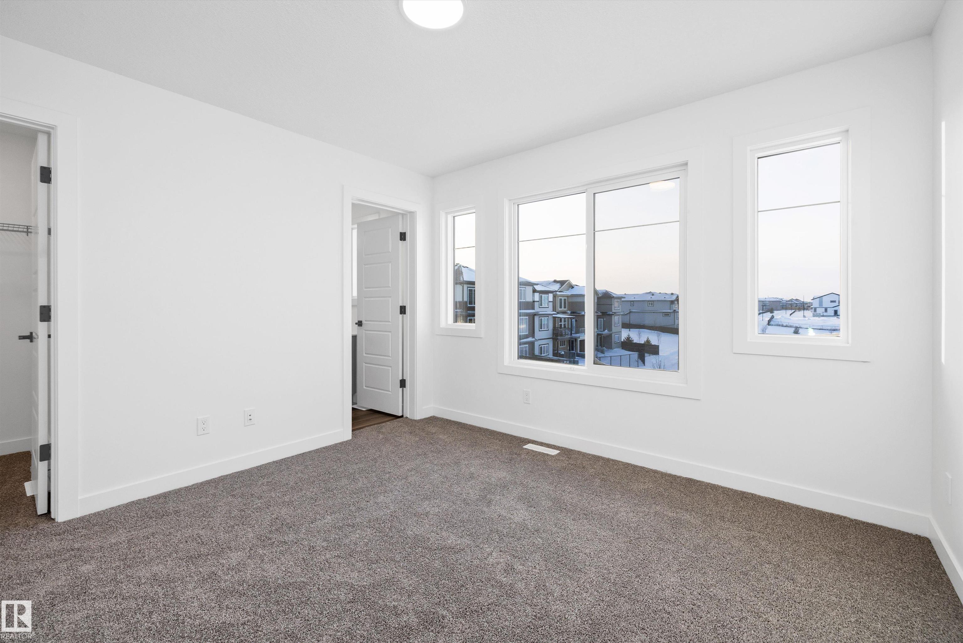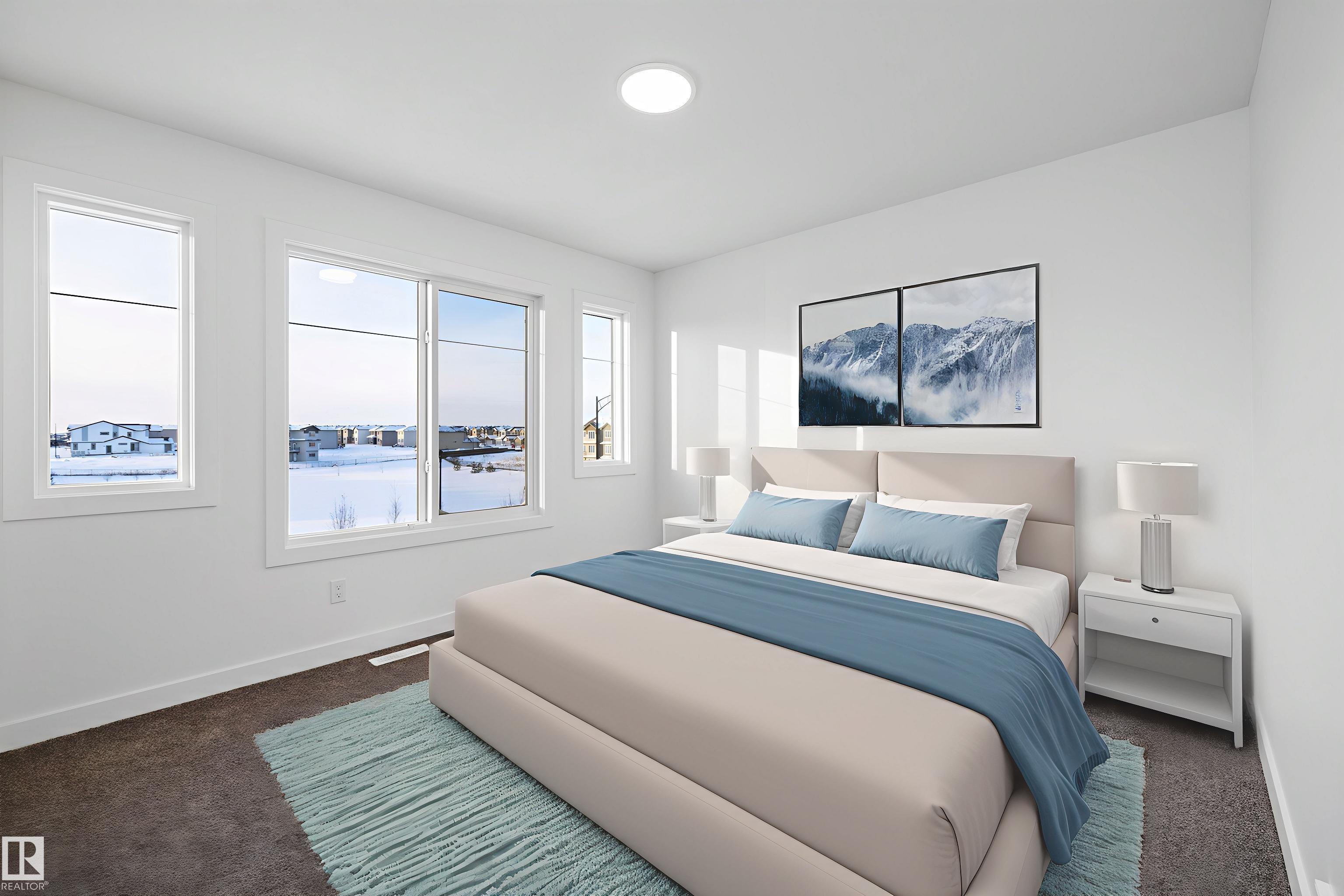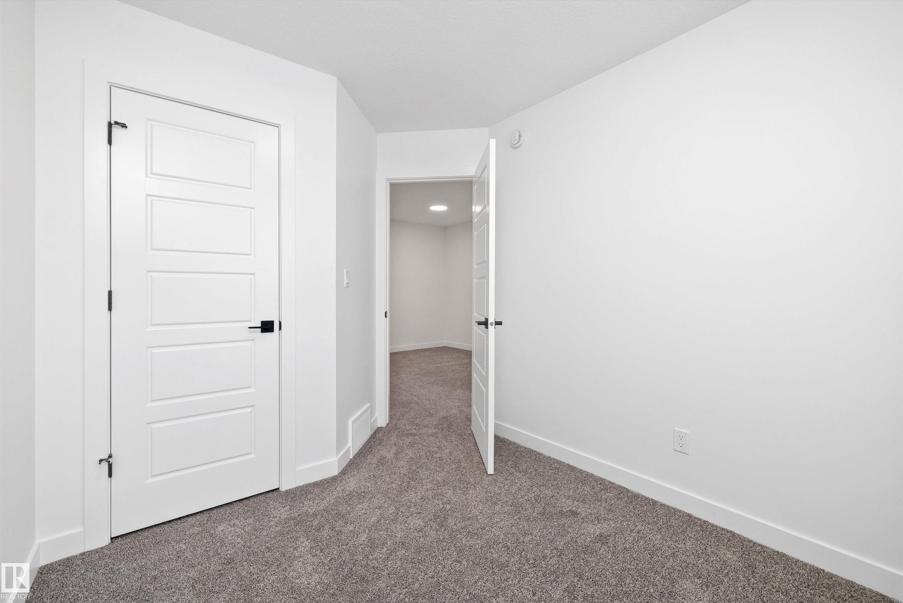 Welcome to the Stellar by Sterling Homes, a beautifully designed home that blends comfort, style, and everyday functionality. The main floor features luxury vinyl plank flooring and 9' ceilings, creating a bright and inviting atmosphere. An elegant foyer with coat closet opens to a sun-filled great room highlighted by a large front window. The centrally located kitchen offers quartz countertops throughout, a Silgranit undermount sink, island with flush eating ledge, spacious pantry, and upgraded Thermofoil cabinetry with raised doors and soft-close drawers. At the rear, the dining area overlooks the backyard, while a convenient half bath and rear entry provide access to the parking pad, with option for a detached double garage. Upstairs, enjoy an open loft, a spacious primary suite with walk-in closet and 3-piece ensuite with tub/shower combo, plus two additional bedrooms, a full bath, and laundry closet designed for stackable appliances. Black plumbing and lighting fixtures complete this home.