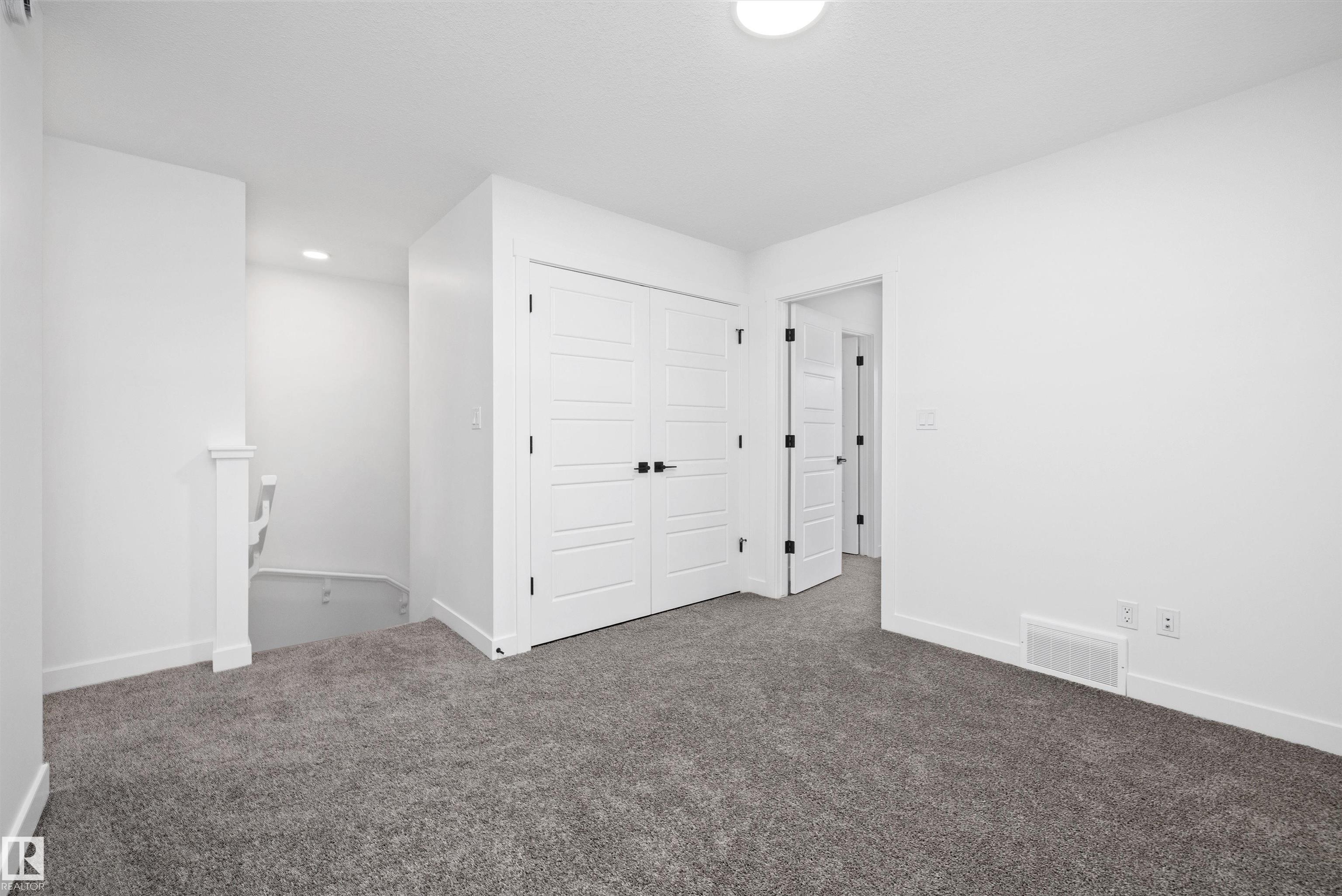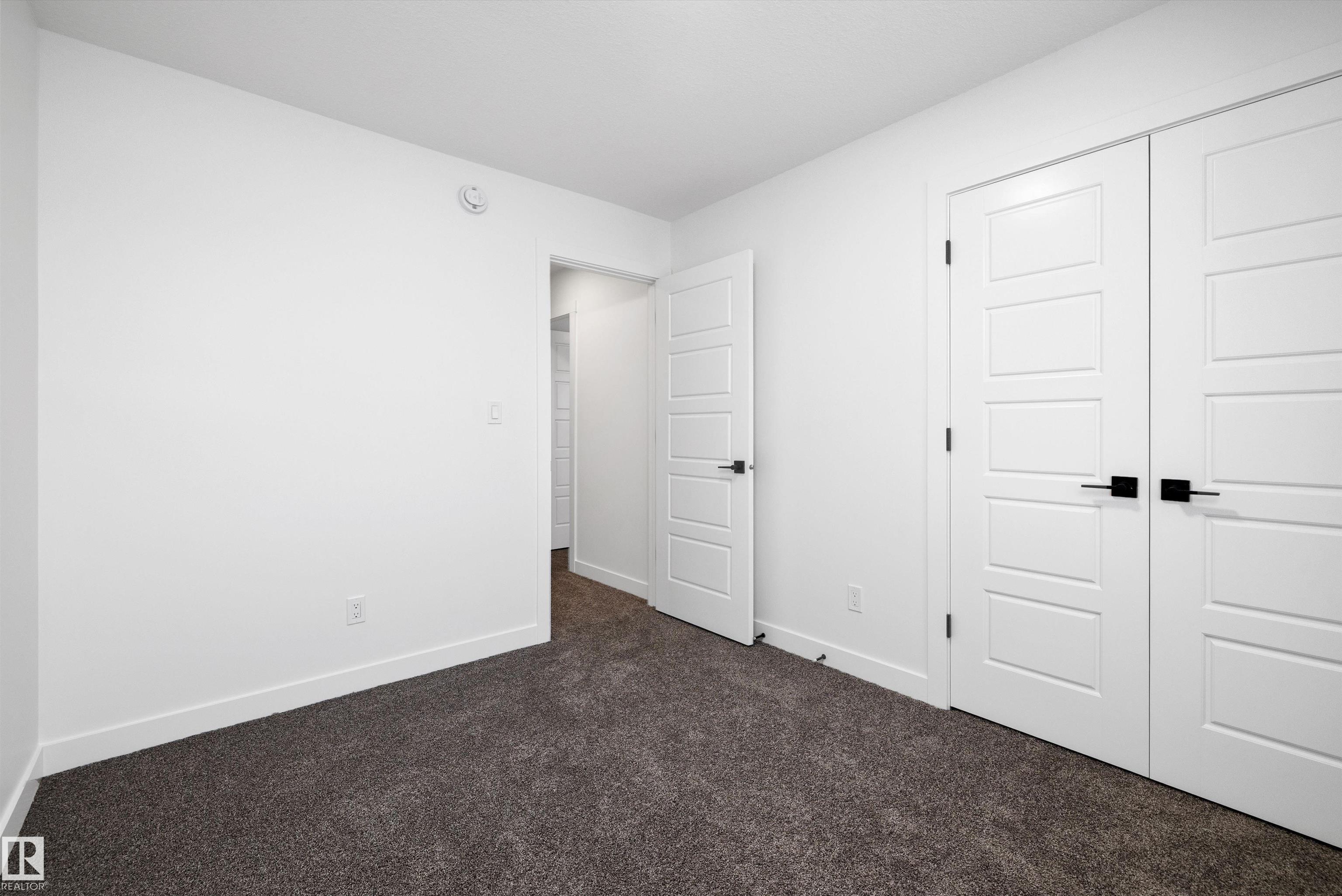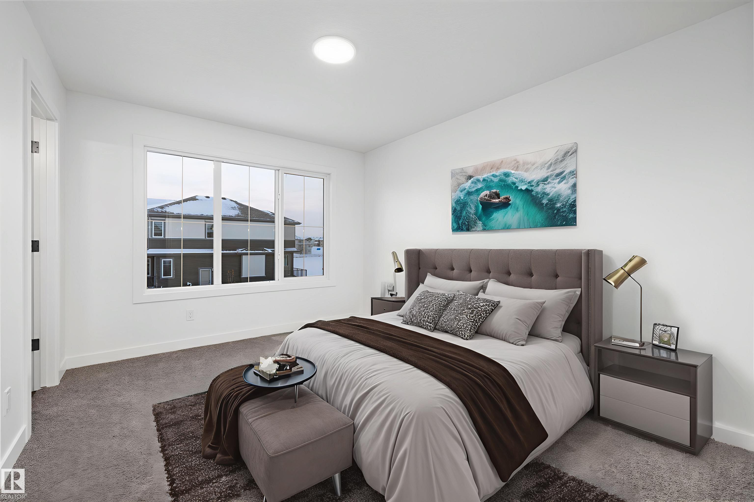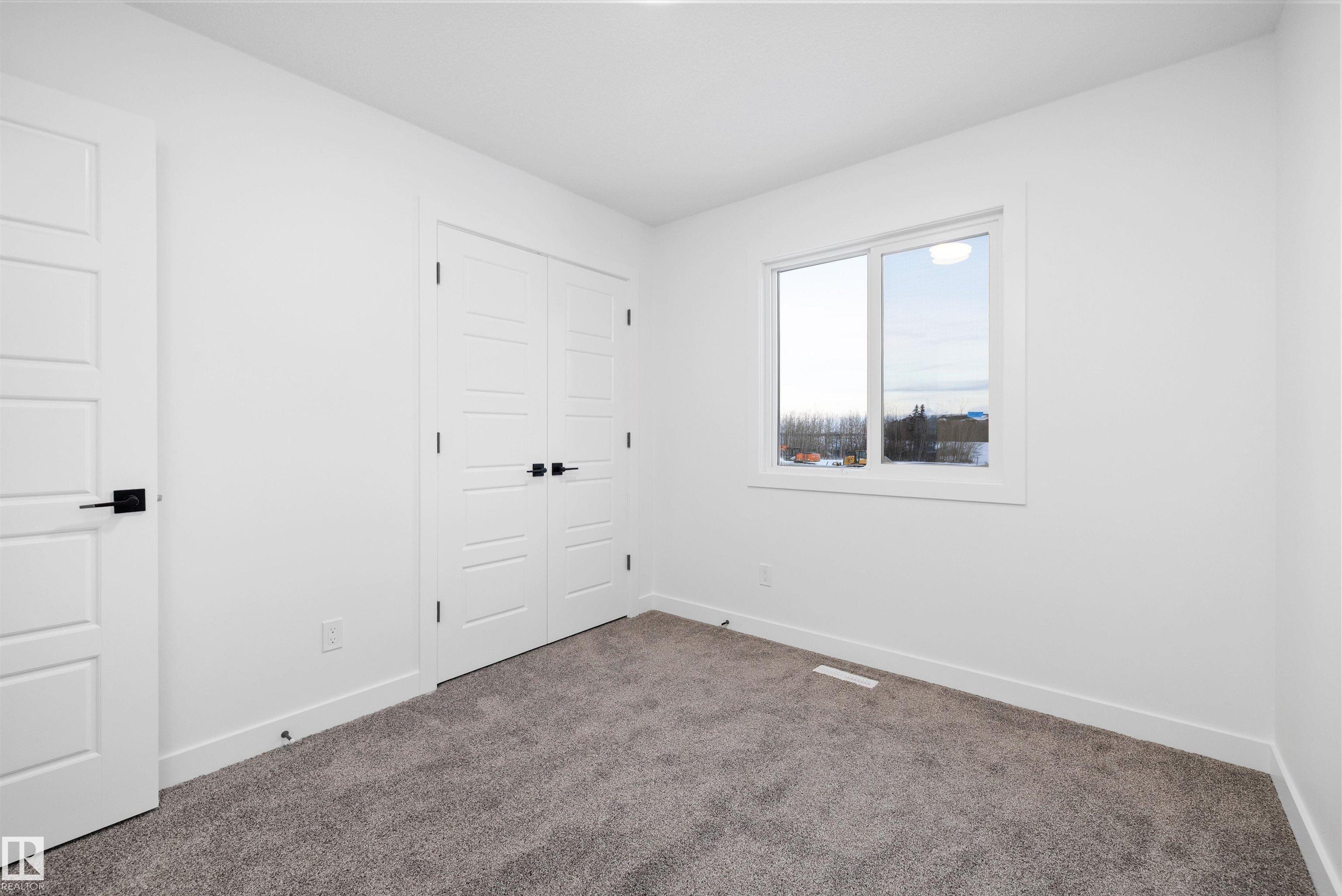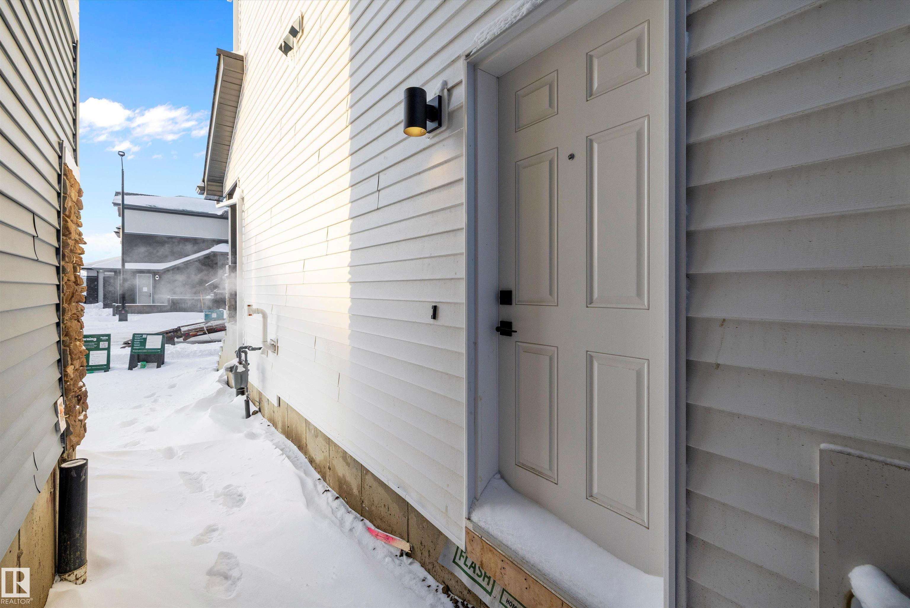 Welcome to the Sylvan by Sterling Homes, a smartly designed home with modern finishes and flexible living space. The main floor offers luxury vinyl plank flooring and 9' ceilings, starting with a welcoming foyer and coat closet that opens into a bright great room. The kitchen features quartz countertops, an island with flush eating ledge, Silgranit undermount sink, pendant lighting, over-the-range microwave, soft-close upgraded cabinetry, and a pantry near the stairs. At the rear, a sunlit nook overlooks the backyard and sits beside a main-floor bedroom and 3-piece bath with stand-up shower, plus a garden door for outdoor access. Upstairs includes a primary suite with walk-in closet and 3-piece ensuite with tub/shower combo, two additional bedrooms, a full bath, and a laundry closet. 9' ceilings on main and basement levels, a separate side entrance, black plumbing and lighting fixtures, basement rough-in, and a parking pad with option for a detached double garage complete this home.