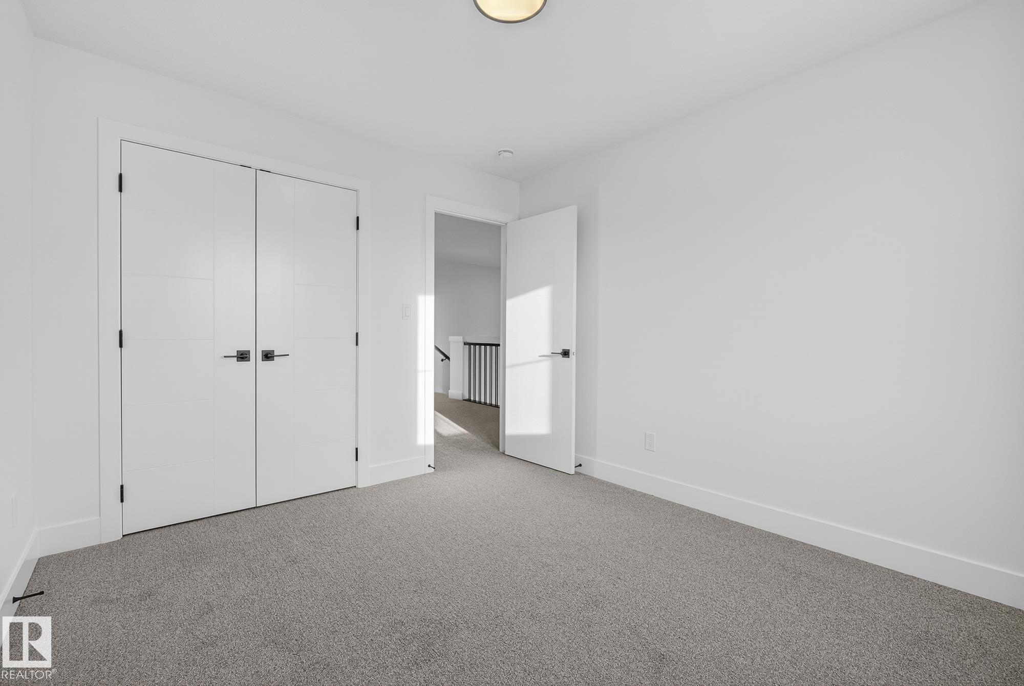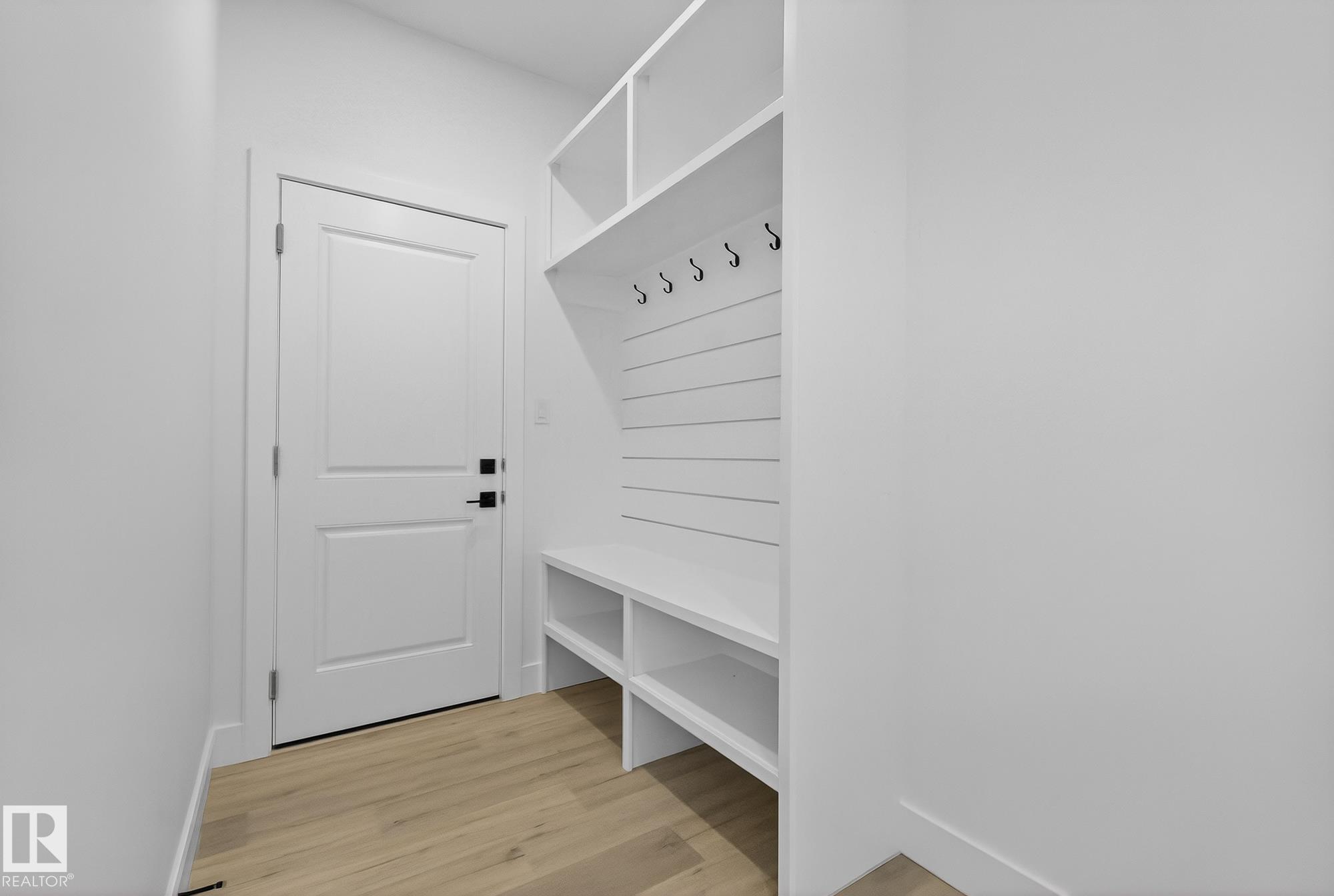 This beautiful almost 2200sf home backs onto a scenic walking trail and will be move-in ready for the New Year. The main floor offers a bedroom with a full bathroom, a functional mudroom, and an inviting great room featuring a custom feature wall and electric fireplace. The chef-inspired kitchen is finished with ceiling-height cabinetry and a modern layout designed for both everyday living. Upstairs, you'll find 4 spacious bedrooms, a versatile bonus room, and a convenient laundry room with a sink. The elegant primary suite elevates the space with a tray ceiling, a walk-in closet, and a luxurious 5-piece ensuite. This home also includes a separate side entrance, an unfinished basement ready for your future development, custom MDF shelving, a tankless gas hot water system, garage floor drain, BBQ gas line, and many more upgrades throughout. Perfectly located near 10 schools, public transit, shopping centers, and the Anthony Henday, this home offers unmatched convenience and comfort.