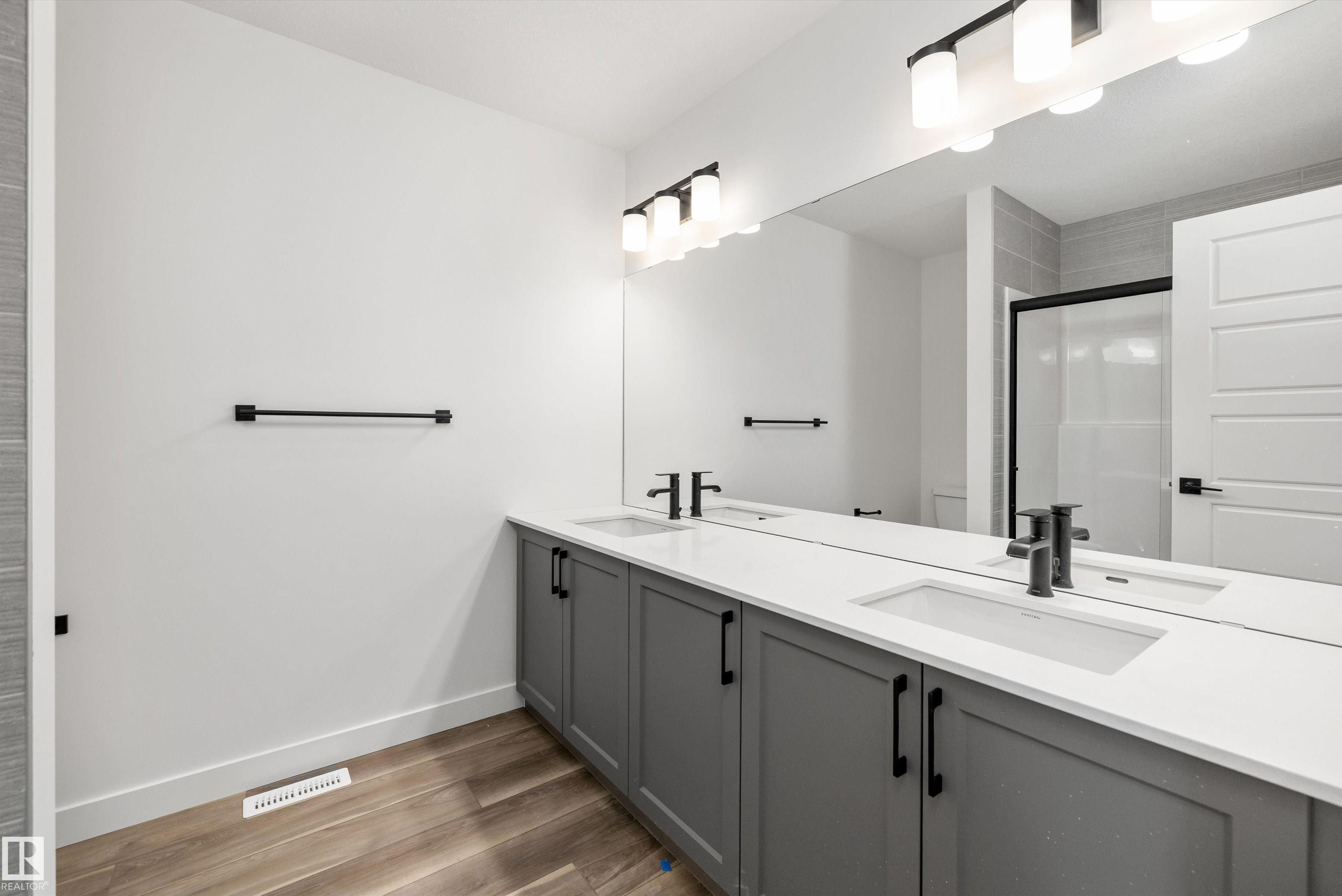 The Spirit is a prime choice for first-time buyers and investors, offering a smart layout on a spacious pie-shaped lot. This home features 9' ceilings on the main and basement levels, complemented by Luxury Vinyl Plank flooring. The open-concept main floor boasts a sun-drenched great room with large front windows, flowing into a rear L-shaped kitchen. Culinary enthusiasts will appreciate the Quartz countertops, flush-ledge island, and upgraded soft-close cabinetry overlooking the expansive backyard. A private rear entry provides direct access to the lower level, while a walk-through mudroom adds daily convenience. Upstairs, the layout includes a central bonus room and a primary suite with double sinks and a glass-door shower. Two additional bedrooms, a laundry closet, and matte black fixtures throughout complete this stylish residence. With a rear parking pad and an option for a detached double garage, this home perfectly balances flexibility and modern comfort.