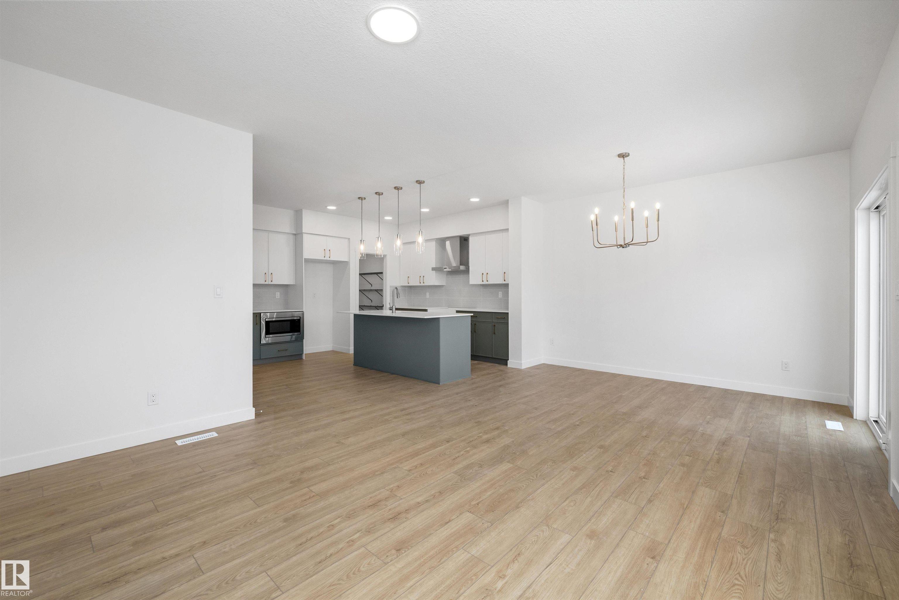 This front-attached home by Sterling Homes in College Woods at Lakeview offers modern comfort in a serene, nature-bordered North Edmonton neighborhood. The main floor features 9' ceilings, triple-pane windows, and a gourmet kitchen equipped with quartz countertops, ceiling-height cabinetry, and a walk-through pantry connected to the mudroom. An open-concept great room with an electric fireplace and oversized windows flows seamlessly into the backyard through sliding patio doors. Upstairs, the primary suite includes a large walk-in closet and a 4-piece ensuite with double sinks, complemented by a central bonus room and convenient upper-floor laundry with a sink. Two additional bedrooms and a full bath ensure a highly functional layout for families. The property is finished with luxury vinyl plank flooring and includes a separate side entrance, a double attached garage with a floor drain, and basement rough-ins ready for future development.