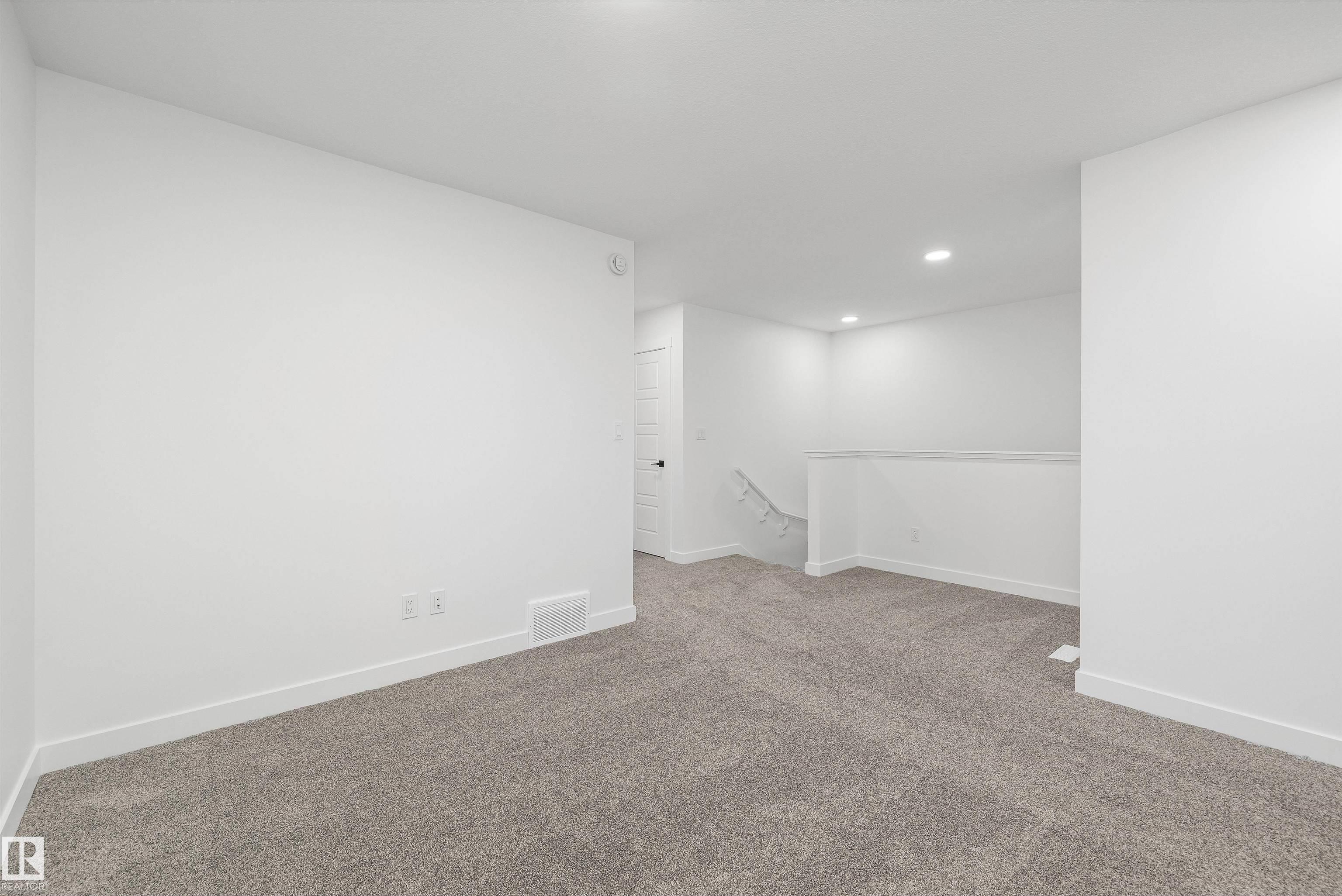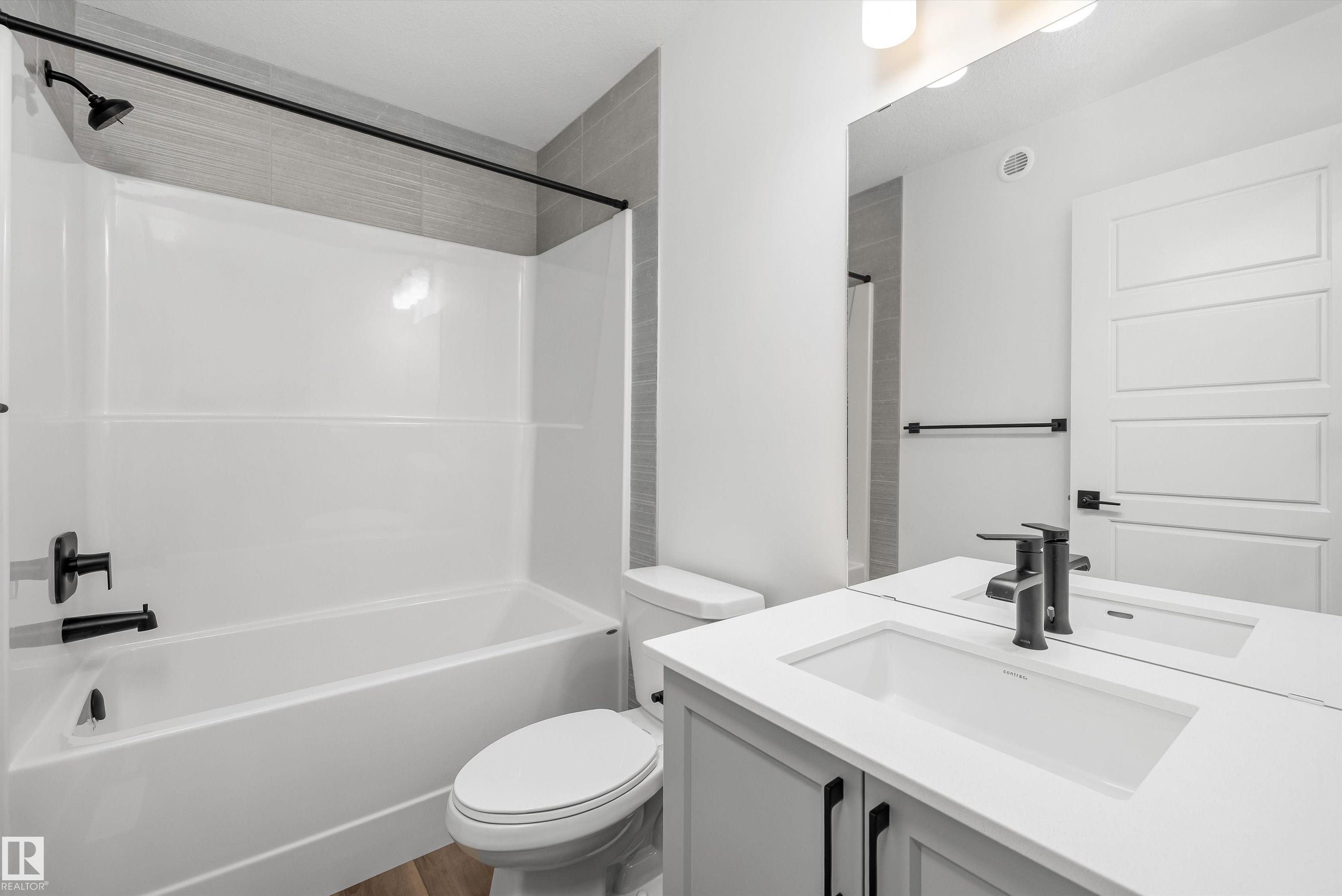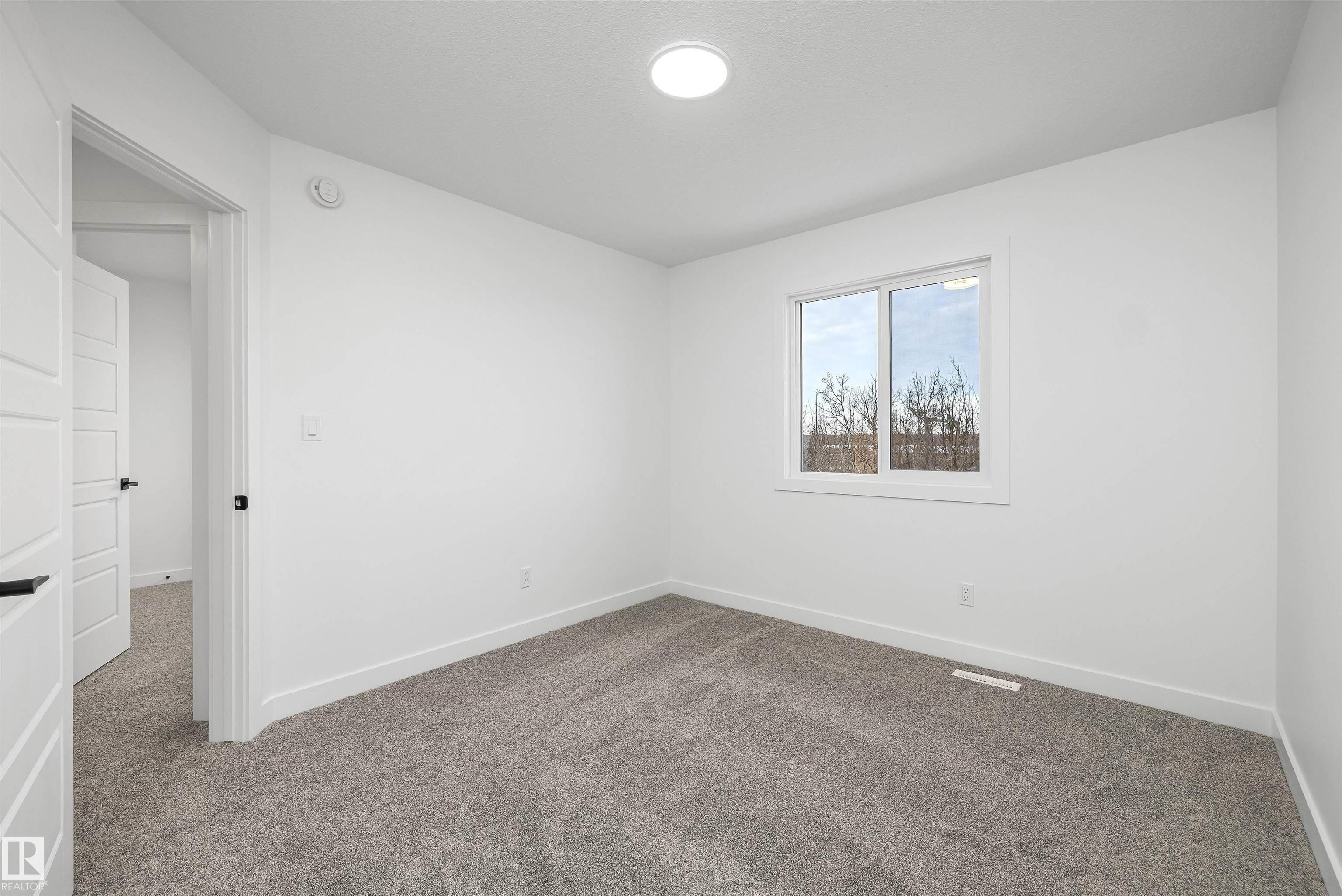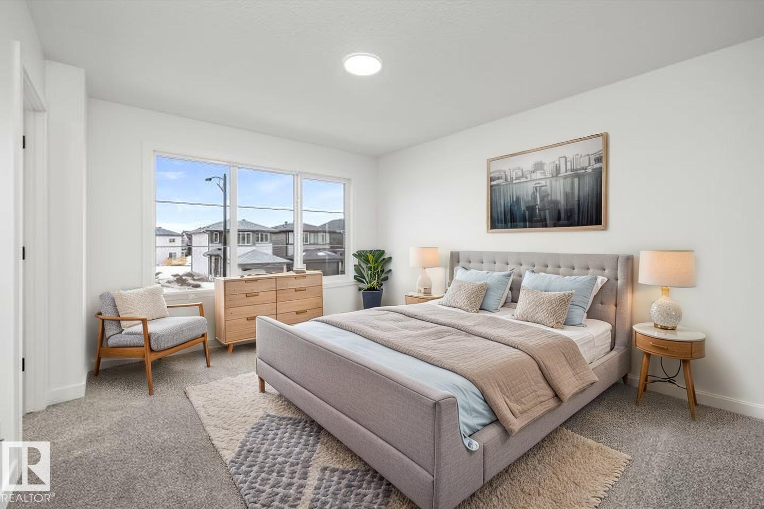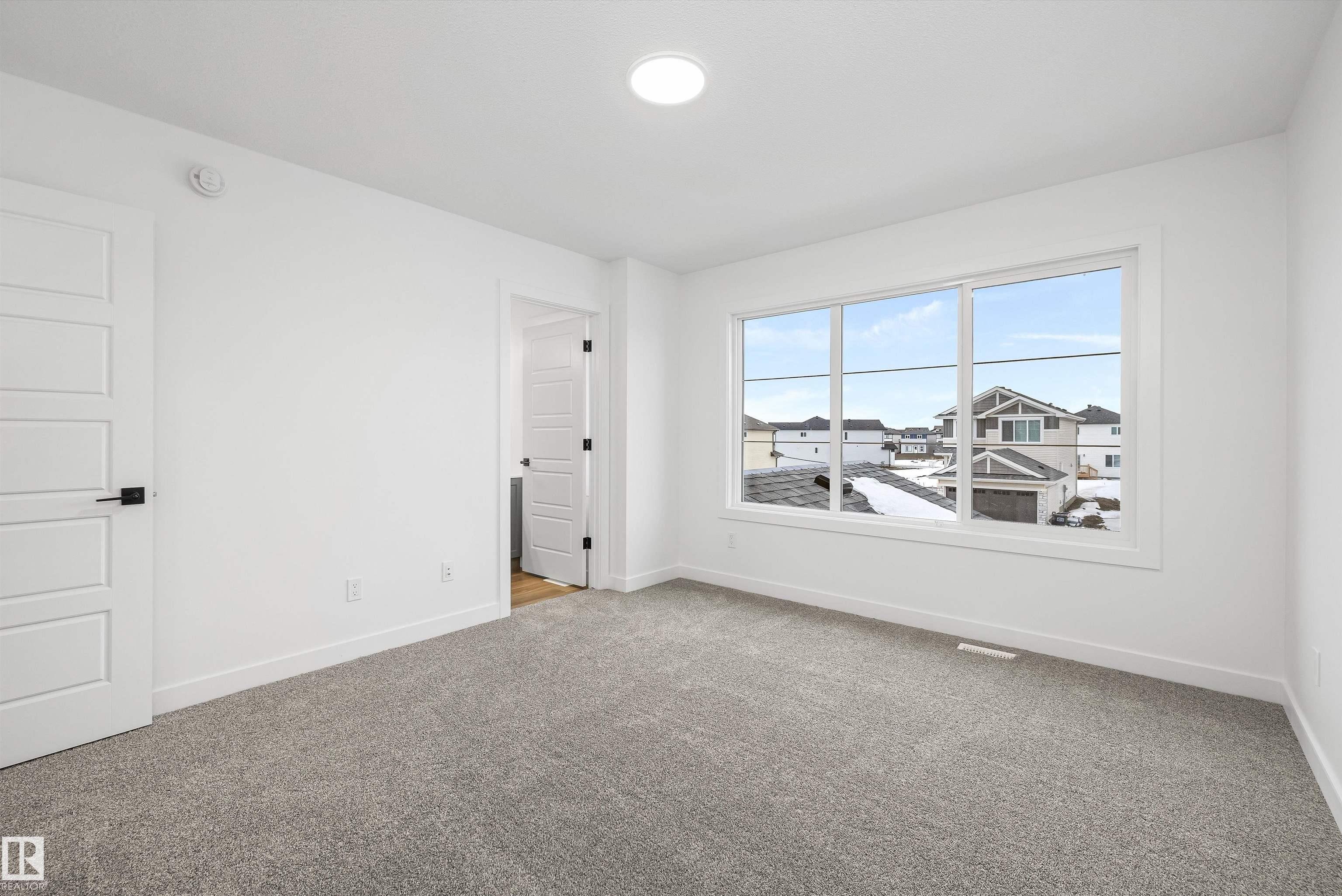 Built by Sterling Homes, this beautifully finished front-attached home in College Woods at Lakeview offers bright, refined living surrounded by trees, trails, and peaceful green space. Triple pane windows and 9' ceilings create an airy main floor where a welcoming foyer leads past a half bath into a stylish kitchen featuring quartz countertops, a large island with seating, ceiling-height cabinetry, chimney hood fan, built-in microwave, and full-height tile backsplash. A walk-through pantry connects to the mudroom and garage for everyday ease. The great room centers on an electric fireplace, while patio doors open the dining nook to the backyard. Upstairs, the spacious primary suite includes a walk-in closet and a 4-piece ensuite with double sinks and glass shower. A bonus room, two additional bedrooms, full bath, and laundry with sink complete the layout. Luxury vinyl plank flooring, side entrance, upgraded railings, double attached garage with drain, and basement rough-ins add lasting value.