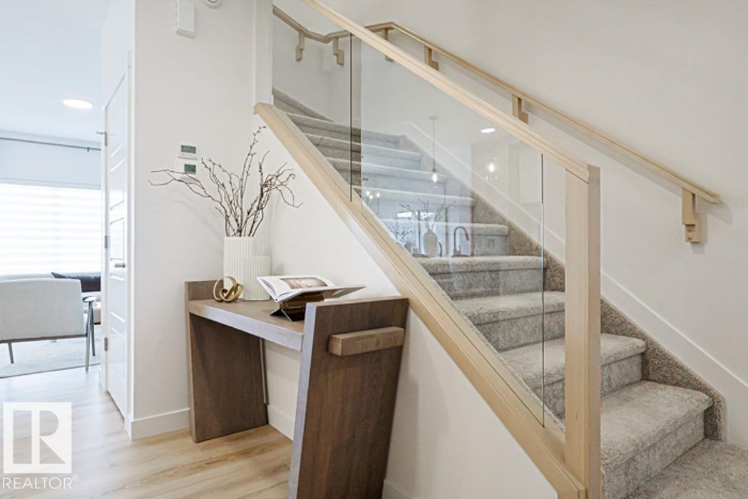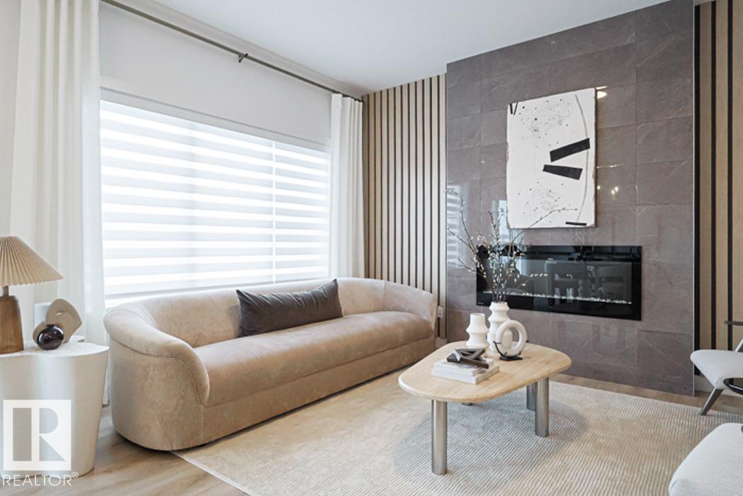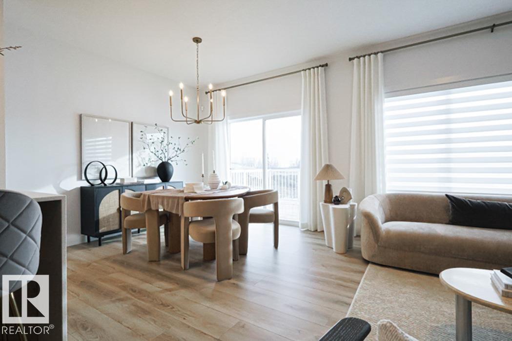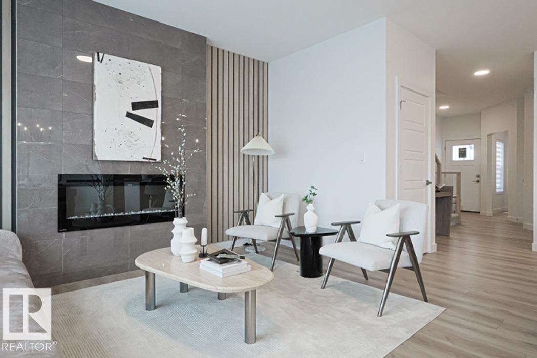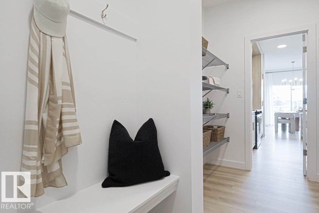 Built by Sterling Homes, this bright home features a double attached garage with floor drain, side entrance, 9-ft ceilings on the main and basement levels, and luxury vinyl plank flooring on the main level. The foyer opens to a front sitting room (ideal flex space), plus a main-floor bedroom and full 3-pc bath with stand-up shower--perfect for guests or a home office. A mudroom off the garage with open closet connects to the kitchen through a walkthrough pantry for easy unloading and extra storage. The open kitchen, great room, and nook feature quartz countertops, island with flush eating ledge, Silgranit sink, built-in microwave, chimney hood fan, full-height backsplash, and soft-close cabinetry. The great room offers an electric fireplace, 17-ft open-to-above ceiling, large windows, and garden door to the backyard. Upstairs includes a primary suite with 5-pc ensuite and walk-in closet, bonus room, laundry, full bath with double sinks, and three additional bedrooms with walk-in closets.