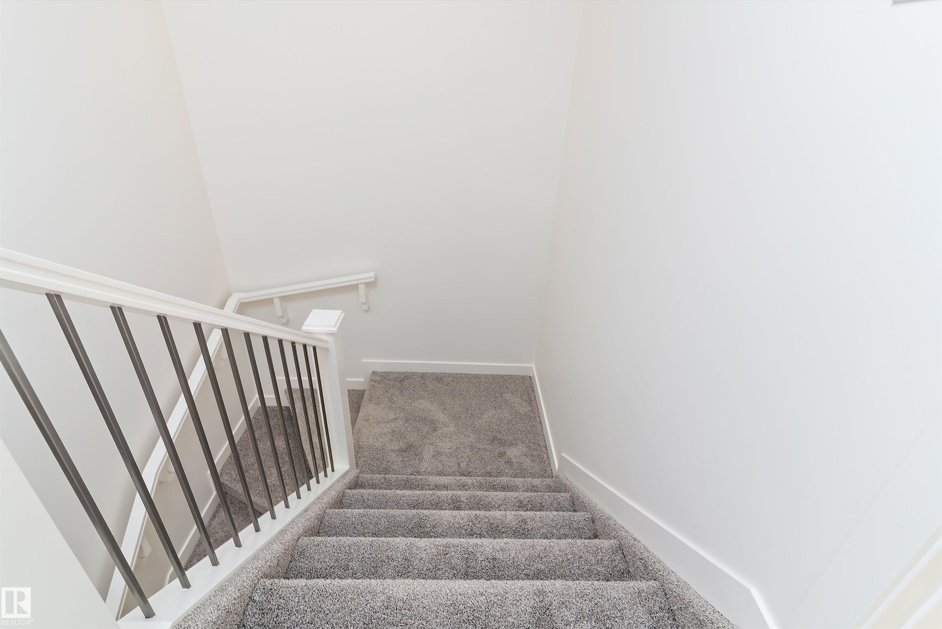 Built by Sterling Homes, this bright, functional home offers 9-ft ceilings on main & bsmt, luxury vinyl plank on main, side entrance for added flexibility, & dbl attched garage w/ floor drain. Spacious foyer w/ coat closet & garage access opens to open-concept nook, great rm, & kitchen, w/ lg rear windows that fill the space w/ natural light. Kitchen offers clear views to the backyard & is ideal for entertaining w/ quartz ctrtops, island w/ flush eating ledge, pendant lights, Silgranit undermount sink, built-in microwave, chimney-style hood fan, full-ht backsplash, soft-close cabinets, & corner pantry for extra storage. Great rm includes electric FP & garden door to backyard. 1/2 bath completes main. Upstairs: primary retreat w/ walk-in closet (w/ window) & 4-pcs ensuite w/ dbl sinks & glass walk-in shower. Central bonus rm (great for play rm/media), upper laundry, 2 add'l beds, & 3-pcs bath round out the level. Brushed nickel fixtures, upgraded railings, & bsmt rough-ins incl.