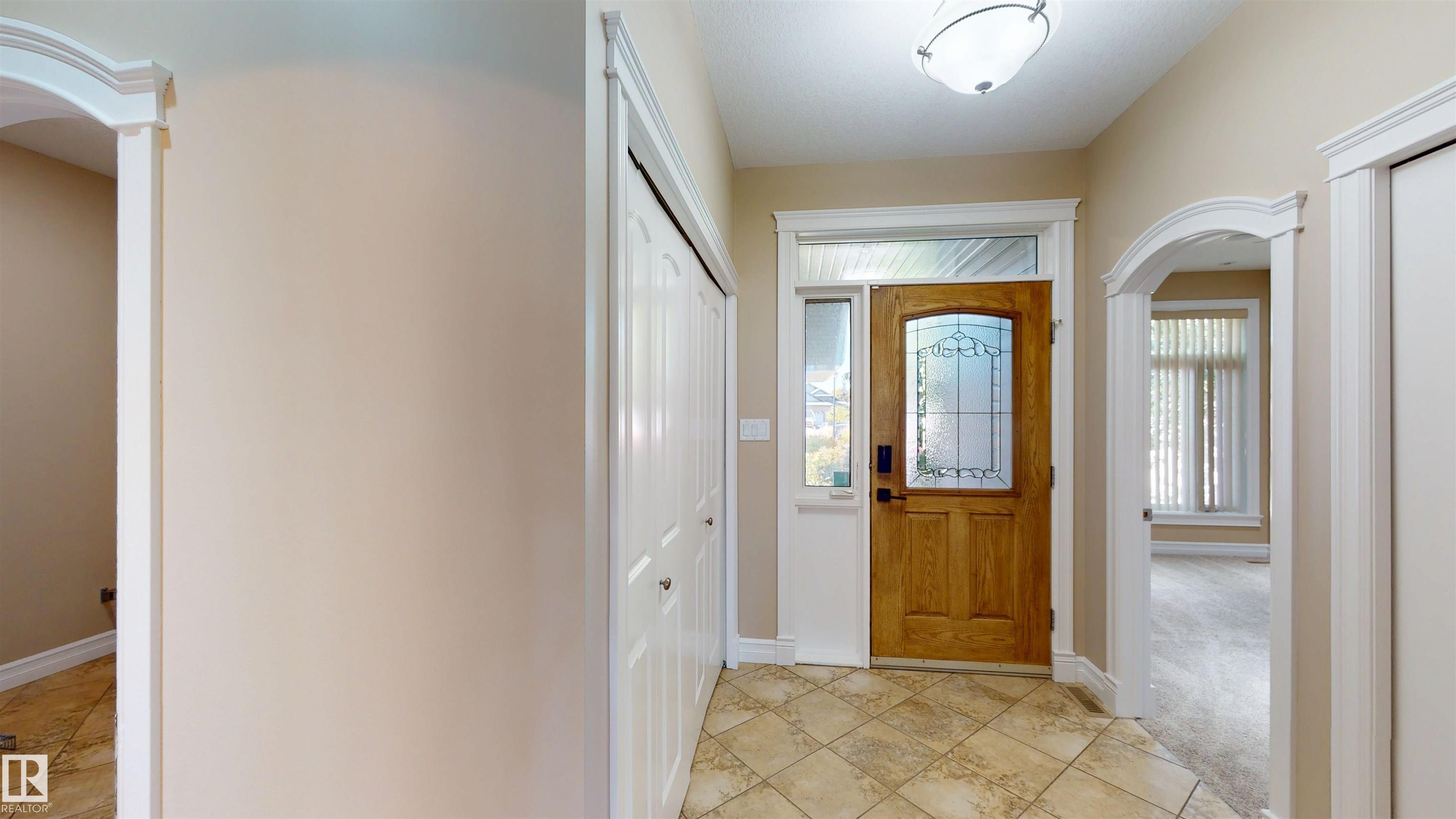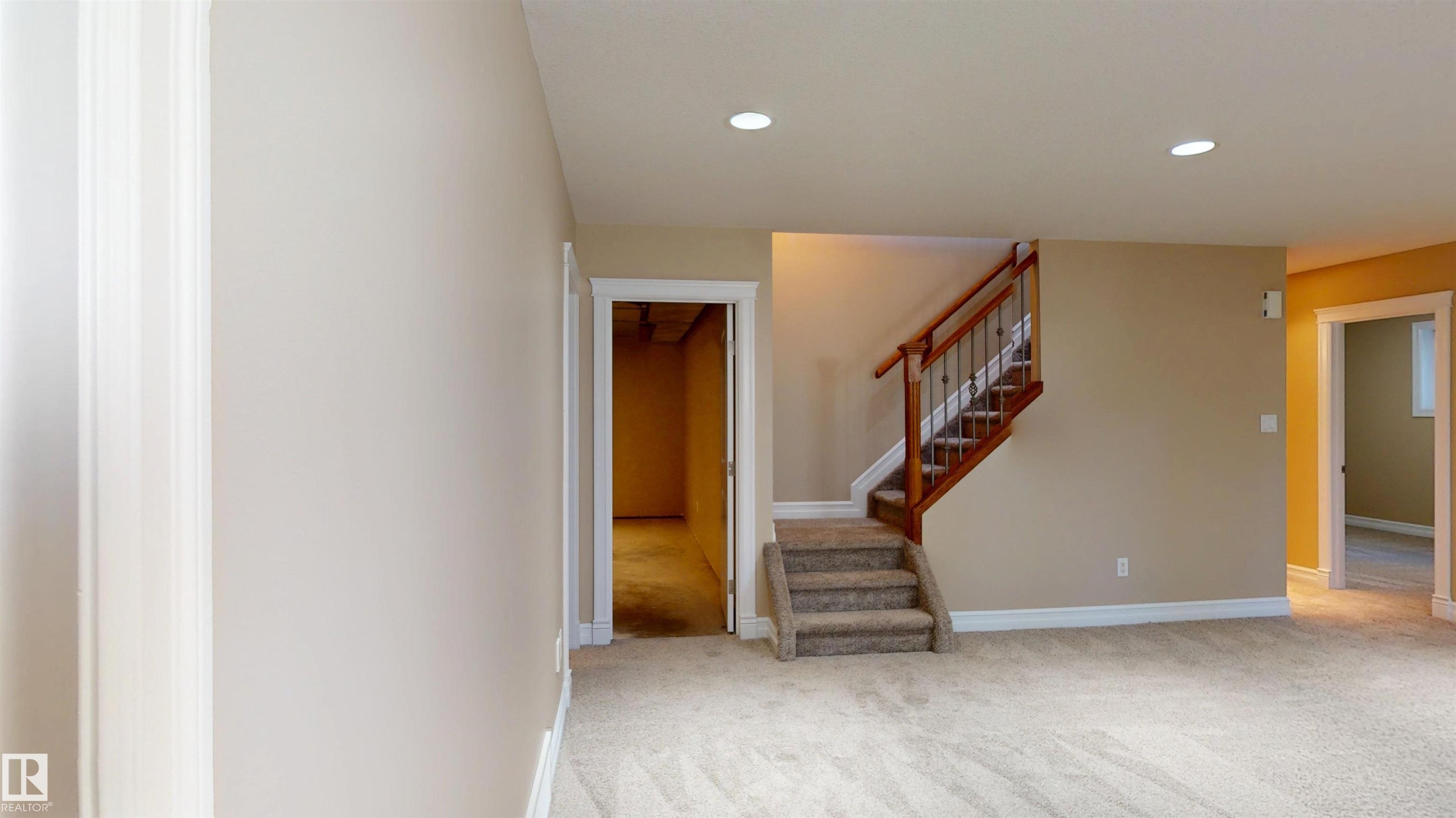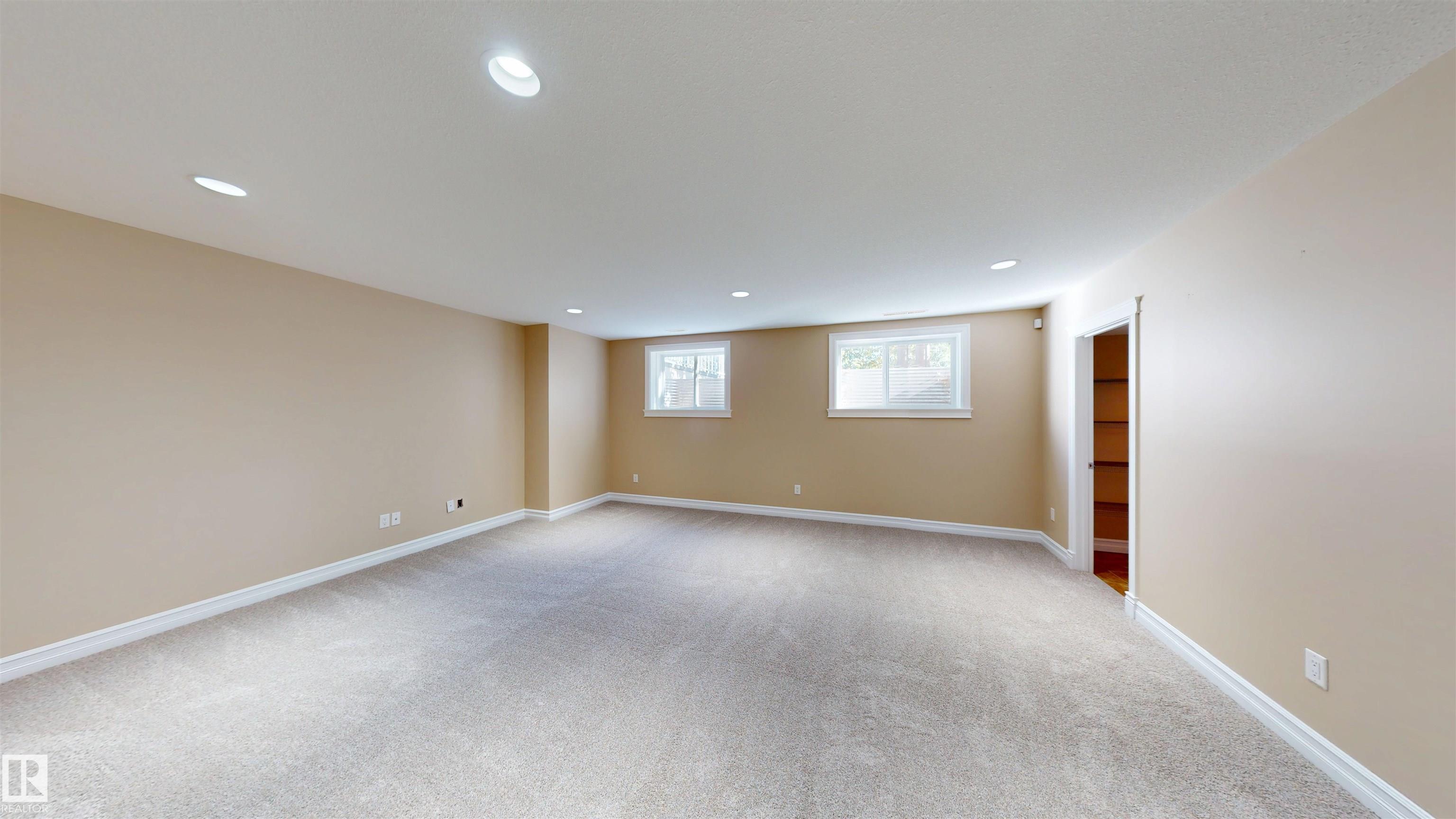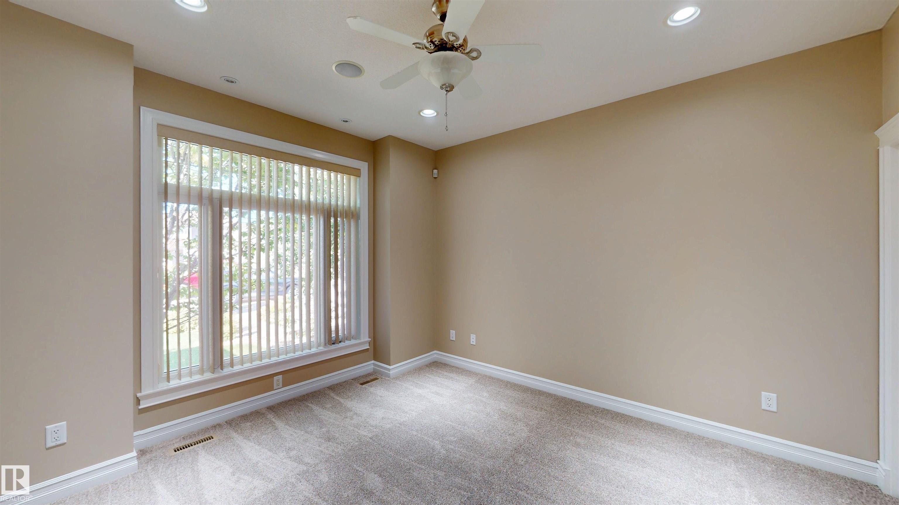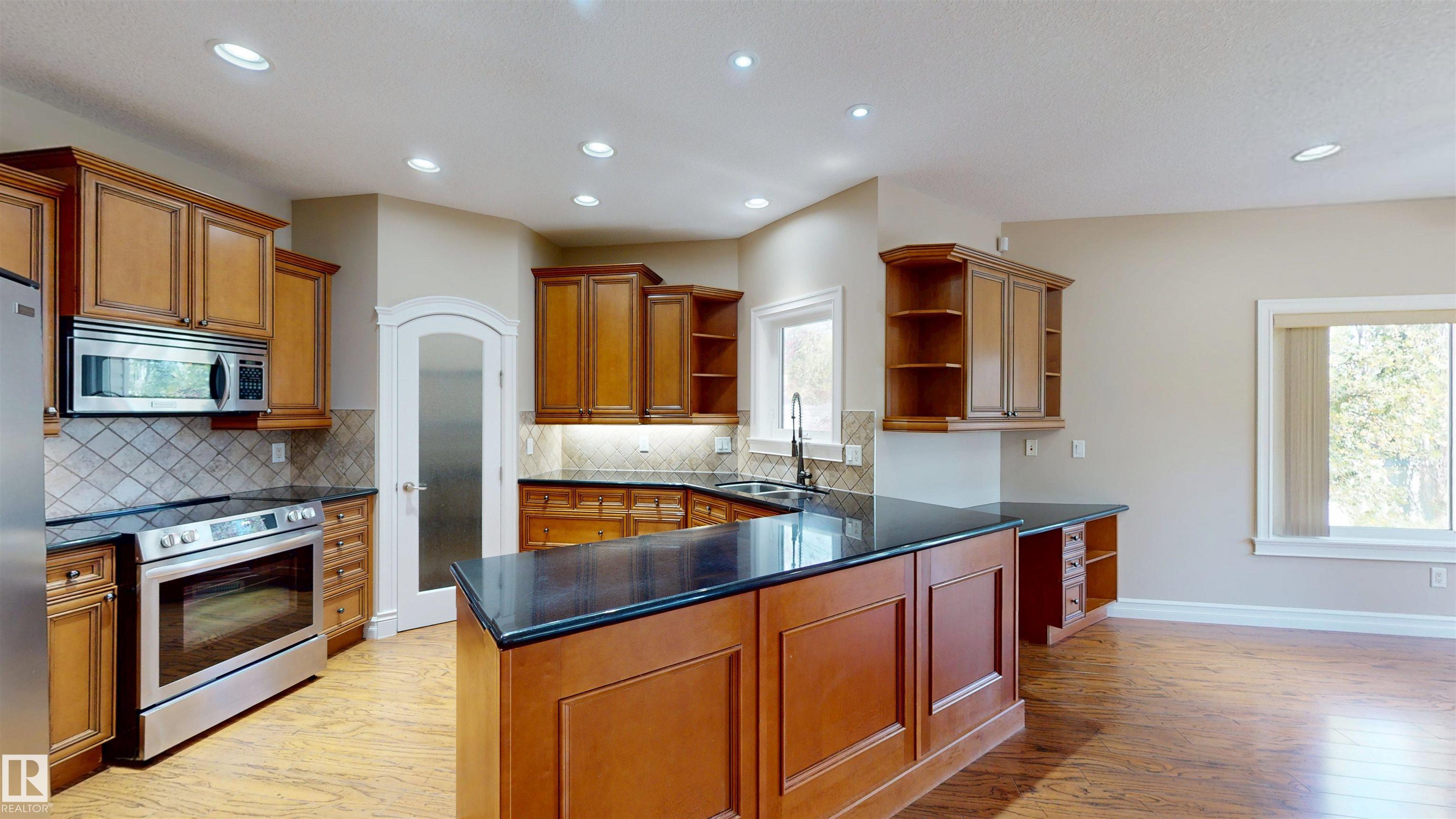 Welcome to this stunning Custom Built Executive Bungalow in Edmonton's West End! From the exposed aggregate driveway to the luxury finishes throughout, this home impresses at every turn. The open-concept main floor is perfect for entertaining, featuring a gourmet kitchen with rich cabinetry, quartz countertops, and high-end stainless steel appliances. The living room showcases a cozy fireplace and built-in shelving, with oversized windows flooding the space with natural light. Retreat to the spa-like primary suite with a soaker tub, walk-in shower, and generous storage. With a large Family Room, 3 additional bedrooms plus a dedicated home office, and ample storage this layout is ideal for families or professionals. Hardwood floors, brand new plush carpeting, and thoughtful details add both elegance and comfort. Designed for modern living, this property blends style, function, and luxury into one exceptional package. Don't miss your chance to own this remarkable home!