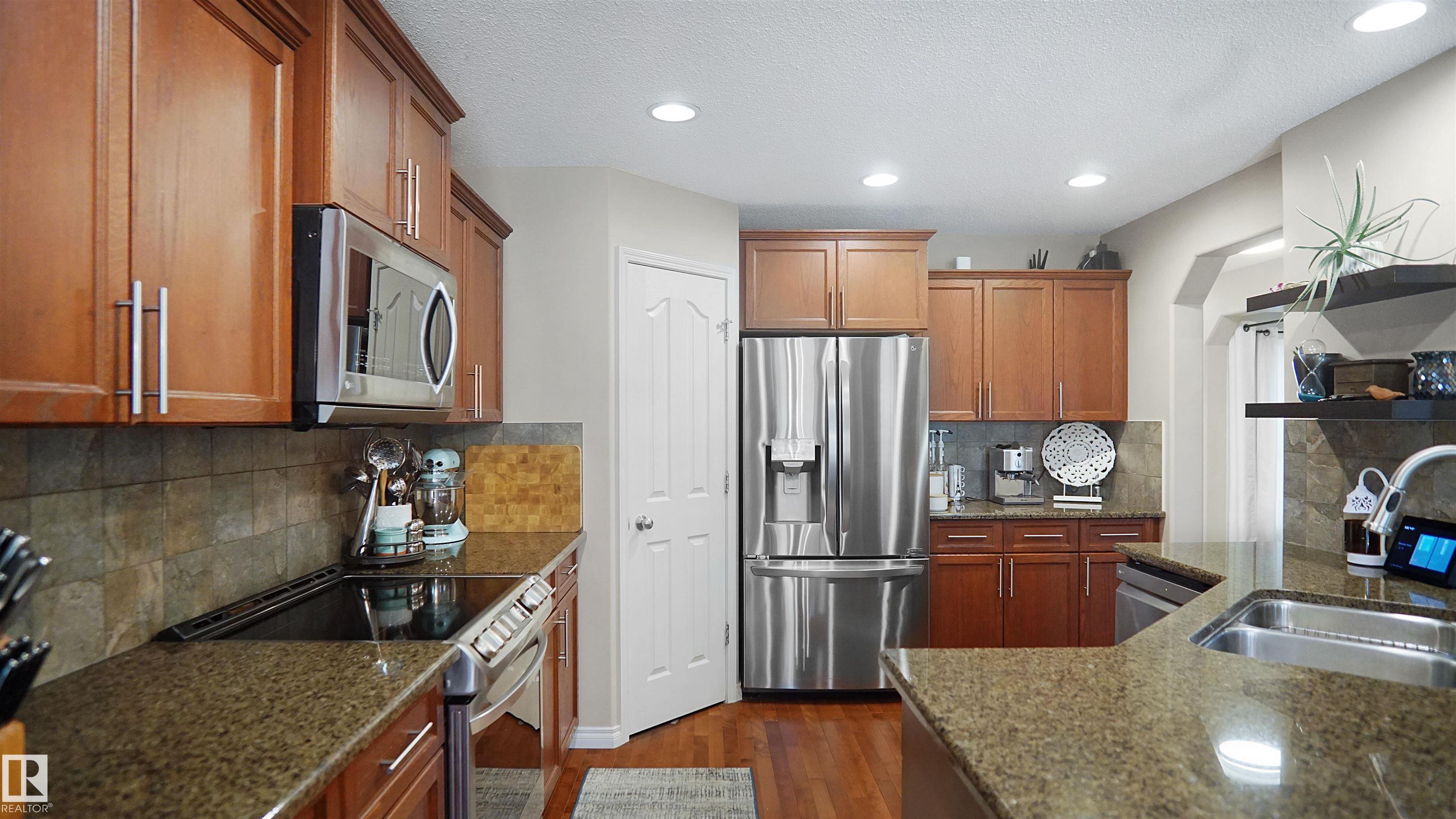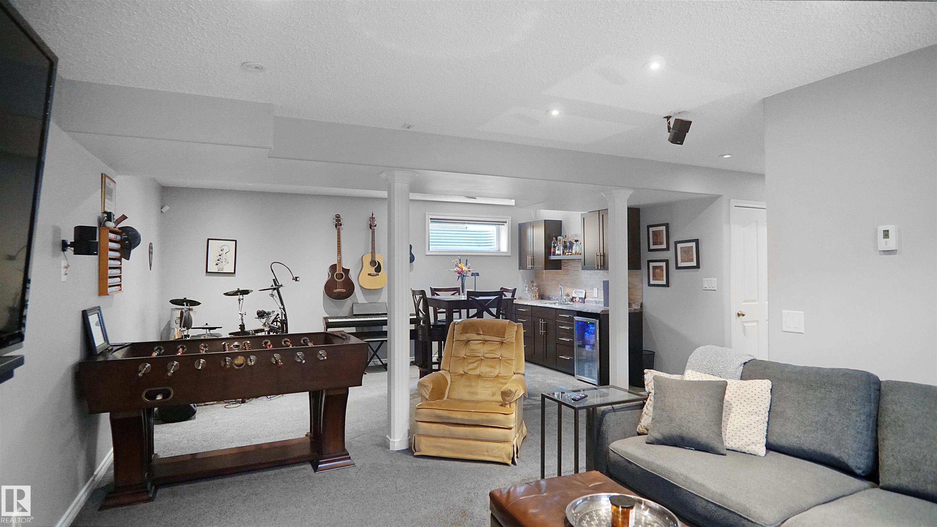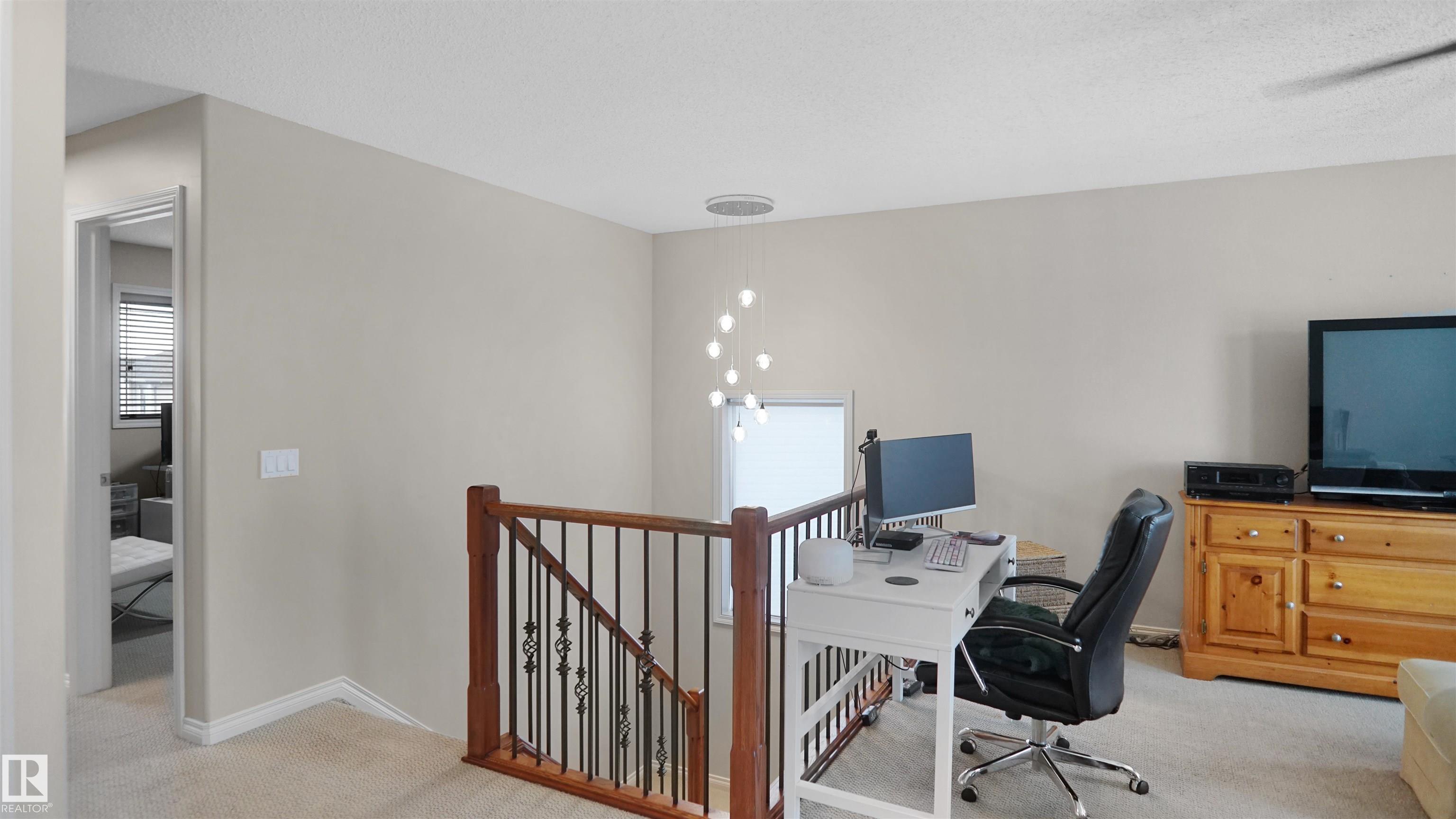 Nestled in one of West Edmonton's most sought-after communities, this rare find is located in a quiet cul-de-sac backing onto the prestigious Lewis Estates Golf Course. Perfectly designed for growing families, this spacious home features 4 bedrooms upstairs, including a generous bonus room and 2 full bathrooms. Step inside to find a welcoming main floor den/flex room near the entry, ideal for a home office or study space. The open concept layout showcases a large kitchen overlooking the dining nook and living area perfect for entertaining and everyday living. The fully finished basement adds even more living space with a large recreation room, full bathroom, and an additional spacious bedroom, offering flexibility for guests or teenagers.