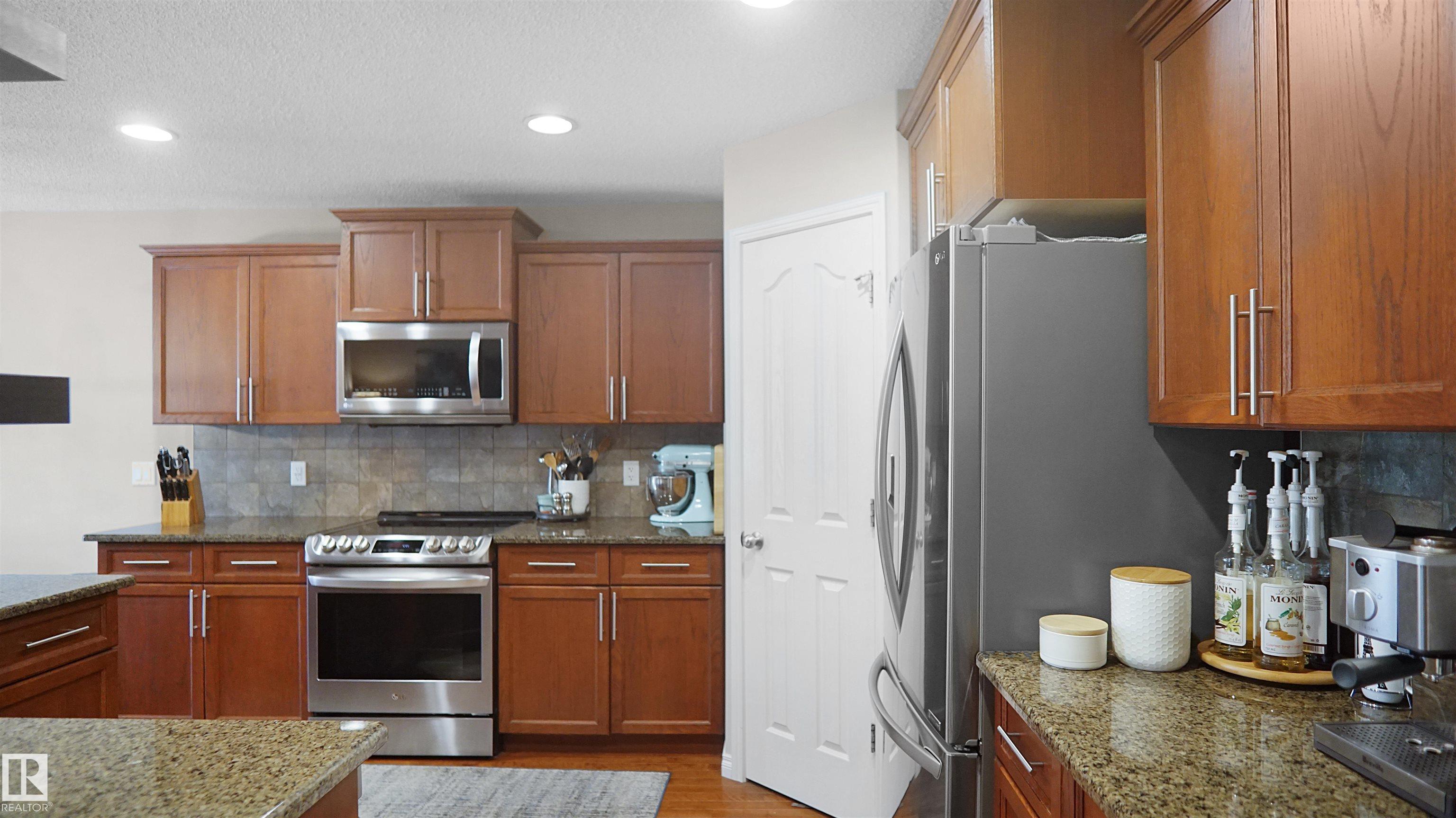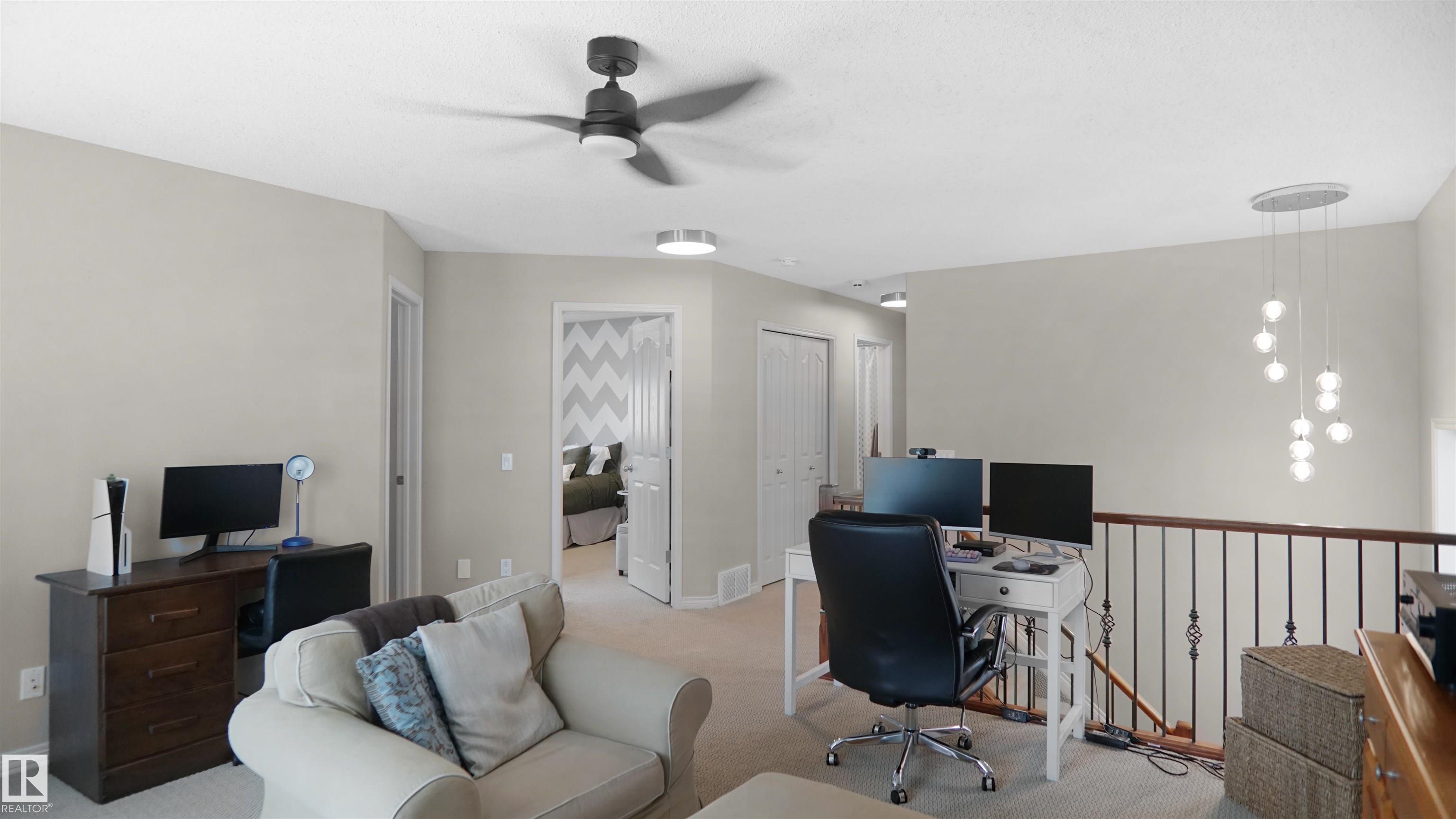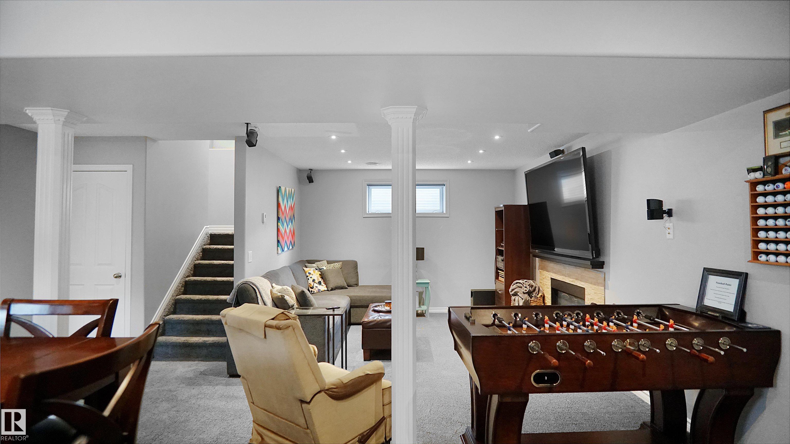 Nestled in one of West Edmonton's most sought-after communities, this rare find is located in a quiet cul-de-sac backing onto the prestigious Lewis Estates Golf Course. Perfectly designed for growing families, this spacious home features 4 bedrooms upstairs, including a generous bonus room and 2 full bathrooms. Step inside to find a welcoming main floor den/flex room near the entry, ideal for a home office or study space. The open concept layout showcases a large kitchen overlooking the dining nook and living area perfect for entertaining and everyday living. The fully finished basement adds even more living space with a large recreation room, full bathroom, and an additional spacious bedroom, offering flexibility for guests or teenagers.