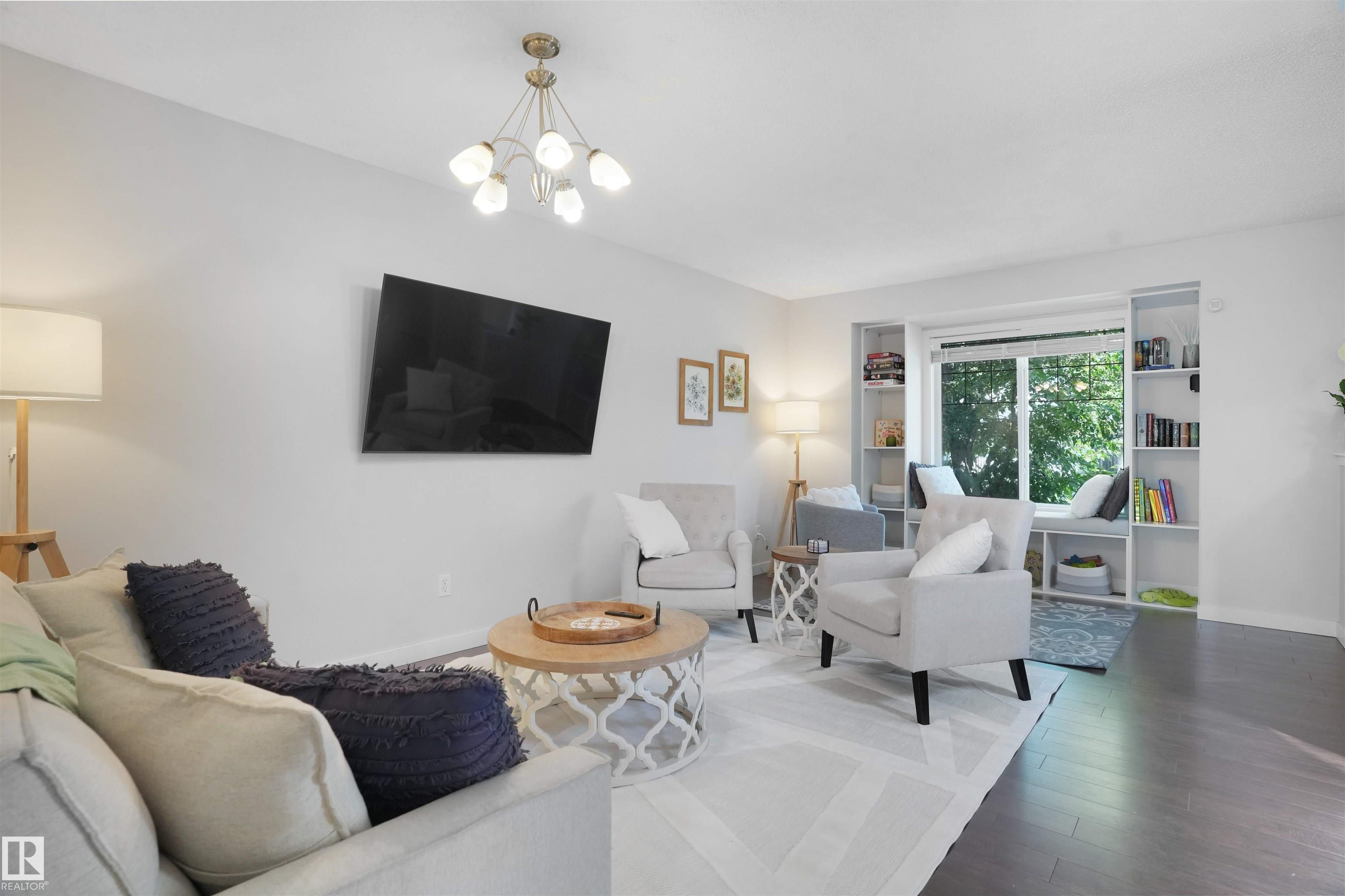 Welcome to this charming 2-storey home in a quiet Suder Greens cul-de-sac, offering 1,351 sq ft of beautifully updated living space. Freshly painted in fall2023 with new baseboards and a new roof (2021), this home features a bright open-concept layout. The spacious kitchen is filled with natural light from largewindows, offering lovely views of the changing seasons. Upstairs you'll find 3 cozy bedrooms and a full 4-piece bath. Backing onto a peaceful greenbelt, thesouth-facing backyard boasts a large patio--perfect for outdoor entertaining. An oversized garage with extra height adds convenience. Enjoy walkingdistance to Suder Green Park, golf course, schools, and easy access to WEM and public transit. With its desirable location, thoughtful updates, and warmatmosphere, this home is ideal for families or anyone seeking a blend of tranquility and convenience in west Edmonton.