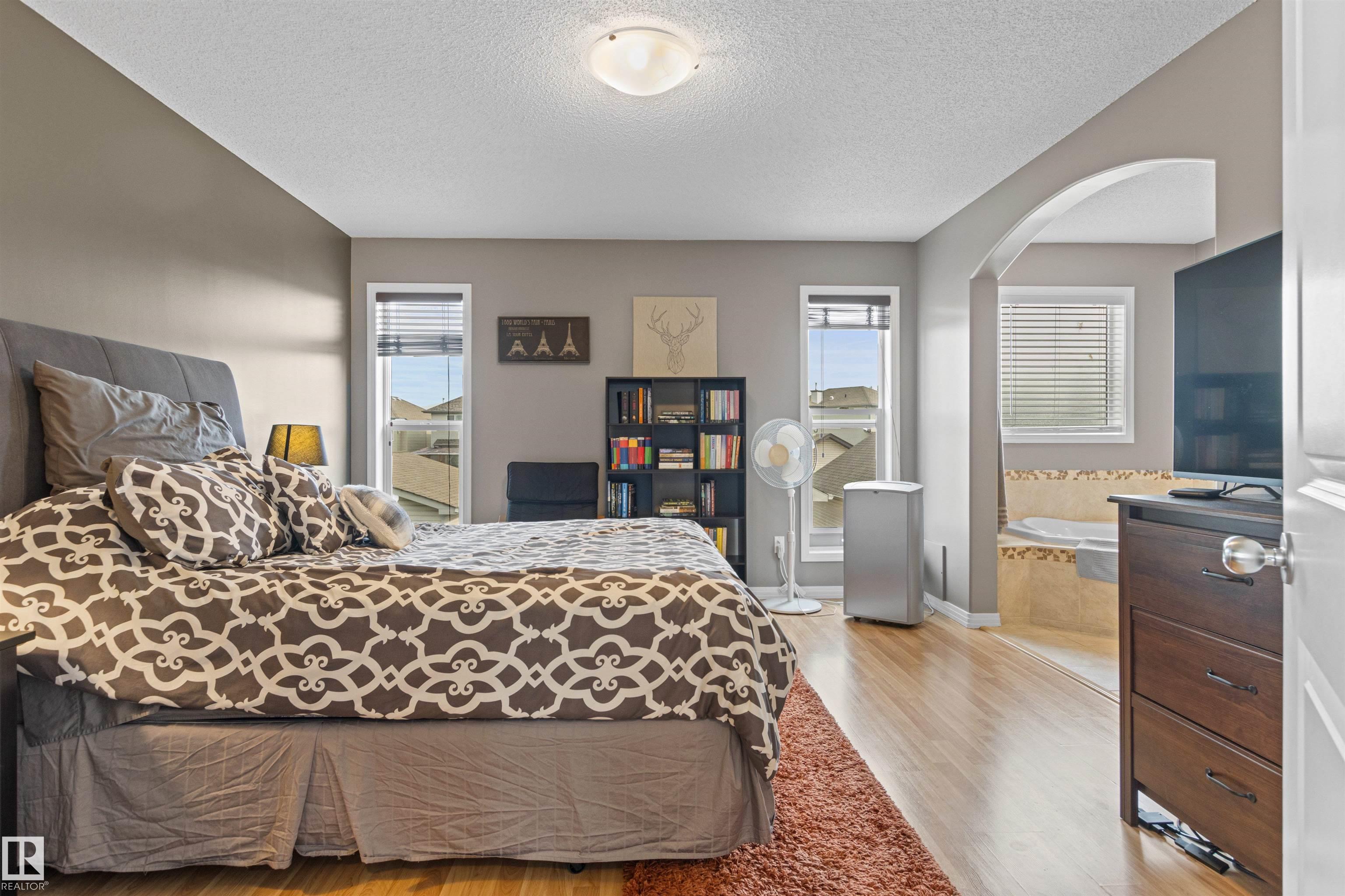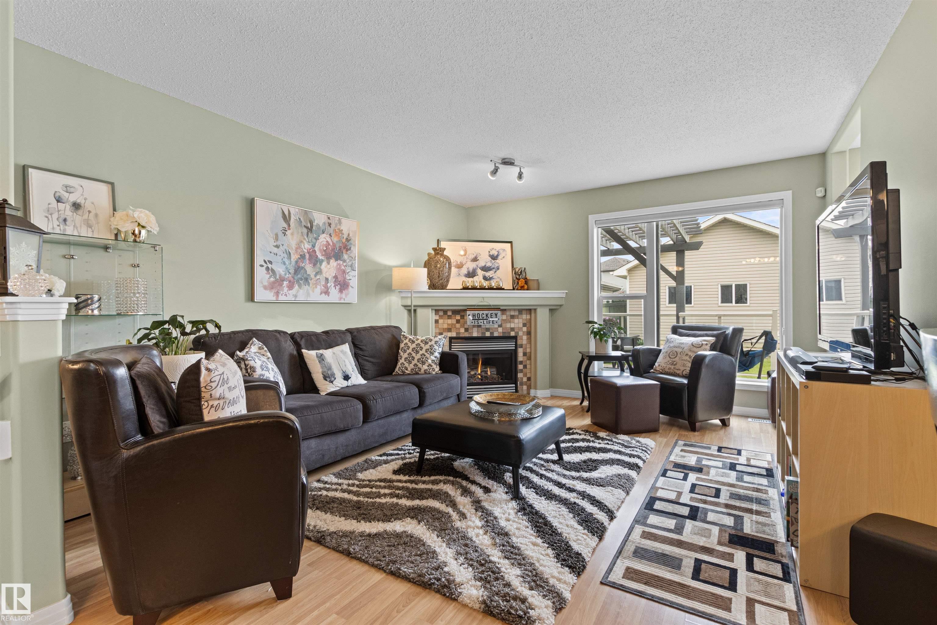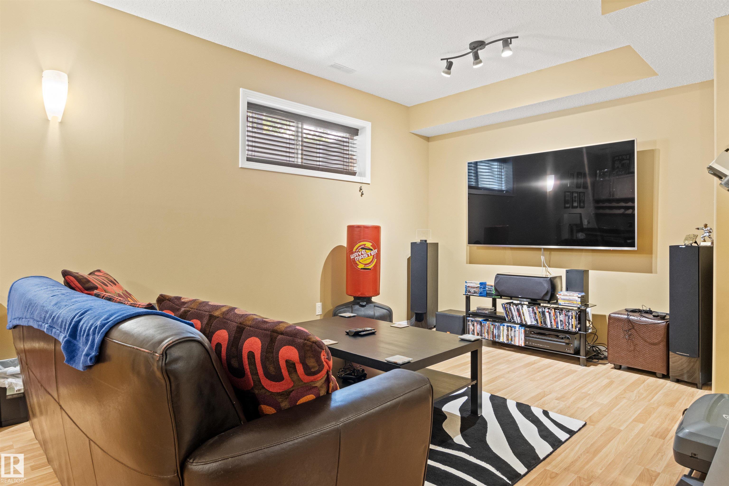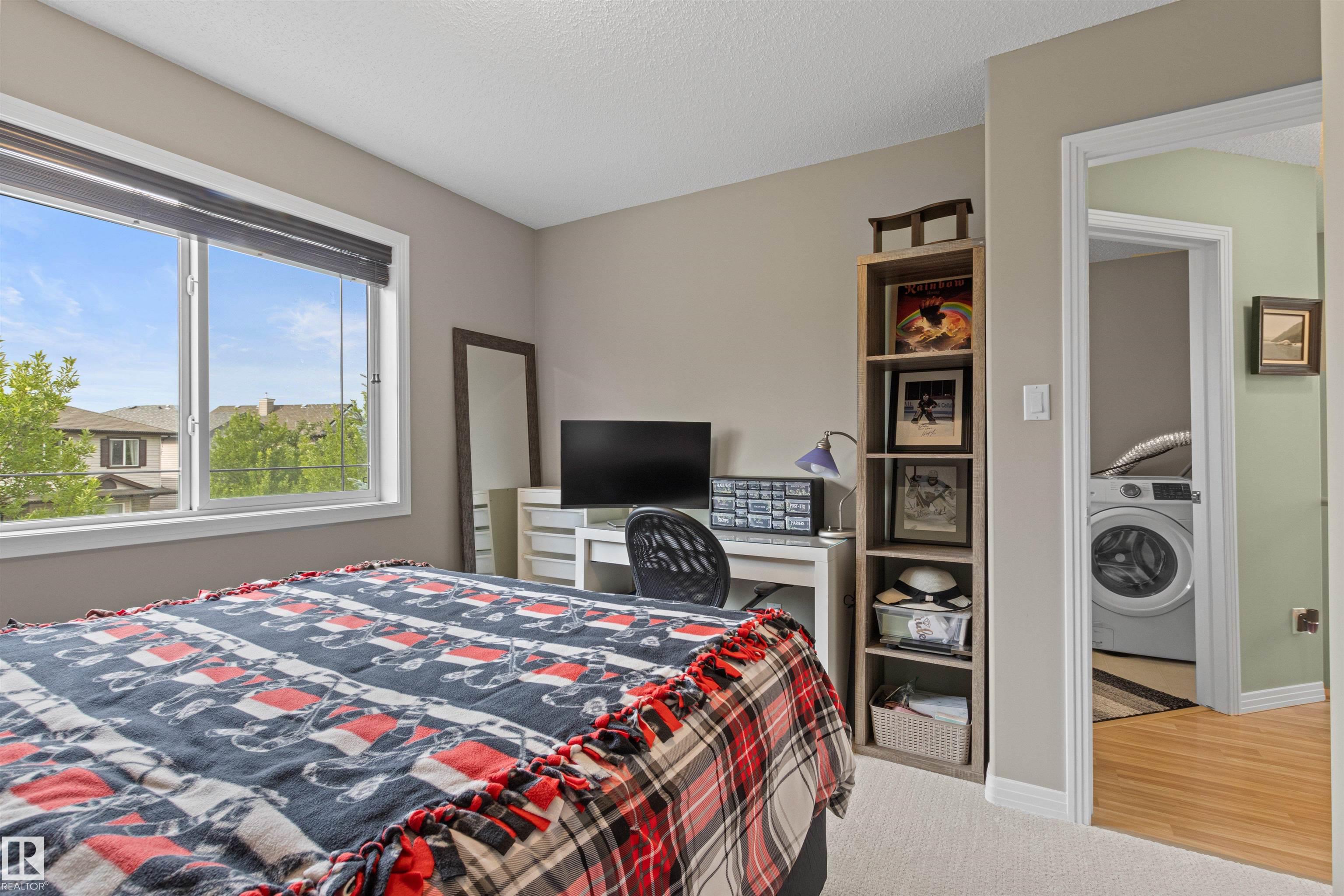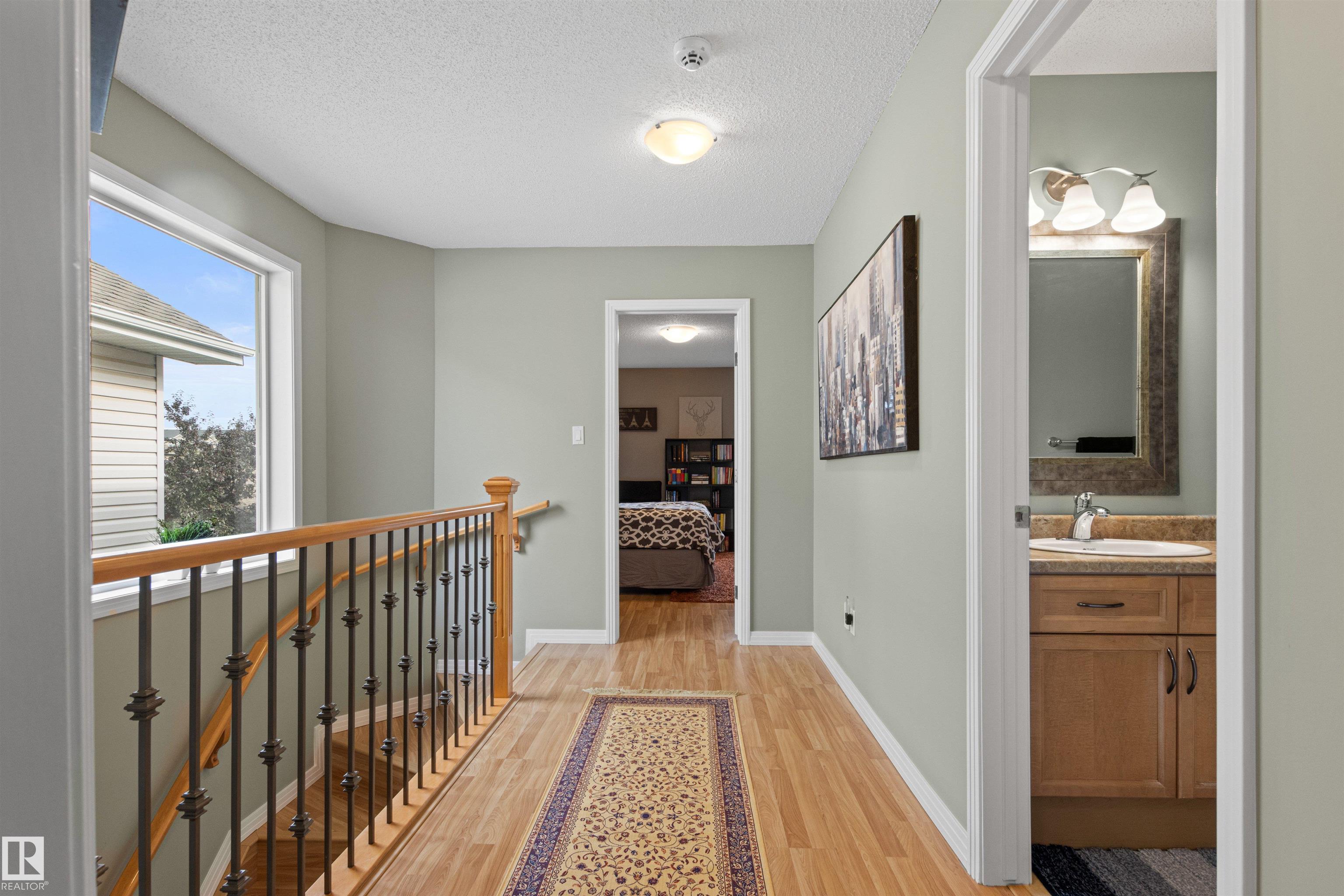 This home is located on a quiet cul-de-sac in Suder Greens. Perfectly maintained, 4 bdrm., 4 bathroom two storey is finished top to bottom. Front flex-room can either be a bedroom or a bright office. Open kitchen, dining room and family room with fireplace. Primary suite with large walk-in closet, double vanity and jetted corner tub ensuite. An additional 4 piece bathroom on the 2nd floor as well as, a 2nd bedroom and large bonus laundry room. The fully finished basement features 9 ft. ceilings and in-floor heat throughout. The home has a 70 gallon hot water tank, & central vac. Oversized double garage with large attic storage space accessible by the pull down stairs. Deck and pergola finish off the backyard. New roof May 2023, dishwasher/2020, microwave hood fan/2020.