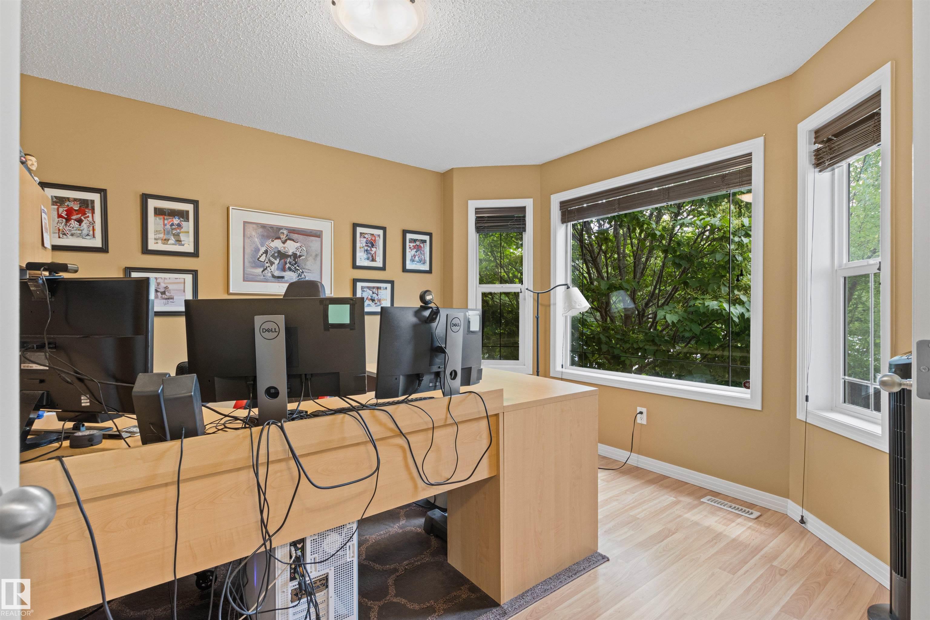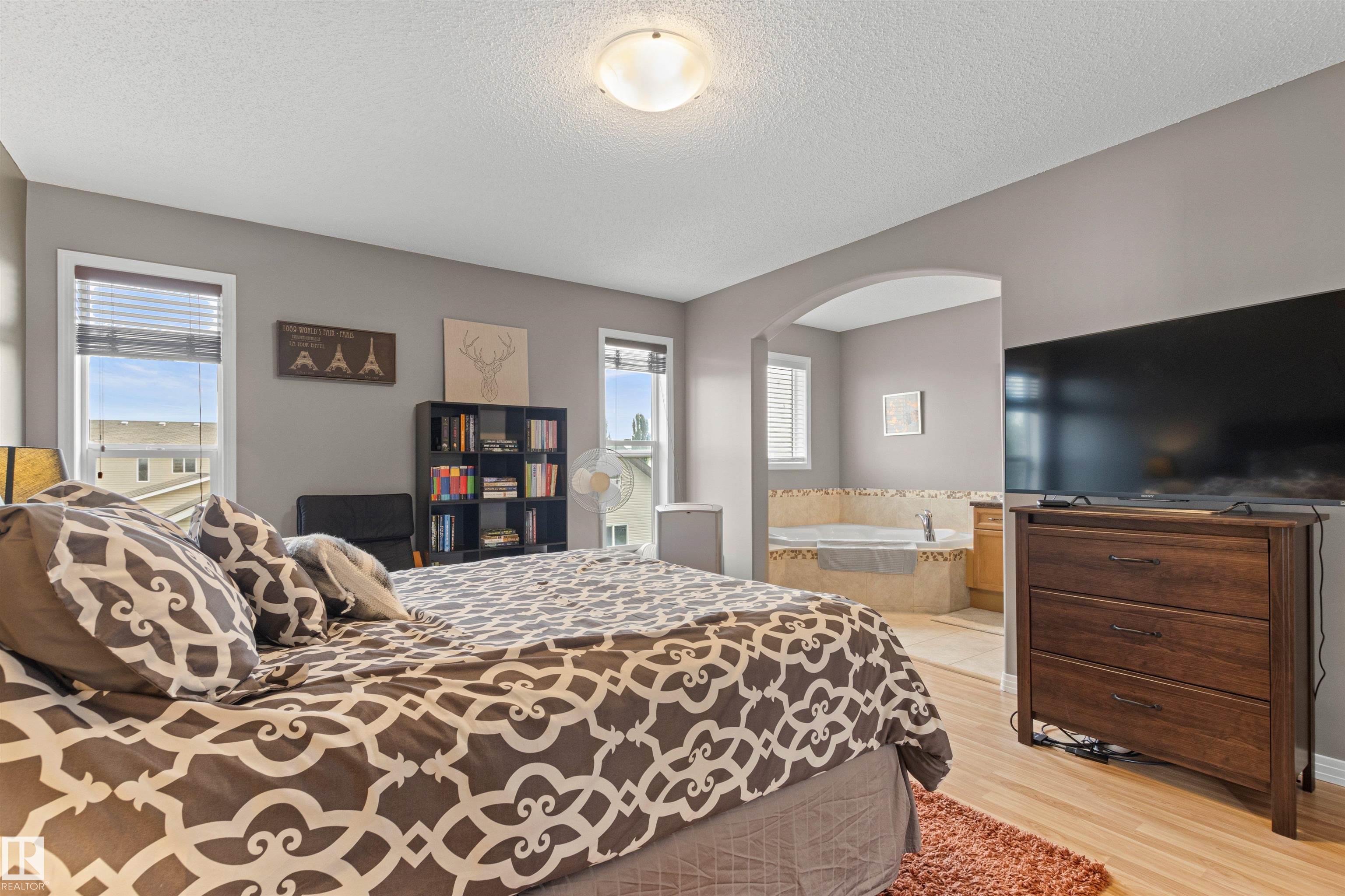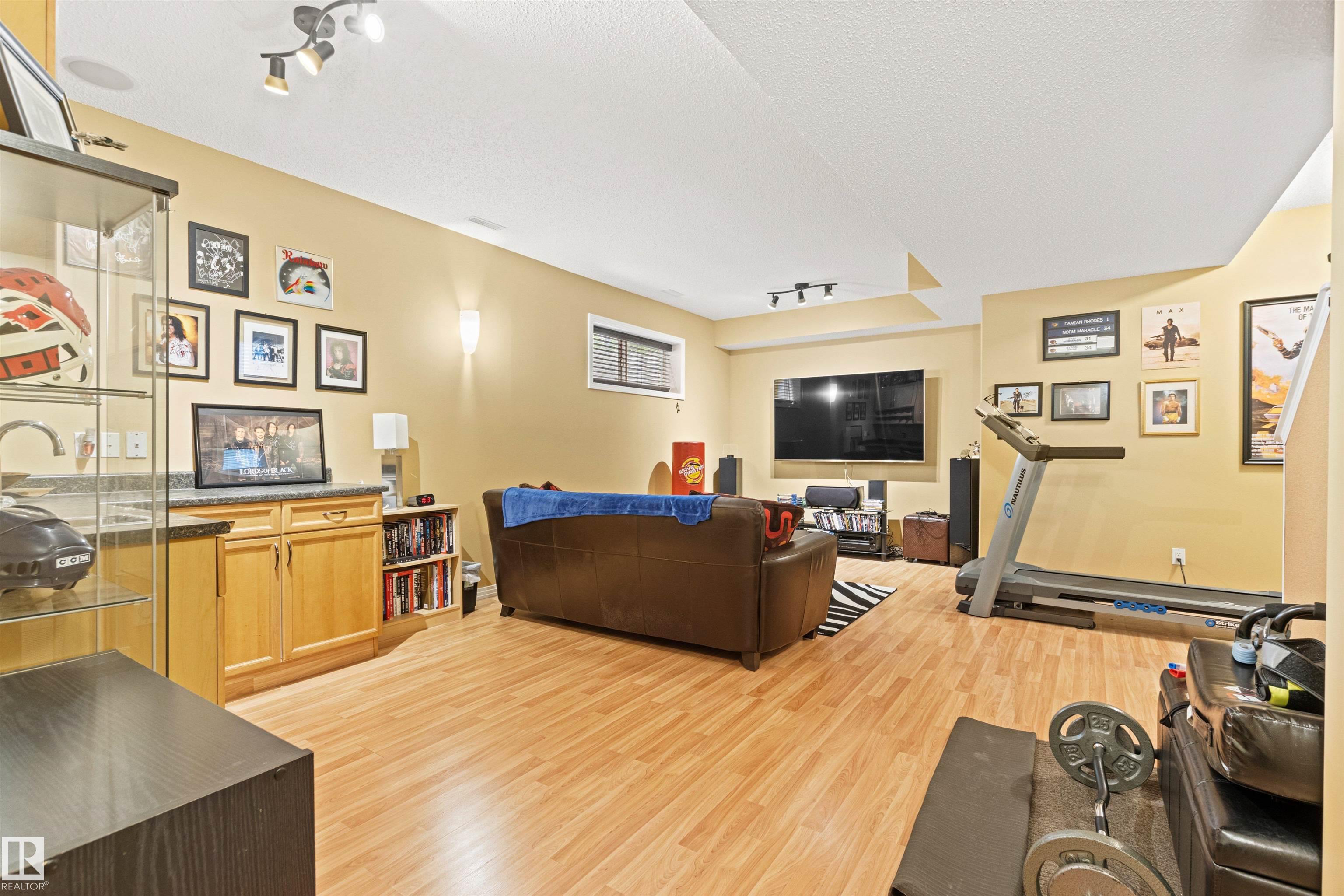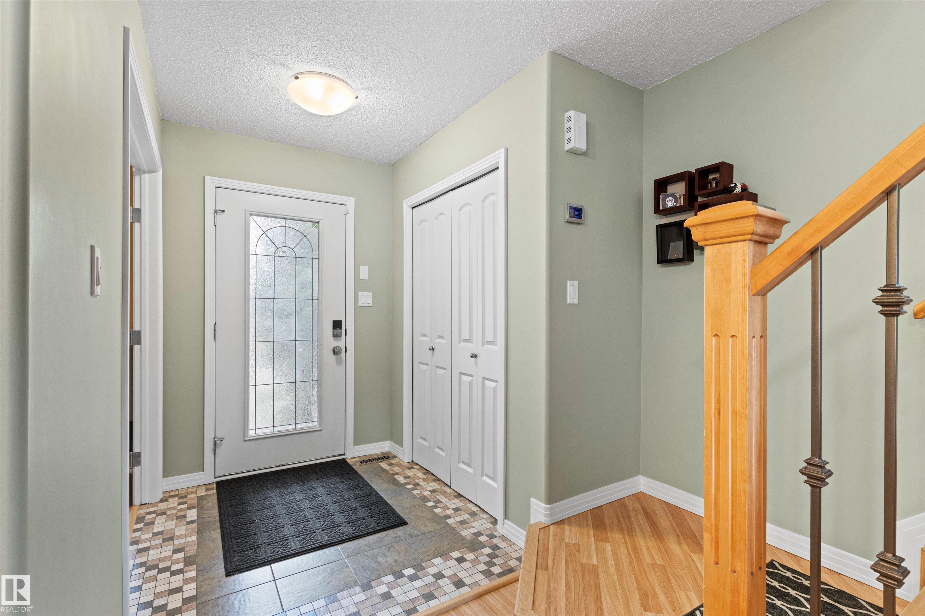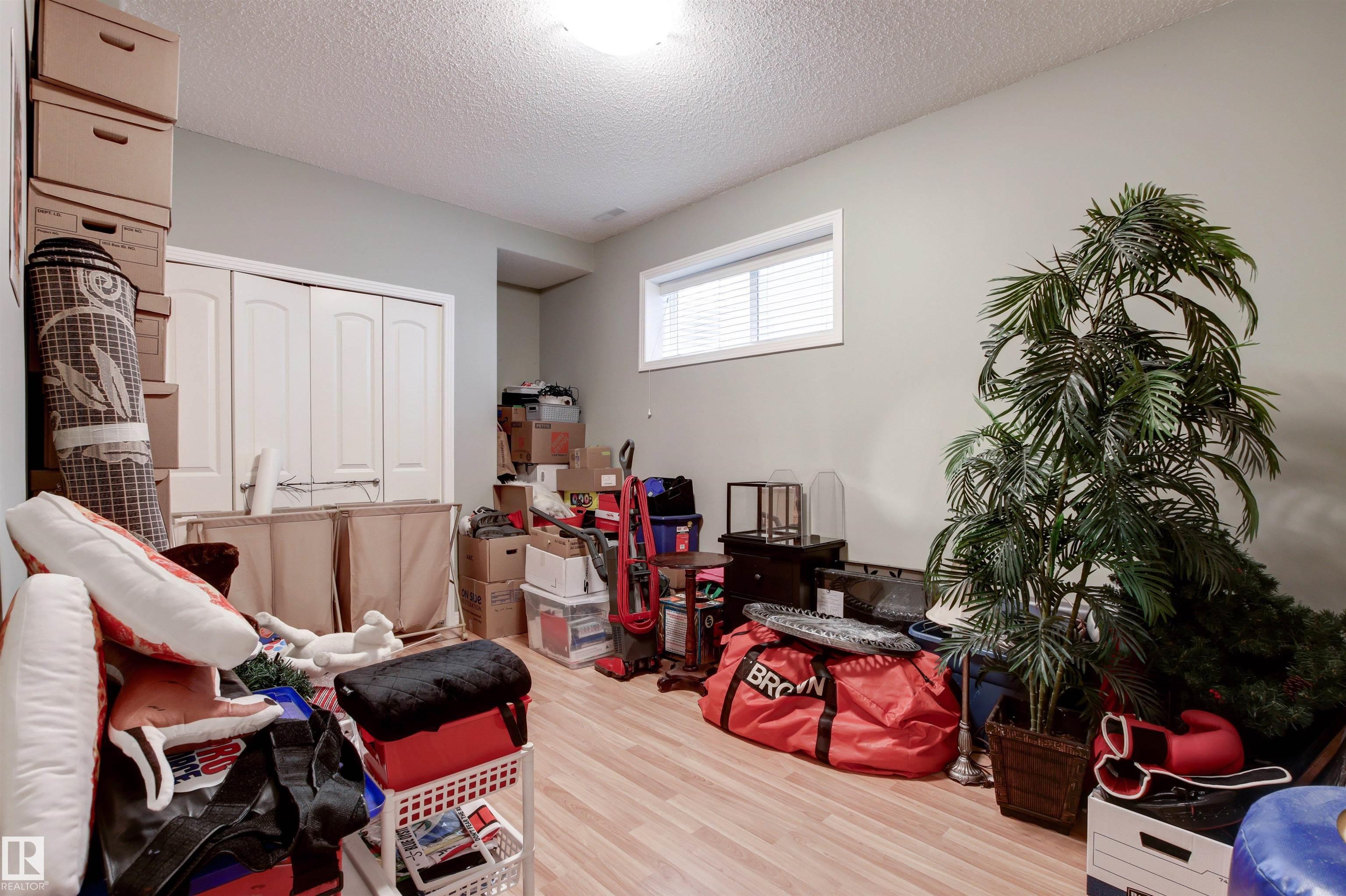 This home is located on a quiet cul-de-sac in Suder Greens. Perfectly maintained, 4 bdrm., 4 bathroom two storey is finished top to bottom. Front flex-room can either be a bedroom or a bright office. Open kitchen, dining room and family room with fireplace. Primary suite with large walk-in closet, double vanity and jetted corner tub ensuite. An additional 4 piece bathroom on the 2nd floor as well as, a 2nd bedroom and large bonus laundry room. The fully finished basement features 9 ft. ceilings and in-floor heat throughout. The home has a 70 gallon hot water tank, & central vac. Oversized double garage with large attic storage space accessible by the pull down stairs. Deck and pergola finish off the backyard. New roof May 2023, dishwasher/2020, microwave hood fan/2020.