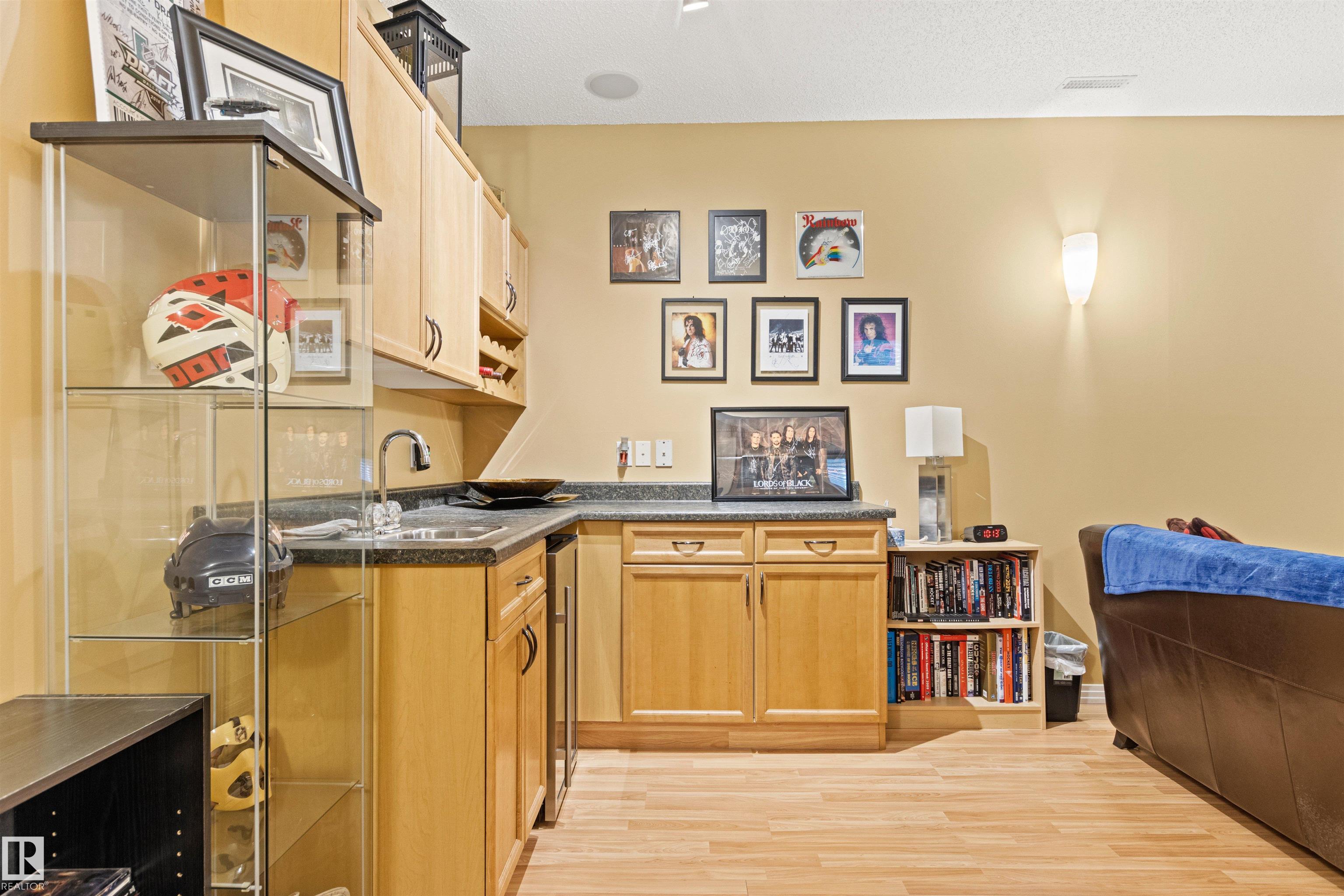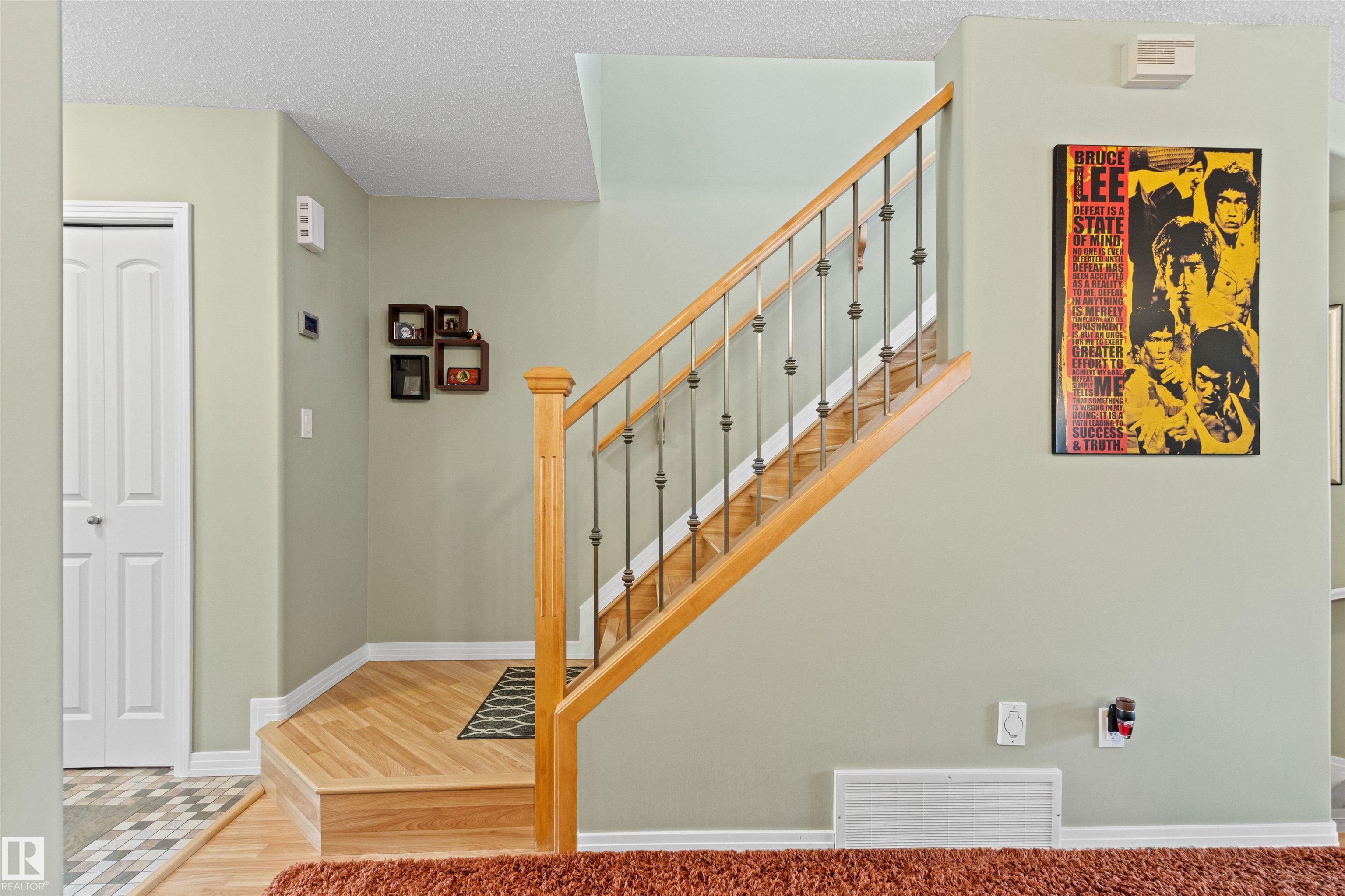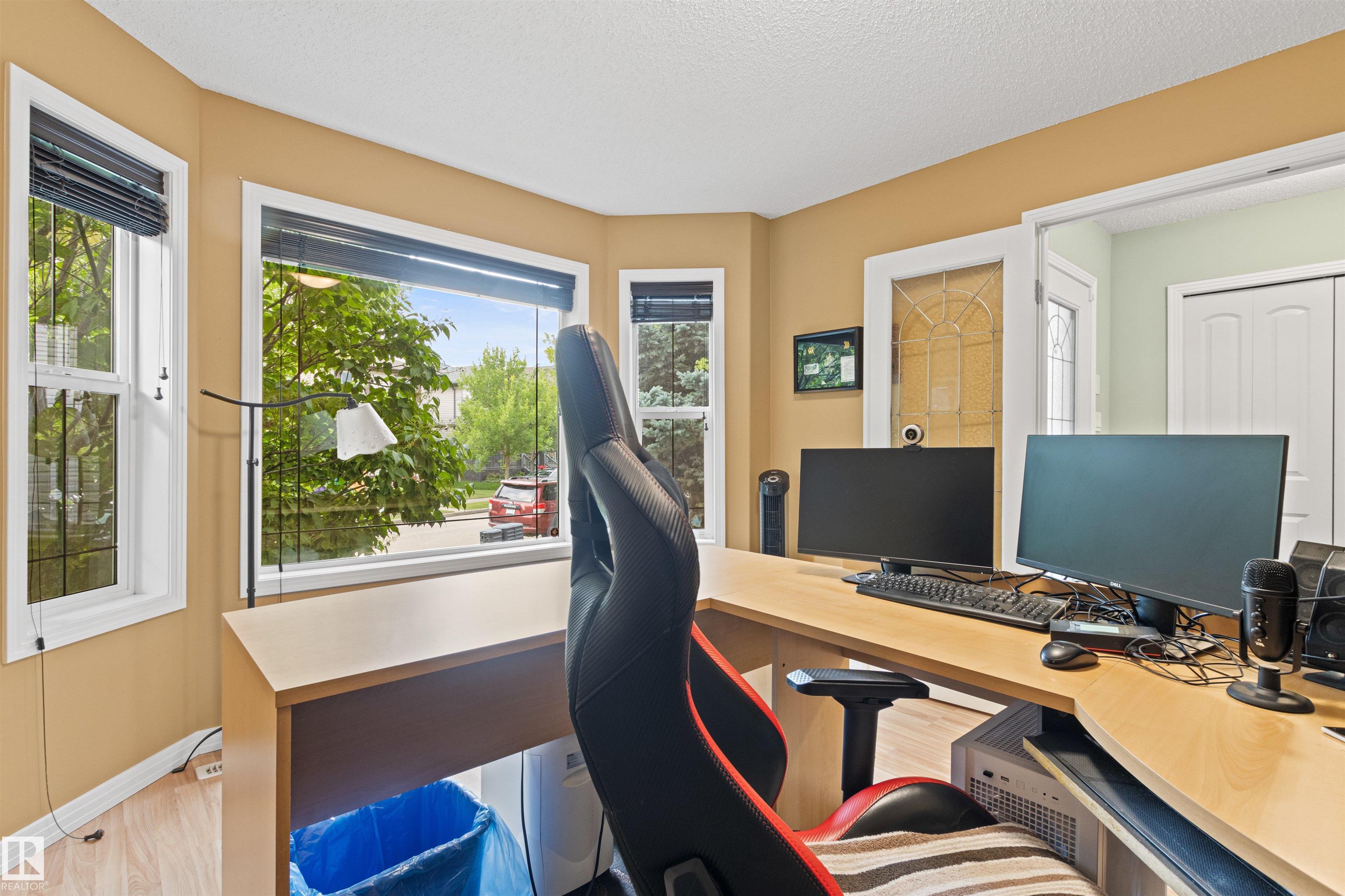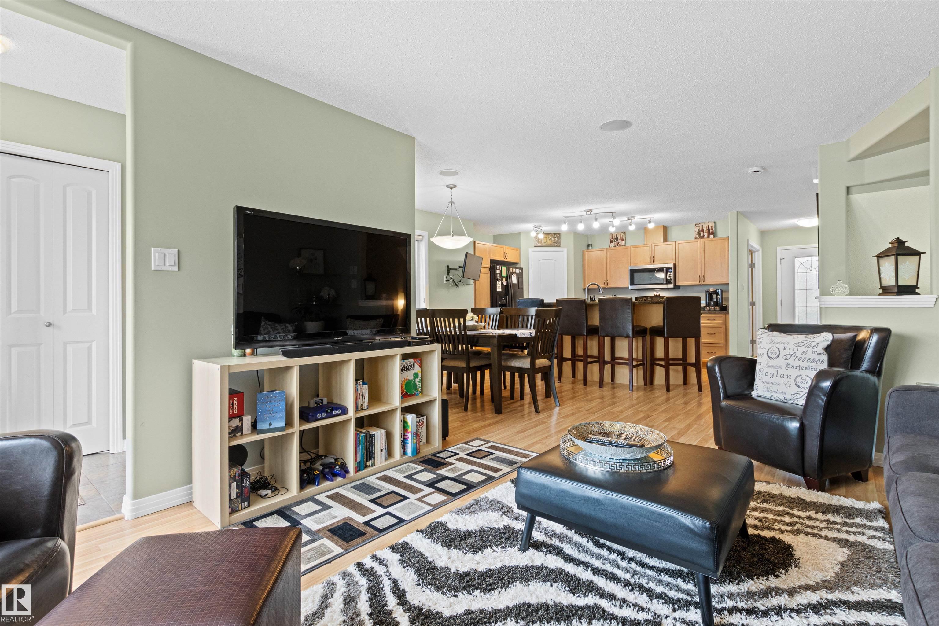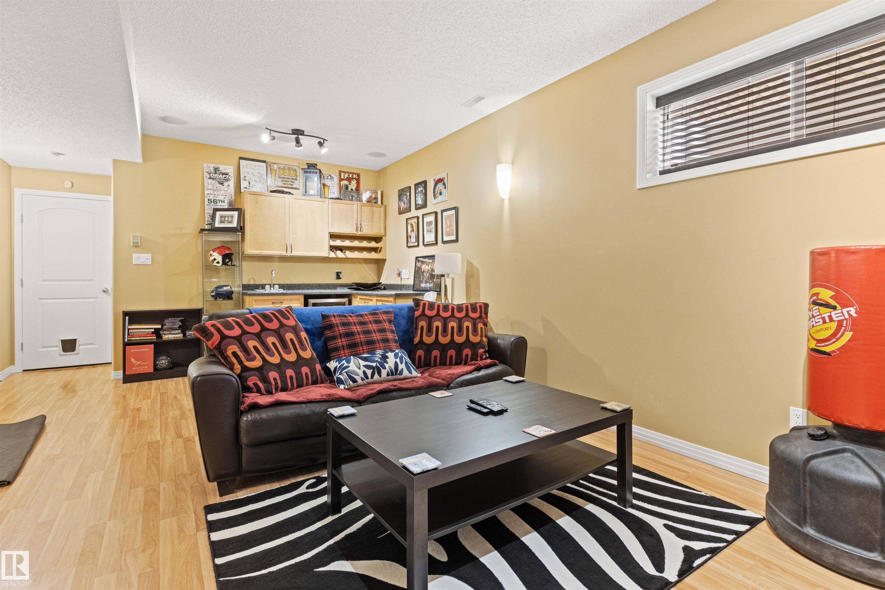 This home is located on a quiet cul-de-sac in Suder Greens. Perfectly maintained, 4 bdrm., 4 bathroom two storey is finished top to bottom. Front flex-room can either be a bedroom or a bright office. Open kitchen, dining room and family room with fireplace. Primary suite with large walk-in closet, double vanity and jetted corner tub ensuite. An additional 4 piece bathroom on the 2nd floor as well as, a 2nd bedroom and large bonus laundry room. The fully finished basement features 9 ft. ceilings and in-floor heat throughout. The home has a 70 gallon hot water tank, & central vac. Oversized double garage with large attic storage space accessible by the pull down stairs. Deck and pergola finish off the backyard. New roof May 2023, dishwasher/2020, microwave hood fan/2020.