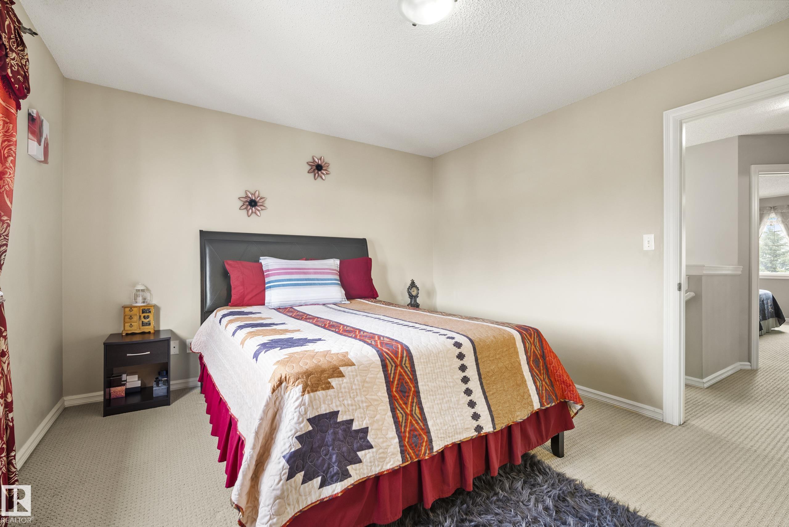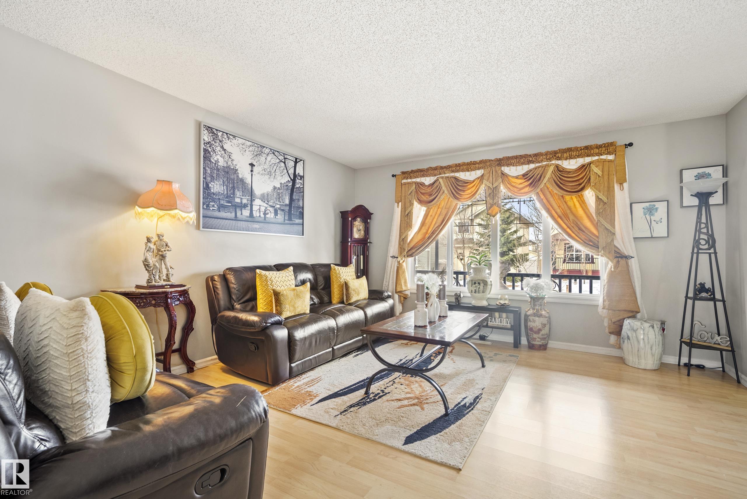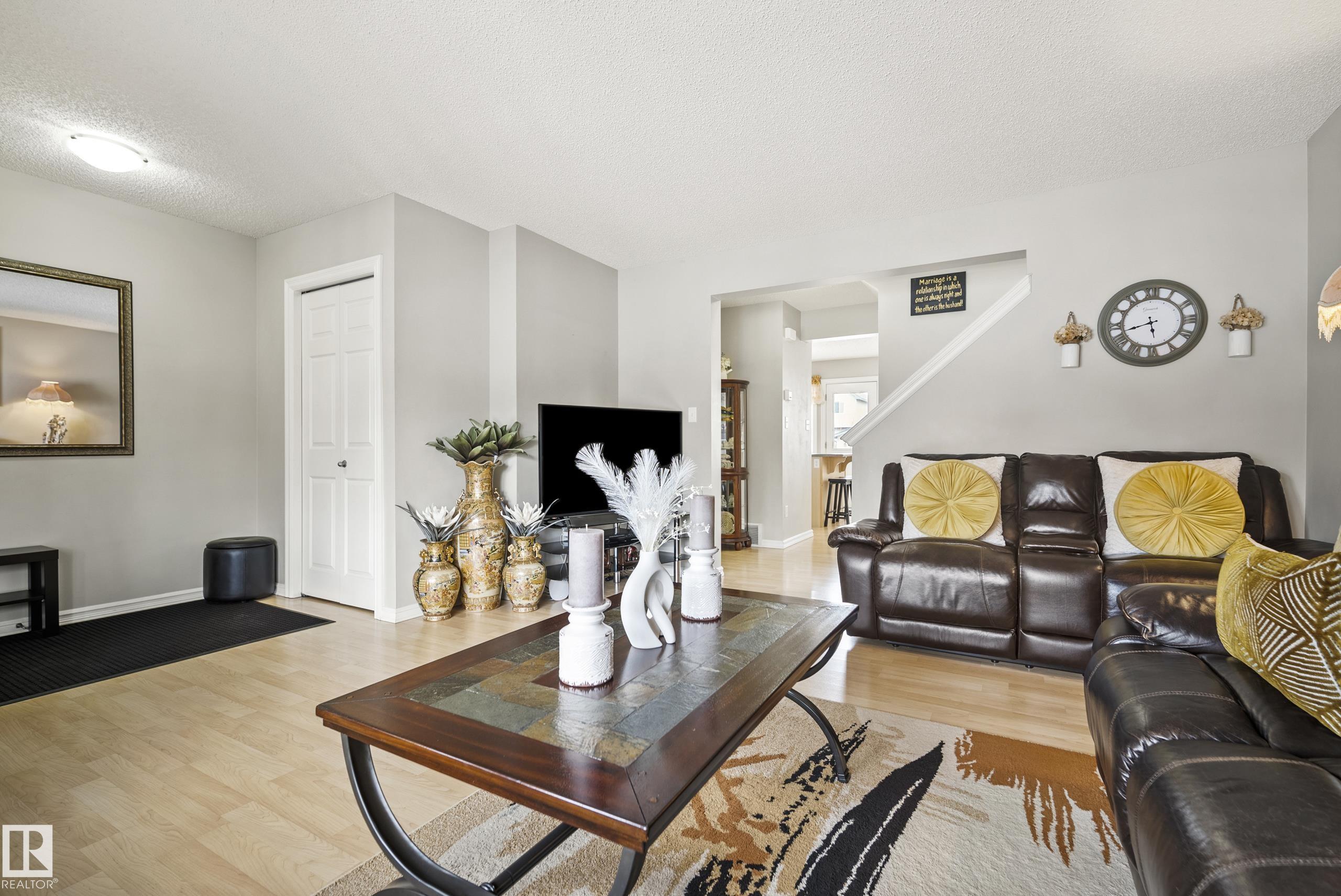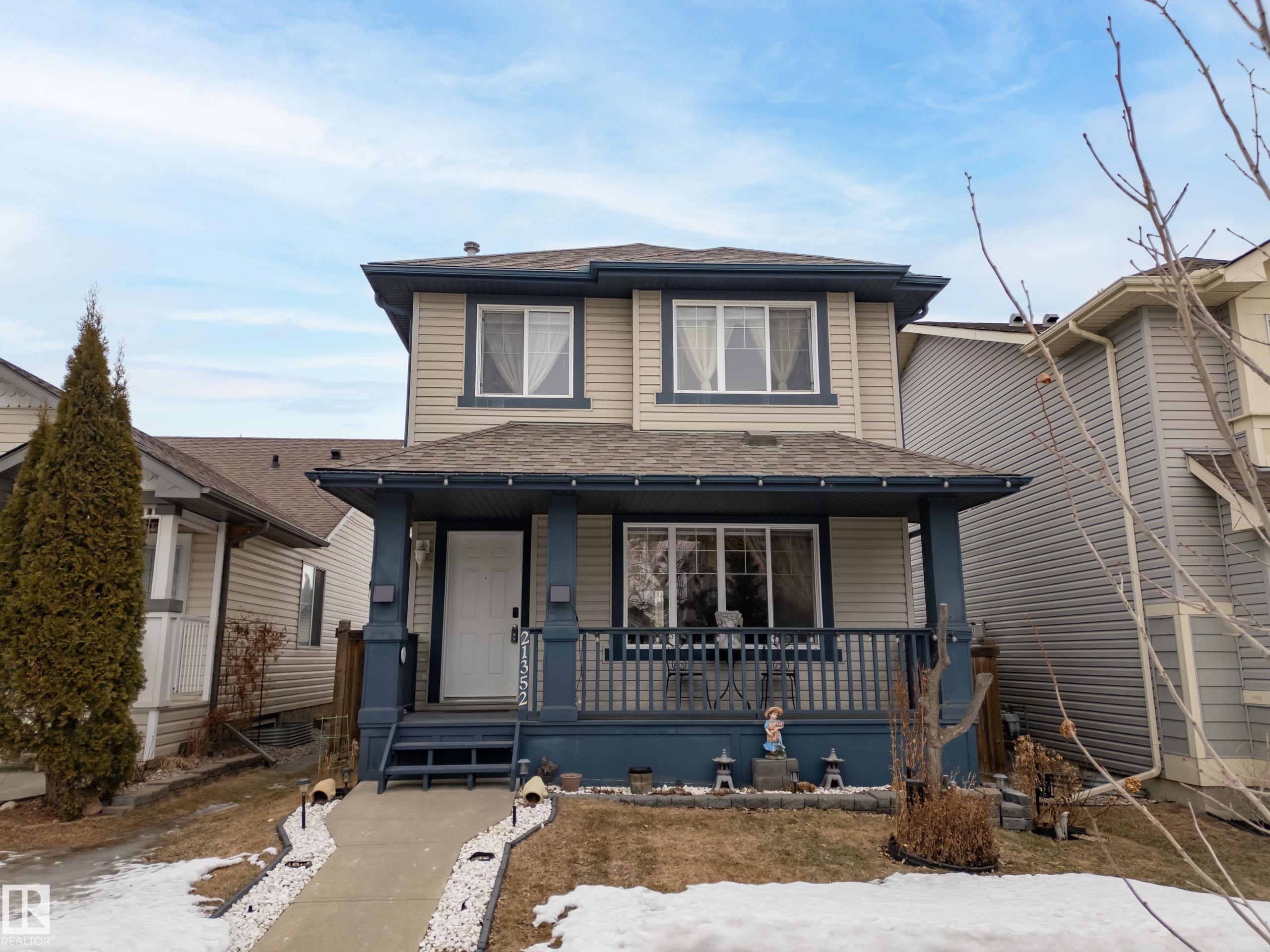 Located in the highly desirable community of Suder Greens, this immaculately kept 4-bedroom, 3.5-bath family home seamlessly combines functionality and convenience. Featuring an open-concept main floor, it has an inviting living room, dining area, well-appointed kitchen, and a convenient 2pc bath. Upstairs, you'll discover a peaceful retreat in the primary suite with its own 4pc ensuite, two additional comfortable bedrooms, and a common 4pc bath. The professionally developed basement adds significant living space, including a large recreation room, a fourth versatile room that could be used as a guest bedroom, and a full 4pc bathroom. This fantastic property features a detached double garage and is located at the end of a cul-de-sac, minimizing through traffic. Living here means having it all: excellent road access to the Anthony Henday and Whitemud Drive, great local schools, and being steps away from the extensive new recreation center, Costco, and the Lewis Farms Transit Centre.