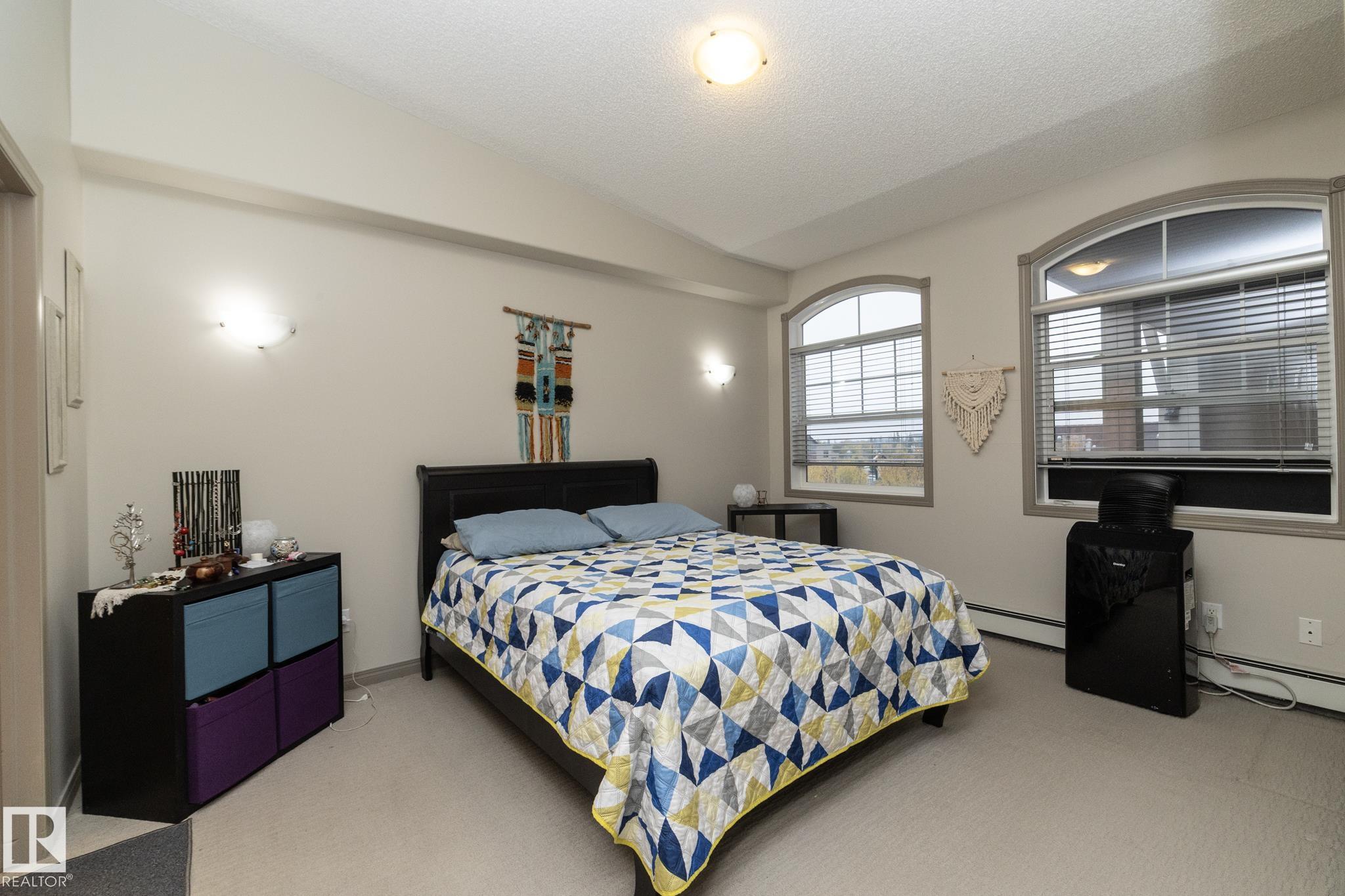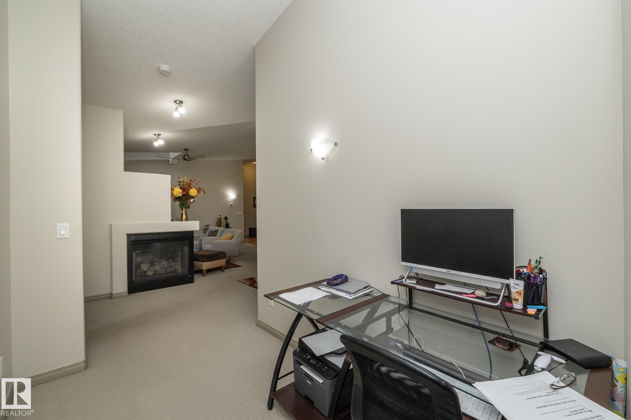 Welcome to this SPACIOUS TOP FLOOR CONDO with AN IMPRESSIVE 1144 SQ.FT including 2 BED + DEN, 2 BATH, 2 U/G PARKING stalls, and a STORAGE CAGE !! This beautiful unit features 12 FOOT VAULTED CEILINGS, an office area, a 3-sided fireplace, a private balcony with gas hook-up, and is the largest floorplan in the building. This building is well maintained, and is located in the heart of Terwillegar Towne, close to shopping, the REC centre, and public transportation. Welcome home, this one won't last!!
