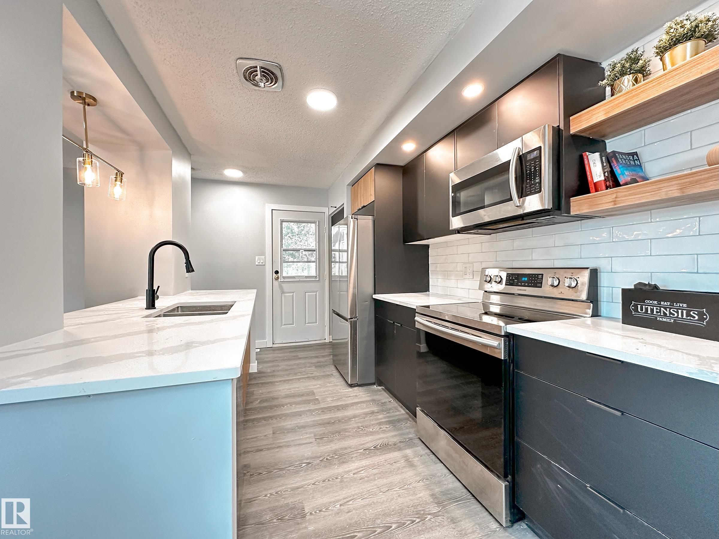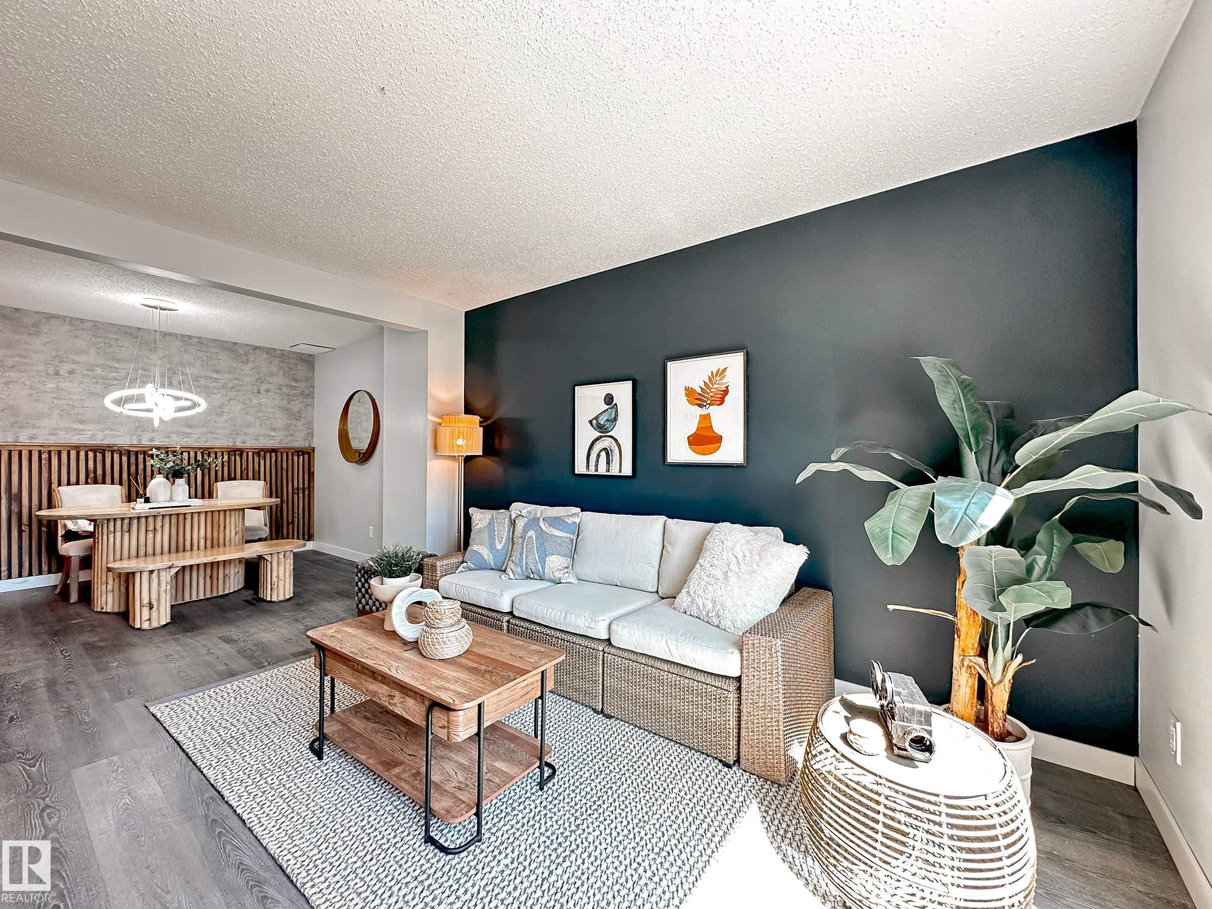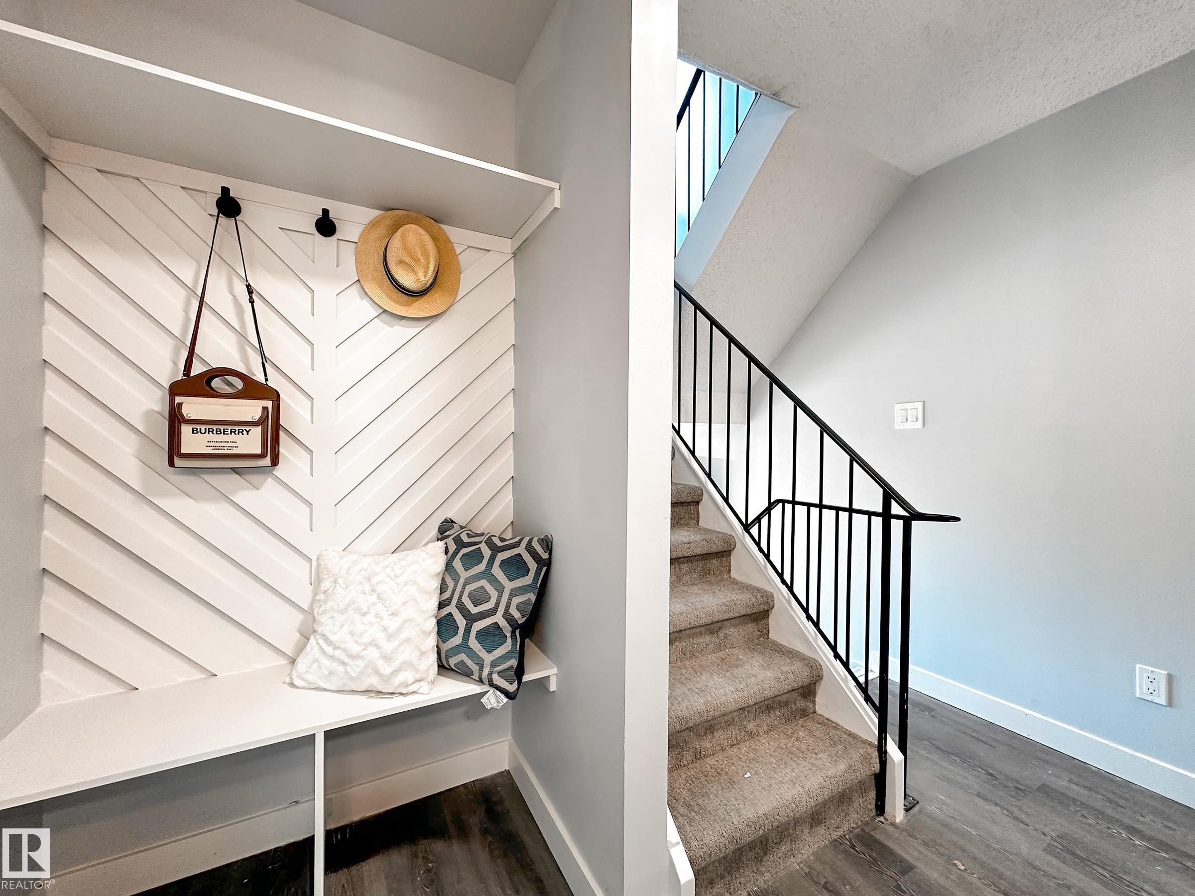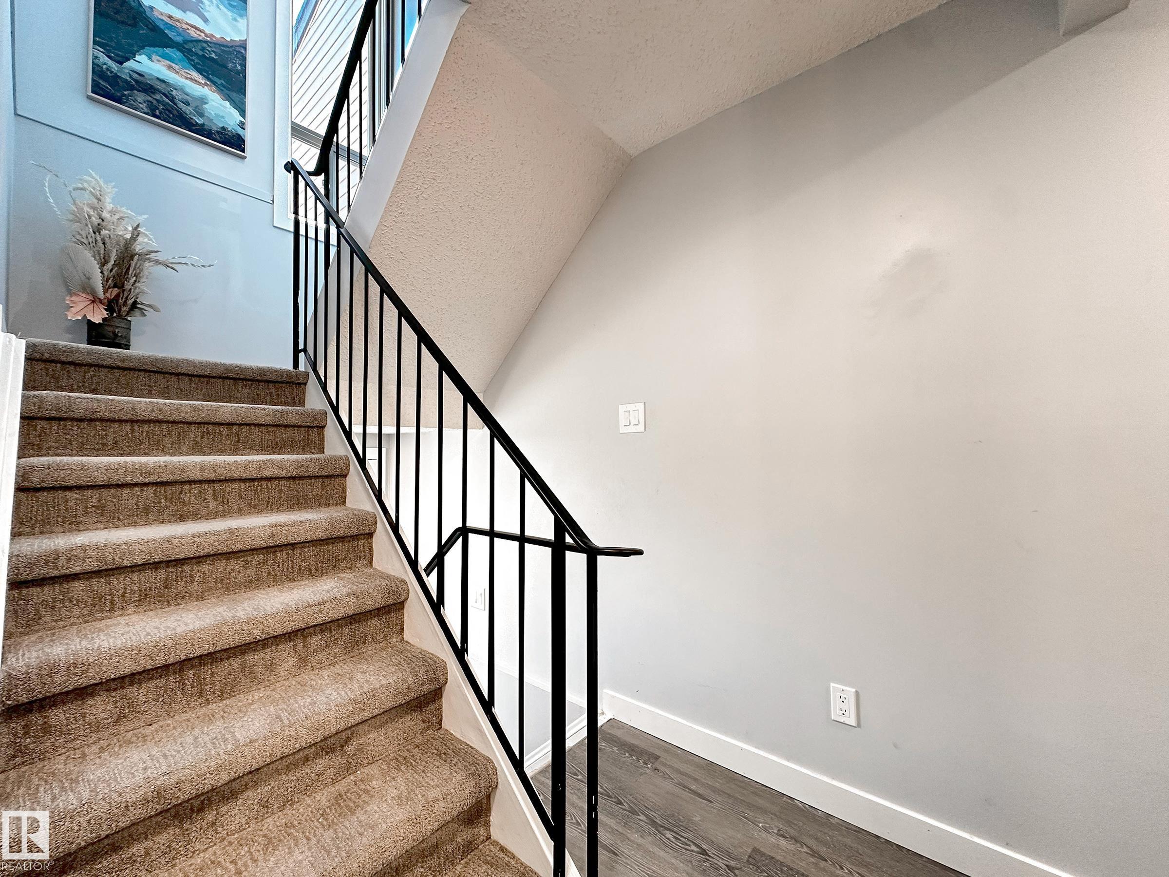 Welcome to this brand new renovated townhome, walking distance to West Edmonton Mall, and easy access to all amenities! When enter, you will be amazed by the luxury renovated open concept Kitchen, finished with trendy black and wood grains kitchen cabinets, and lustrous quartz countertop throughout. The brightening living room over looking the south backyard, bringing in tons of natural lights to the home. There are 3 bedrooms including the very spacious master bedroom can walk into the hotel style all tiled bathroom-floating vanity, and gleaming tiled standing shower. Fully finished basement has a 4th bedroom containing a big window-rare to find at basement. Other upgrades including, newer hot water tank, high efficiency furnace, custom built accent wall and opening bench, all modern lighting fixtures, stainless steel appliances. This unit is surrounded by greenspace and trees, great for kids to play around. Perfect home, do not miss!