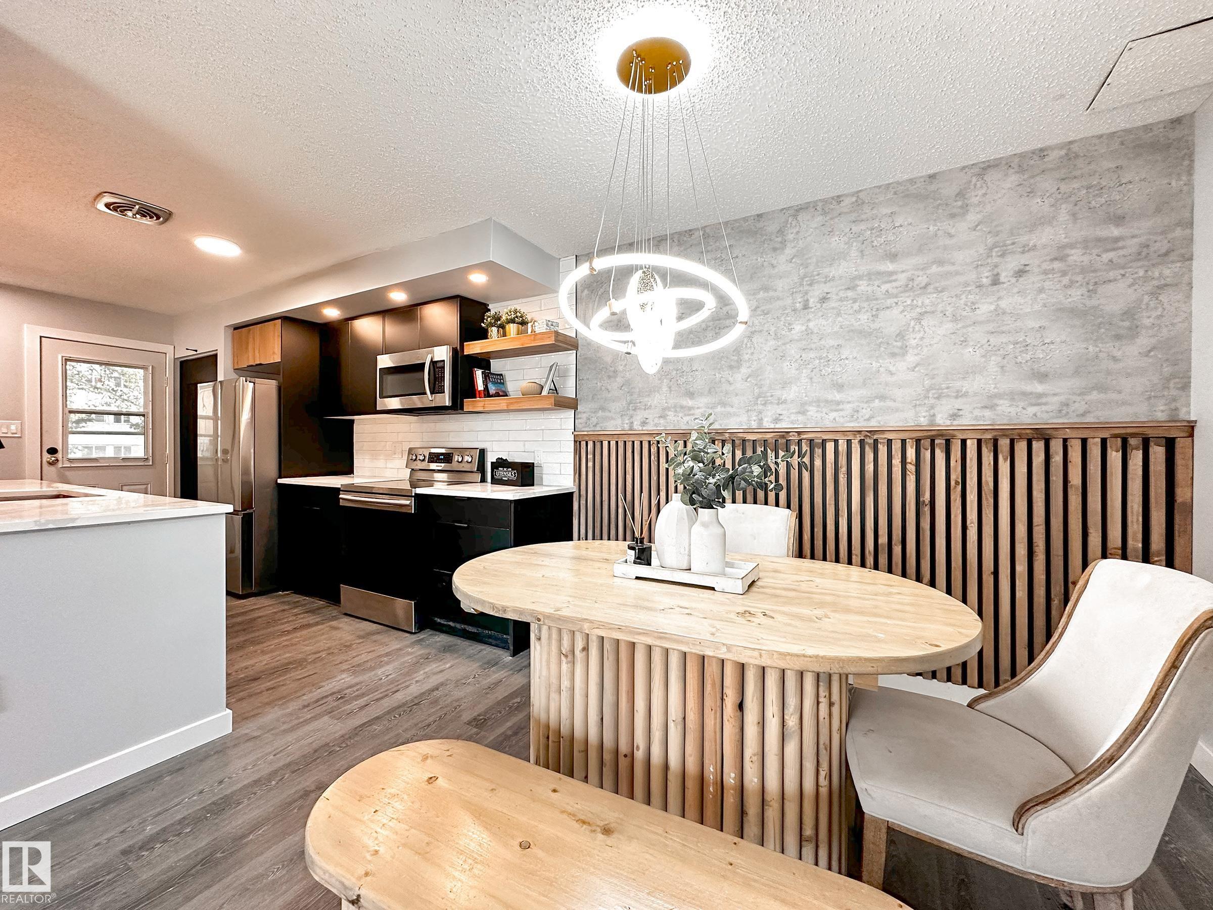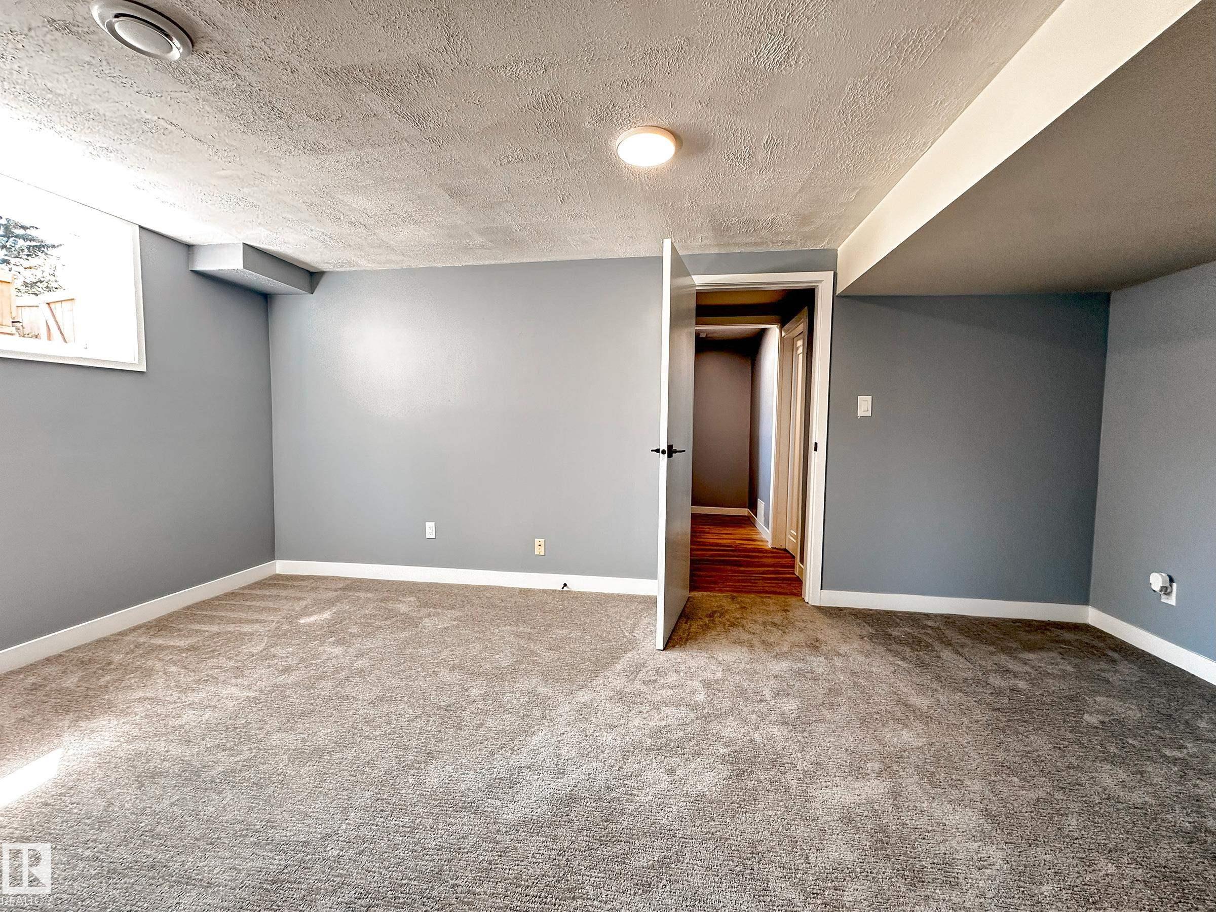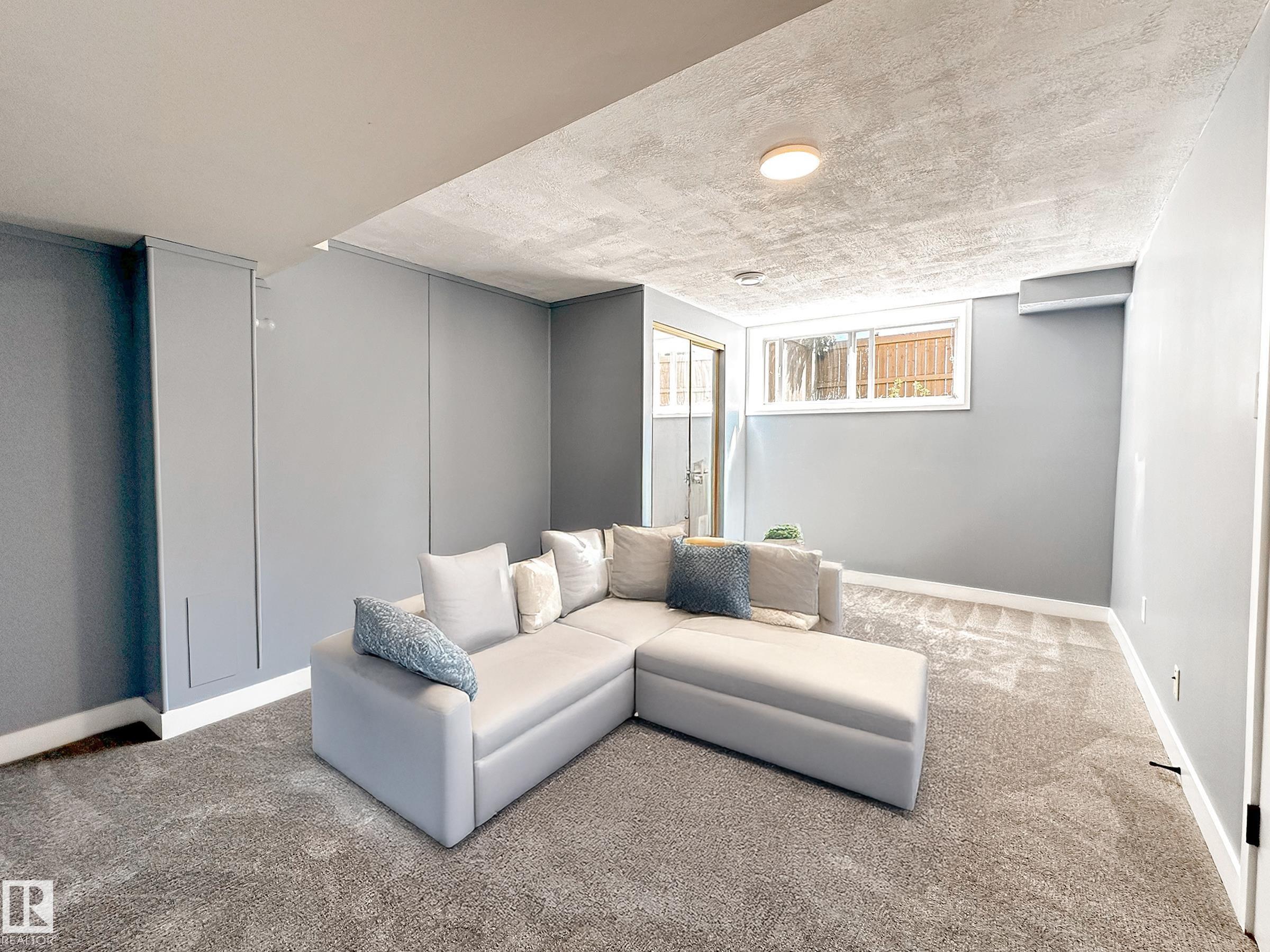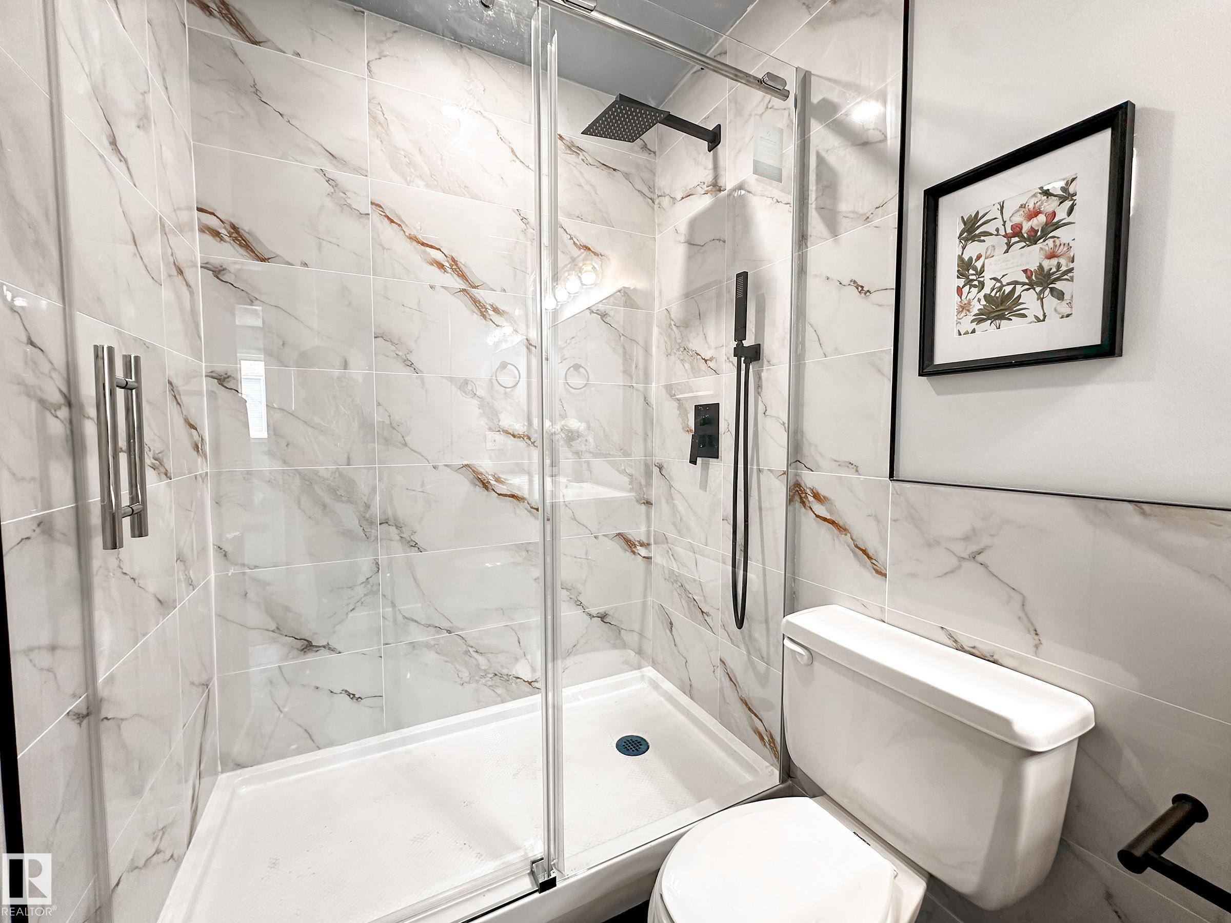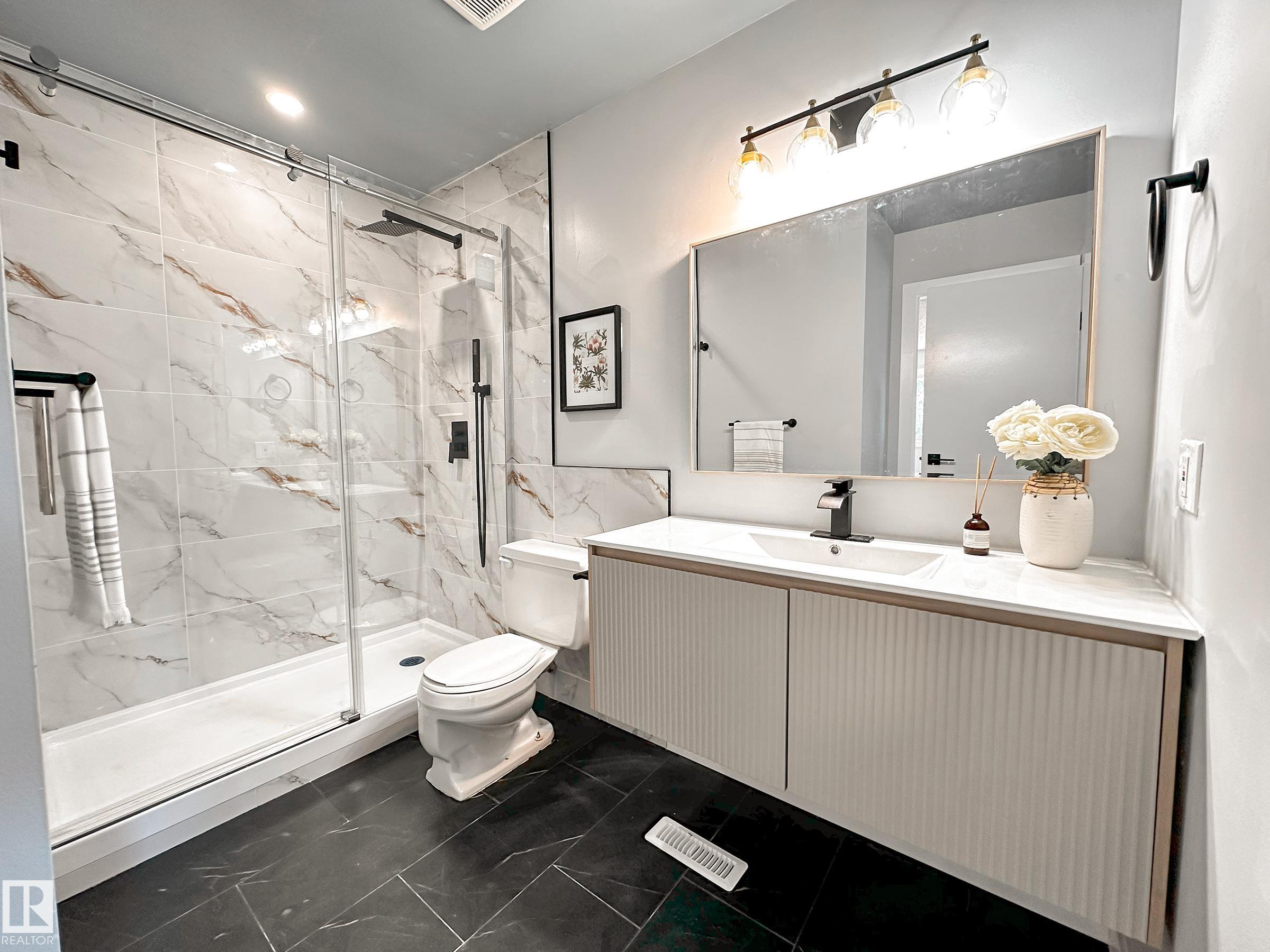Welcome to this brand new renovated townhome, walking distance to West Edmonton Mall, and easy access to all amenities! When enter, you will be amazed by the luxury renovated open concept Kitchen, finished with trendy black and wood grains kitchen cabinets, and lustrous quartz countertop throughout. The brightening living room over looking the south backyard, bringing in tons of natural lights to the home. There are 3 bedrooms including the very spacious master bedroom can walk into the hotel style all tiled bathroom-floating vanity, and gleaming tiled standing shower. Fully finished basement has a 4th bedroom containing a big window-rare to find at basement. Other upgrades including, newer hot water tank, high efficiency furnace, custom built accent wall and opening bench, all modern lighting fixtures, stainless steel appliances. This unit is surrounded by greenspace and trees, great for kids to play around. Perfect home, do not miss!