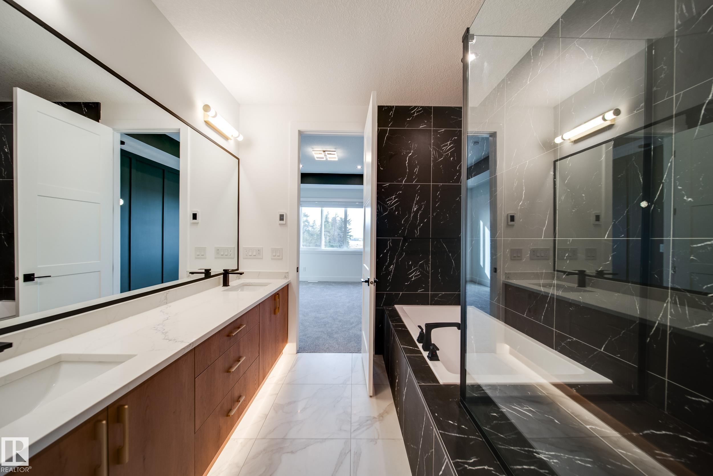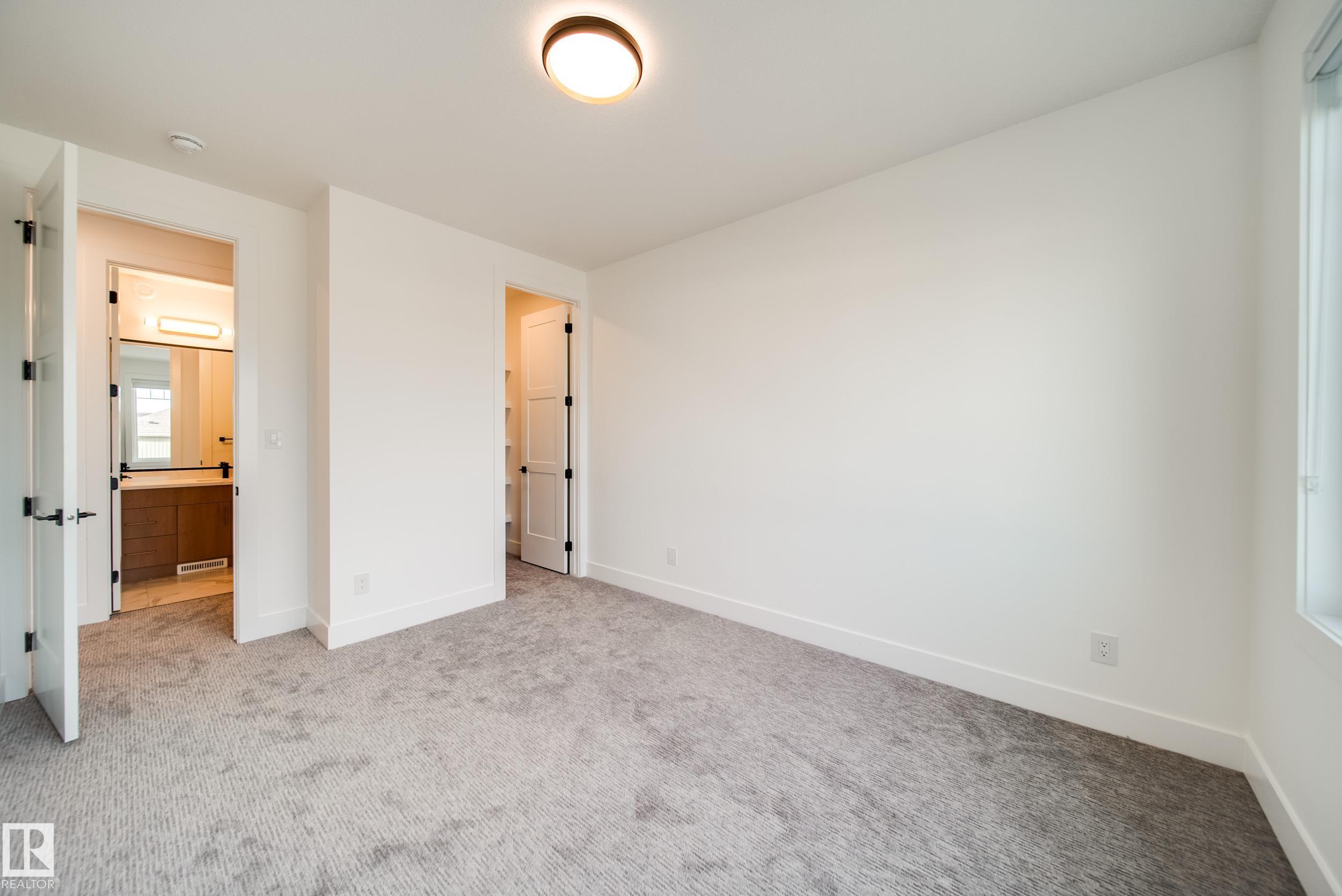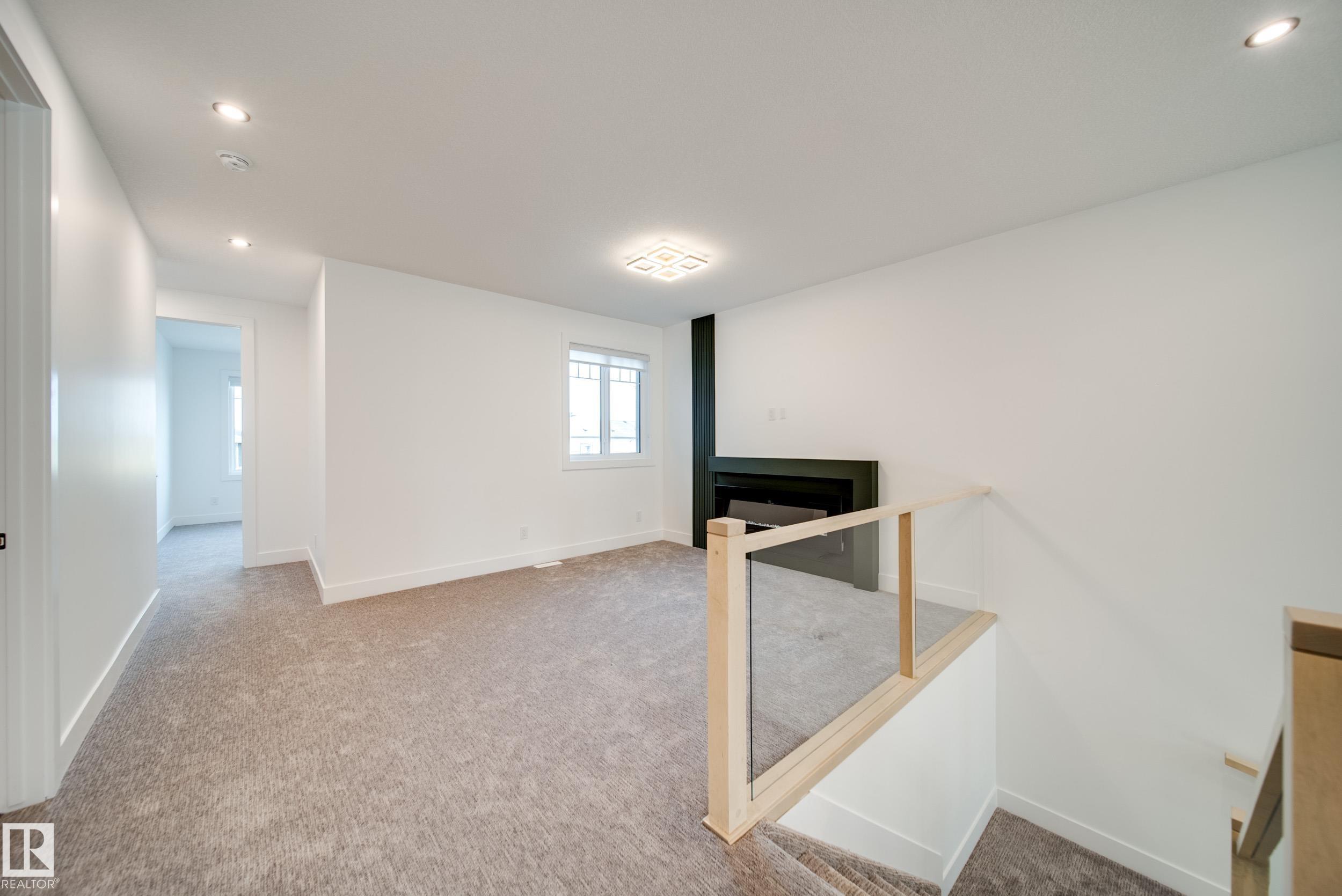 This SHOWSTOPPING TRIPLE CAR GARAGE WALKOUT home has every detail thoughtfully curated. Greeted by a bright, open layout w/9' ceilings, 8' doors, & premium finishes throughout. A dreamy chef's kitchen impresses w/ALL APPLIANCES INCLUDED, extended UPGRADED cabinetry w/ambient under lighting & sleek QUARTZ counters. An OPEN-TO-ABOVE great rm showcases a dramatic floor-to-ceiling CUSTOM millwork fireplace feat. wall. A flexible main den/4th bedrm pairs perfectly w/a 1/2 bath steps away. Upstairs, find a full bath, & unwind in a LARGE bonus rm w/a 2nd fireplace,+ 3 SPACIOUS bedrms incl. a LUXURY 5pc primary retreat w/dual sinks, HEATED TILE FLOORS, & a massive WIC conveniently connected to the upper laundry rm w/sink. An unfinished walkout basement offers endless possibilities & no rear neighbours means a serene backdrop from both the upper deck & lower patio. Complete w/exterior GEM lighting, WINDOW COVERINGS, & smart Ecobee thermostat, this home delivers turn key comfort, luxury & style from top to bottom.