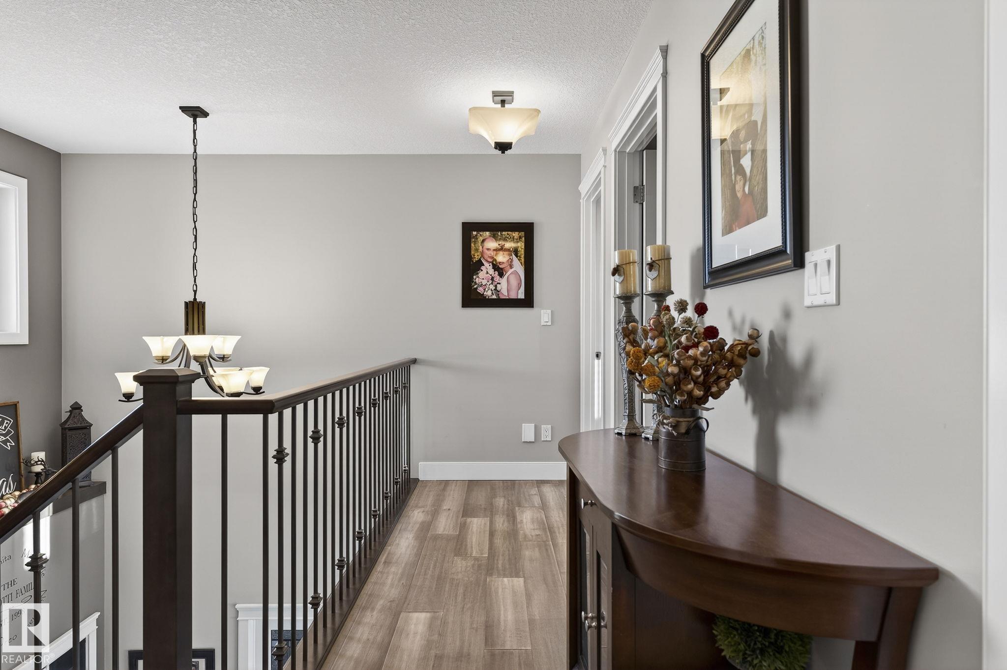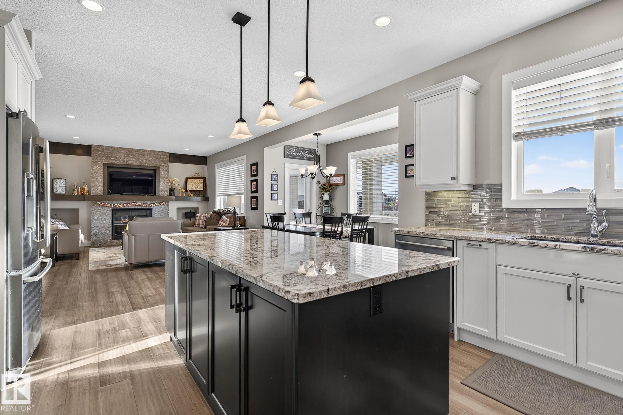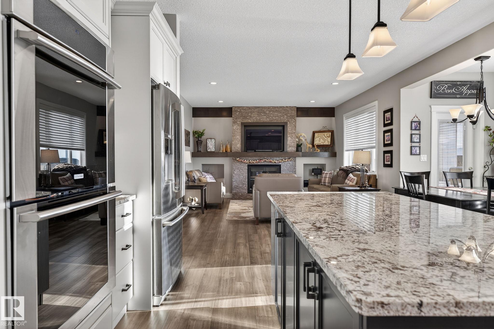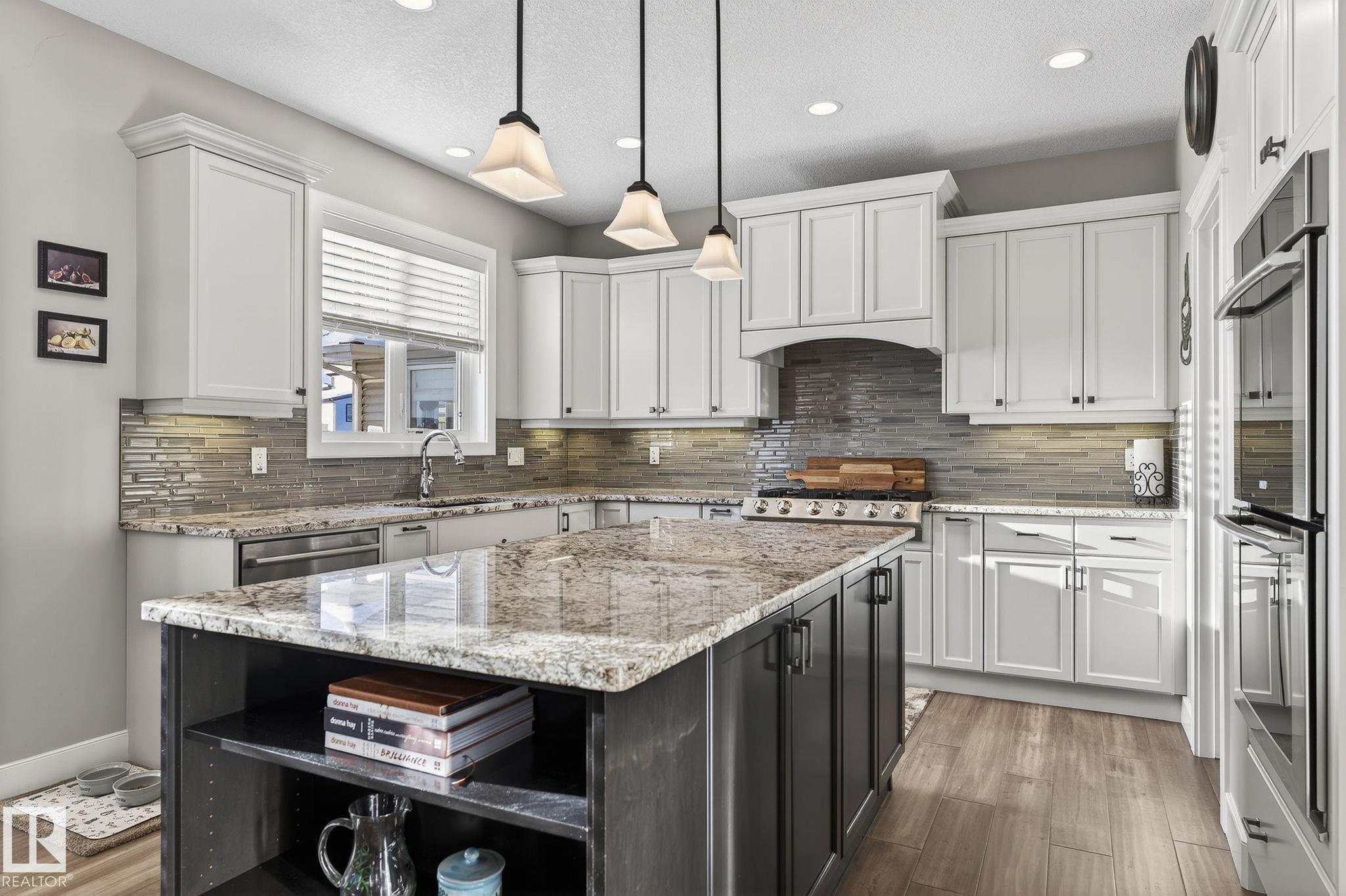 Tucked into a highly sought-after neighbourhood on a quiet cul-de-sac, this custom-built walkout home immediately stands apart for its craftsmanship and setting. Backing onto a tranquil pond and walking trails, the professionally landscaped yard with underground sprinklers is complemented by covered upper and lower decks designed for year-round enjoyment. The main floor boasts newer engineered hardwood flooring, a bright open layout with a dedicated office, inviting entertainment space, and a chef-inspired kitchen featuring a large island, gas cooktop, and two built-in ovens. Upstairs, generous bedrooms with walk-in closets--each with built-in organizers--plus a thoughtfully designed laundry room, and an expansive primary retreat with dual sinks, freestanding tub, and oversized walk-in closet provide both function and style. The fully finished walkout basement extends the living space with an entertainment area, wet bar, gas fireplace, and additional bedroom--perfectly balancing comfort and lifestyle.