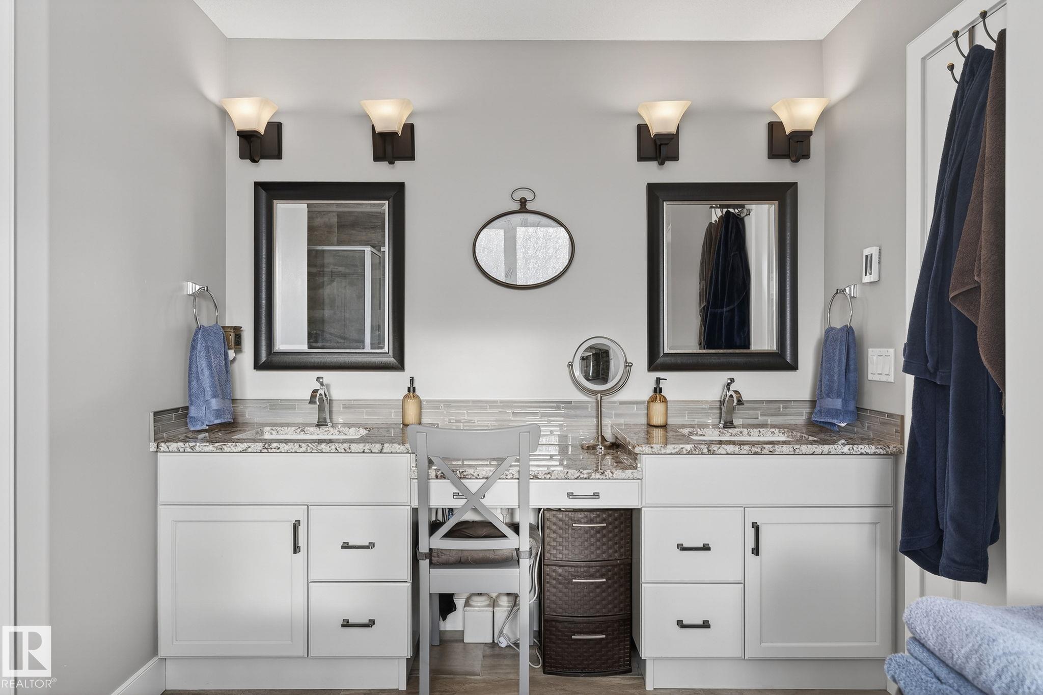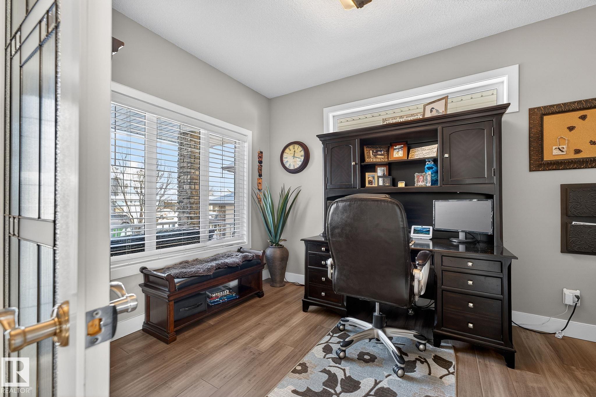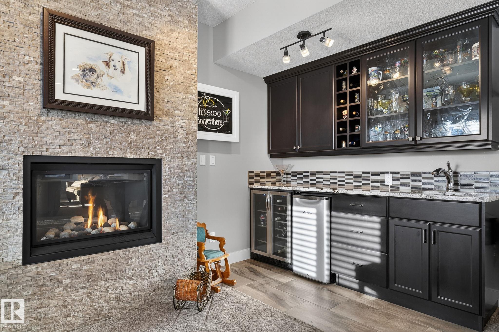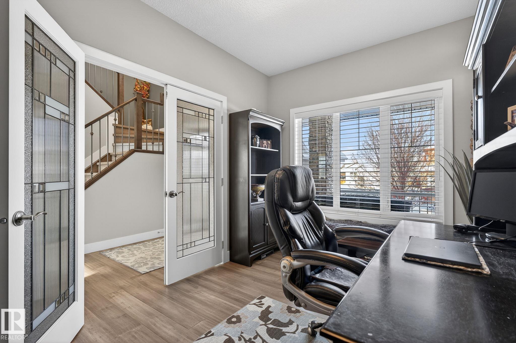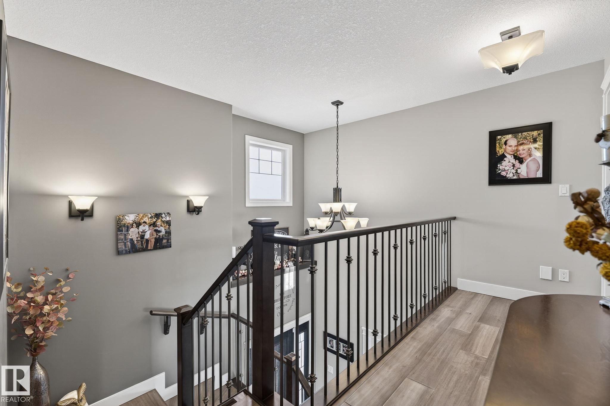 Tucked into a highly sought-after neighbourhood on a quiet cul-de-sac, this custom-built walkout home immediately stands apart for its craftsmanship and setting. Backing onto a tranquil pond and walking trails, the professionally landscaped yard with underground sprinklers is complemented by covered upper and lower decks designed for year-round enjoyment. The main floor boasts newer engineered hardwood flooring, a bright open layout with a dedicated office, inviting entertainment space, and a chef-inspired kitchen featuring a large island, gas cooktop, and two built-in ovens. Upstairs, generous bedrooms with walk-in closets--each with built-in organizers--plus a thoughtfully designed laundry room, and an expansive primary retreat with dual sinks, freestanding tub, and oversized walk-in closet provide both function and style. The fully finished walkout basement extends the living space with an entertainment area, wet bar, gas fireplace, and additional bedroom--perfectly balancing comfort and lifestyle.