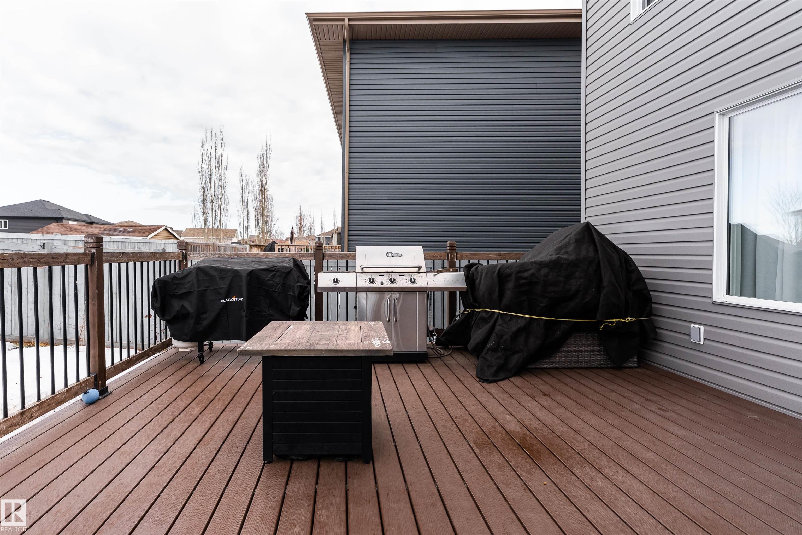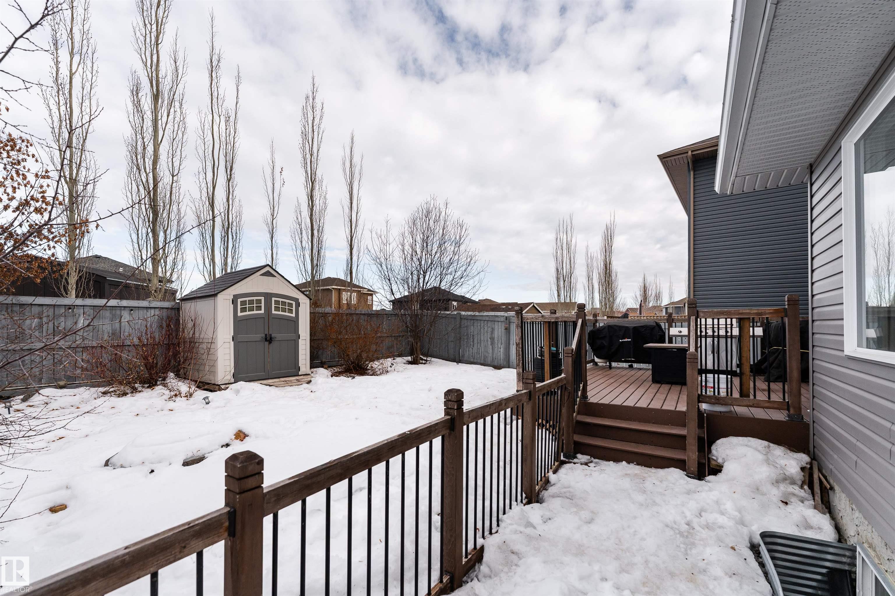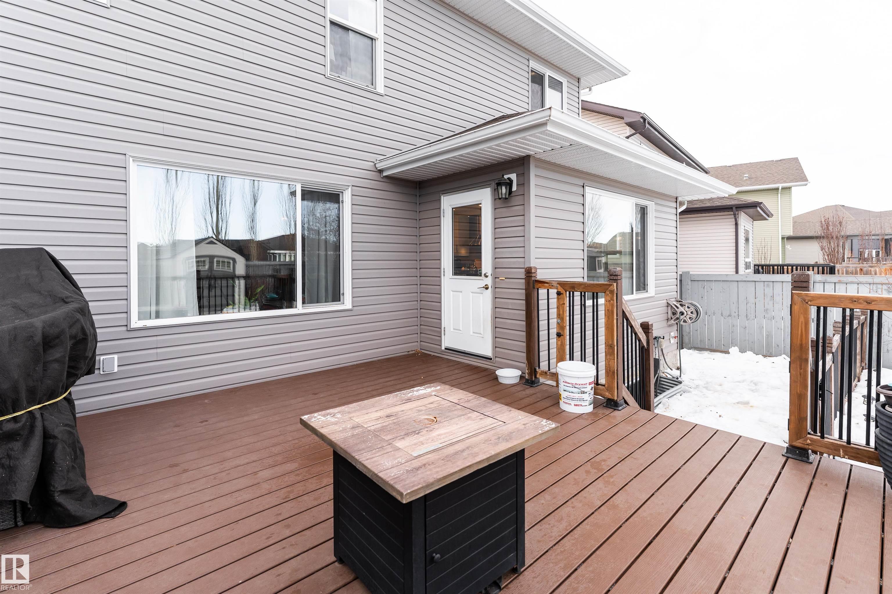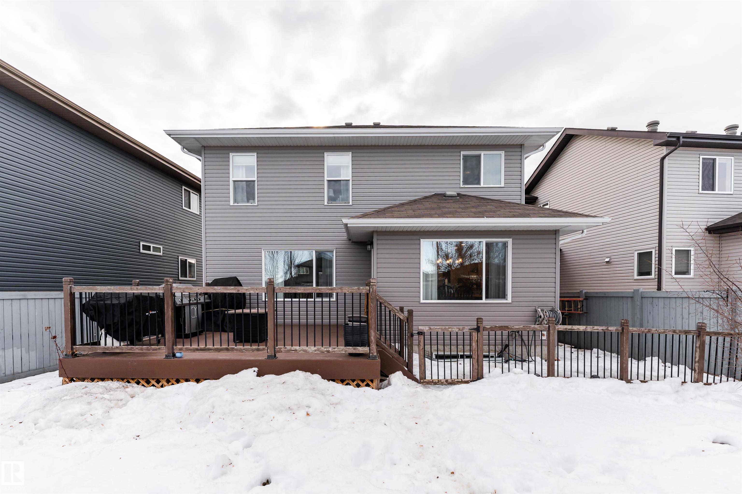 This beautiful home is located in Southfort Meadows in Fort Saskatchewan! The main floor features an open concept with updated vinyl plank flooring the living room featuring a gas fireplace, beautiful white kitchen cabinets with granite countertops. All appliances come with including a beautiful gas range. The dining room has a garden door to the spacious composite deck for those summer nights. The dog run is built in for you already and the yard is spacious without back neighbours looking directly in on you. A 2-pc bath and main floor laundry complete this level. The upper floor has a large bonus room at the front of the house, primary bedroom with a beautiful 5 pc ensuite, 2 more bedrooms and a large 4 pc main bath (perfect for sharing). The fully finished basement is complete with rec room, 4th bedroom and a 3 piece bath. A/C and garage heat included in the sale.