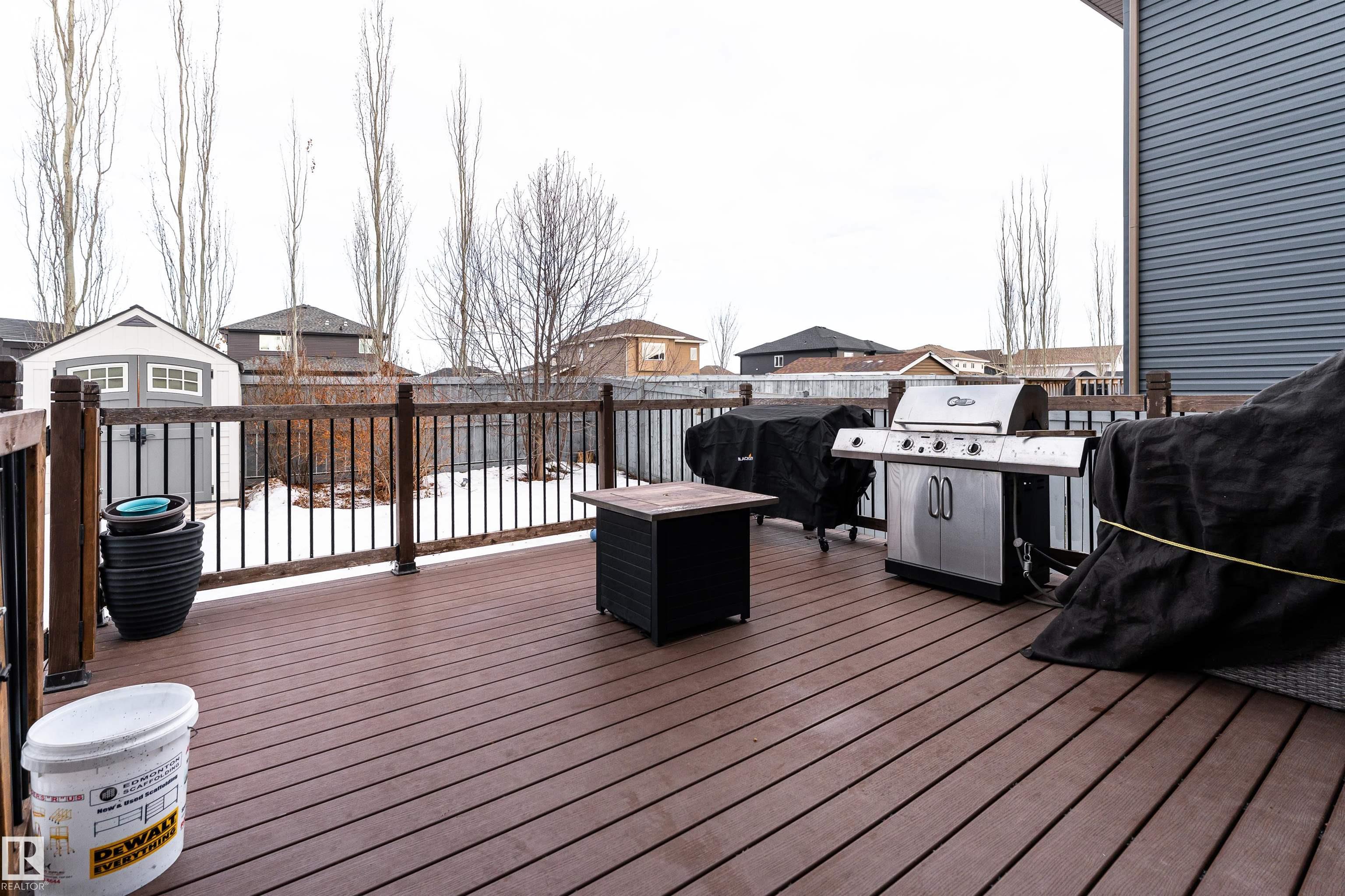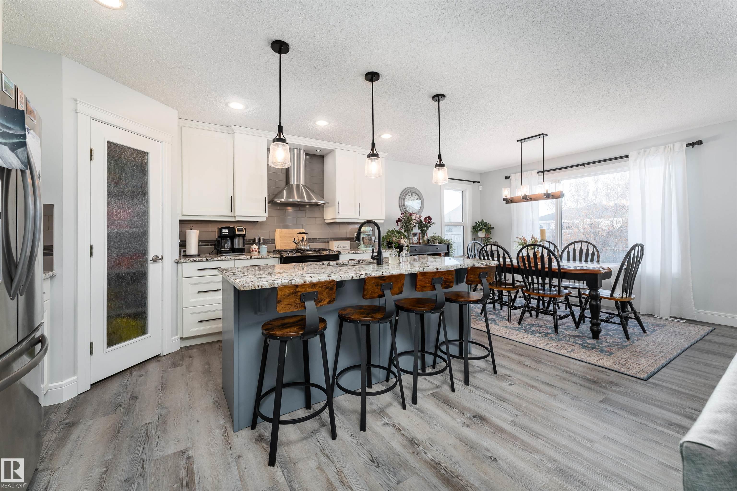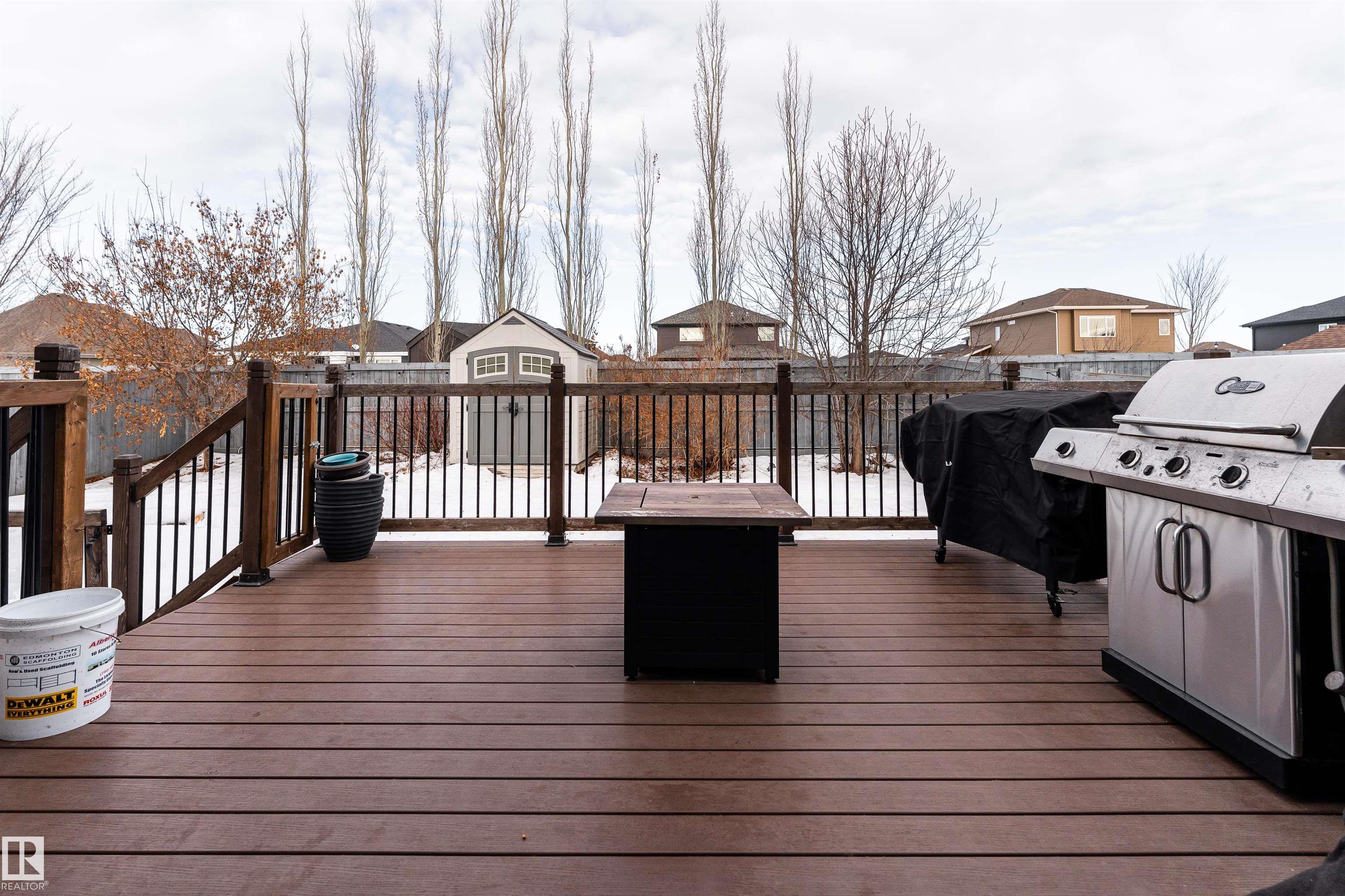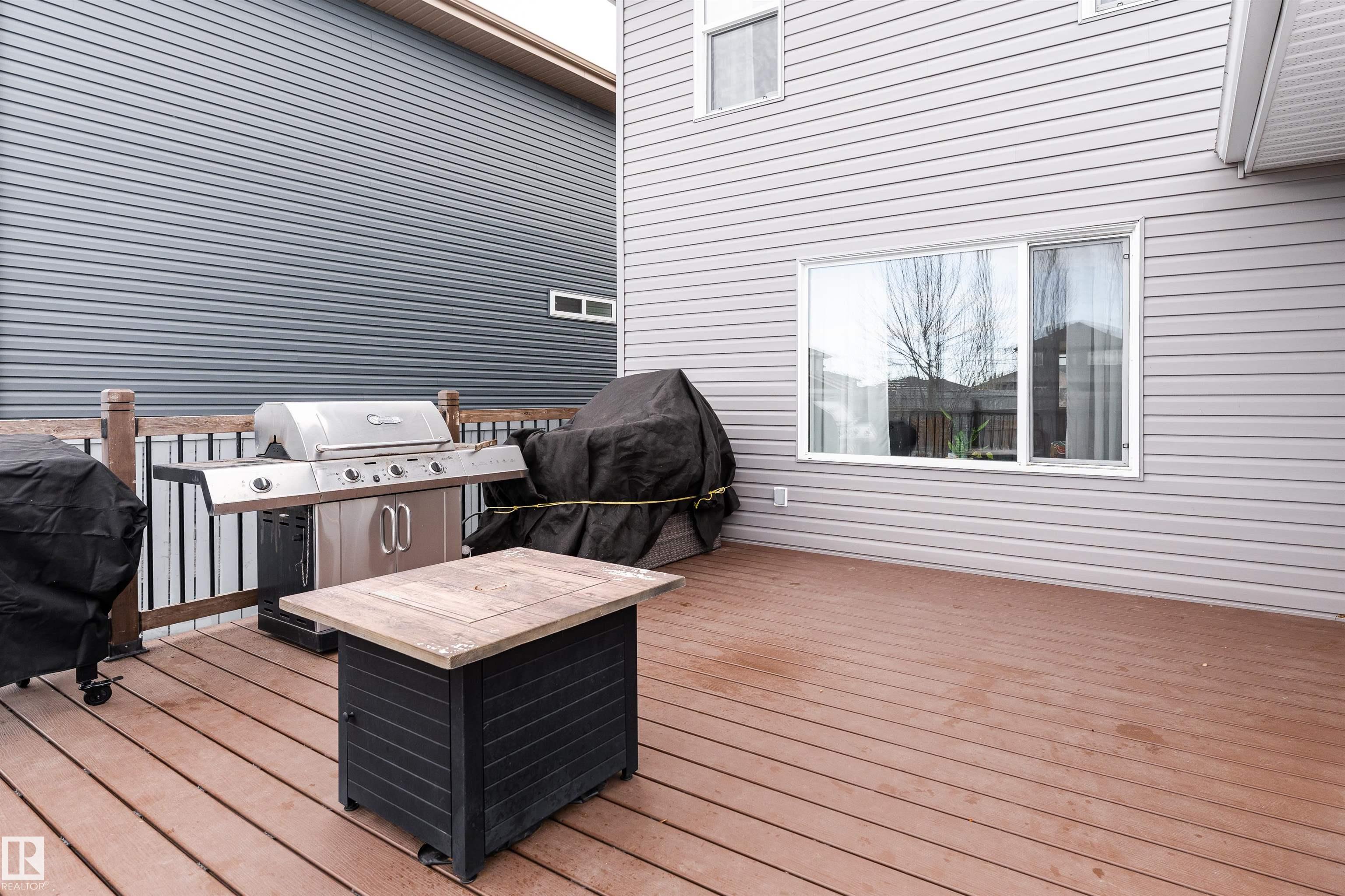 This beautiful home is located in Southfort Meadows in Fort Saskatchewan! The main floor features an open concept with updated vinyl plank flooring the living room featuring a gas fireplace, beautiful white kitchen cabinets with granite countertops. All appliances come with including a beautiful gas range. The dining room has a garden door to the spacious composite deck for those summer nights. The dog run is built in for you already and the yard is spacious without back neighbours looking directly in on you. A 2-pc bath and main floor laundry complete this level. The upper floor has a large bonus room at the front of the house, primary bedroom with a beautiful 5 pc ensuite, 2 more bedrooms and a large 4 pc main bath (perfect for sharing). The fully finished basement is complete with rec room, 4th bedroom and a 3 piece bath. A/C and garage heat included in the sale.