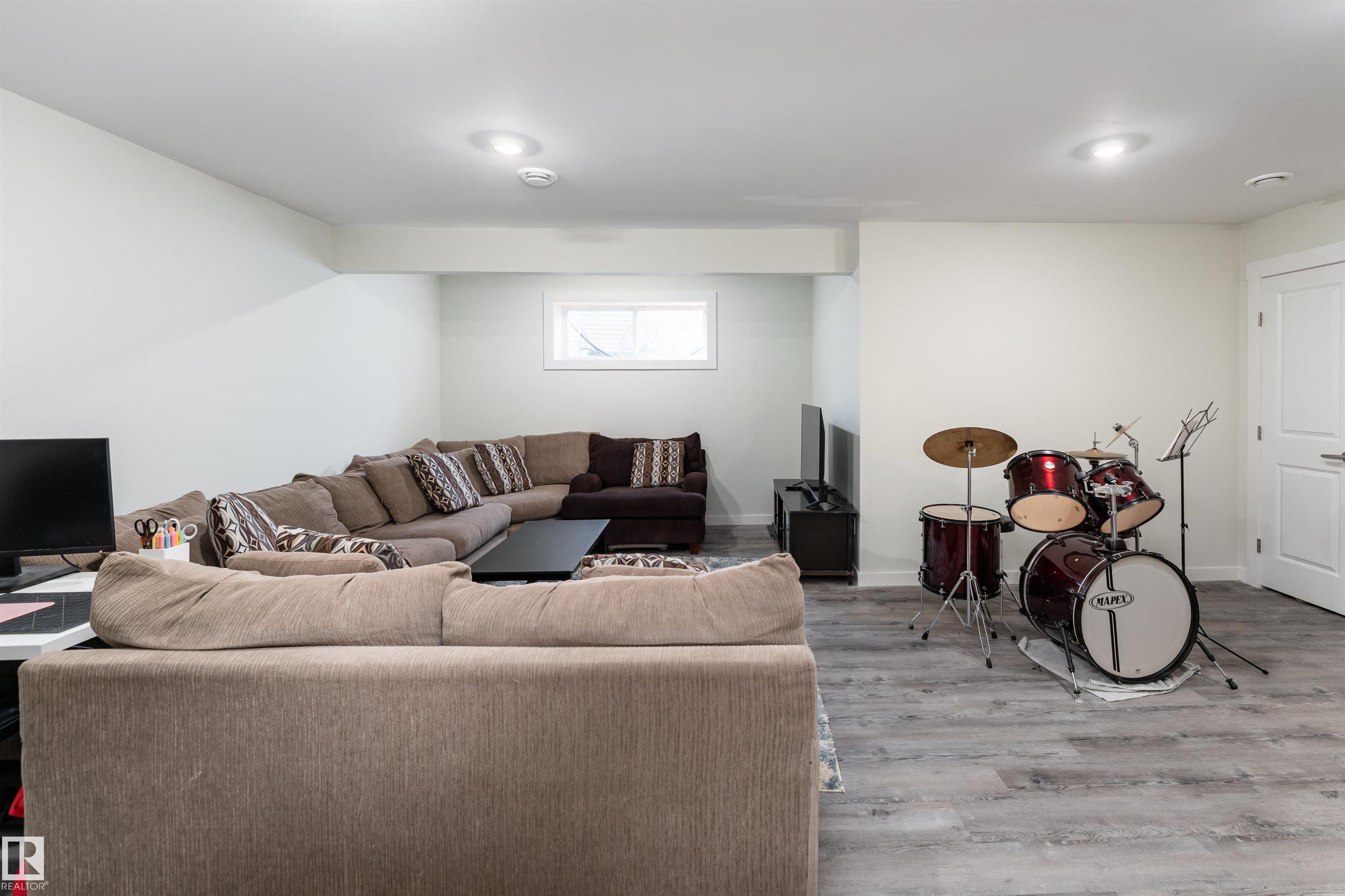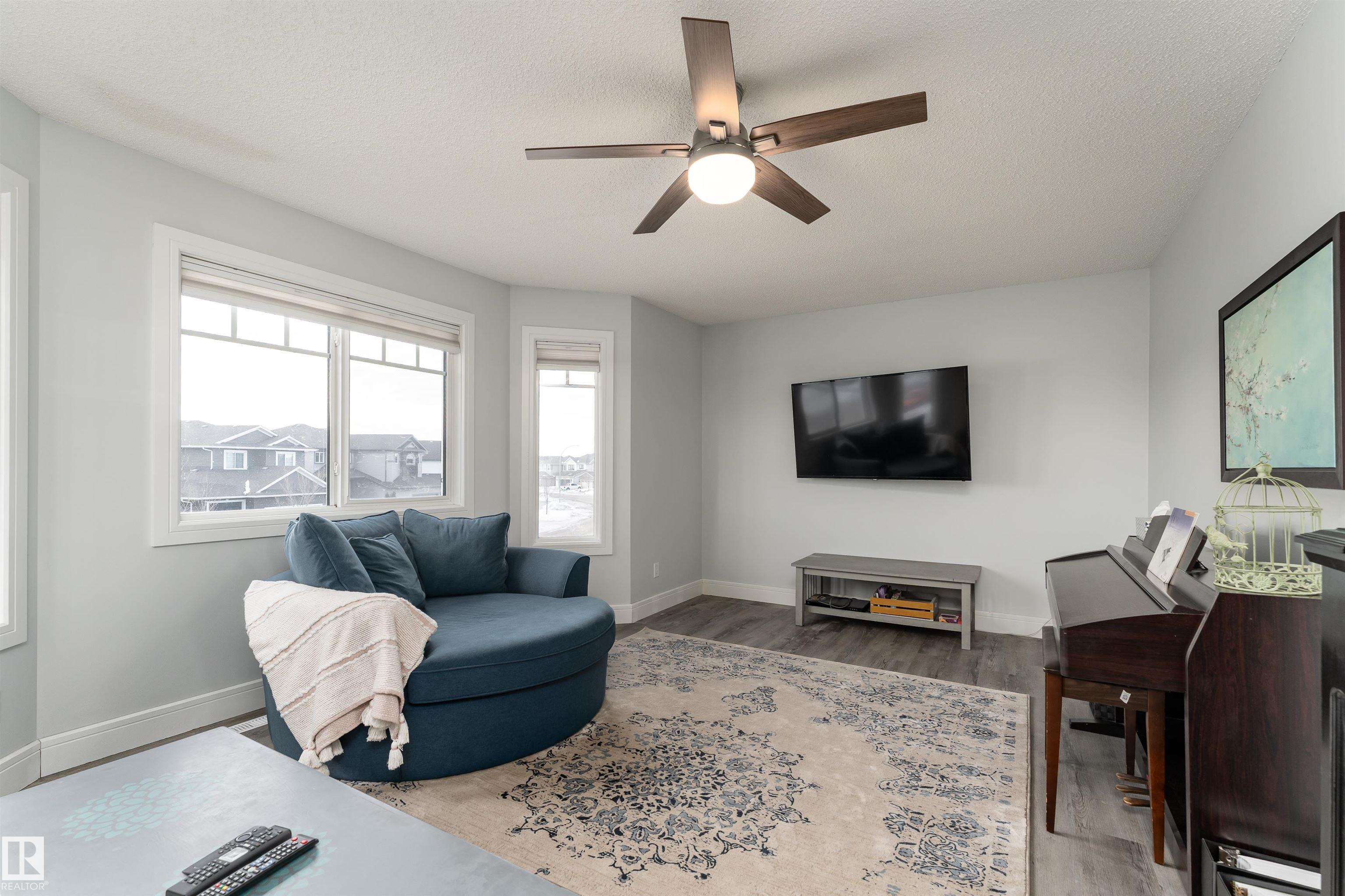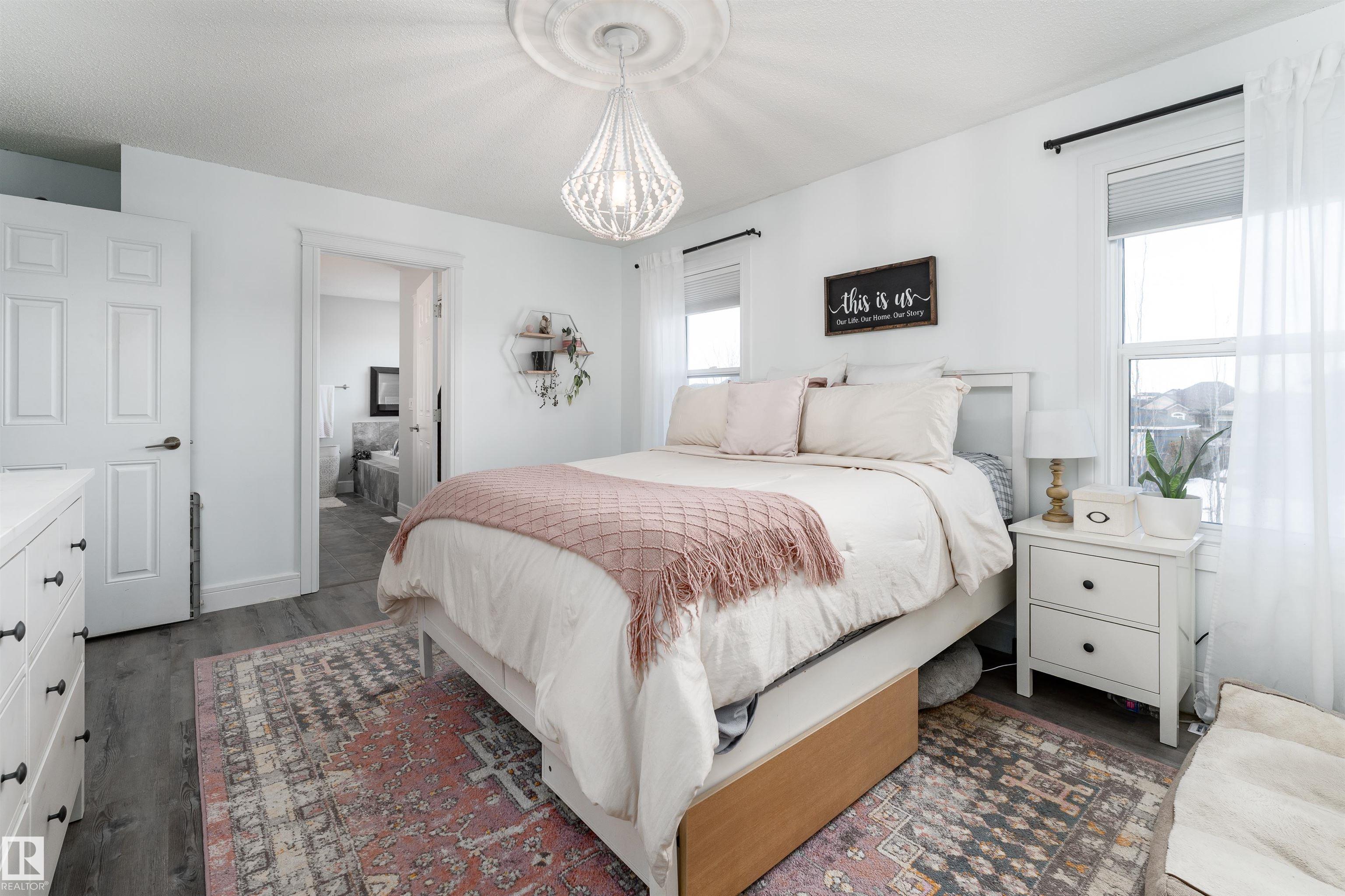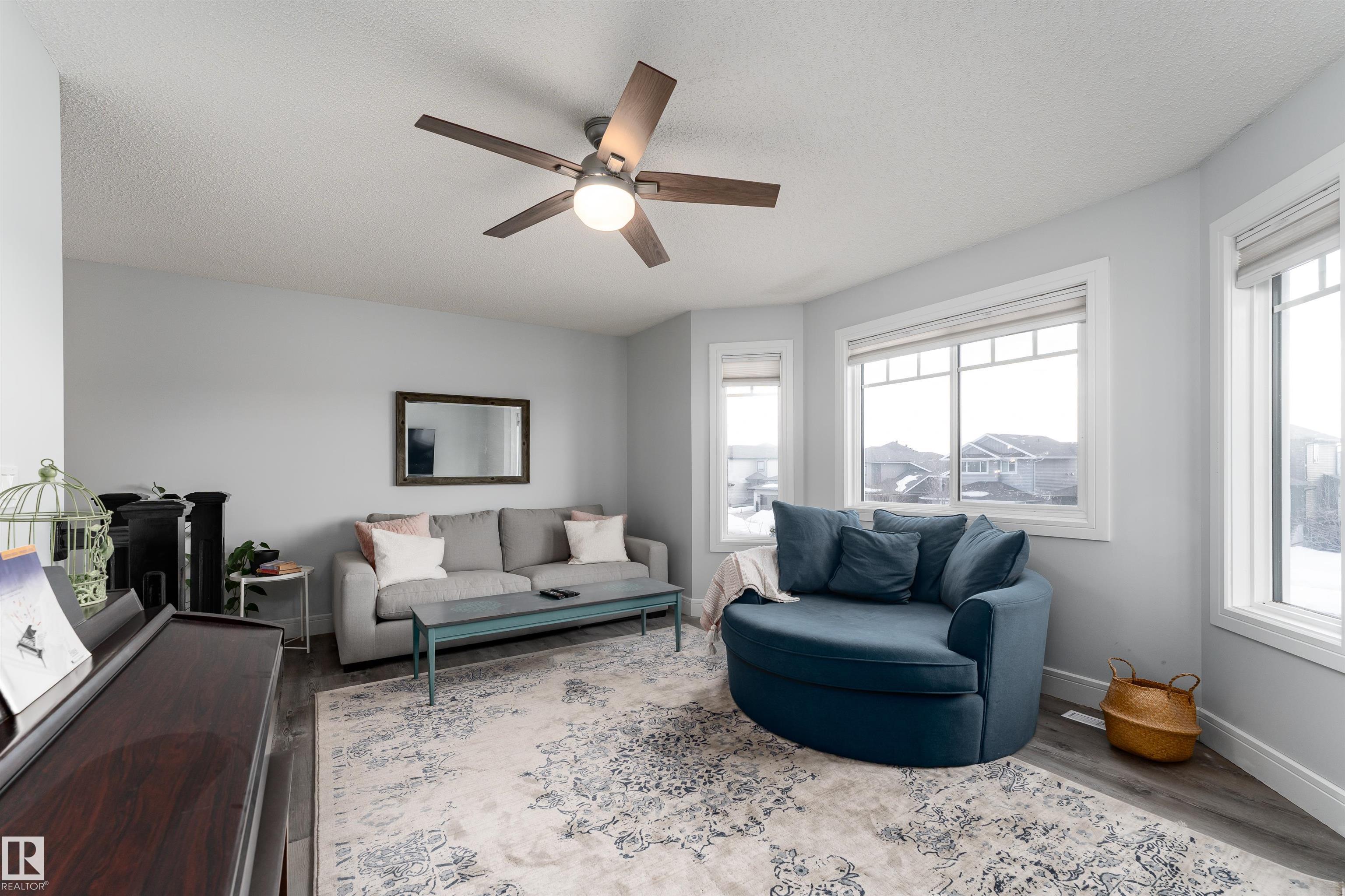 This beautiful home is located in Southfort Meadows in Fort Saskatchewan! The main floor features an open concept with updated vinyl plank flooring the living room featuring a gas fireplace, beautiful white kitchen cabinets with granite countertops. All appliances come with including a beautiful gas range. The dining room has a garden door to the spacious composite deck for those summer nights. The dog run is built in for you already and the yard is spacious without back neighbours looking directly in on you. A 2-pc bath and main floor laundry complete this level. The upper floor has a large bonus room at the front of the house, primary bedroom with a beautiful 5 pc ensuite, 2 more bedrooms and a large 4 pc main bath (perfect for sharing). The fully finished basement is complete with rec room, 4th bedroom and a 3 piece bath. A/C and garage heat included in the sale.