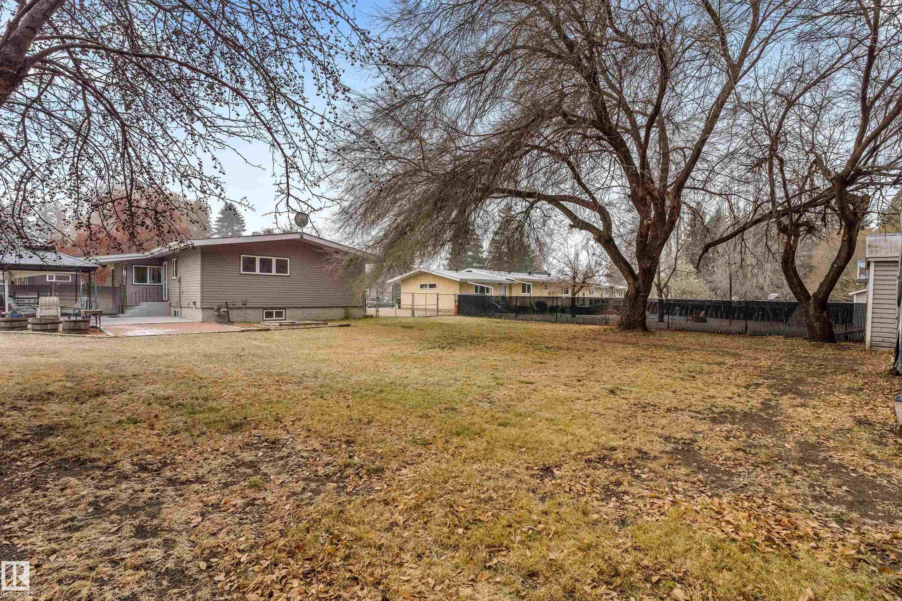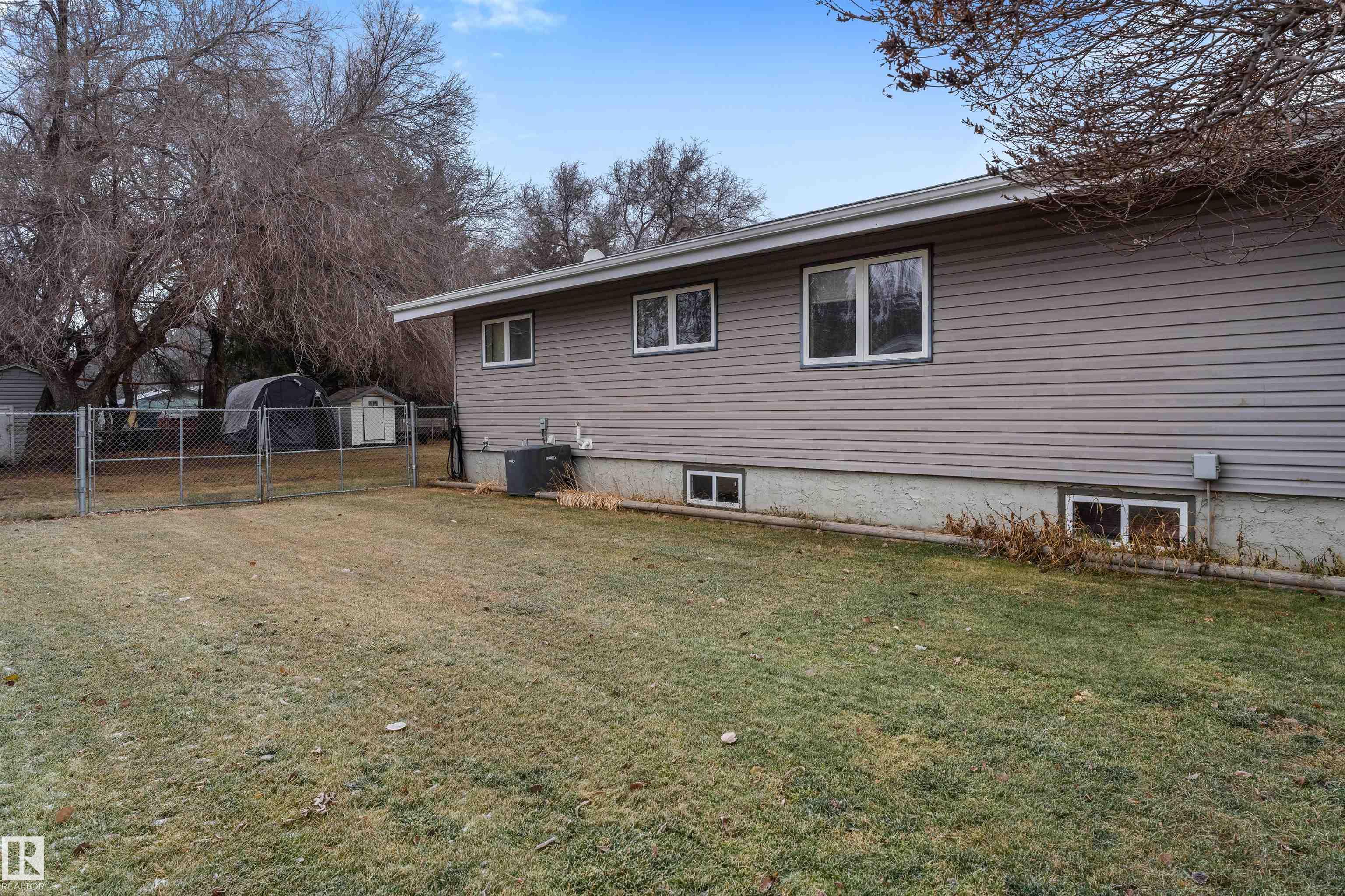 You won't believe just how massive this lot is; 1/3 of an acre right in town! Step into 2,281 sqft of timeless, air-conditioned living in this classic bungalow, peacefully nestled on a mature tree-lined street. The main level offers 3 bedrooms all serviced by a 4pc bathroom, including a serene primary retreat with private 2pc ensuite. A modern colour palette, & newer windows throughout enhance the home's contemporary appeal, while hardwood flooring and vaulted ceiling add a touch of cozy elegance to the south-facing living room. The expansive kitchen exudes warmth & functionality, and paired with the dining room, they're ideal for everyday living & entertaining. A finished basement reveals a vast recreation room, cold room, storage area, & huge 4th bedroom, making convenient use of the 3pc bathroom & laundry. The sprawling lot showcases a beautifully fenced backyard with more than enough room for virtually any size garage or shop! 20ft gates on either side allow you to drive in one side and out the other!