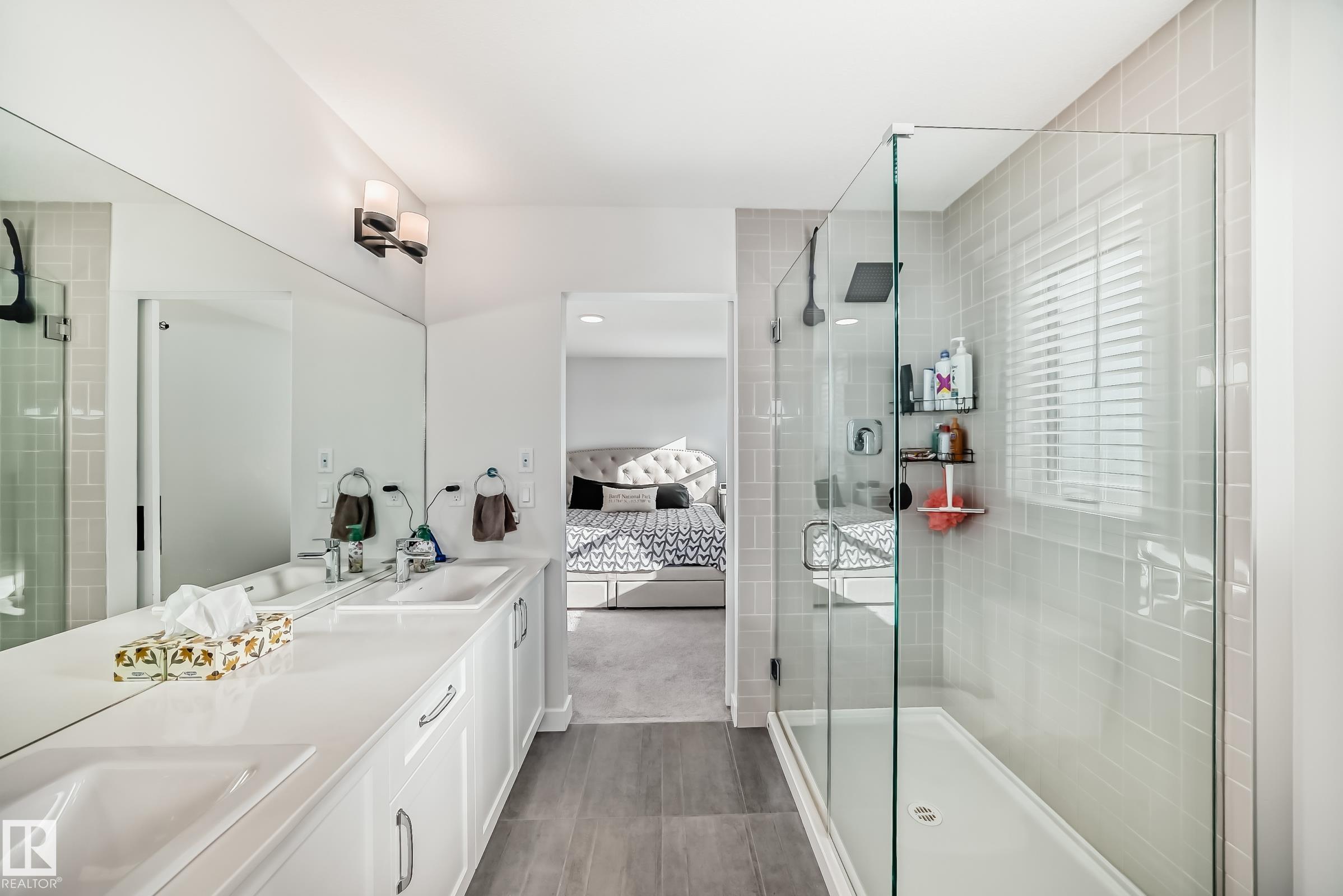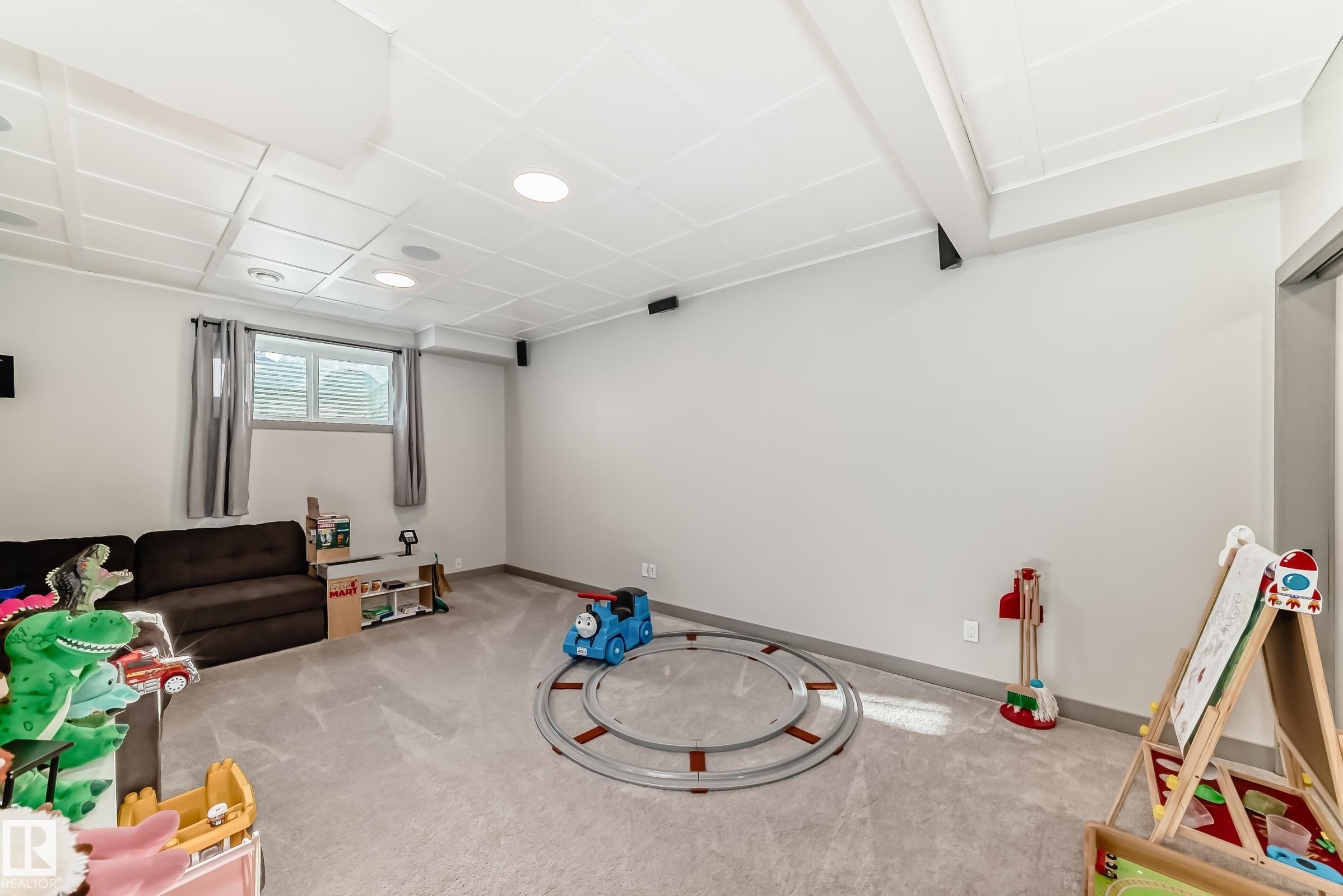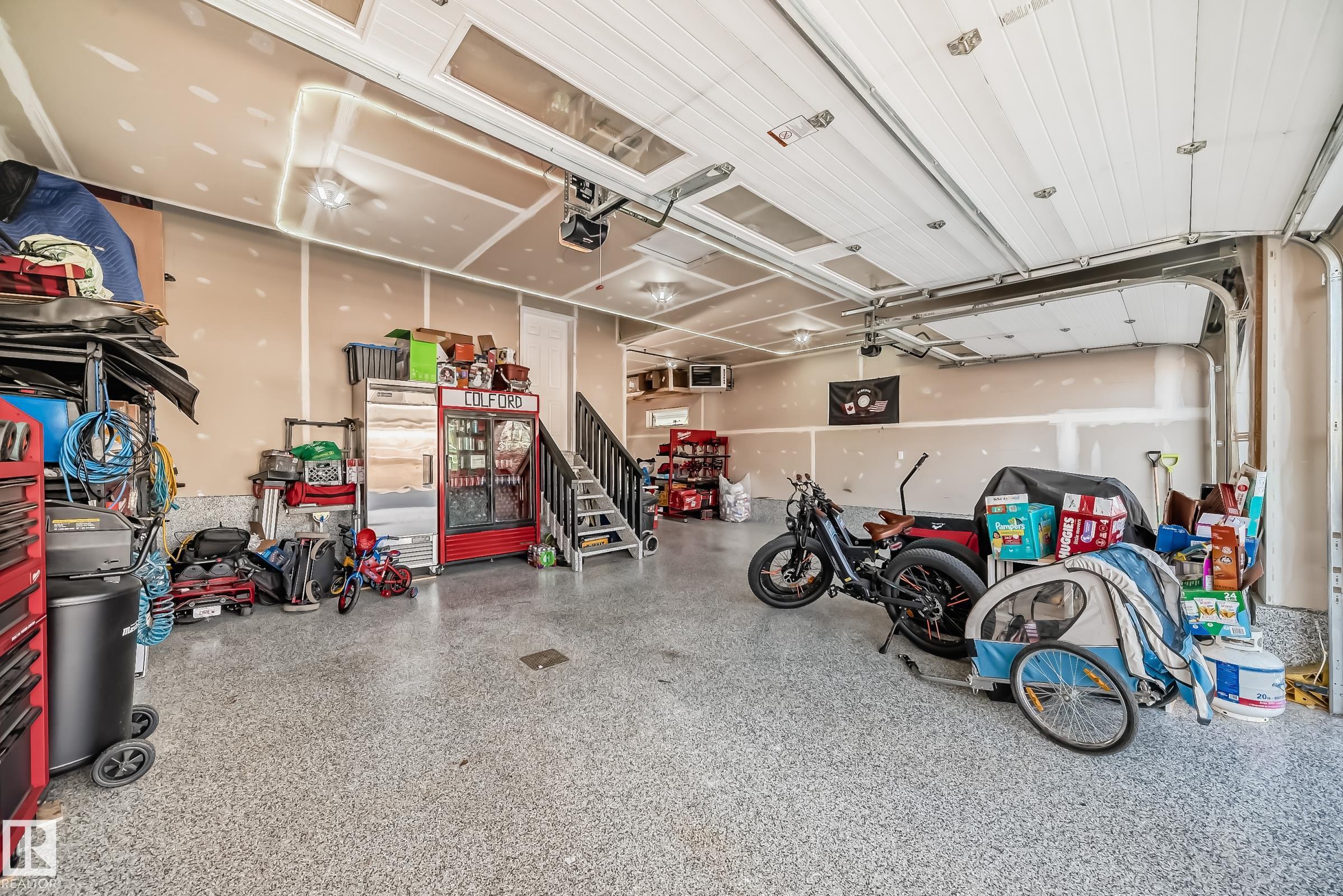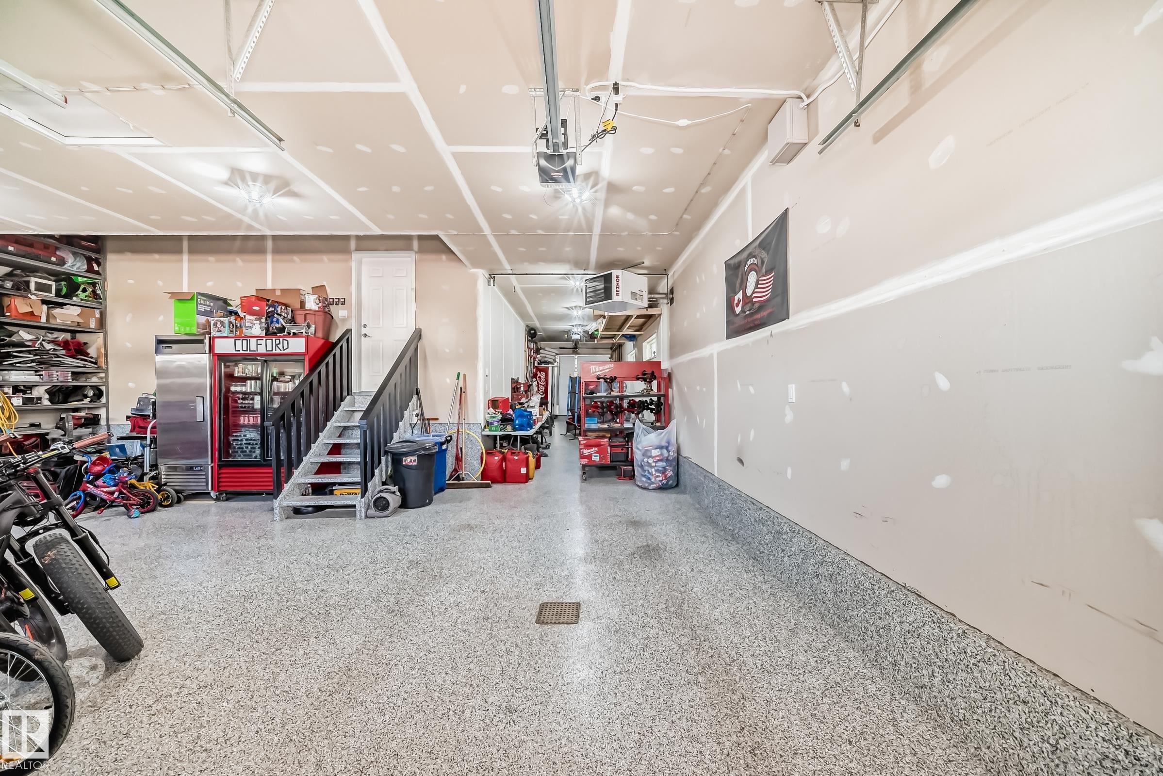 Alquinn Custom built home 2225 square feet of living area & Oversize Garage This garage could fit up to 5 cars! This drive thru garage, has epoxy flooring, heater, rear garage door, backyard powered gate to the back lane. This home features all the upgrades including central air conditioning, Astro lights and upgraded black stainless steel appliances, The basement is completely finished (PERMITTED) with a huge family room, full bathroom with heated floors and a large bedroom. Upstairs boasts a large movie room . Enjoy your back deck with composite decking . This home is a must see in a great community! Located close to schools and playgrounds. Come check out this home and all it has to offer! Fully finished, just move in and enjoy! South backing yard! blinds will stay. tall Gray shelves stay