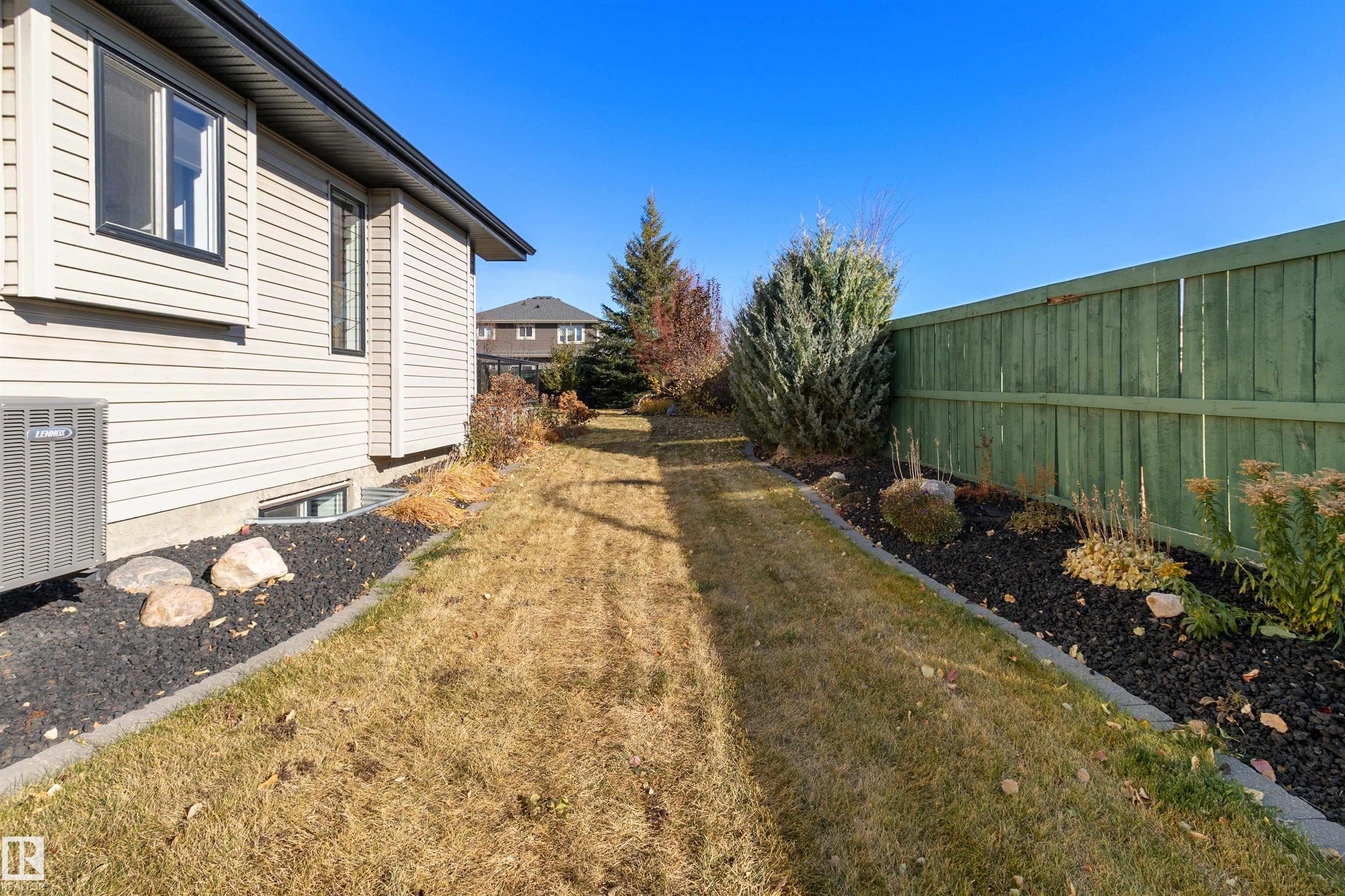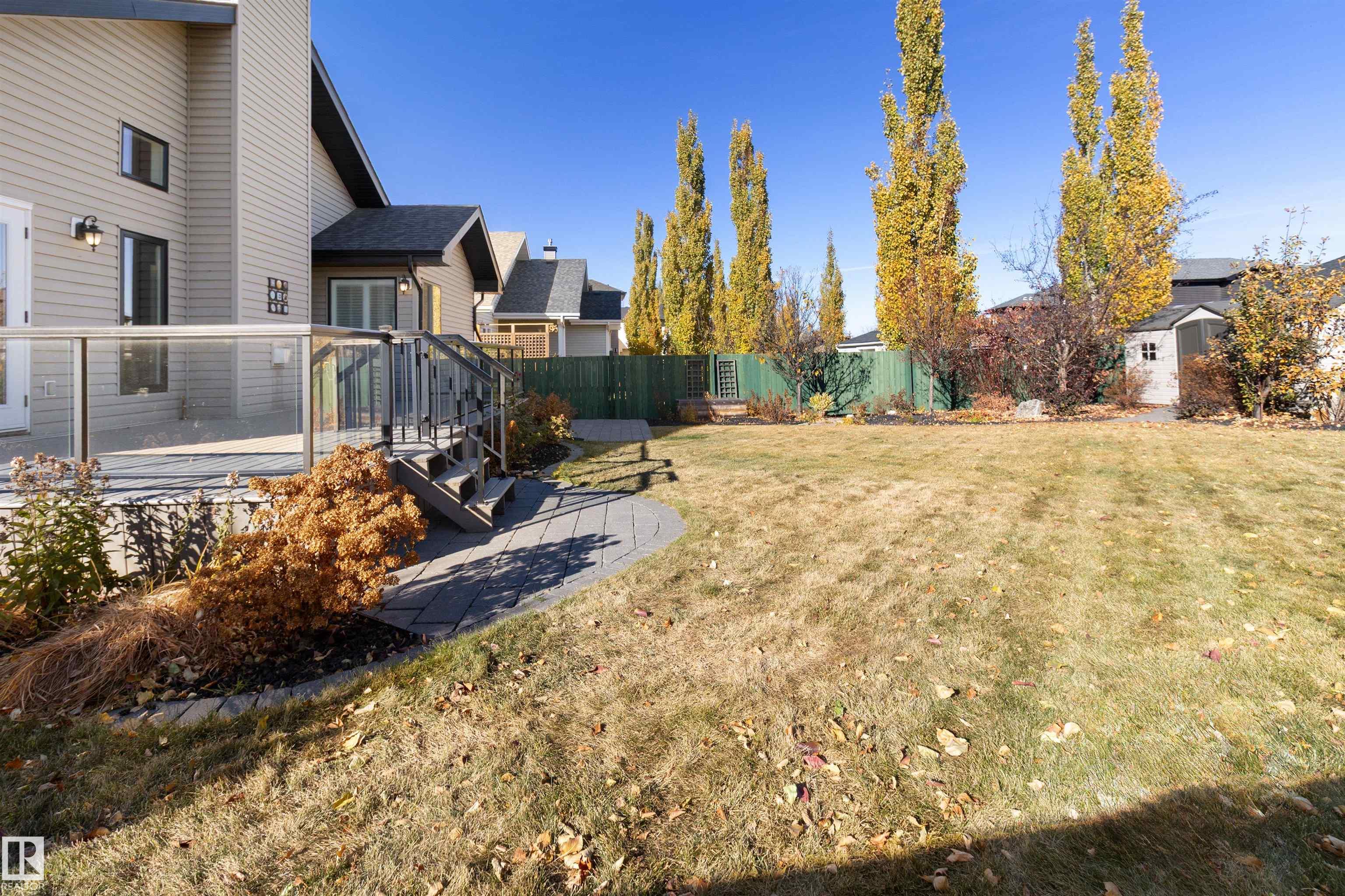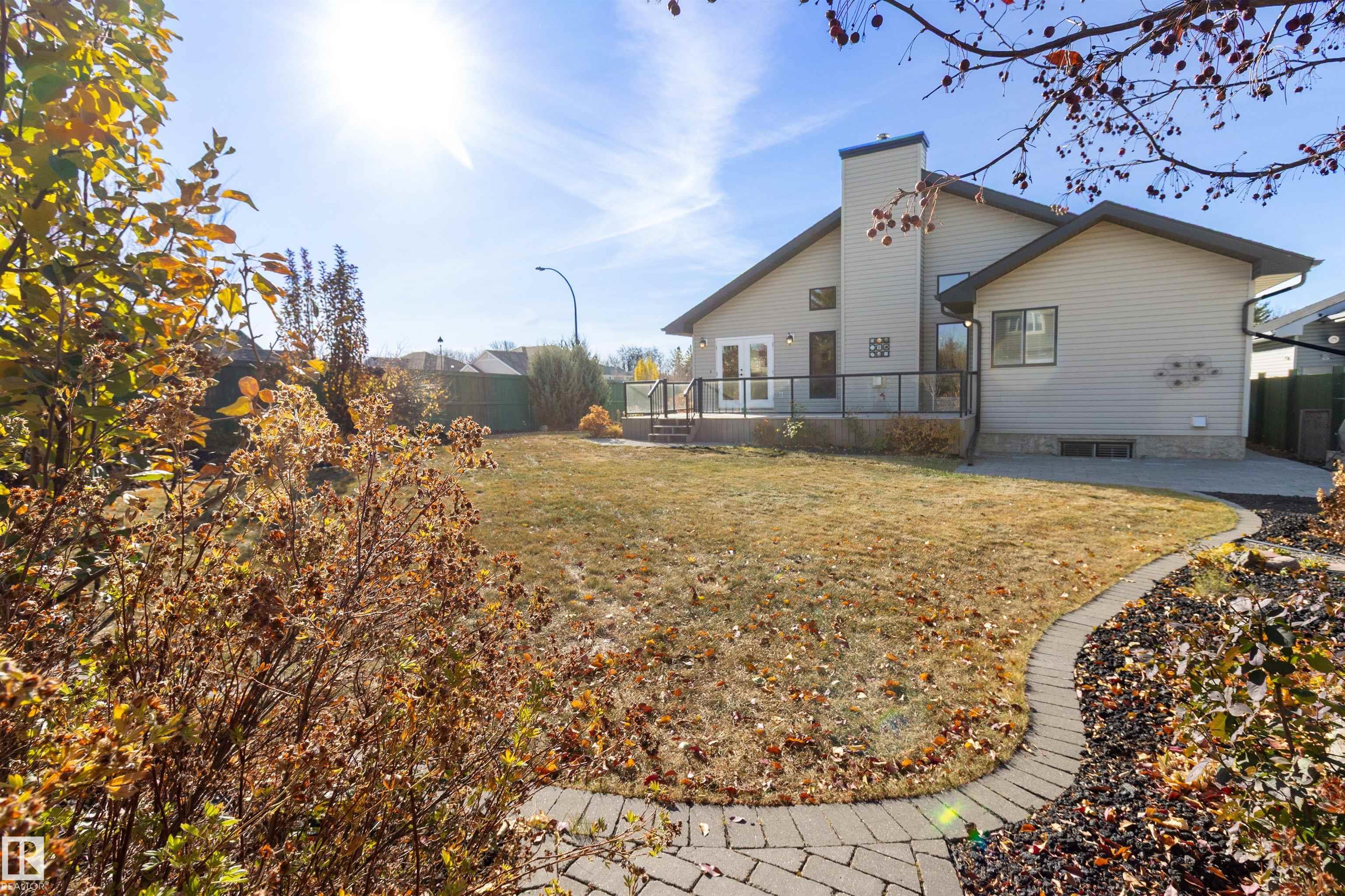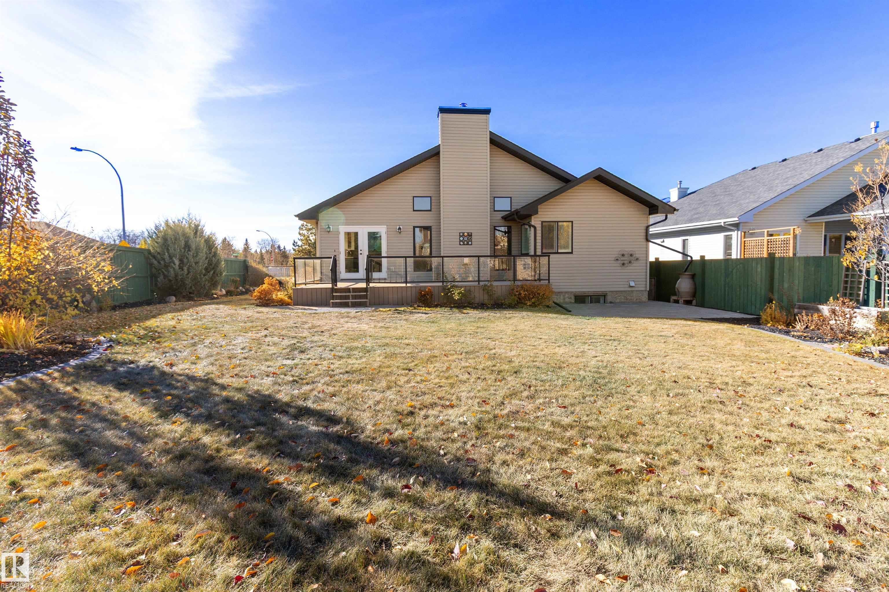 Welcome to this stunning 1,600 sq. ft. open-plan bungalow tucked away on a quiet cul-de-sac in Ardrossan! This home blends elegance and comfort with a bright great room, highlighted by a stone-accented gas fireplace and an abundance of windows. The gourmet island kitchen is perfect for entertaining, featuring quality appliances, rich cabinetry, and a spacious dining area. Enjoy the warmth of hardwood floors and a main floor den ideal for work or relaxation. The primary suite offers a full luxury ensuite, while a second bedroom adds flexible living space. Downstairs, the finished basement boasts a large rec room, two additional bedrooms, and a full bath. Step outside to a beautifully landscaped and fenced yard with a large deck and welcoming front porch. With stone accents, prime walkability to parks, schools, and the Ardrossan Rec Centre -- this is a rare gem not to be missed!