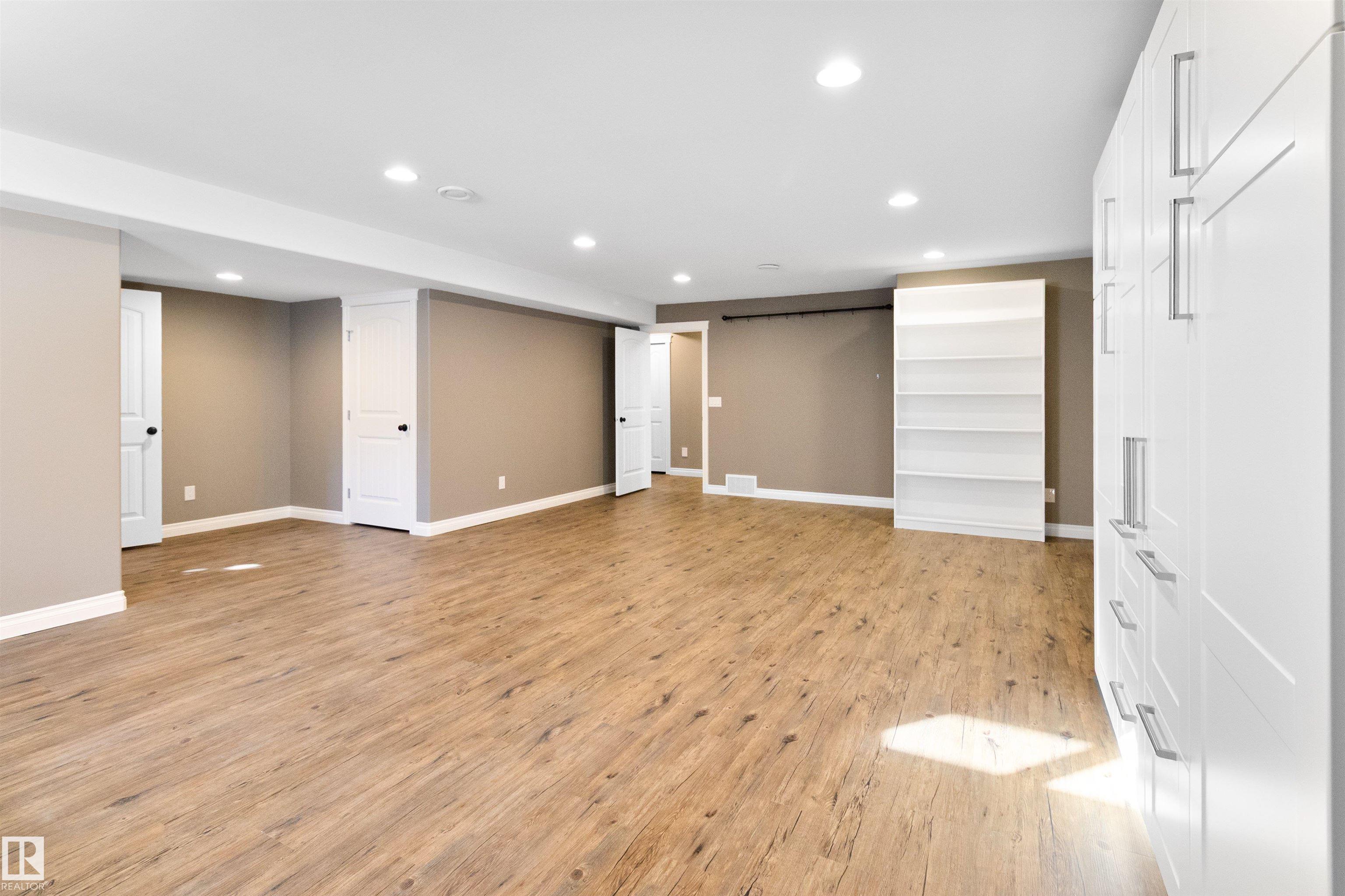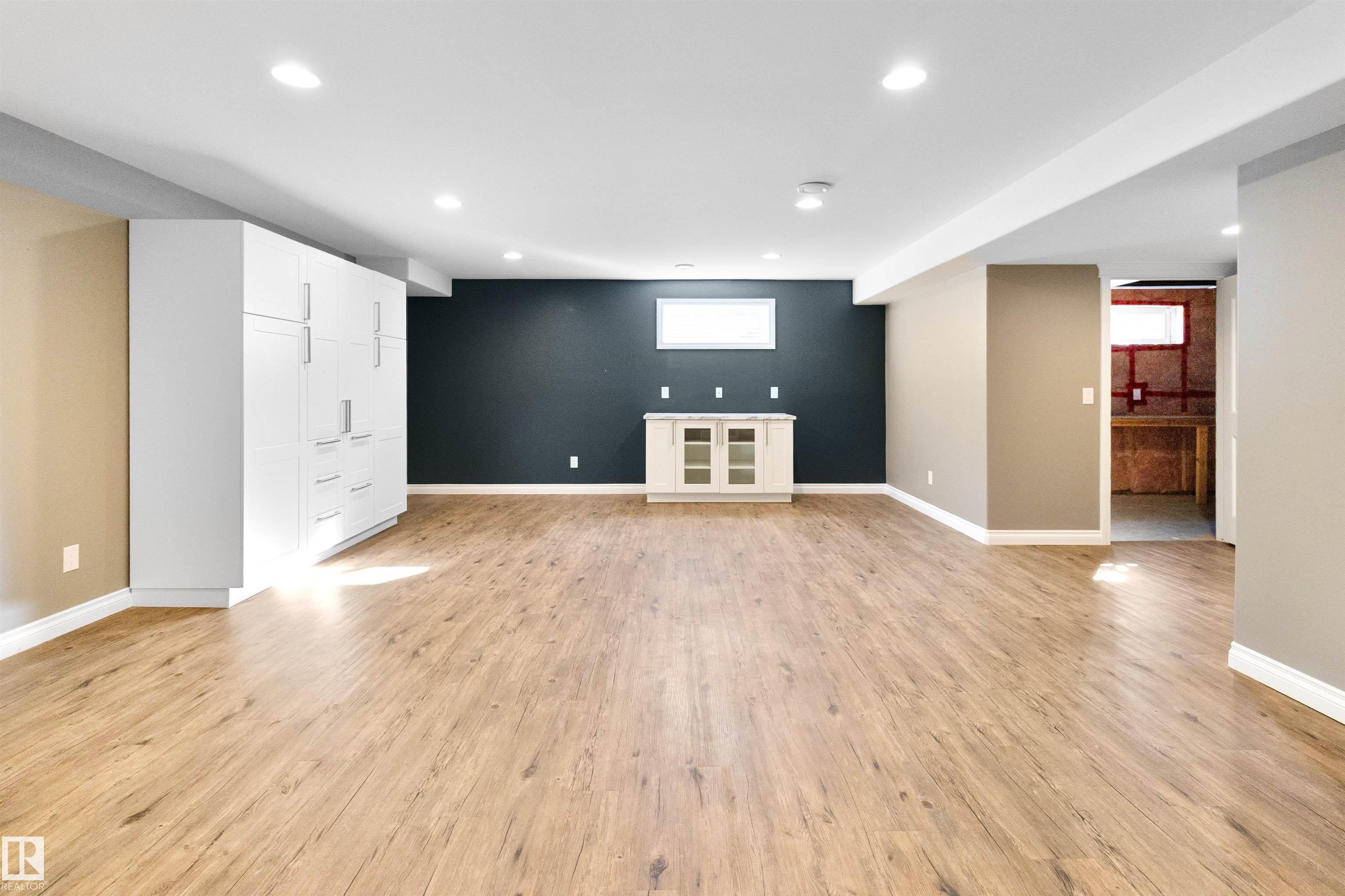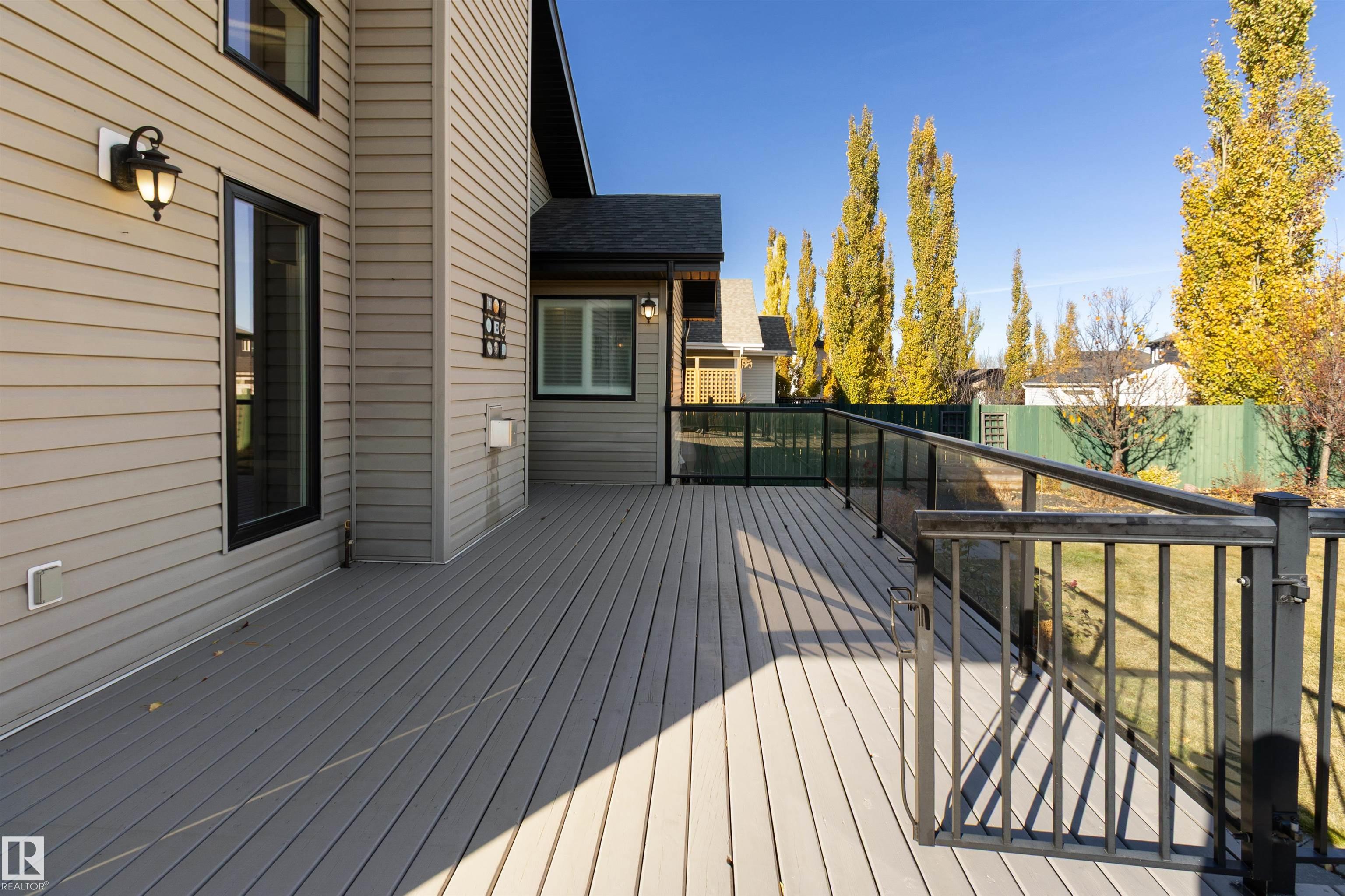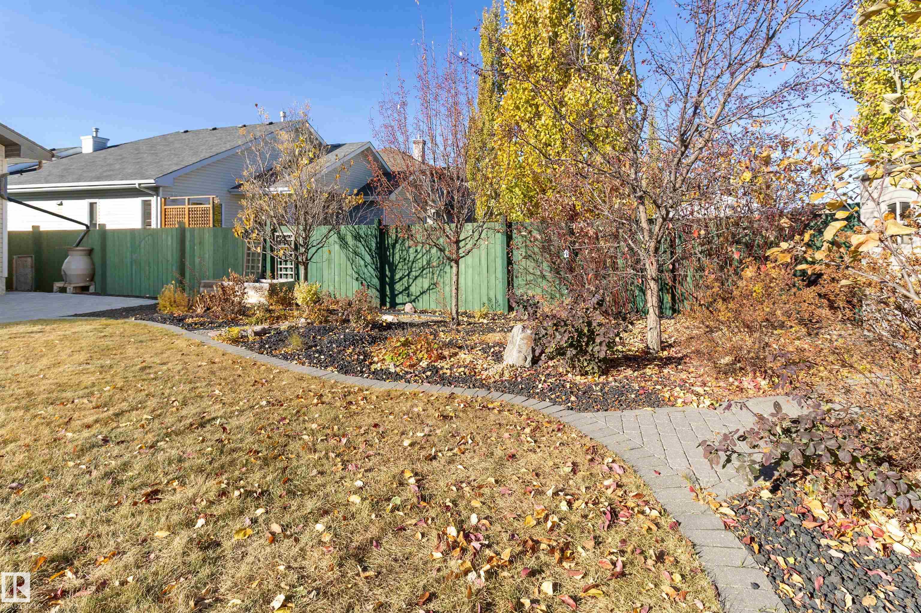 Welcome to this stunning 1,600 sq. ft. open-plan bungalow tucked away on a quiet cul-de-sac in Ardrossan! This home blends elegance and comfort with a bright great room, highlighted by a stone-accented gas fireplace and an abundance of windows. The gourmet island kitchen is perfect for entertaining, featuring quality appliances, rich cabinetry, and a spacious dining area. Enjoy the warmth of hardwood floors and a main floor den ideal for work or relaxation. The primary suite offers a full luxury ensuite, while a second bedroom adds flexible living space. Downstairs, the finished basement boasts a large rec room, two additional bedrooms, and a full bath. Step outside to a beautifully landscaped and fenced yard with a large deck and welcoming front porch. With stone accents, prime walkability to parks, schools, and the Ardrossan Rec Centre -- this is a rare gem not to be missed!