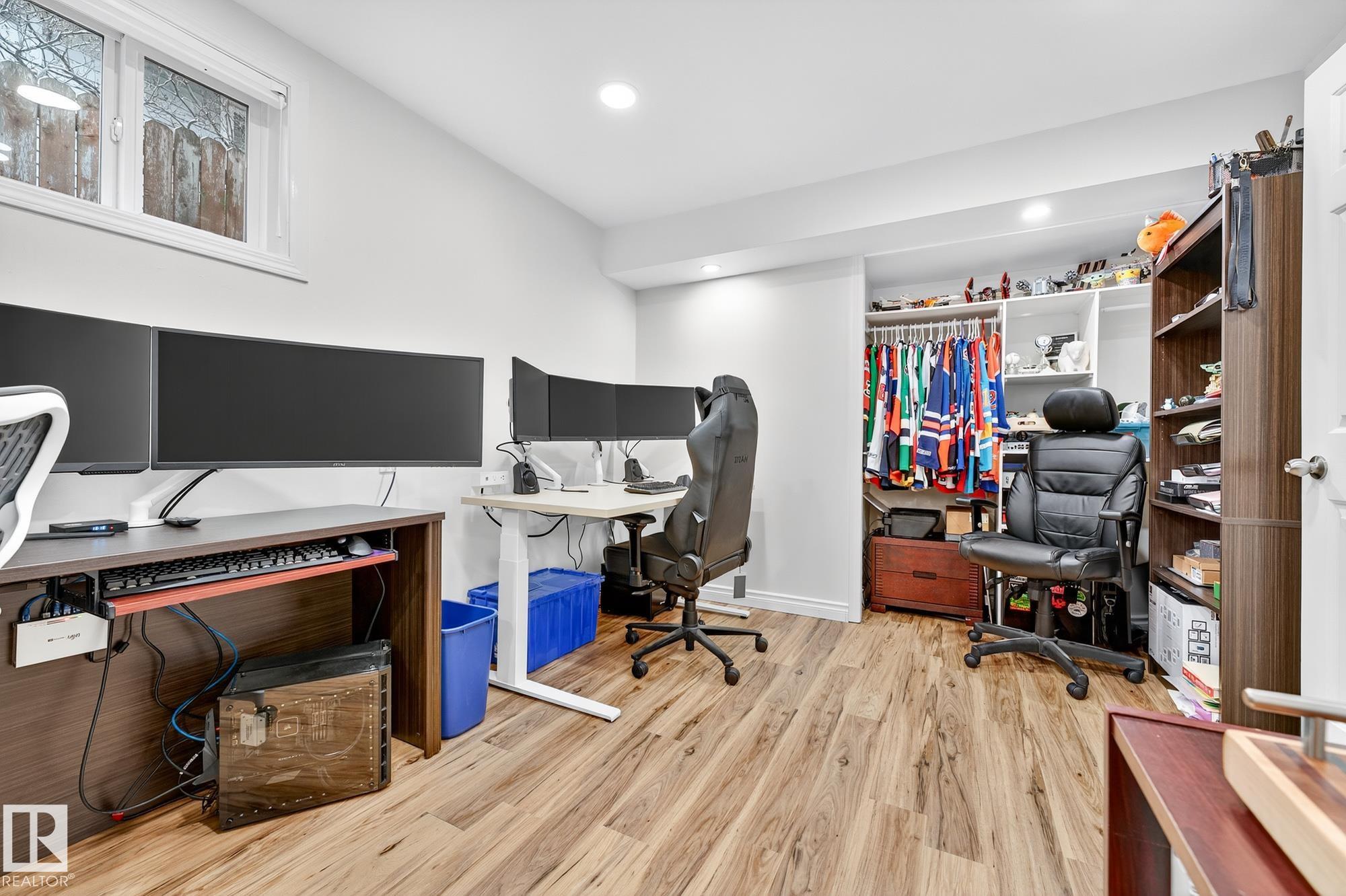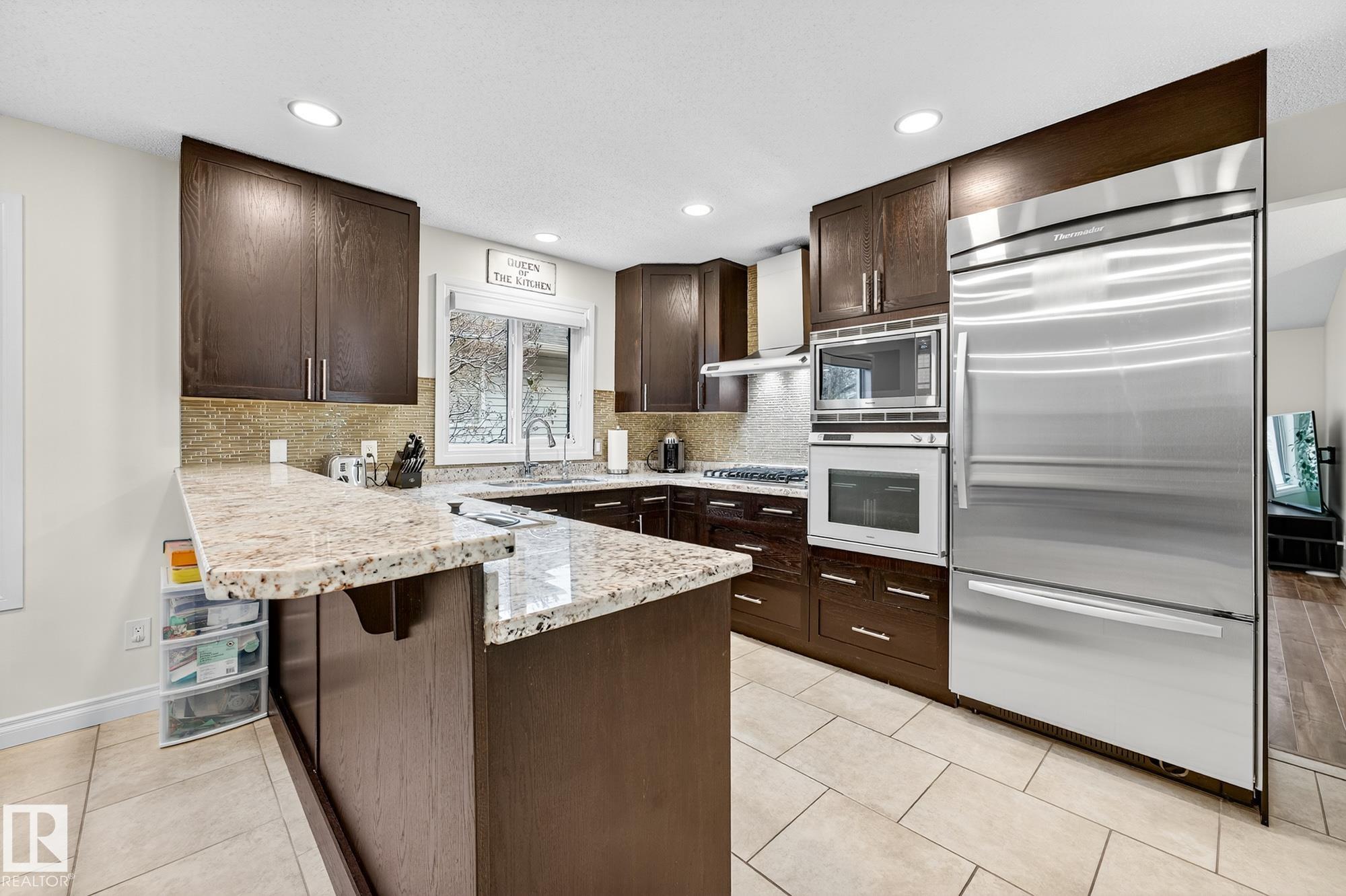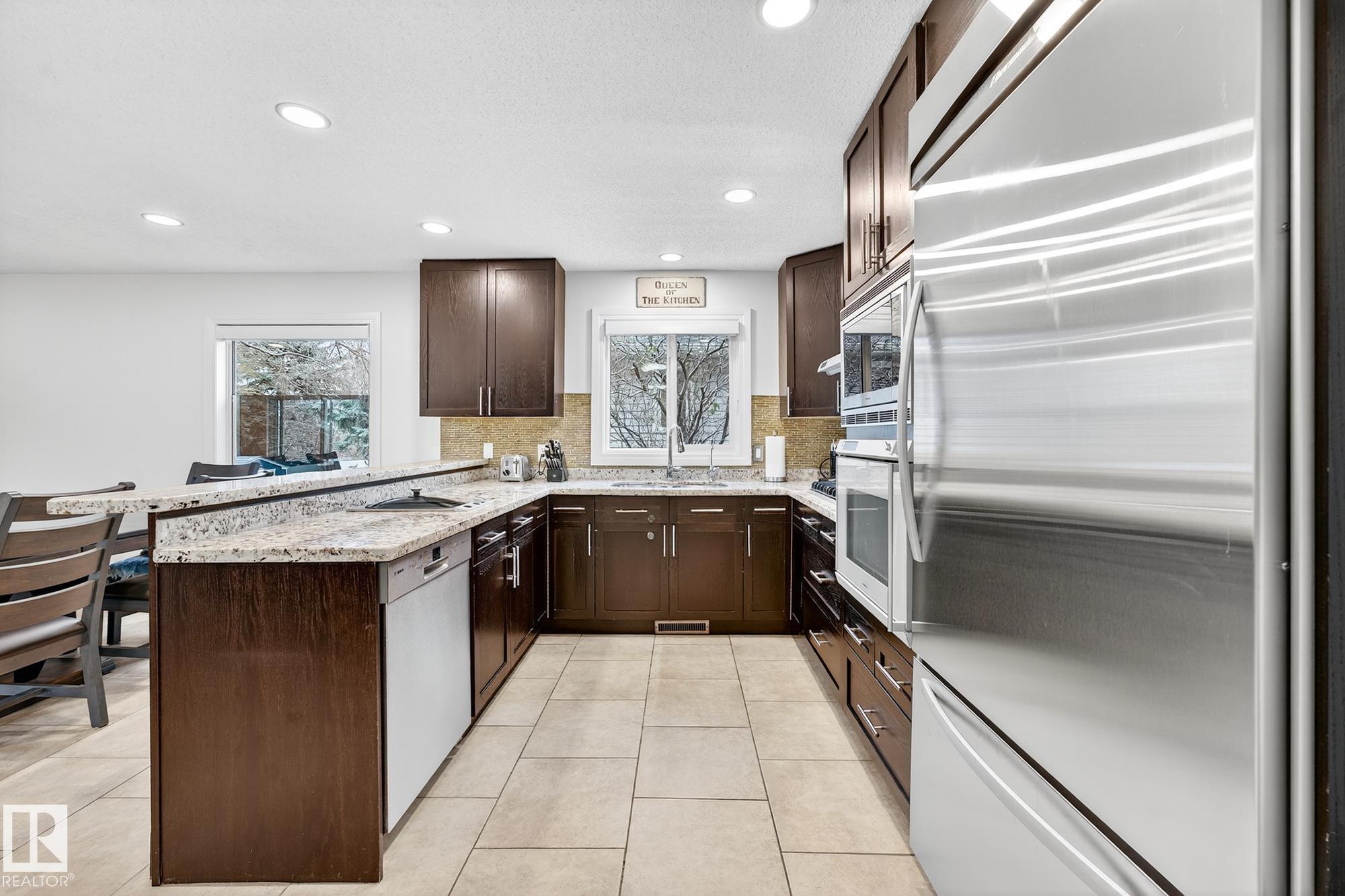 Welcome to this beautifully maintained single-family home in desirable Heritage Hills, Sherwood Park. Featuring 4 bedrooms and 3 bathrooms, this home offers a bright, updated kitchen with modern finishes, spacious living areas, and triple-pane windows for year-round comfort. Upstairs are three generous bedrooms including a serene primary suite, while the lower level adds a fourth bedroom, an office, a storage room, and a cold storage area--perfect for organization or hobbies. Enjoy updated bathrooms, a new hot water tank, and shingles installed in 2018. The heated garage adds convenience through every season. Located close to Heritage Hills Elementary and the off-leash dog park, this home combines family-friendly comfort with an excellent community location.